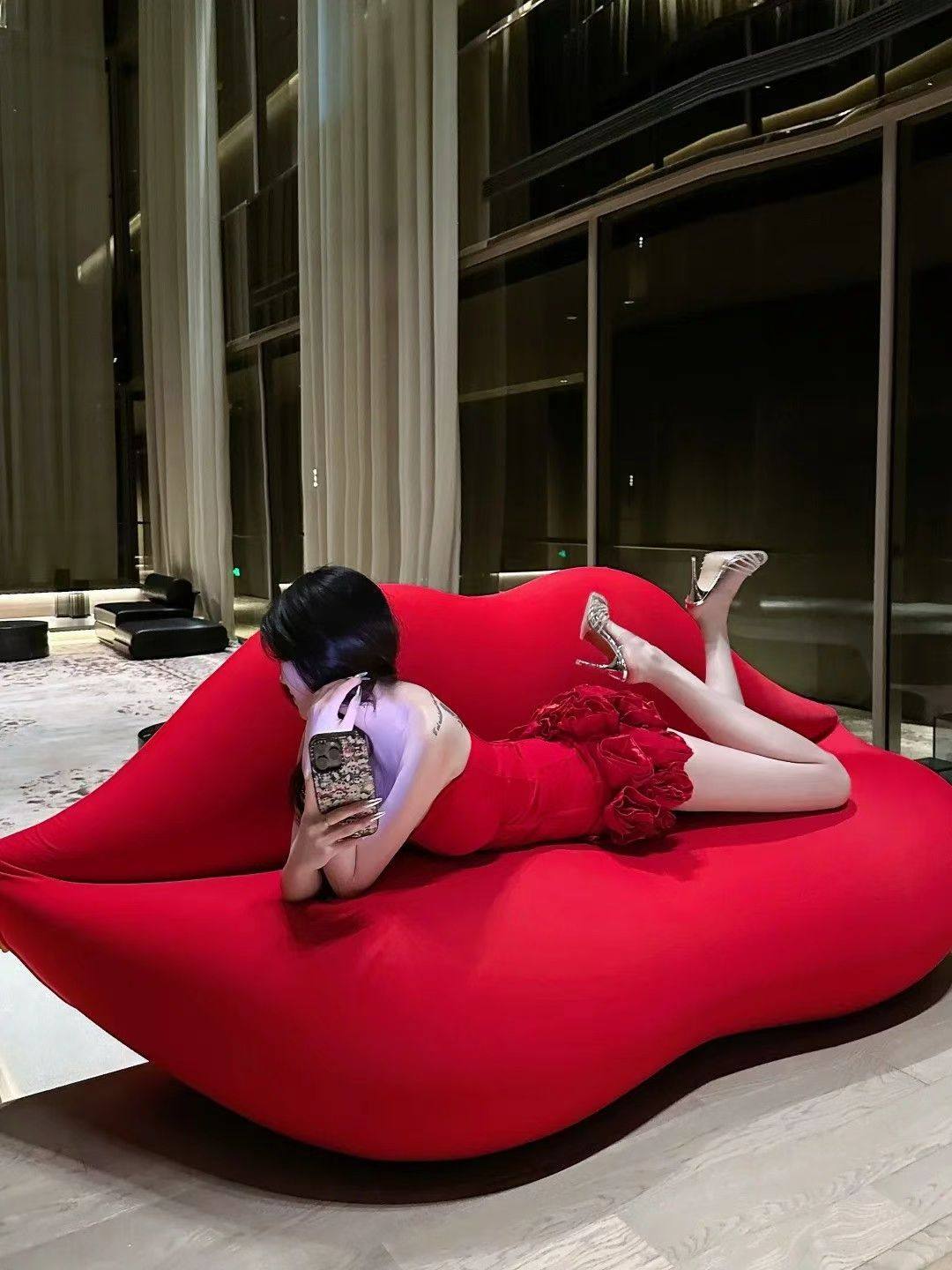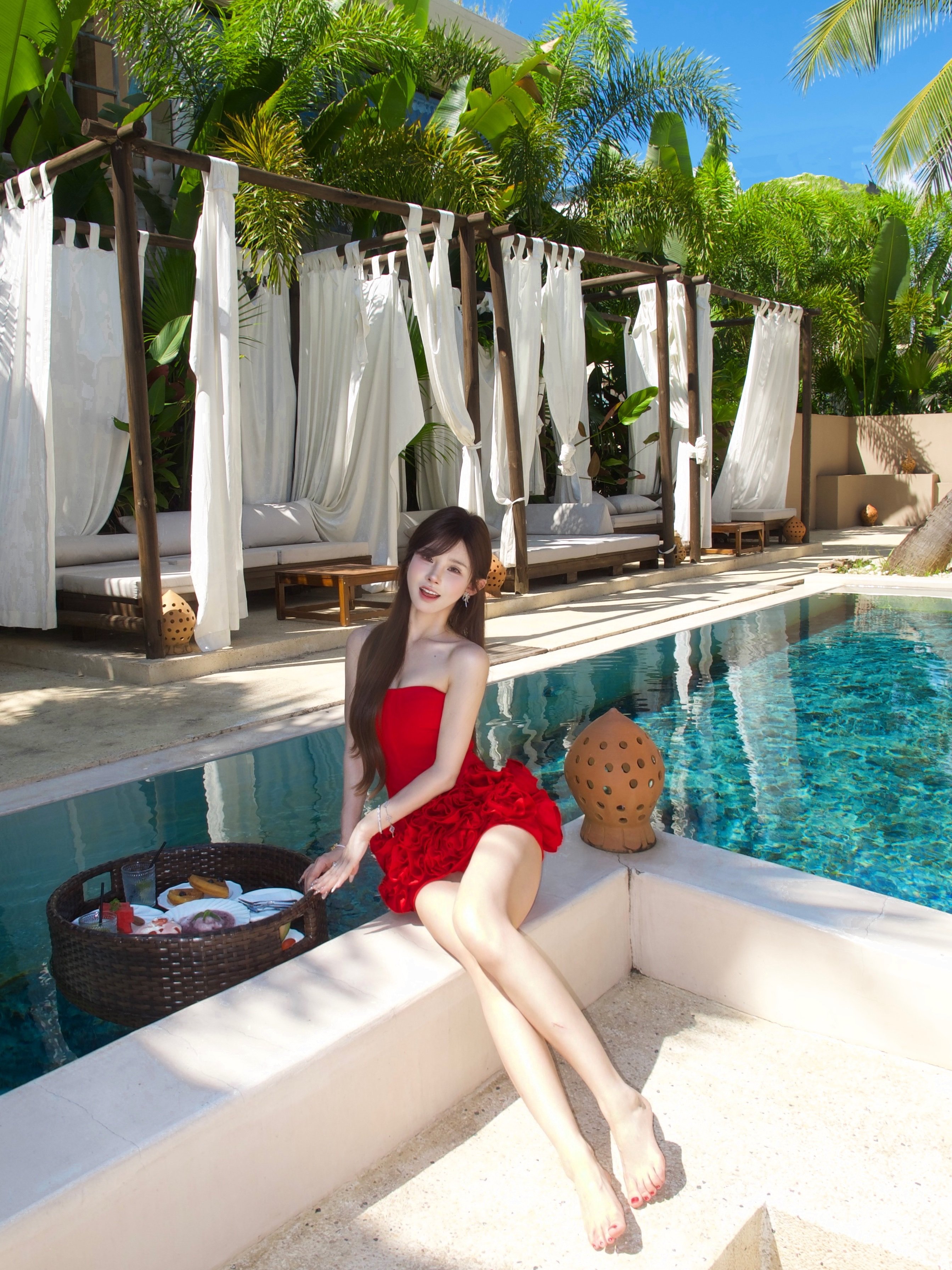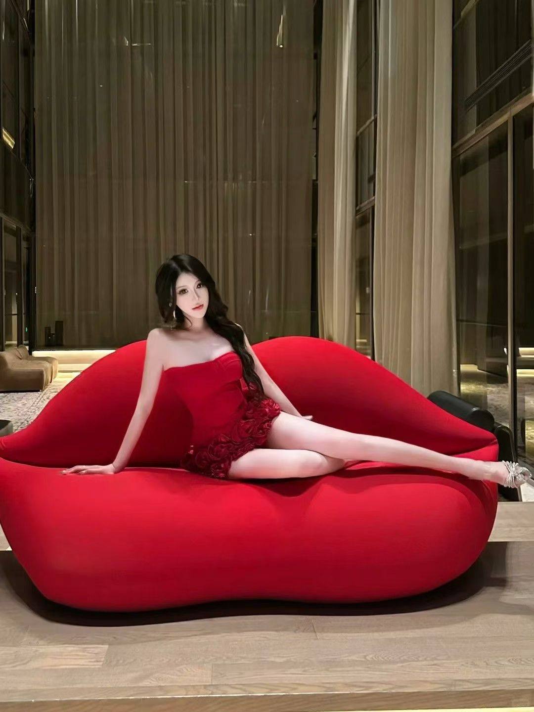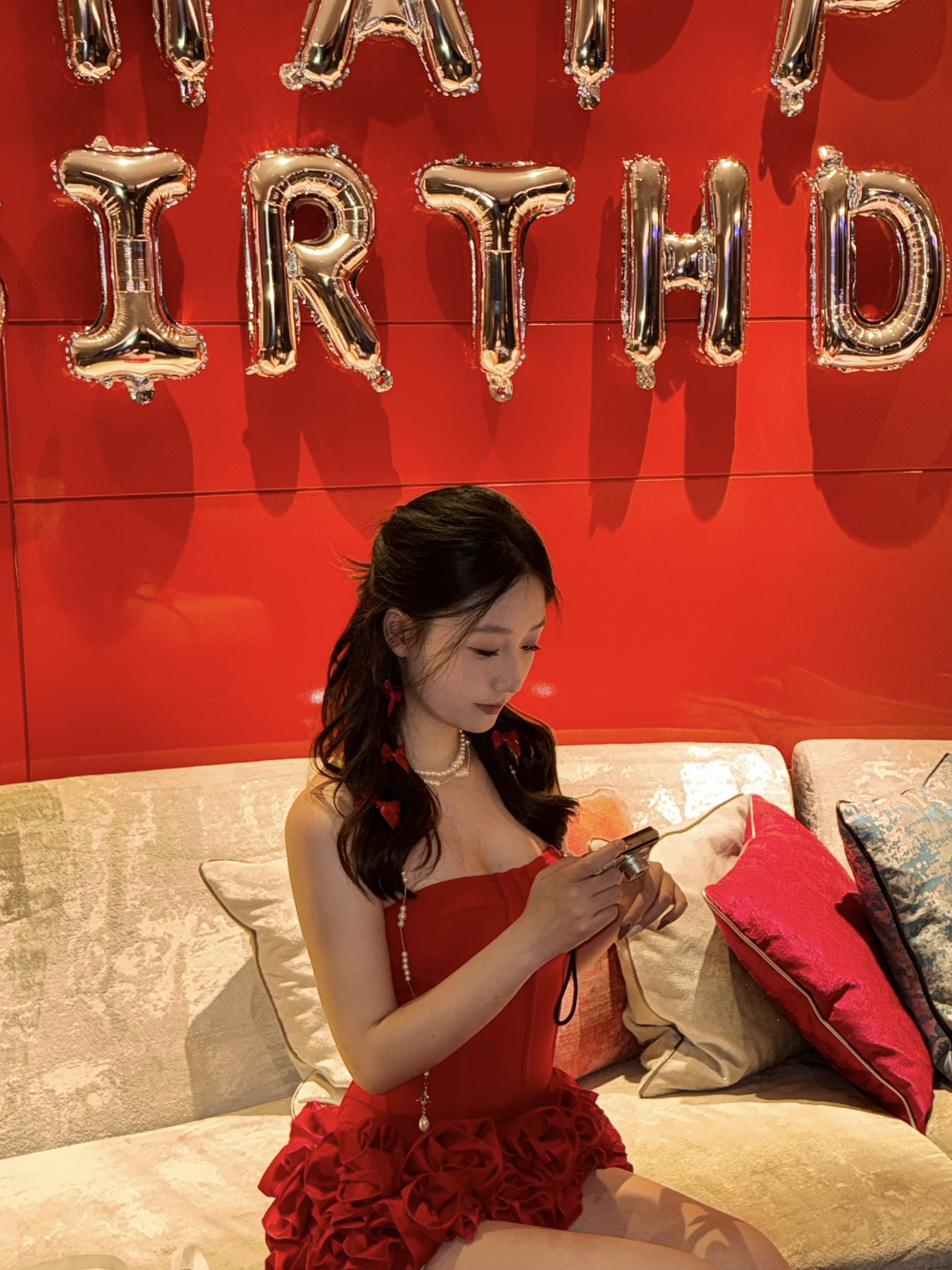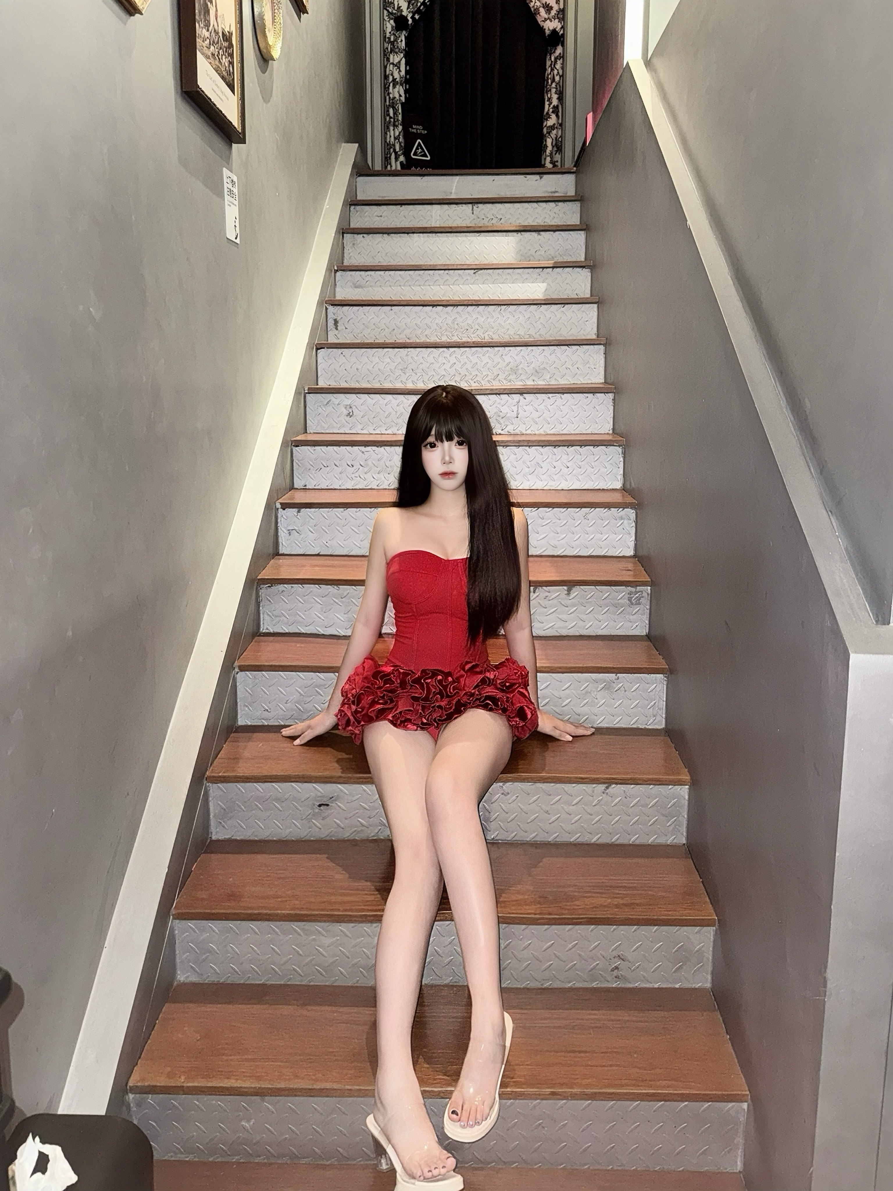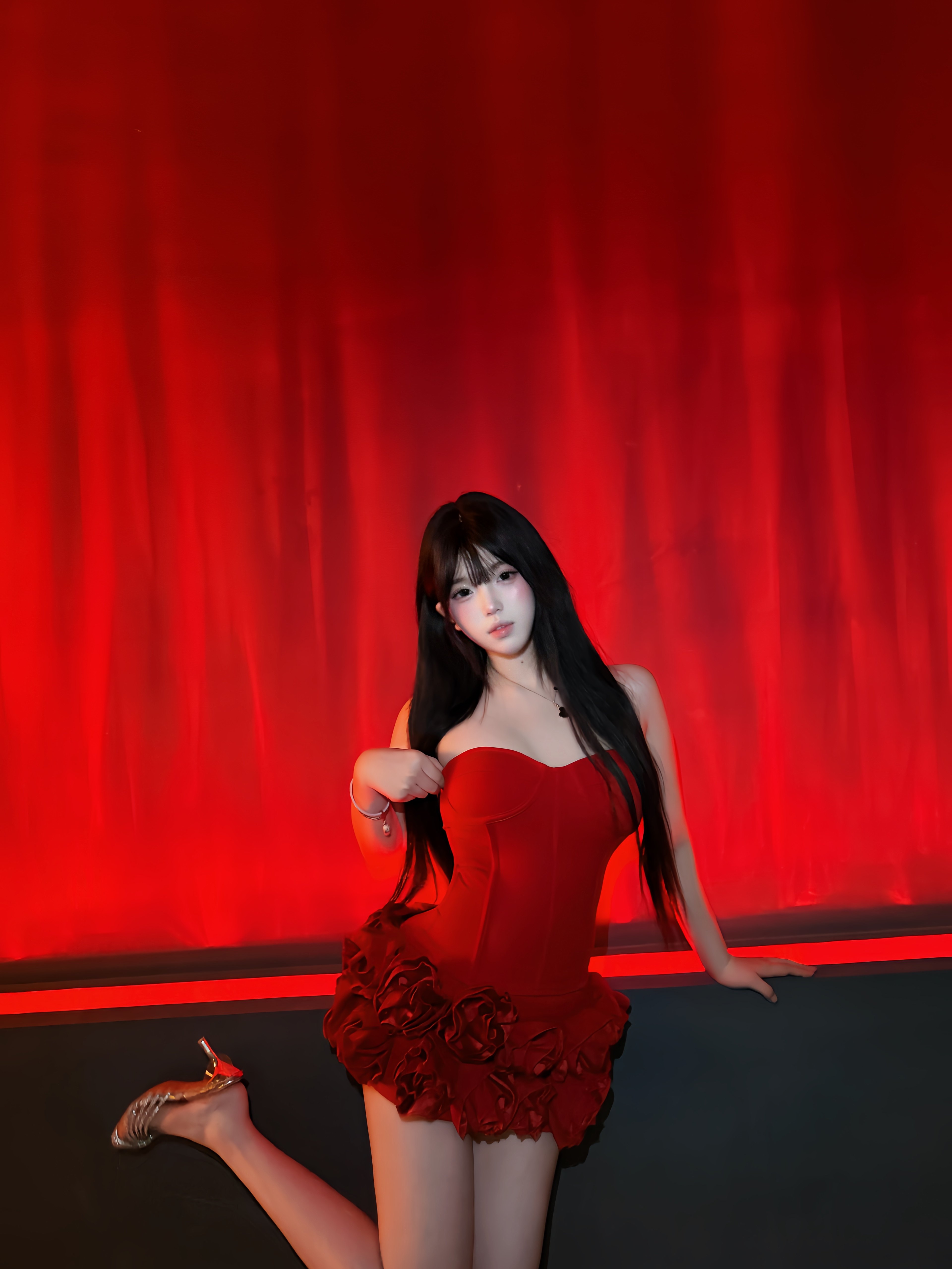 红色太惊艳了!款式很大胆又吸睛,抹胸设计凸显迷人锁骨和肩线,裙摆的花朵装饰精致又独特。质量没话说,面料质感高级,做工也很精细。版型超级显瘦,把身材比例修饰得特别好。坐在造型别致的红色大沙发上,和裙子颜色很好看,整个画面时尚感爆棚,穿上就是人群中最亮眼的存在!