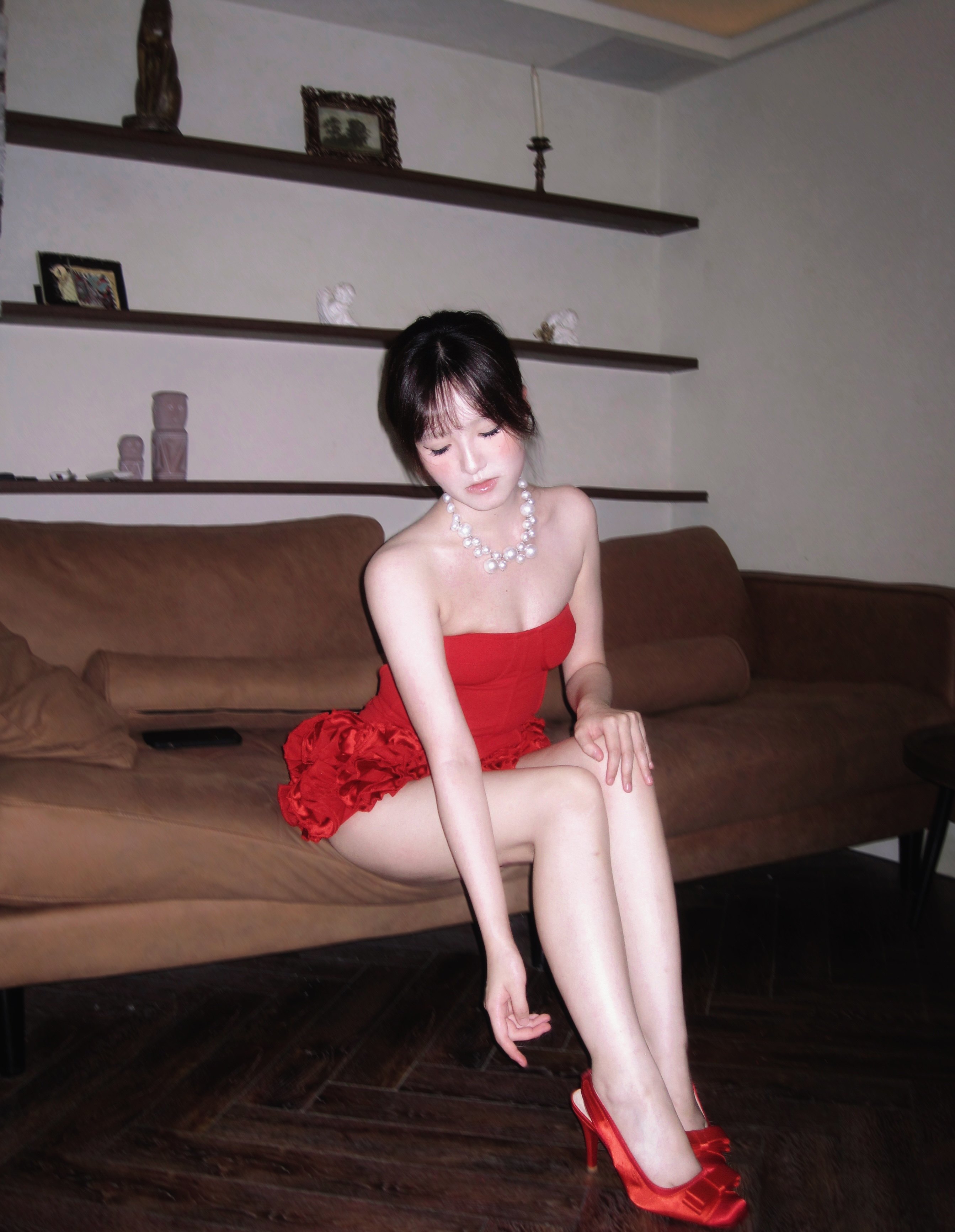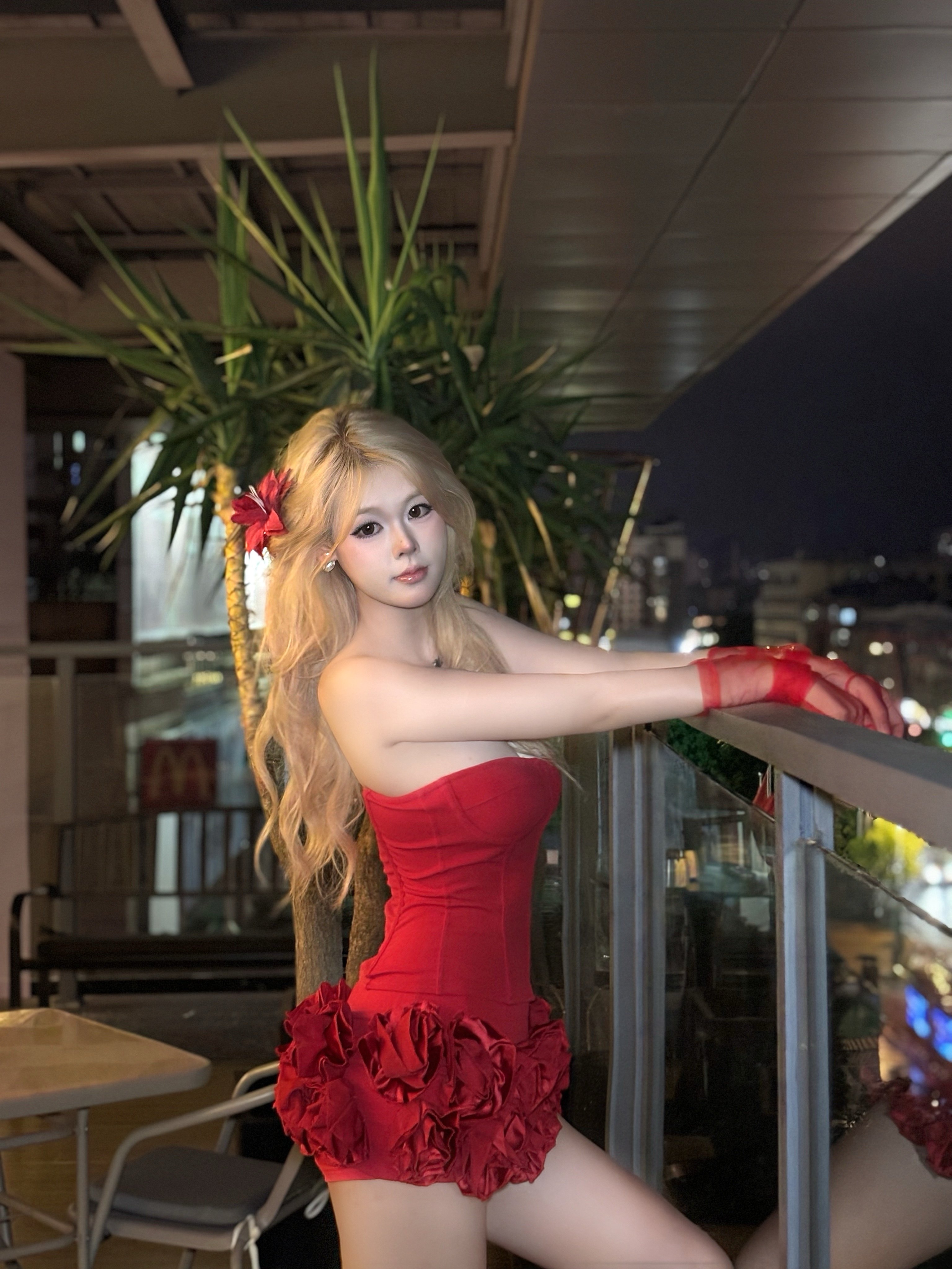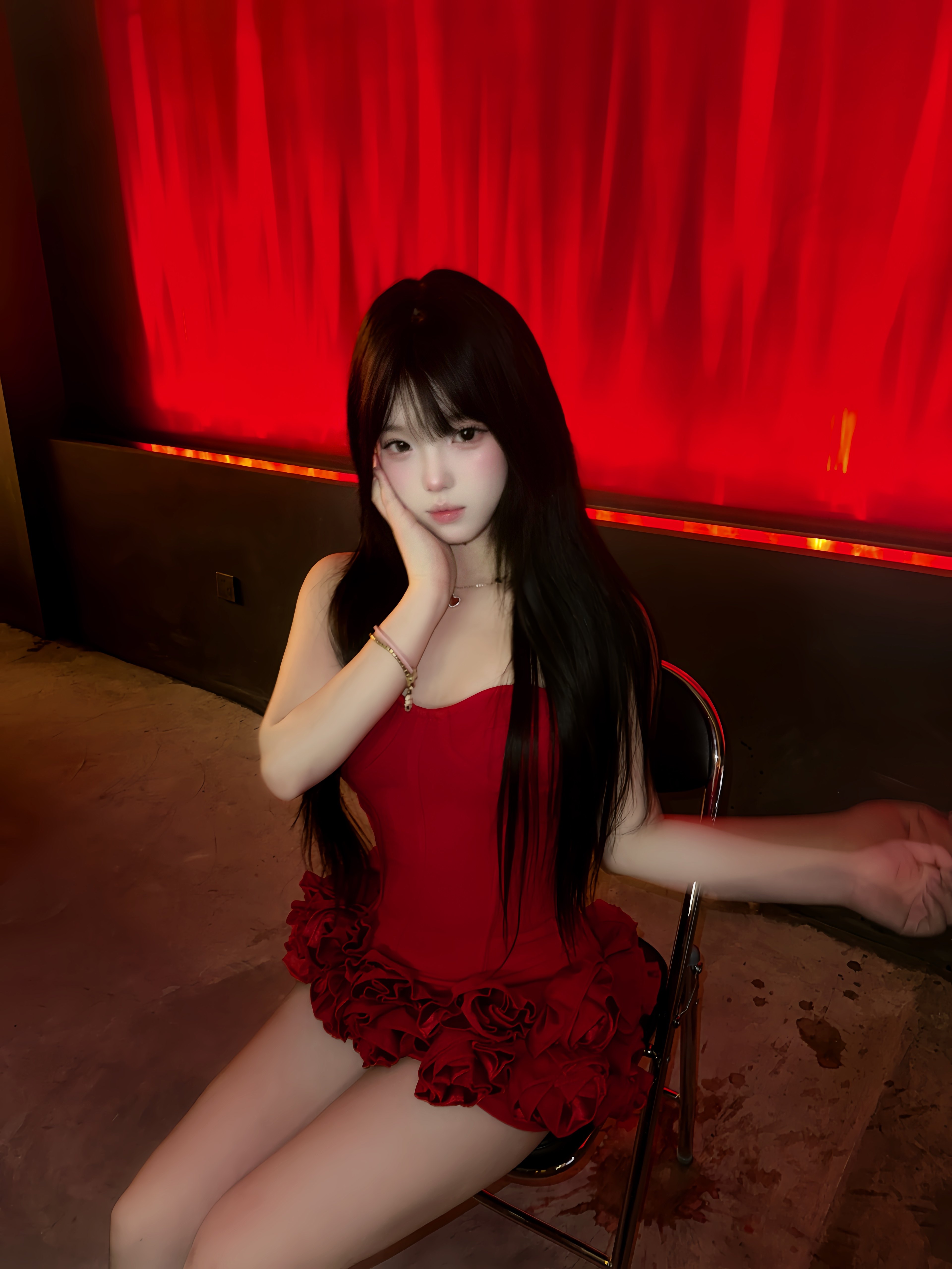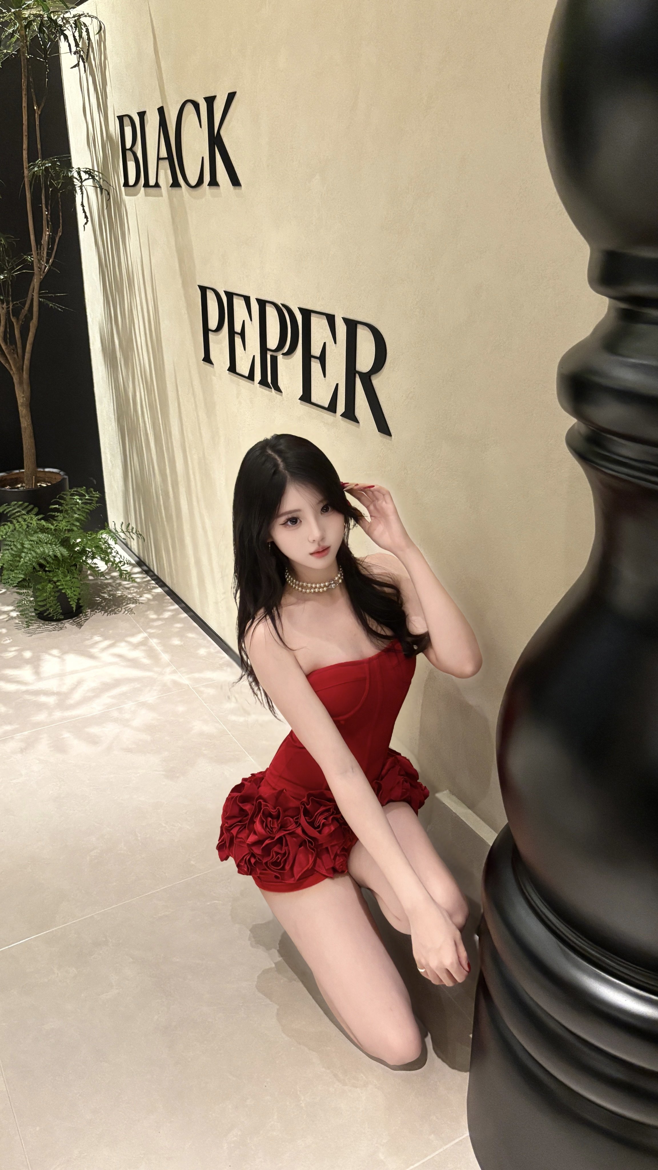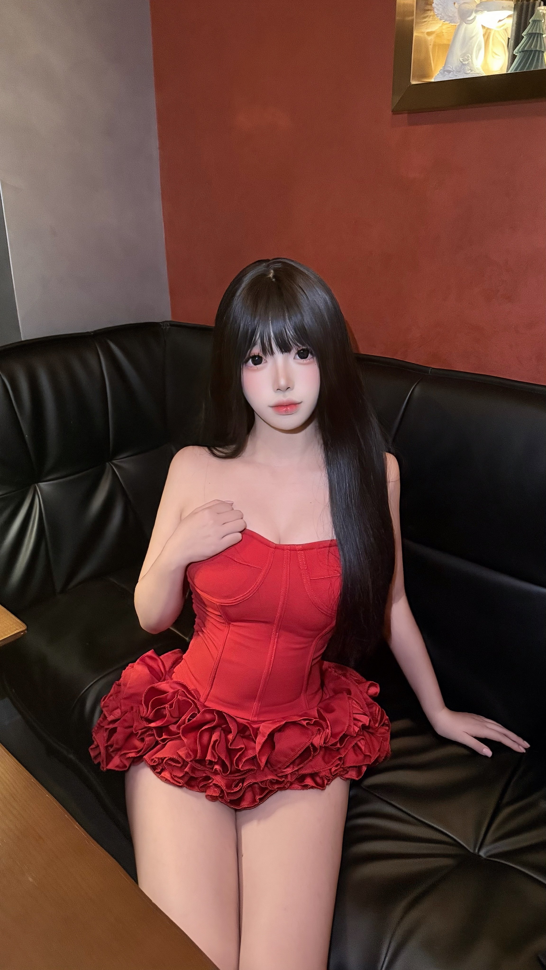 红色太惊艳了!款式很大胆又吸睛,抹胸设计凸显迷人锁骨和肩线,裙摆的花朵装饰精致又独特。质量没话说,面料质感高级,做工也很精细。版型超级显瘦,把身材比例修饰得特别好。坐在造型别致的红色大沙发上,和裙子颜色很好看,整个画面时尚感爆棚,穿上就是人群中最亮眼的存在!