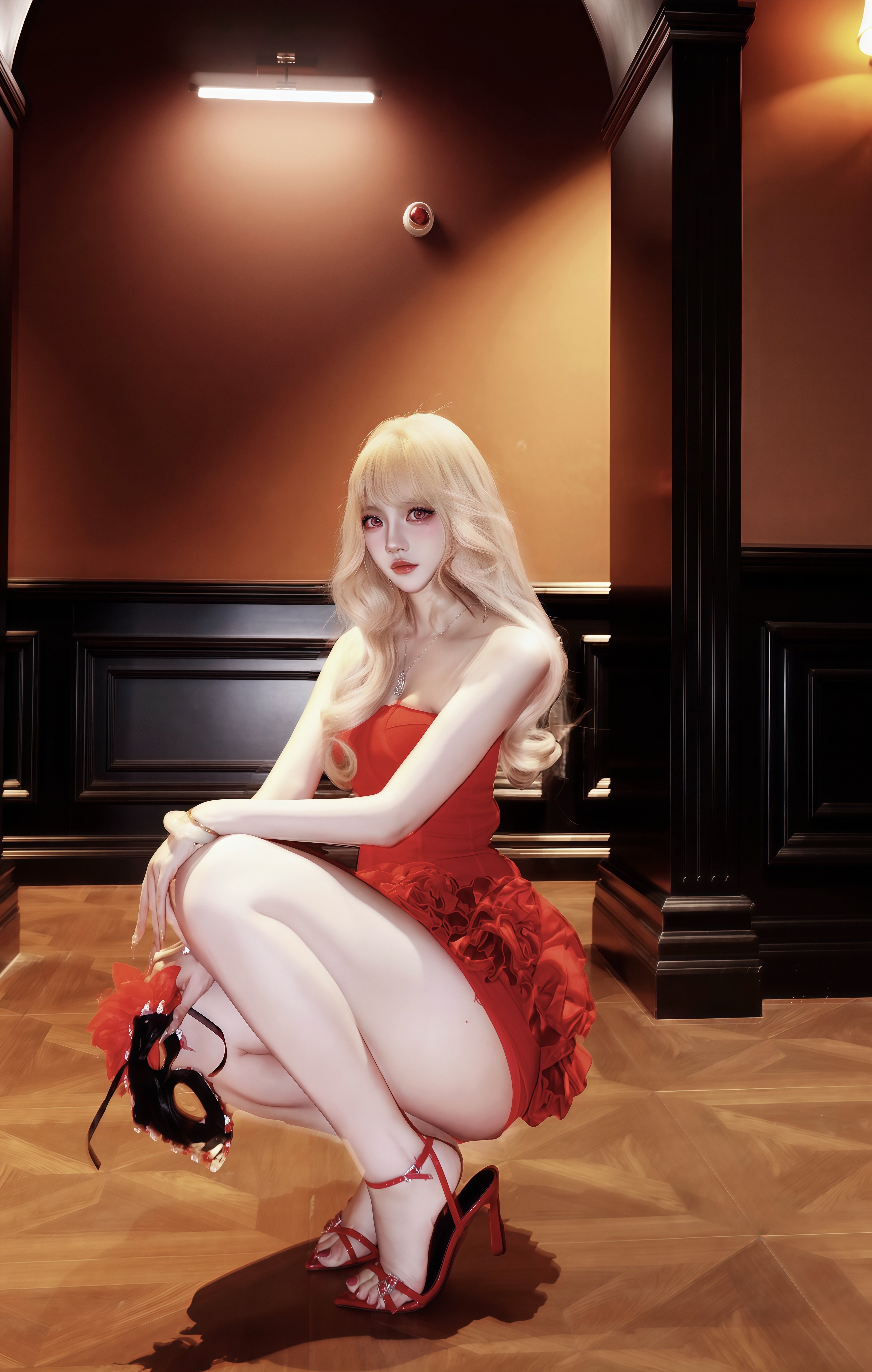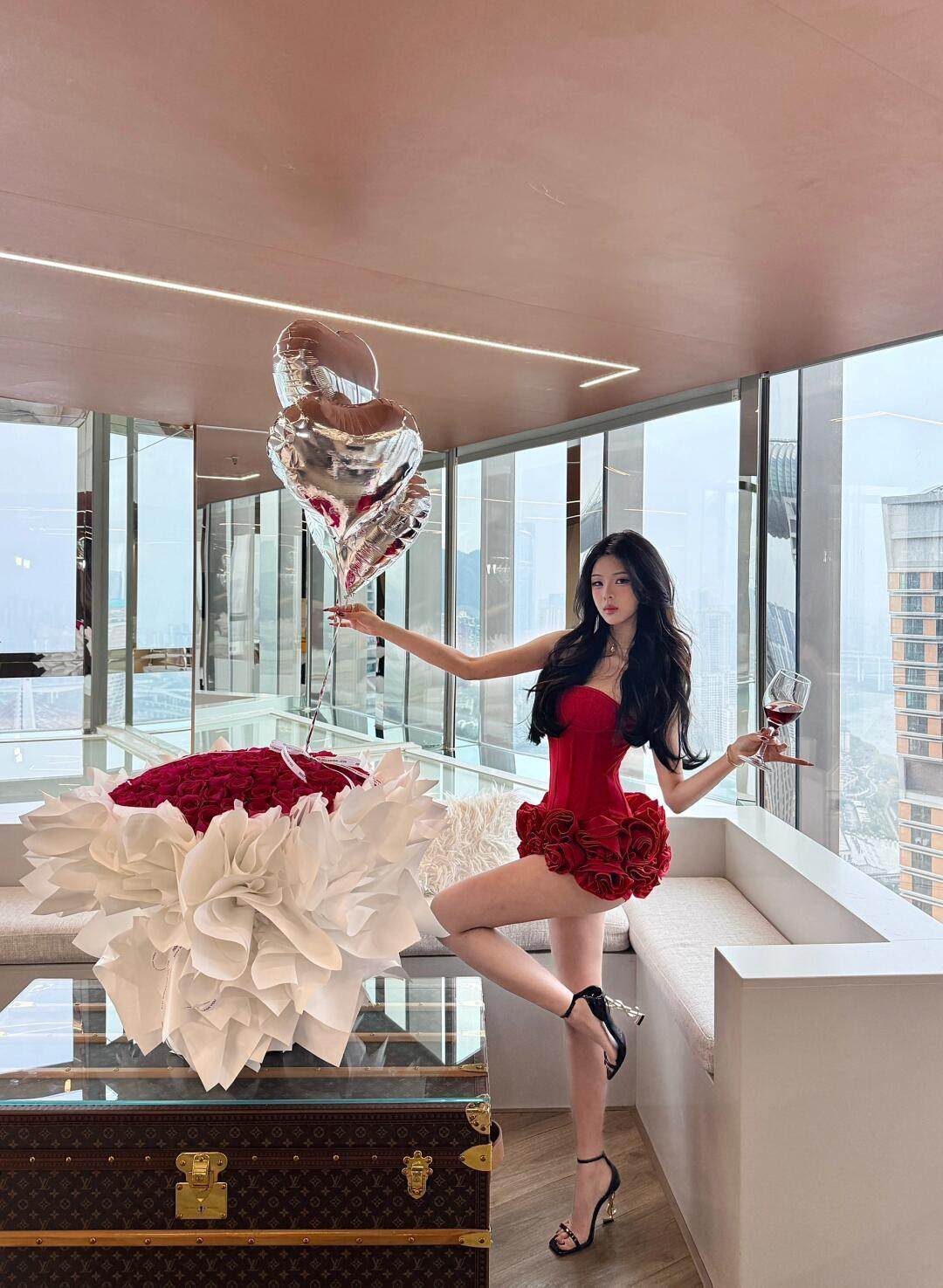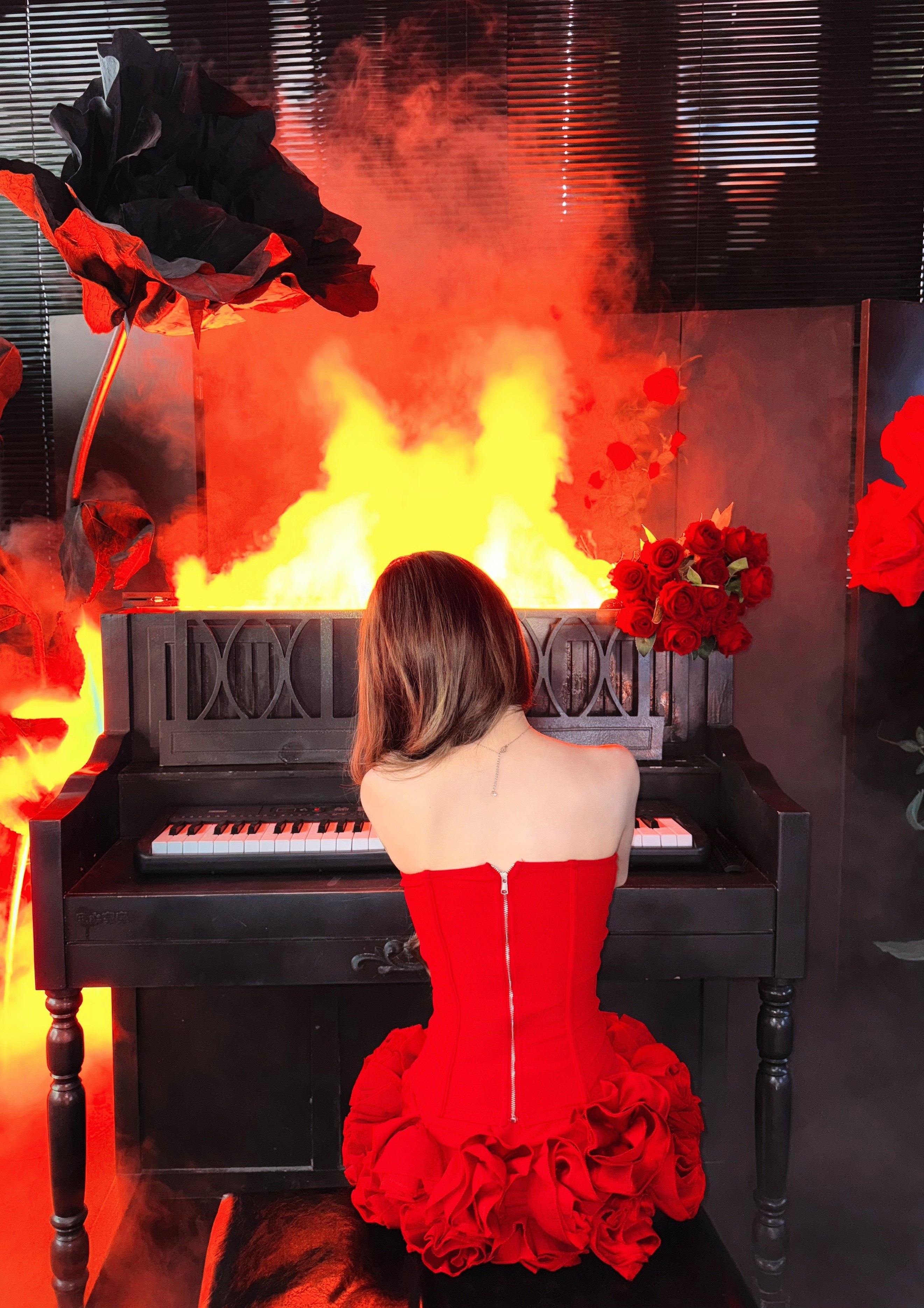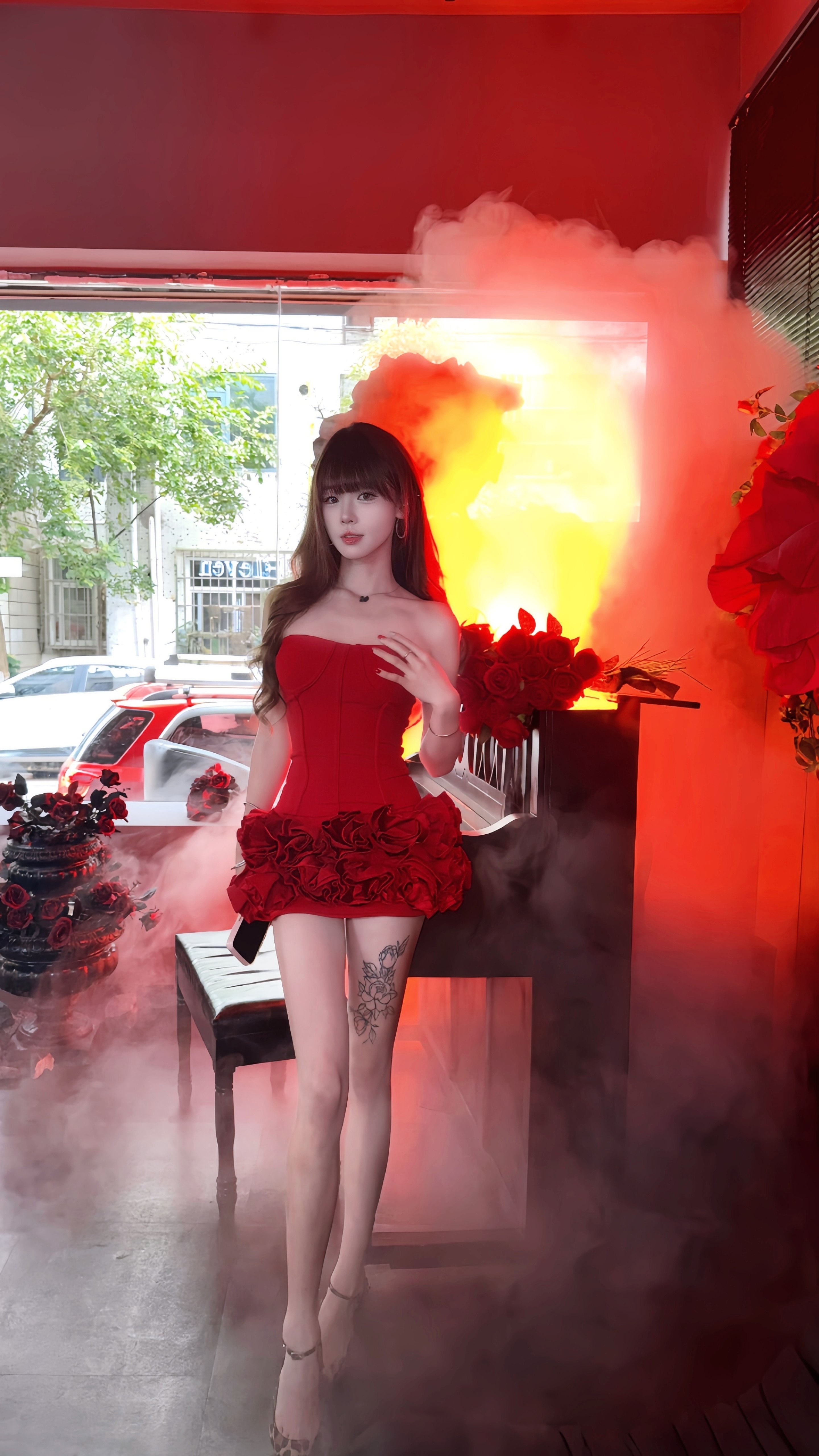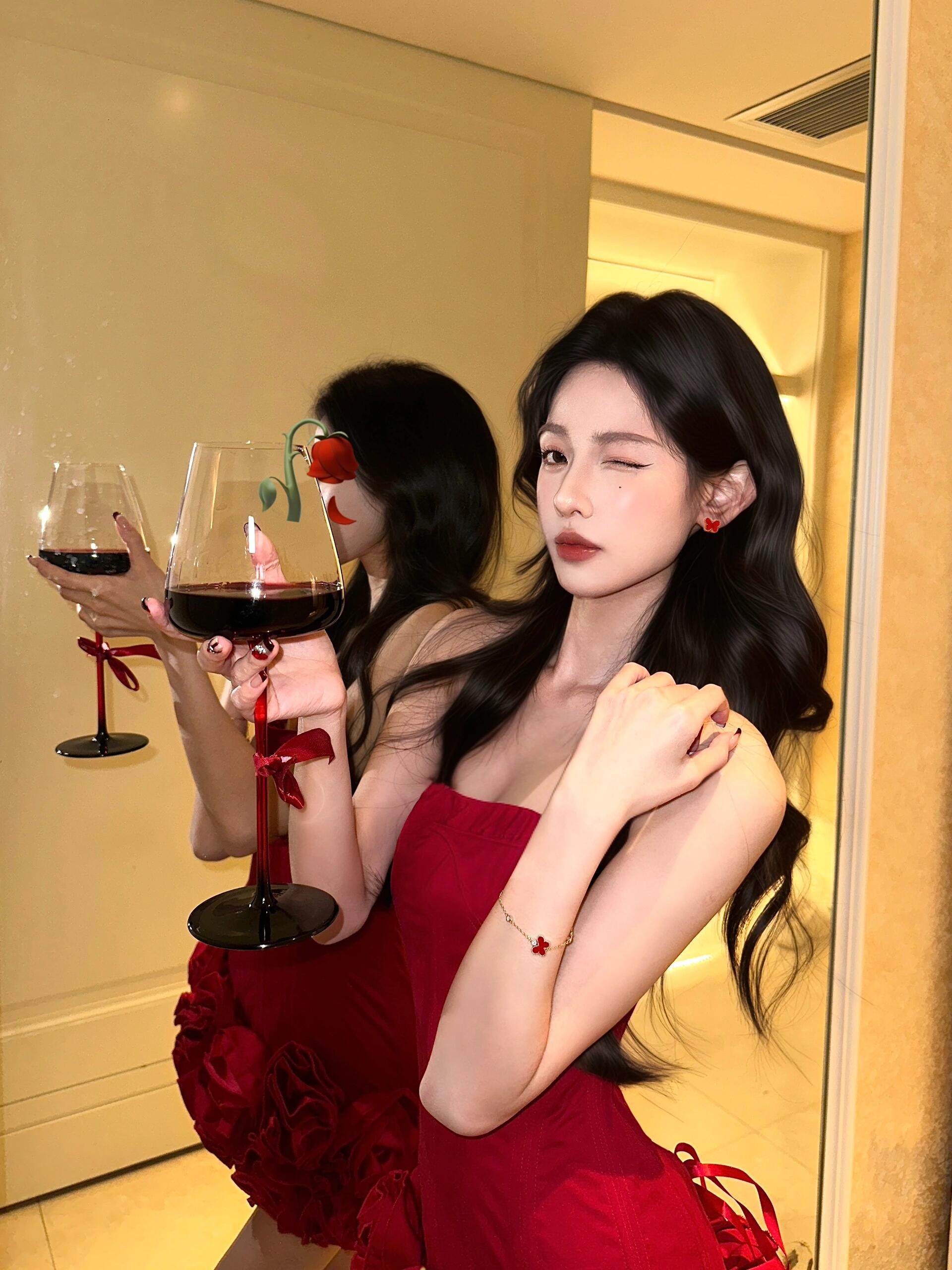 红色太惊艳了!款式很大胆又吸睛,抹胸设计凸显迷人锁骨和肩线,裙摆的花朵装饰精致又独特。质量没话说,面料质感高级,做工也很精细。版型超级显瘦,把身材比例修饰得特别好。坐在造型别致的红色大沙发上,和裙子颜色很好看,整个画面时尚感爆棚,穿上就是人群中最亮眼的存在!