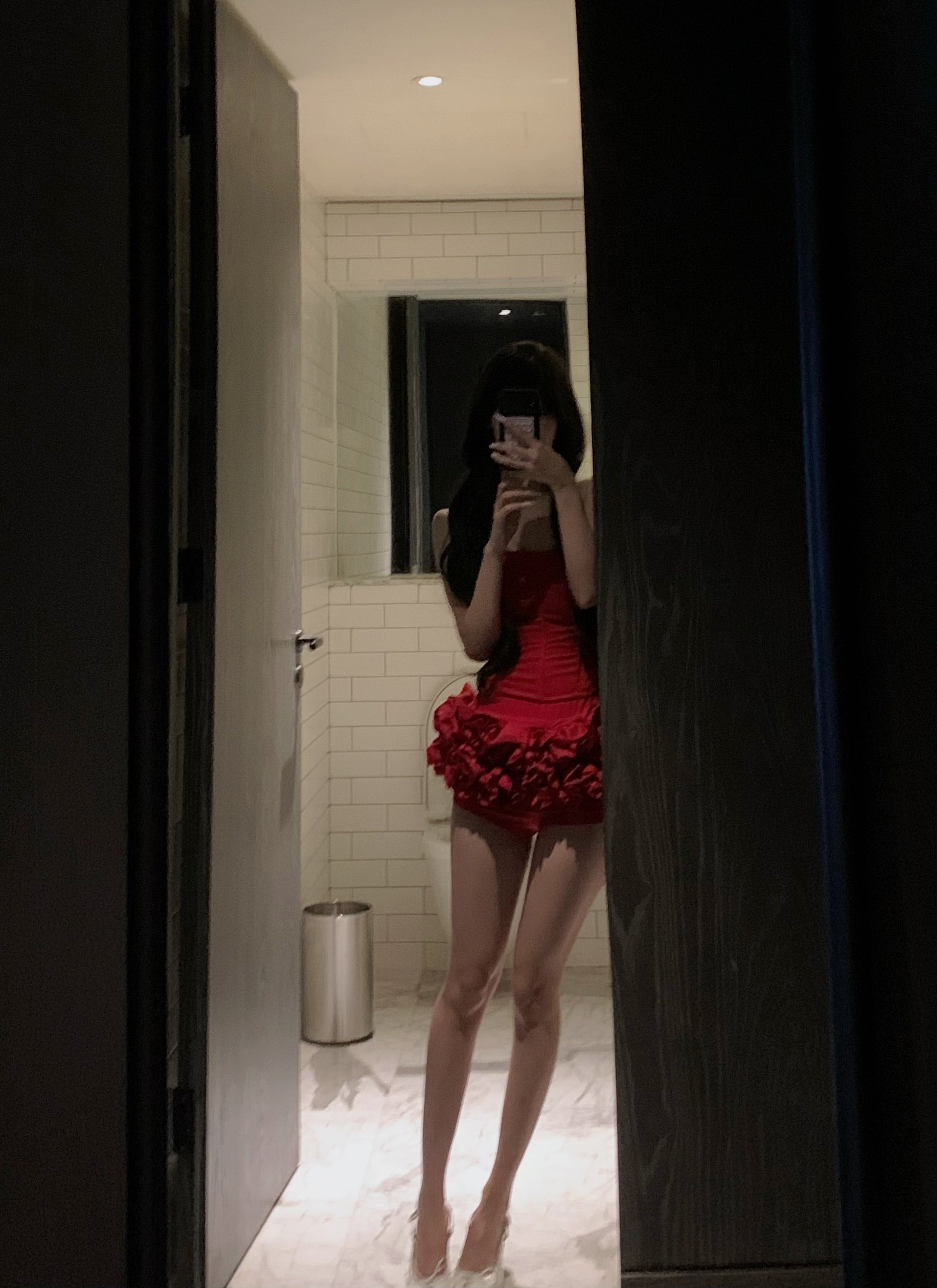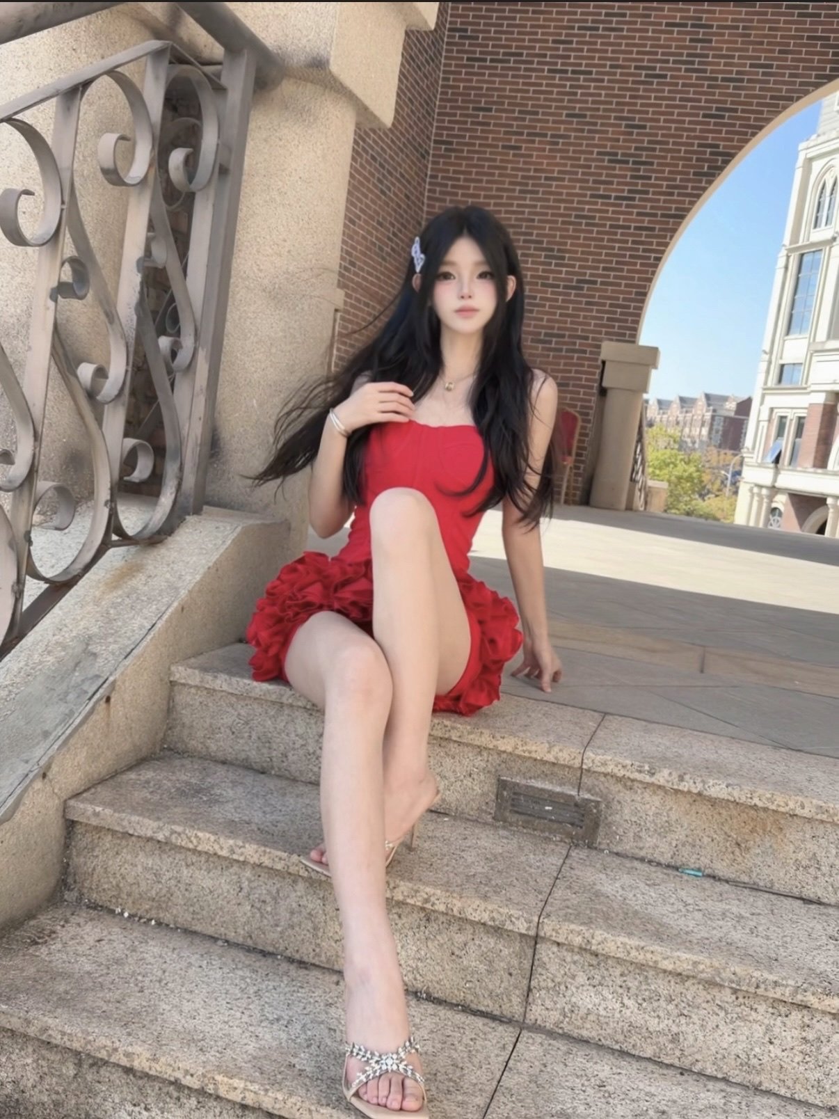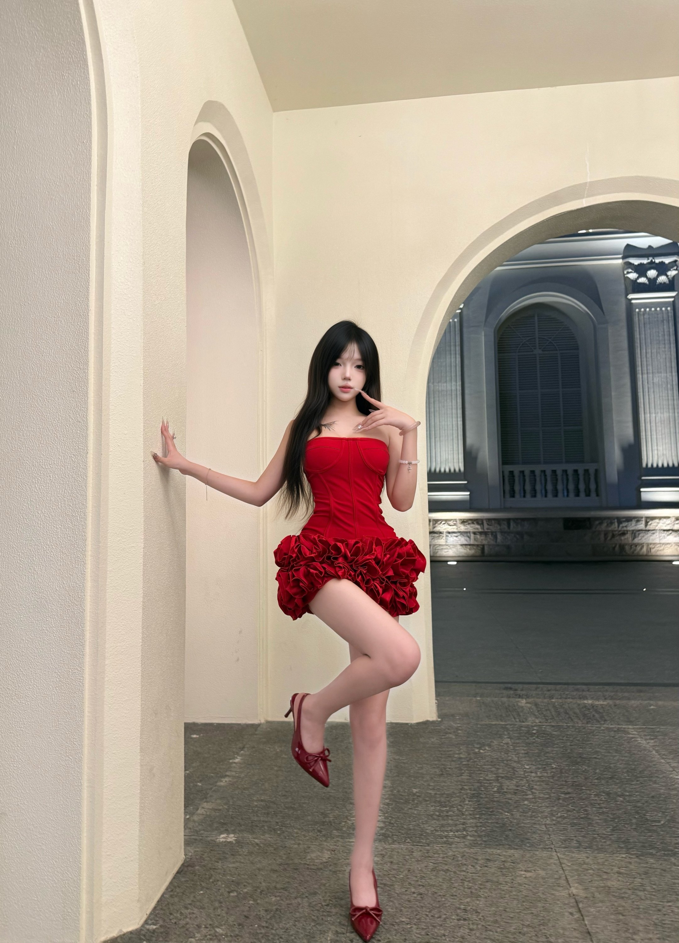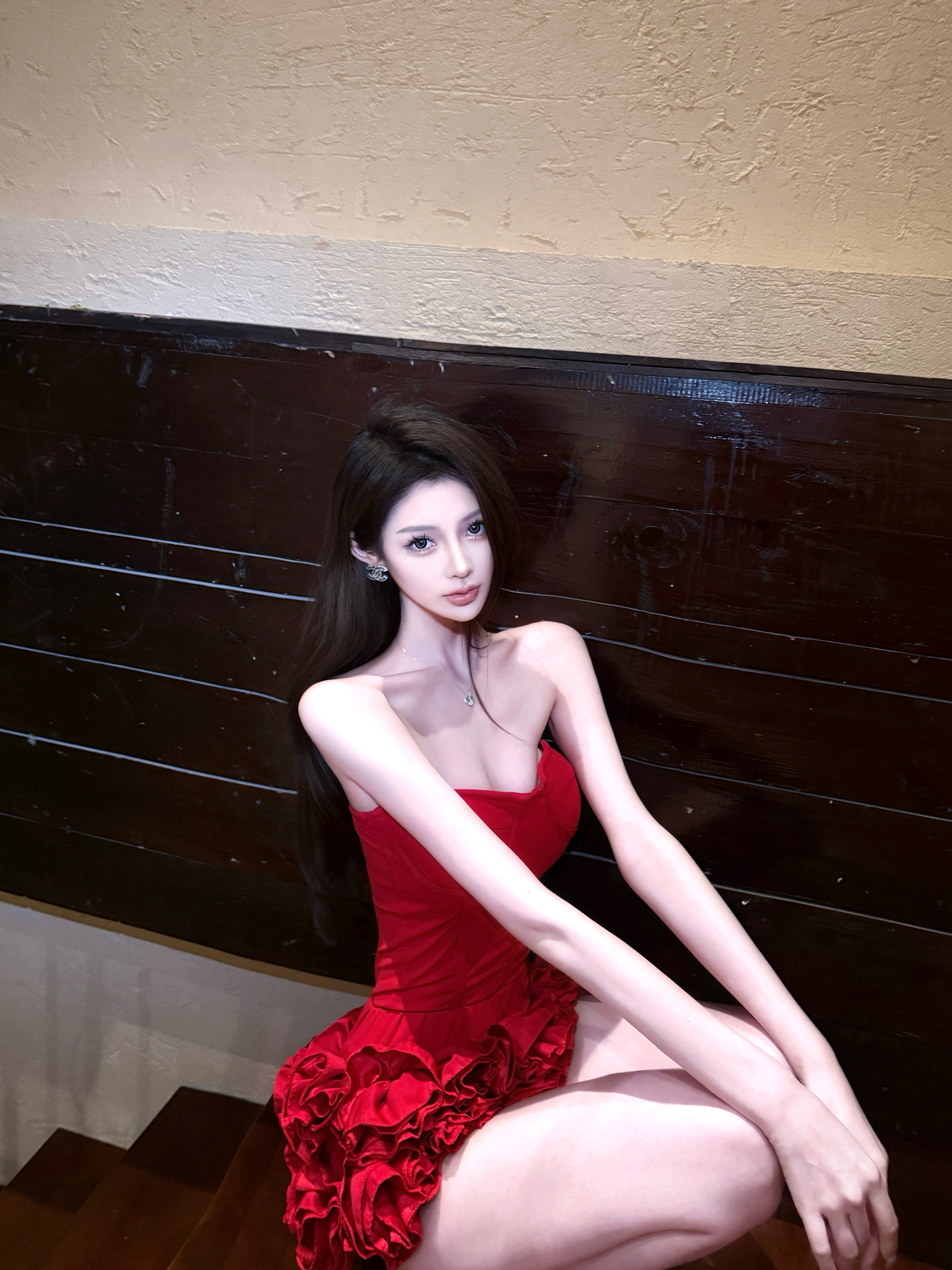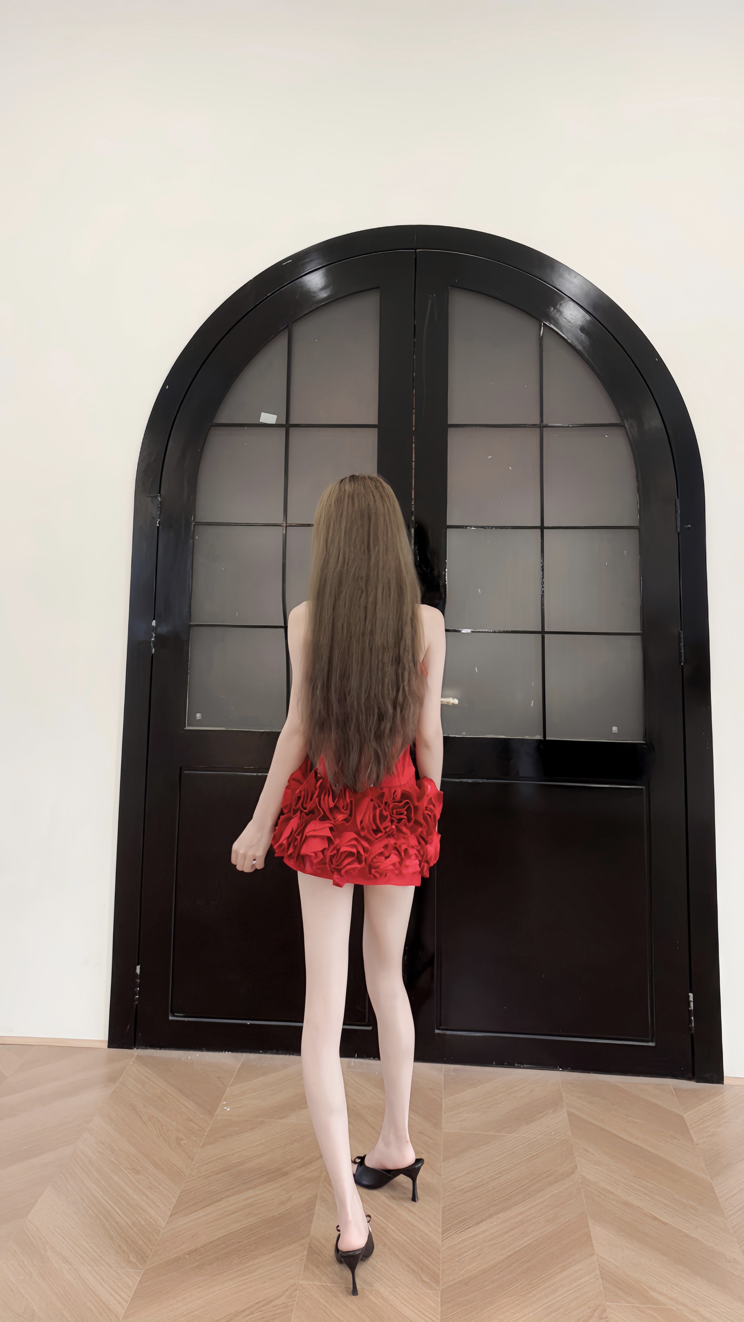 真的无敌好好好看啊啊啊啊啊!抹胸的设计把上半身的魅力完全展现出来,,下半身的存在感就被削弱啦。裙摆的立体花朵设计超级精致,而且是蓬松的款式,把臀部和大腿的肉肉都遮得严严实实,只露出纤细的小腿。红色特别显白,也很有气场,拍照感觉自己就是全场的焦点,梨形身材什么的,完全不存在,自信直接拉满!