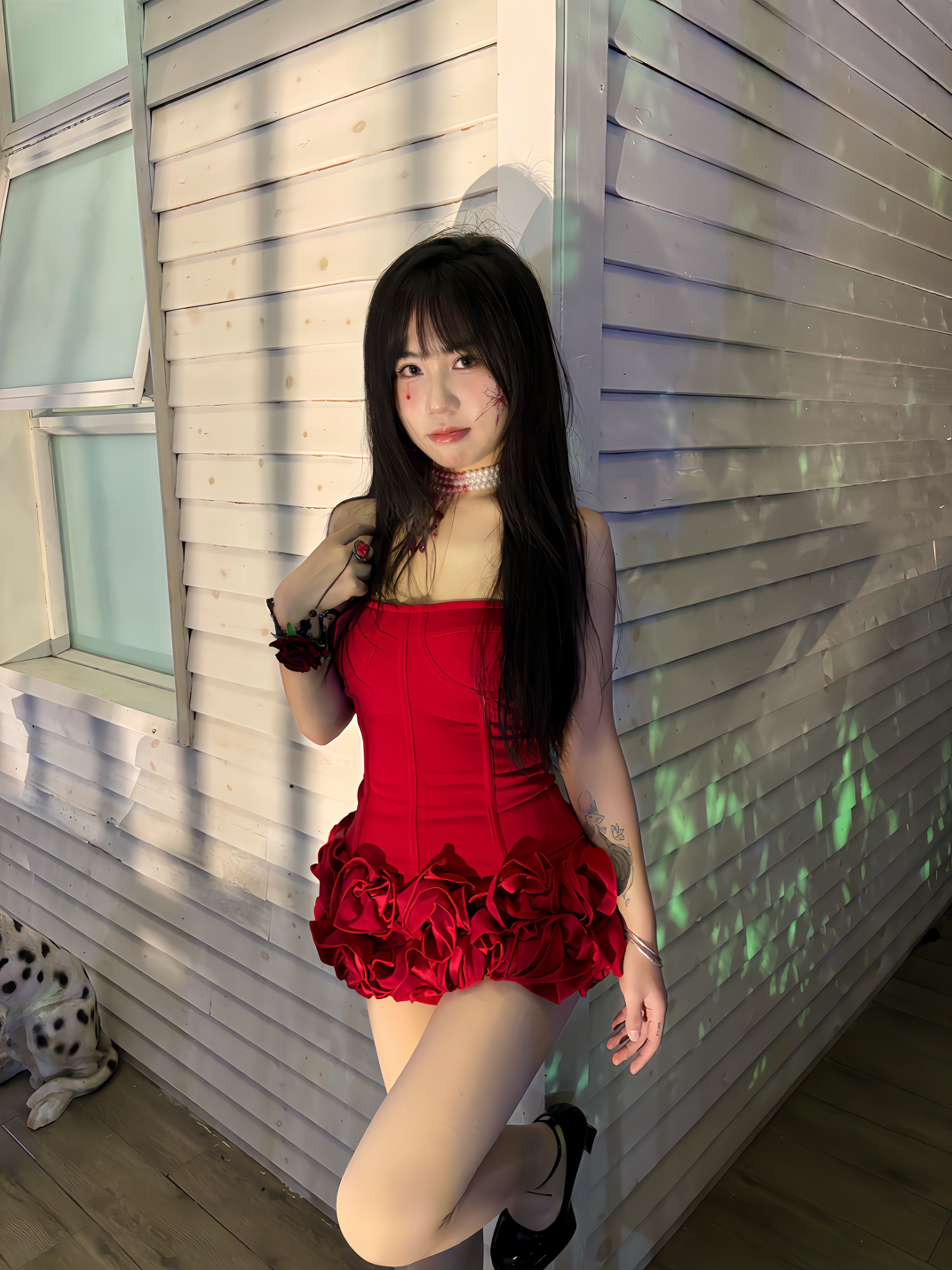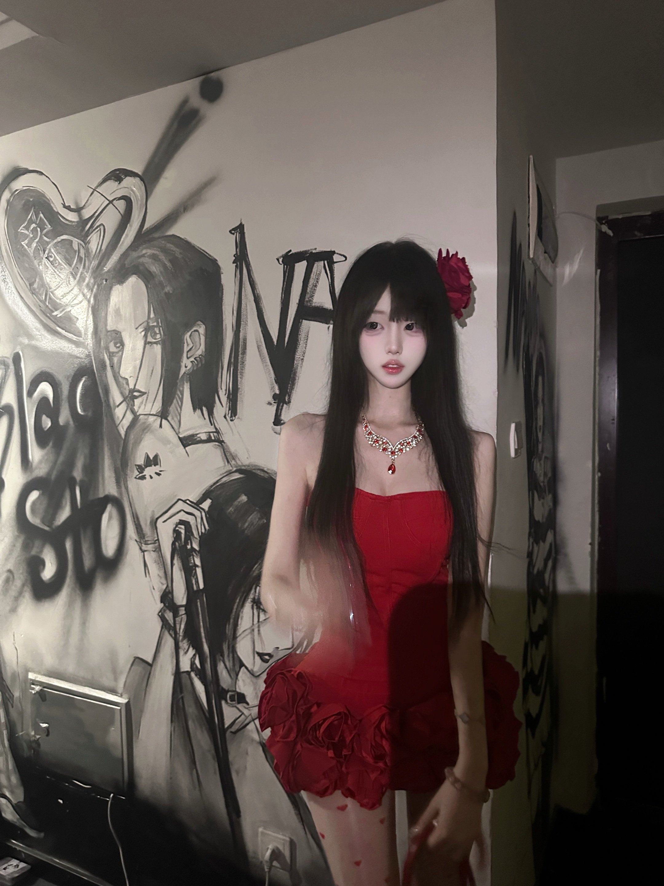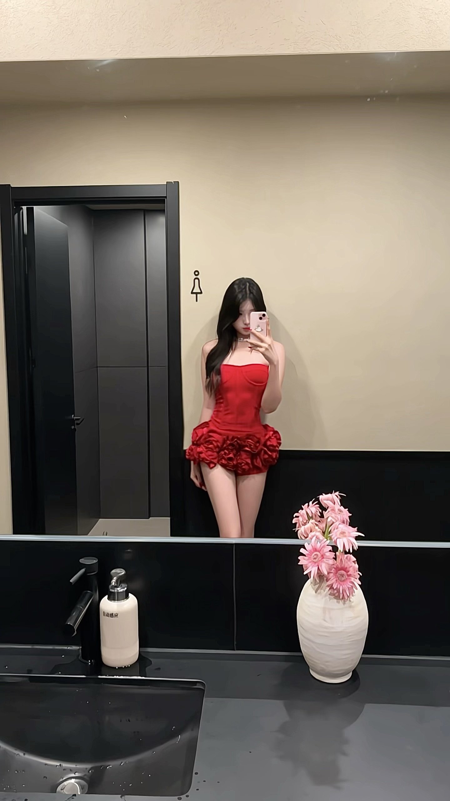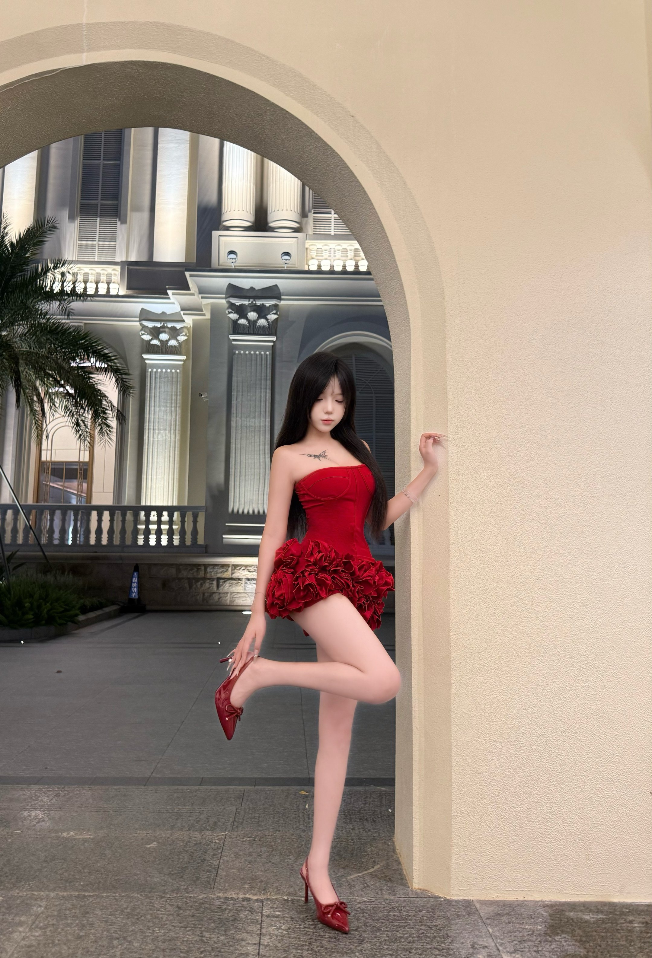 真的无敌好好好看啊啊啊啊啊!抹胸的设计把上半身的魅力完全展现出来,,下半身的存在感就被削弱啦。裙摆的立体花朵设计超级精致,而且是蓬松的款式,把臀部和大腿的肉肉都遮得严严实实,只露出纤细的小腿。红色特别显白,也很有气场,拍照感觉自己就是全场的焦点,梨形身材什么的,完全不存在,自信直接拉满!