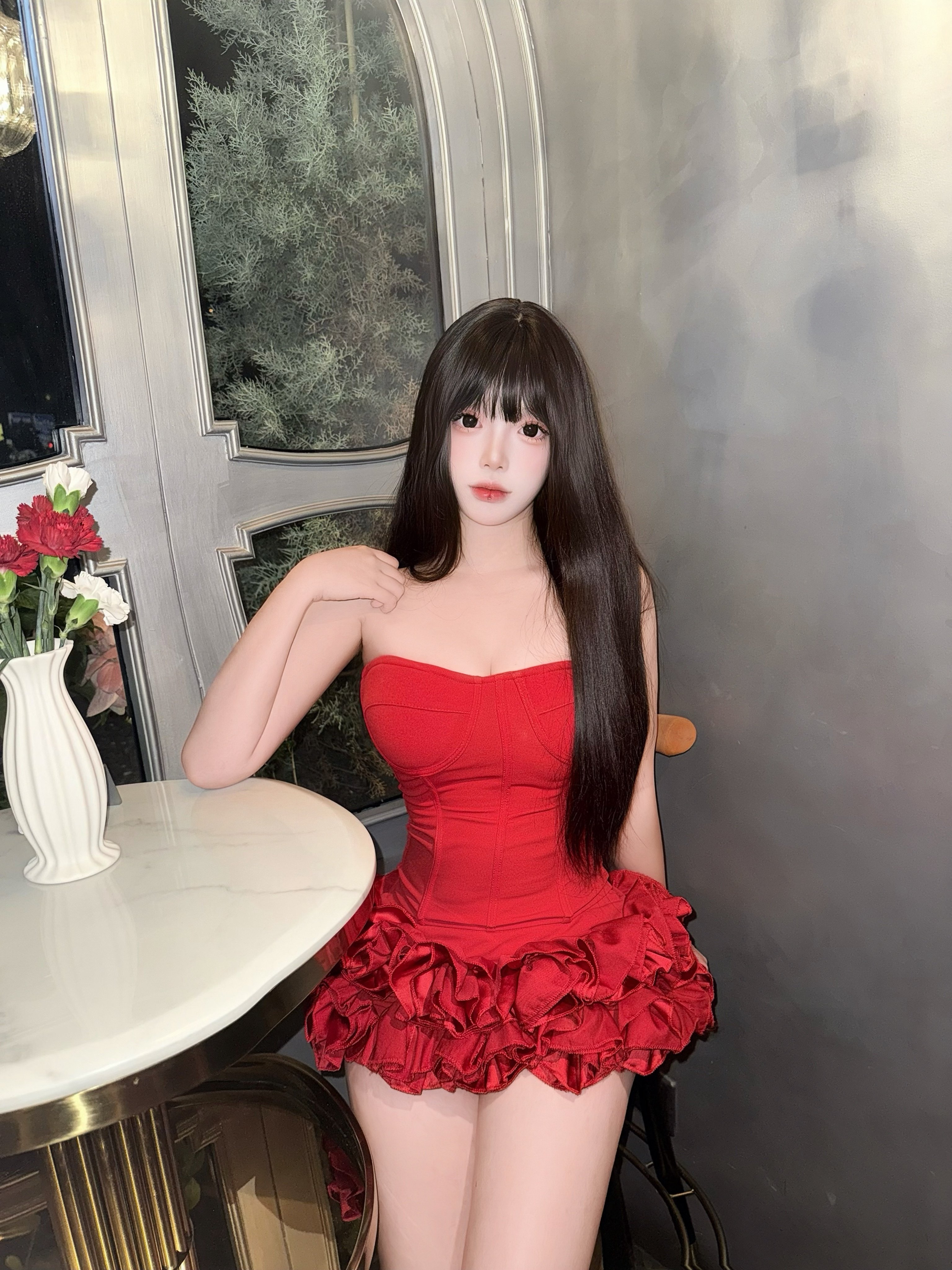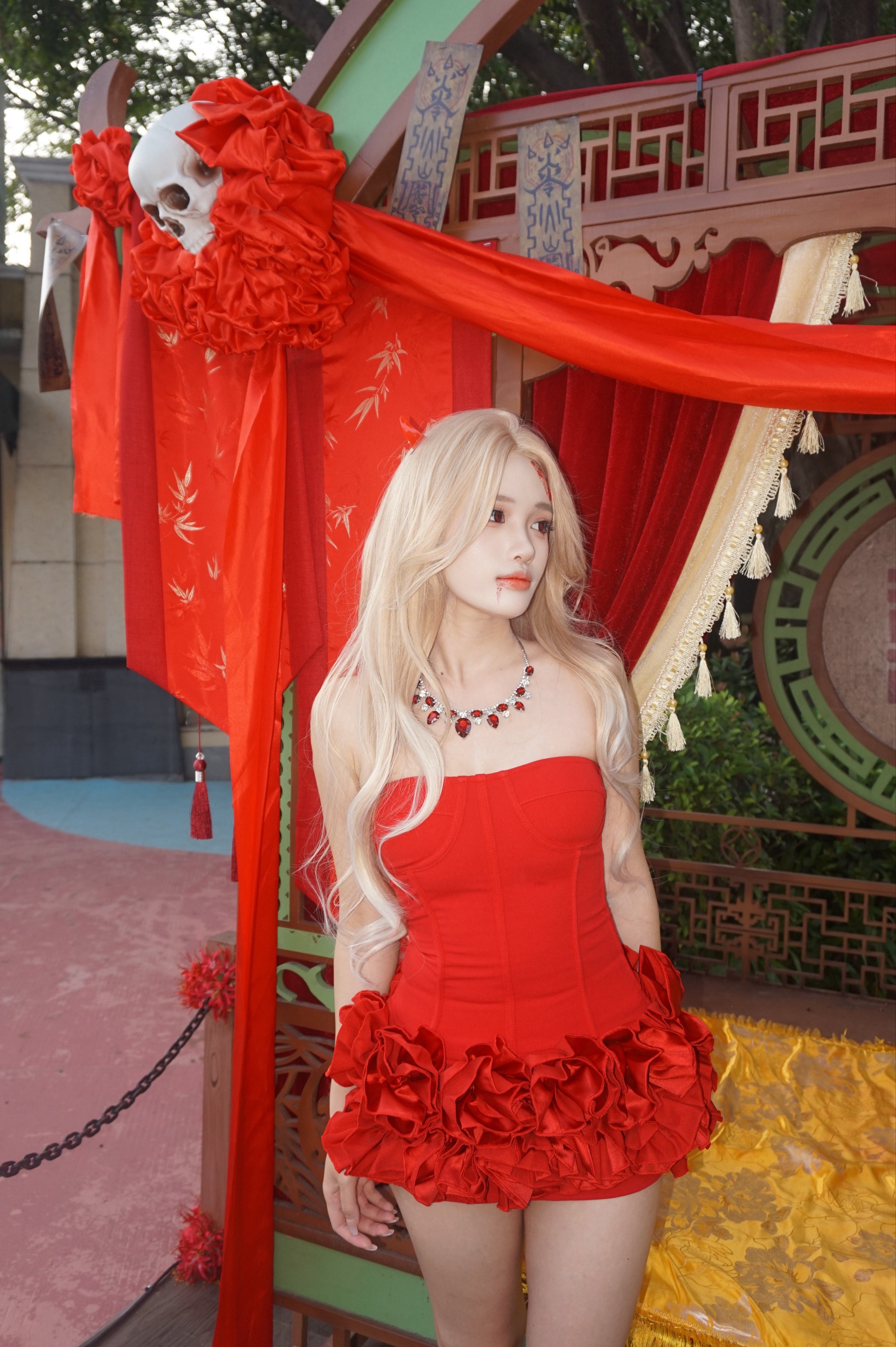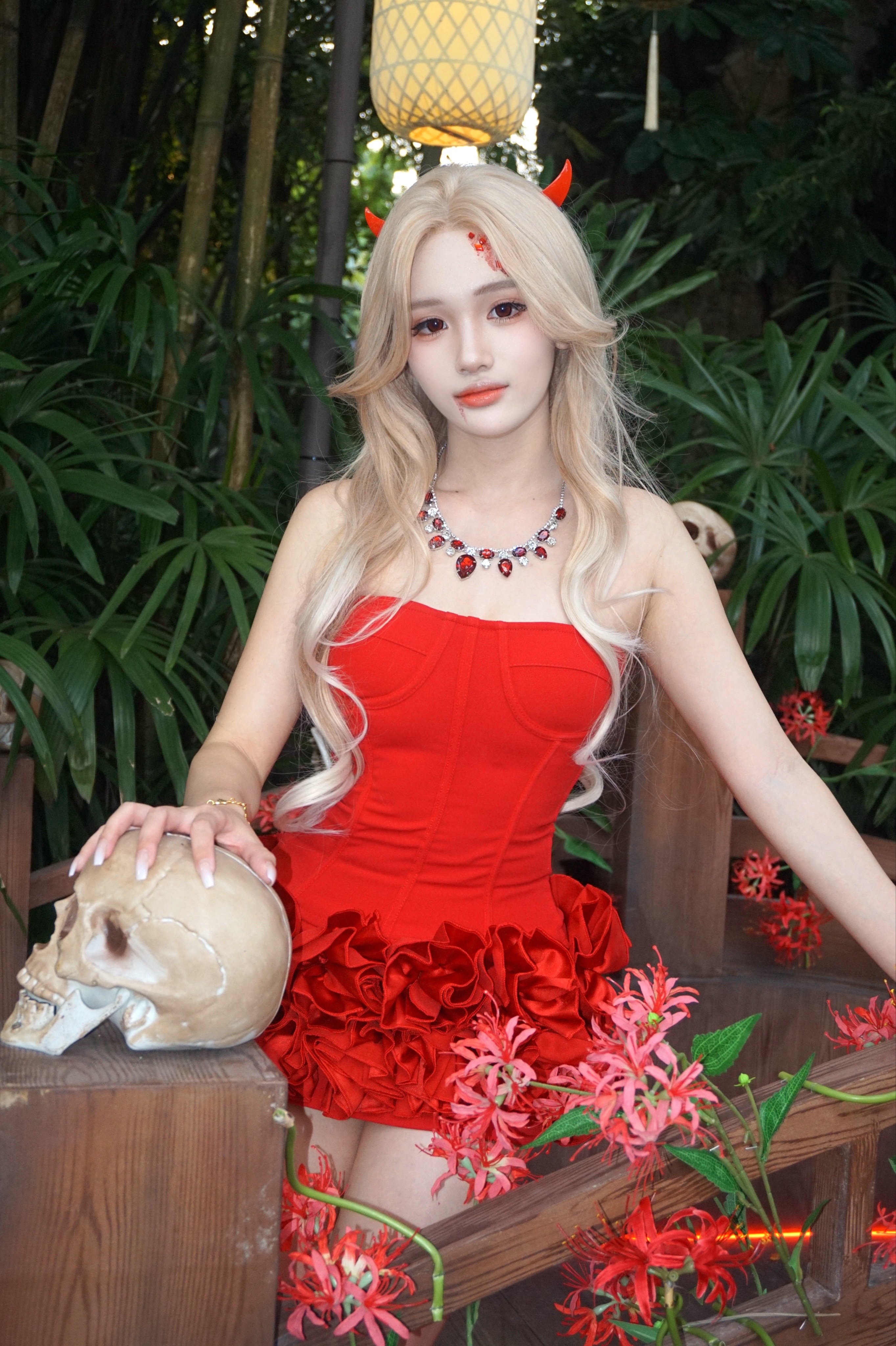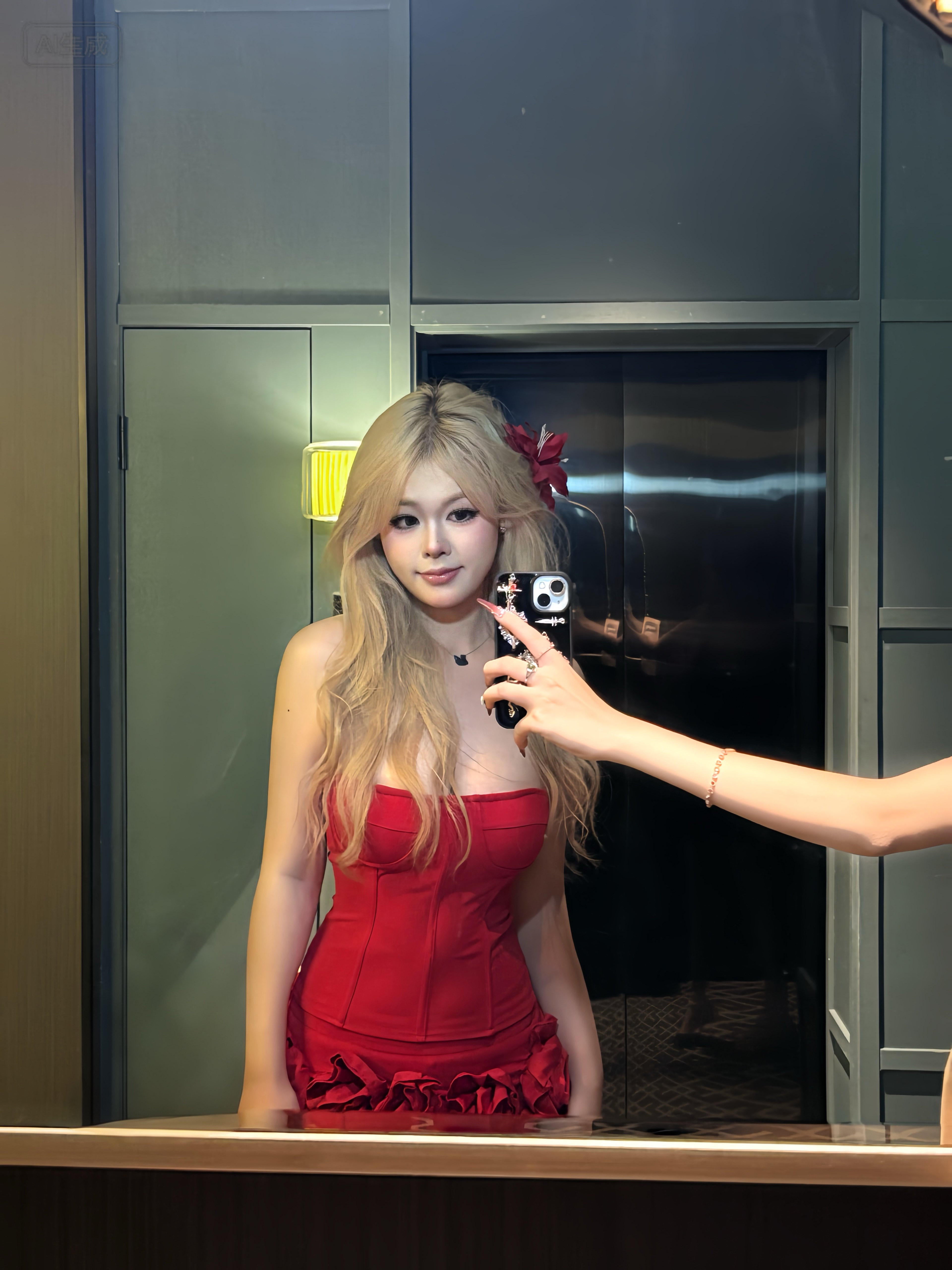 很漂亮哦 这家真的比很多网红店质量都好 很正的红色 花朵是固定好的,抹胸有做鱼骨 穿起来显胸型,小胸穿也不会空杯,生日穿迷鼠人了 美女都该有一件 没失望好好看哟