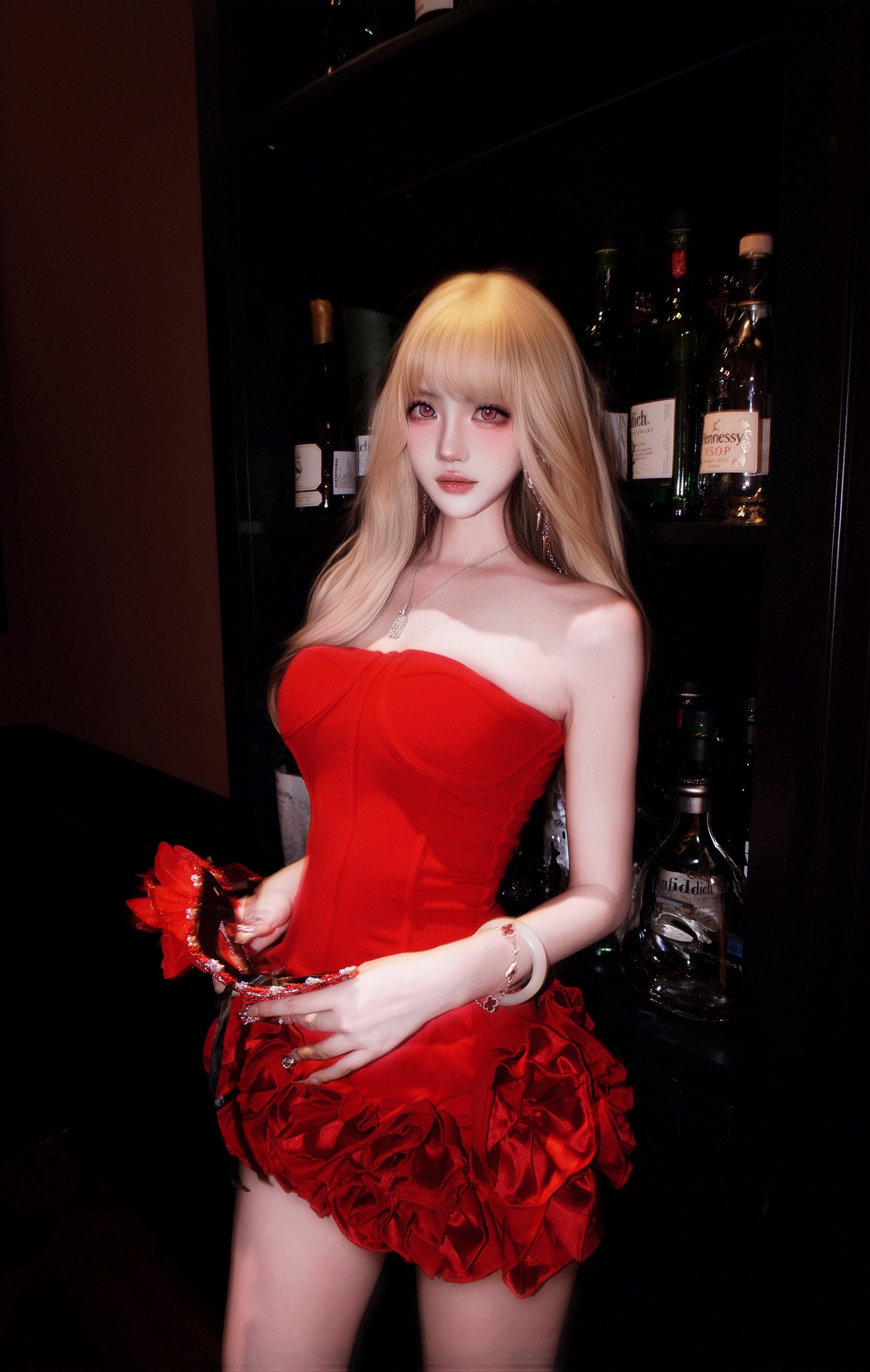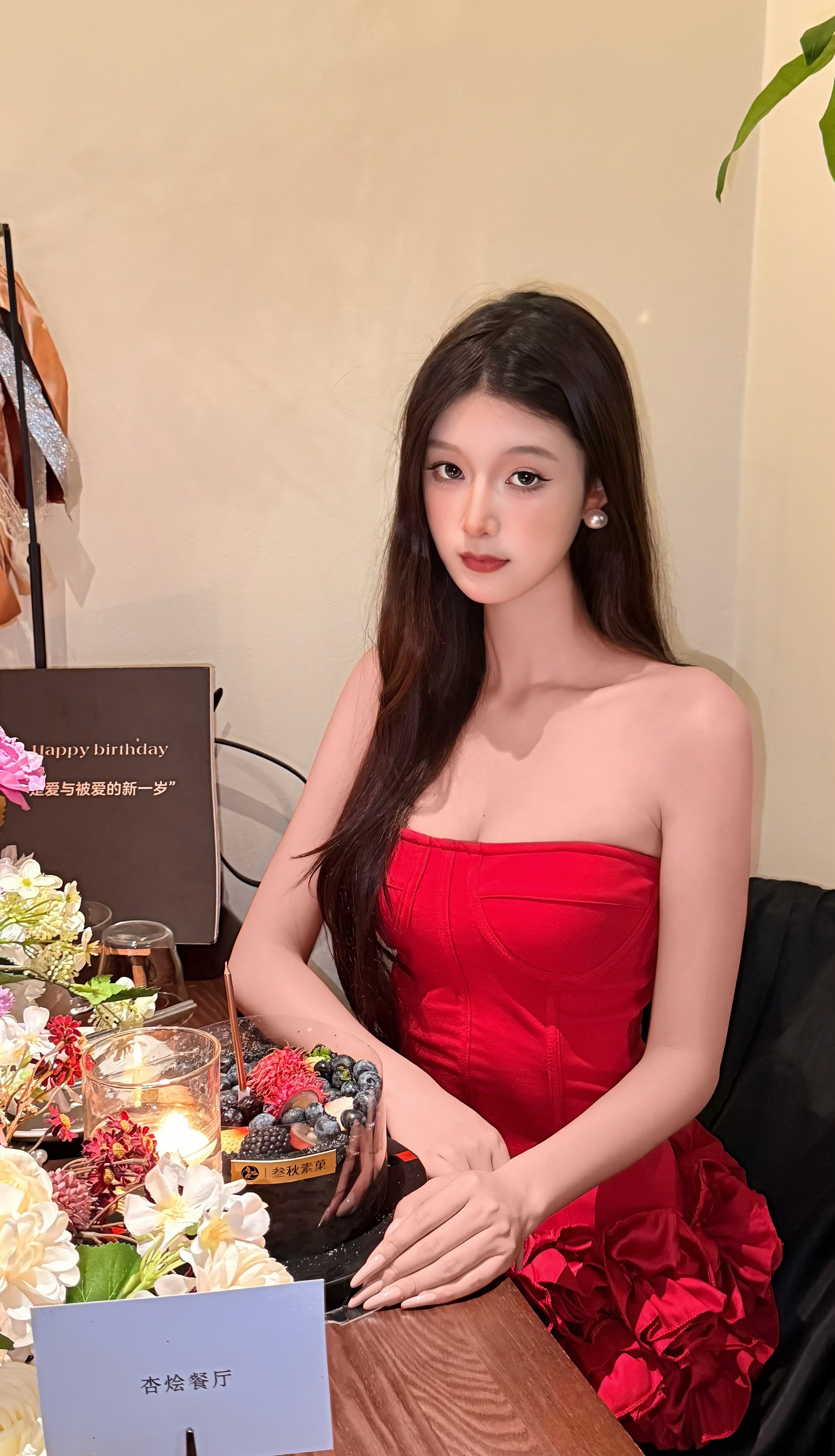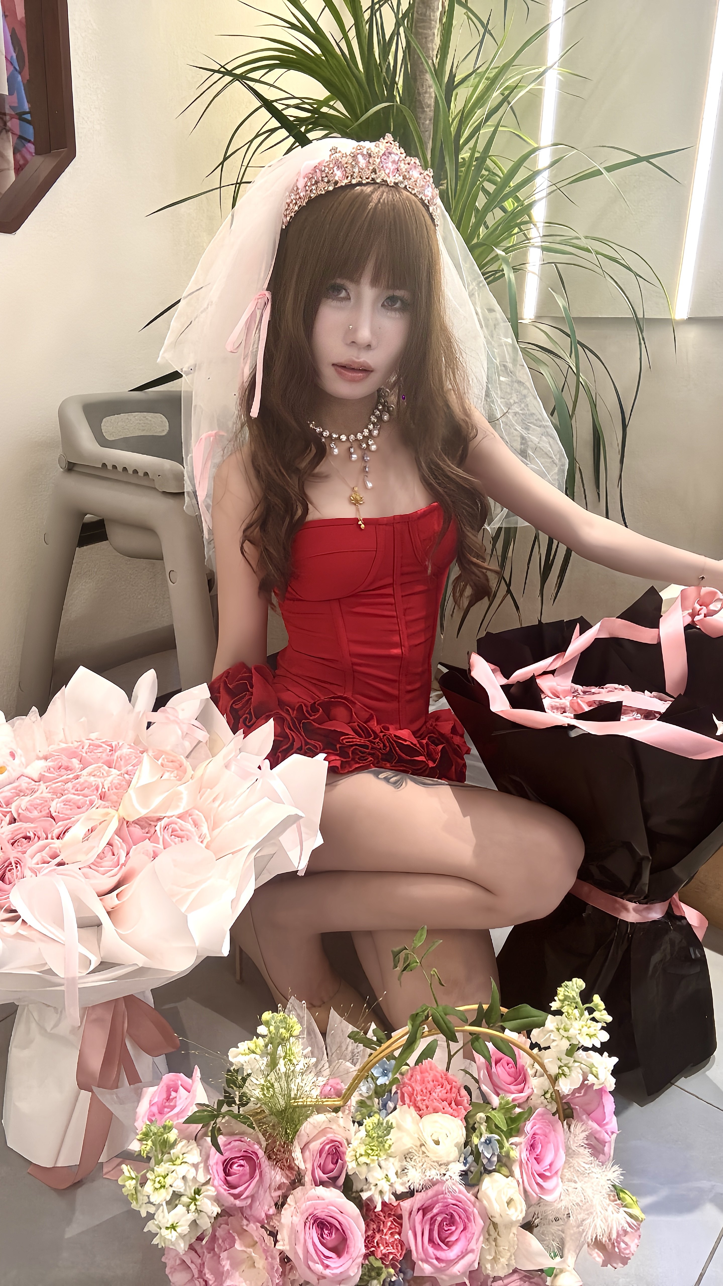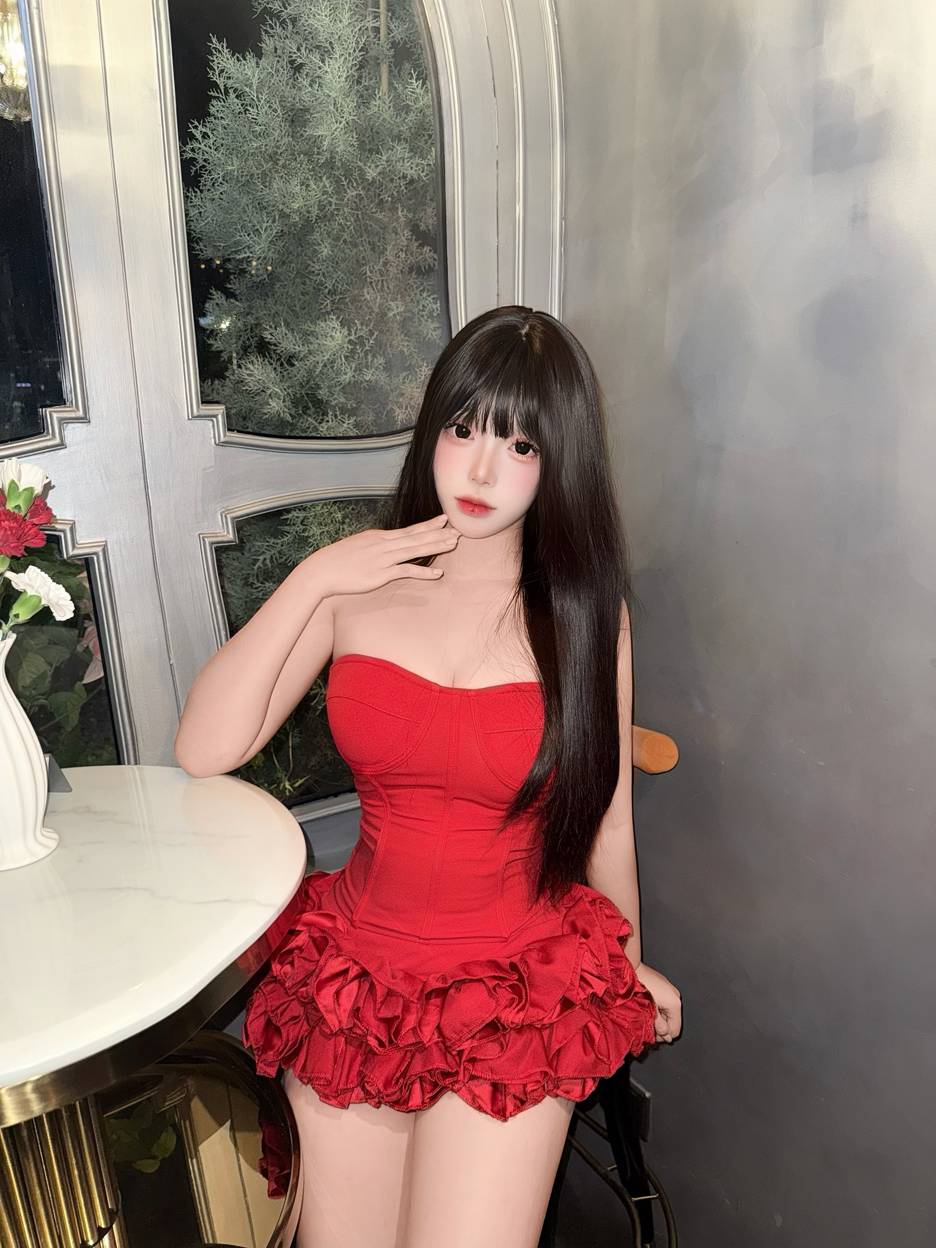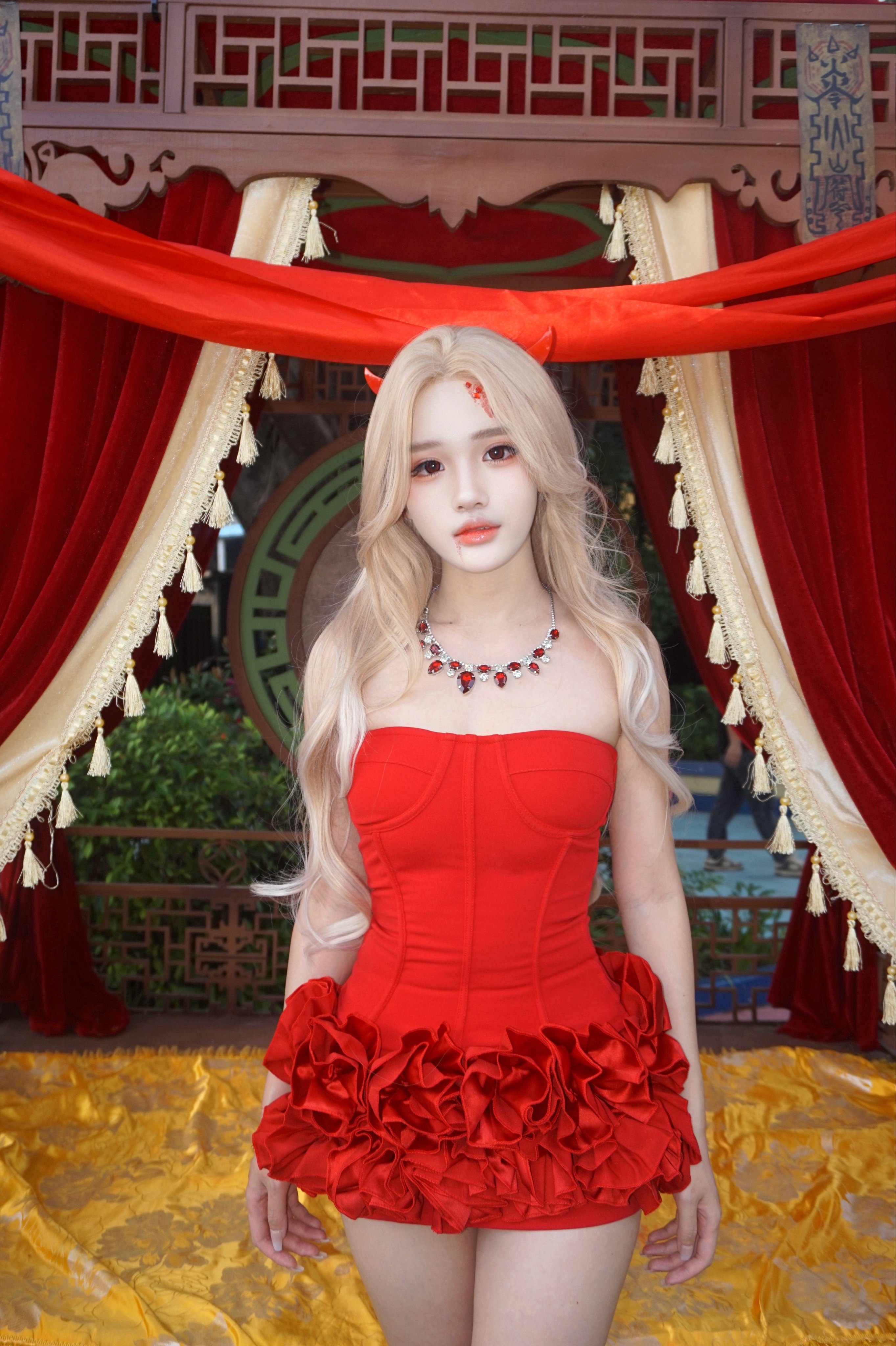 很漂亮哦 这家真的比很多网红店质量都好 很正的红色 花朵是固定好的,抹胸有做鱼骨 穿起来显胸型,小胸穿也不会空杯,生日穿迷鼠人了 美女都该有一件 没失望好好看哟