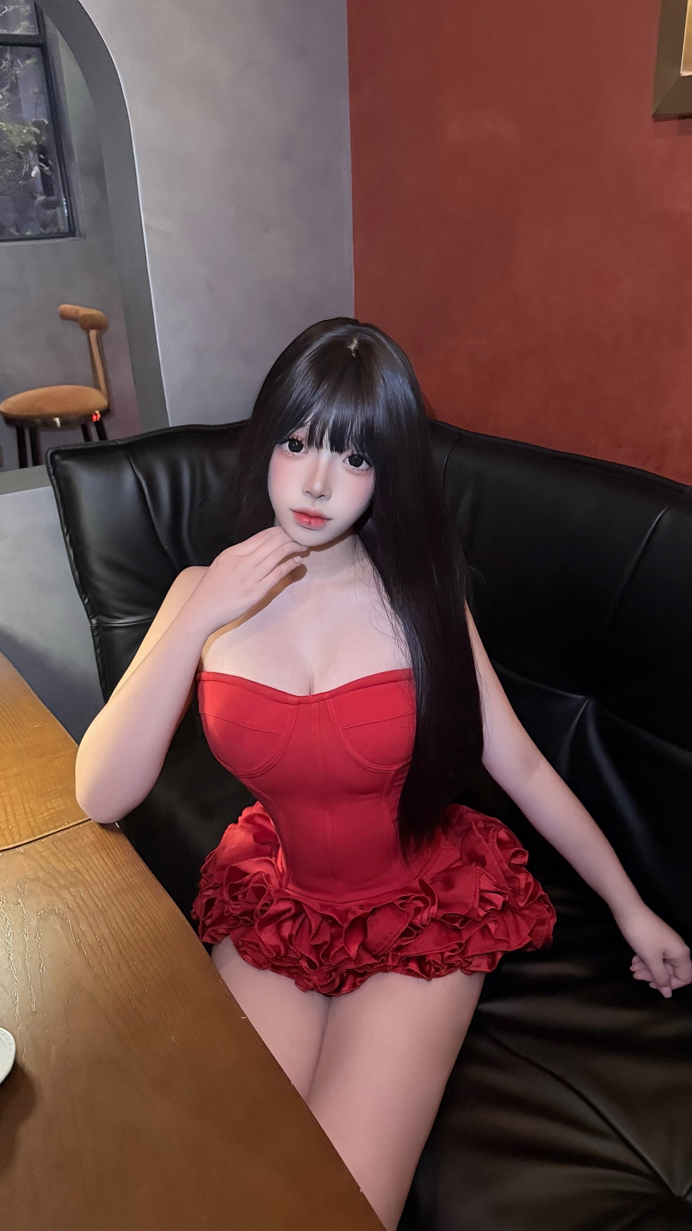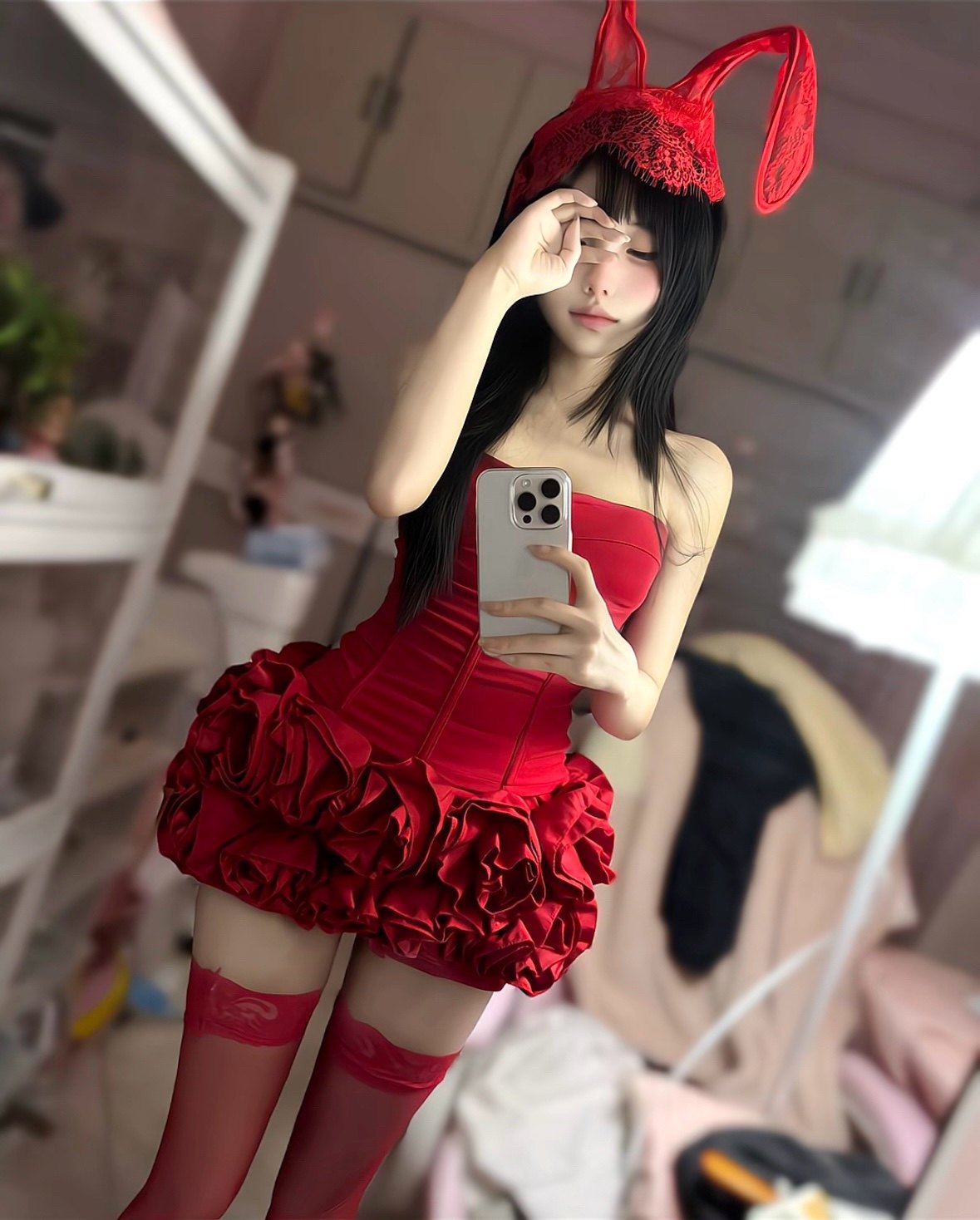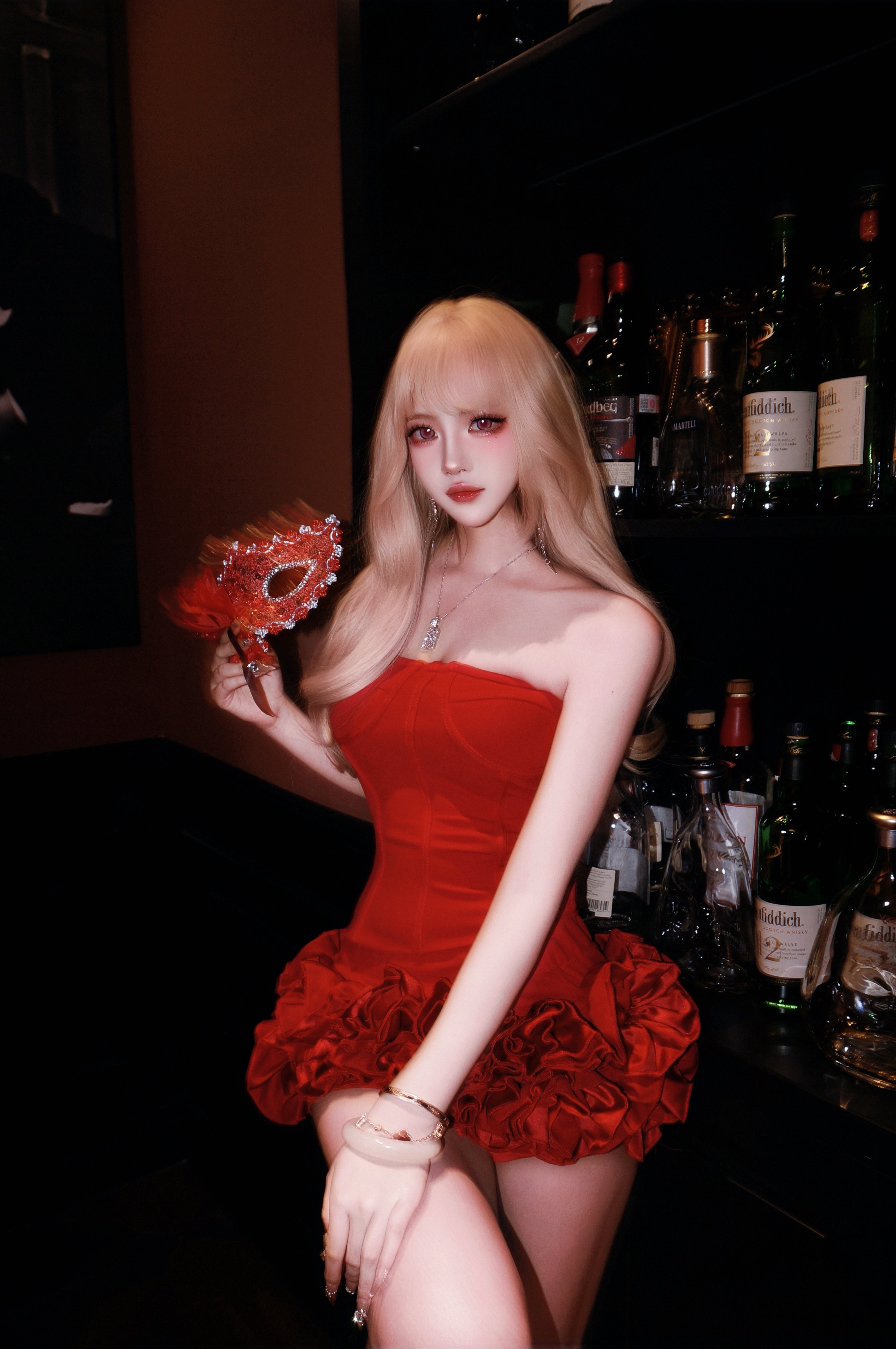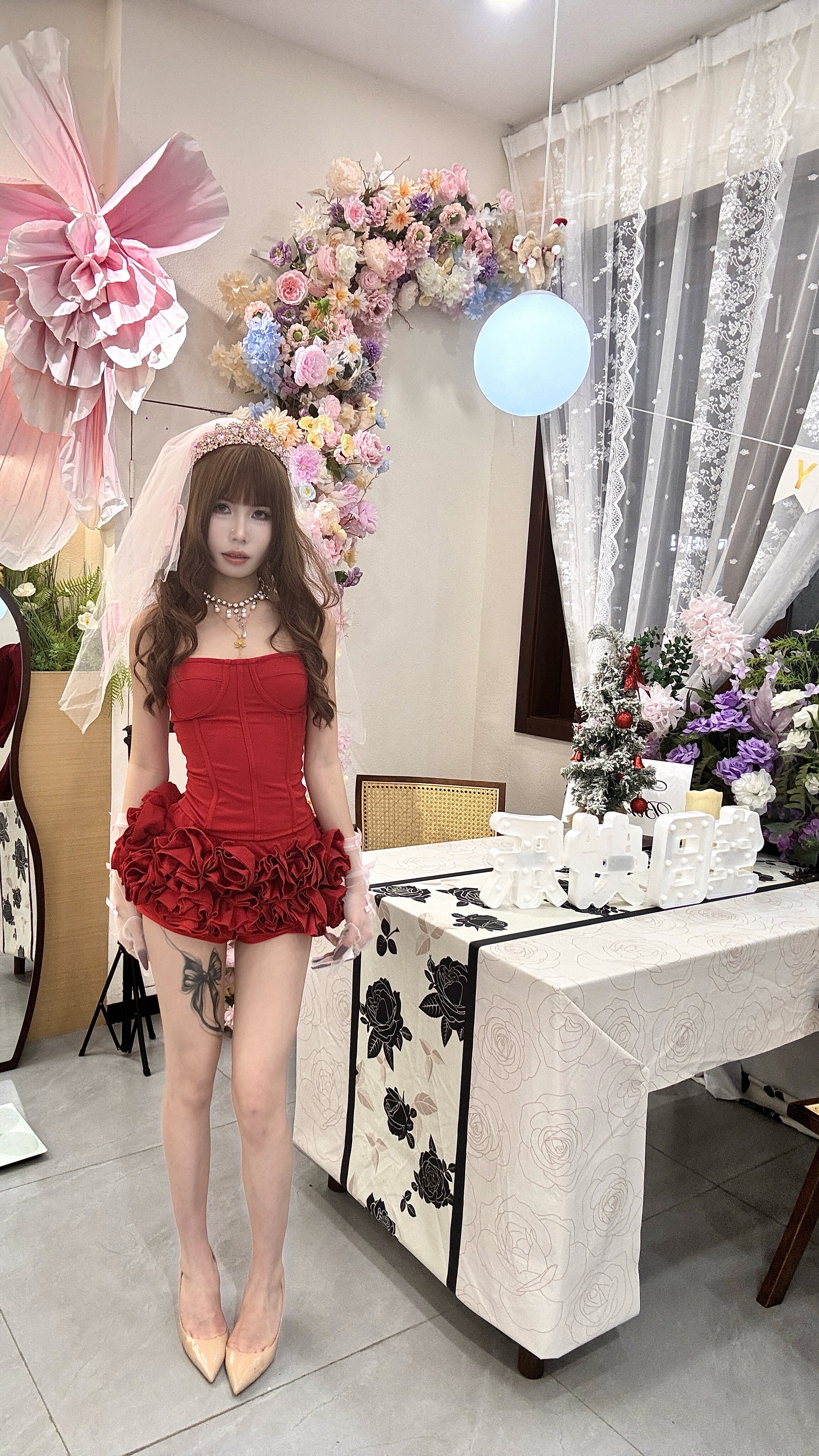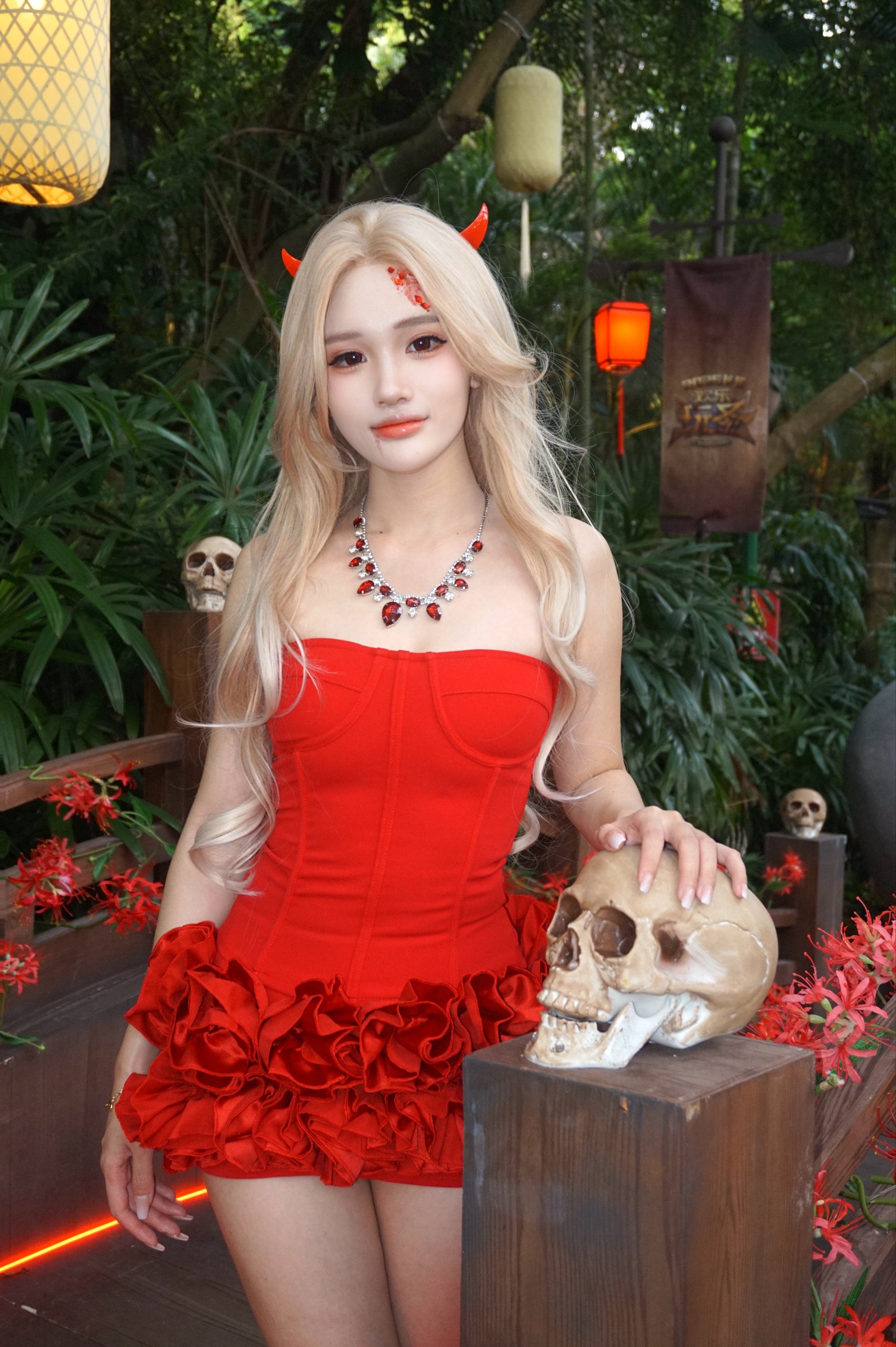 很漂亮哦 这家真的比很多网红店质量都好 很正的红色 花朵是固定好的,抹胸有做鱼骨 穿起来显胸型,小胸穿也不会空杯,生日穿迷鼠人了 美女都该有一件 没失望好好看哟