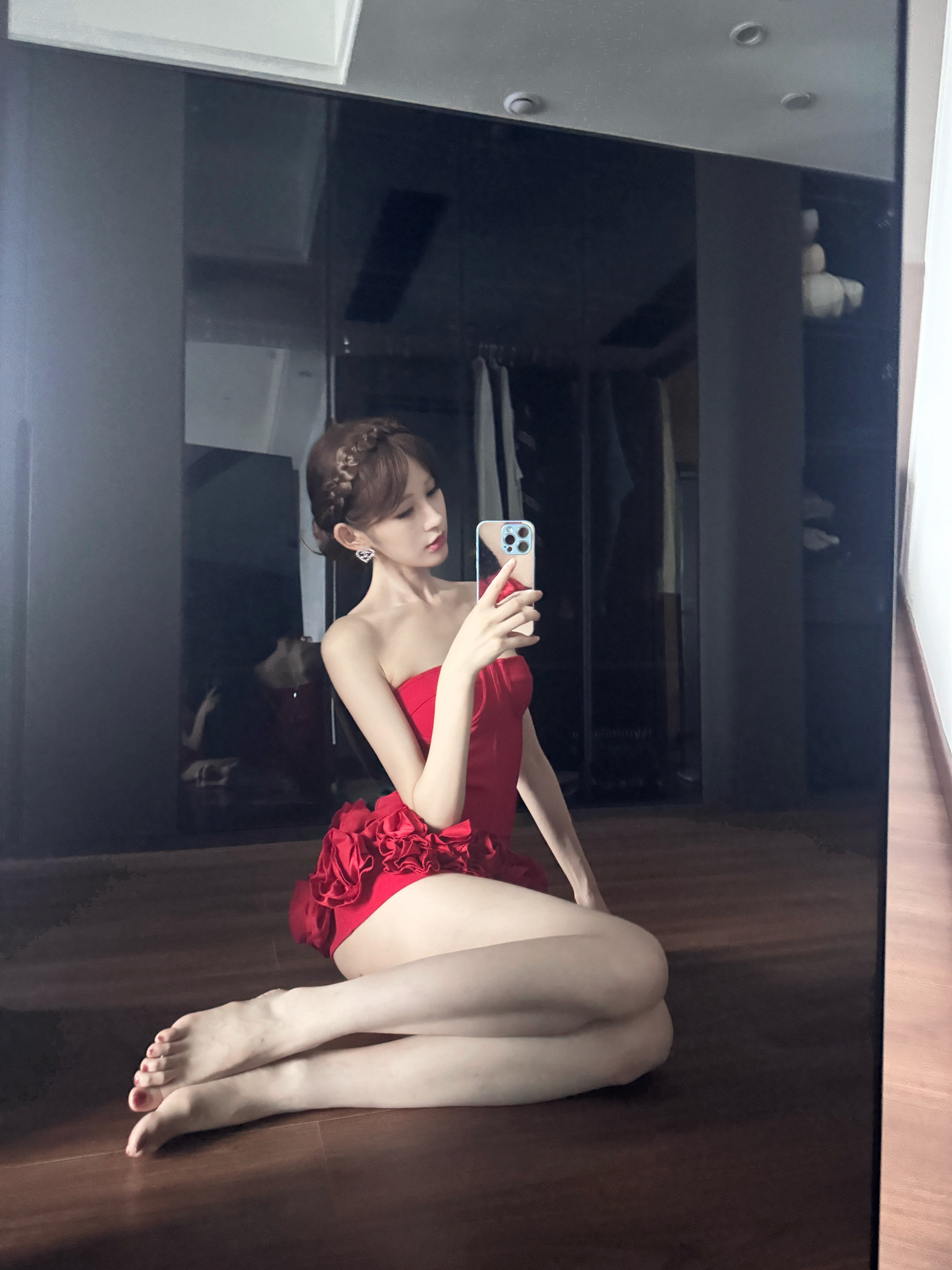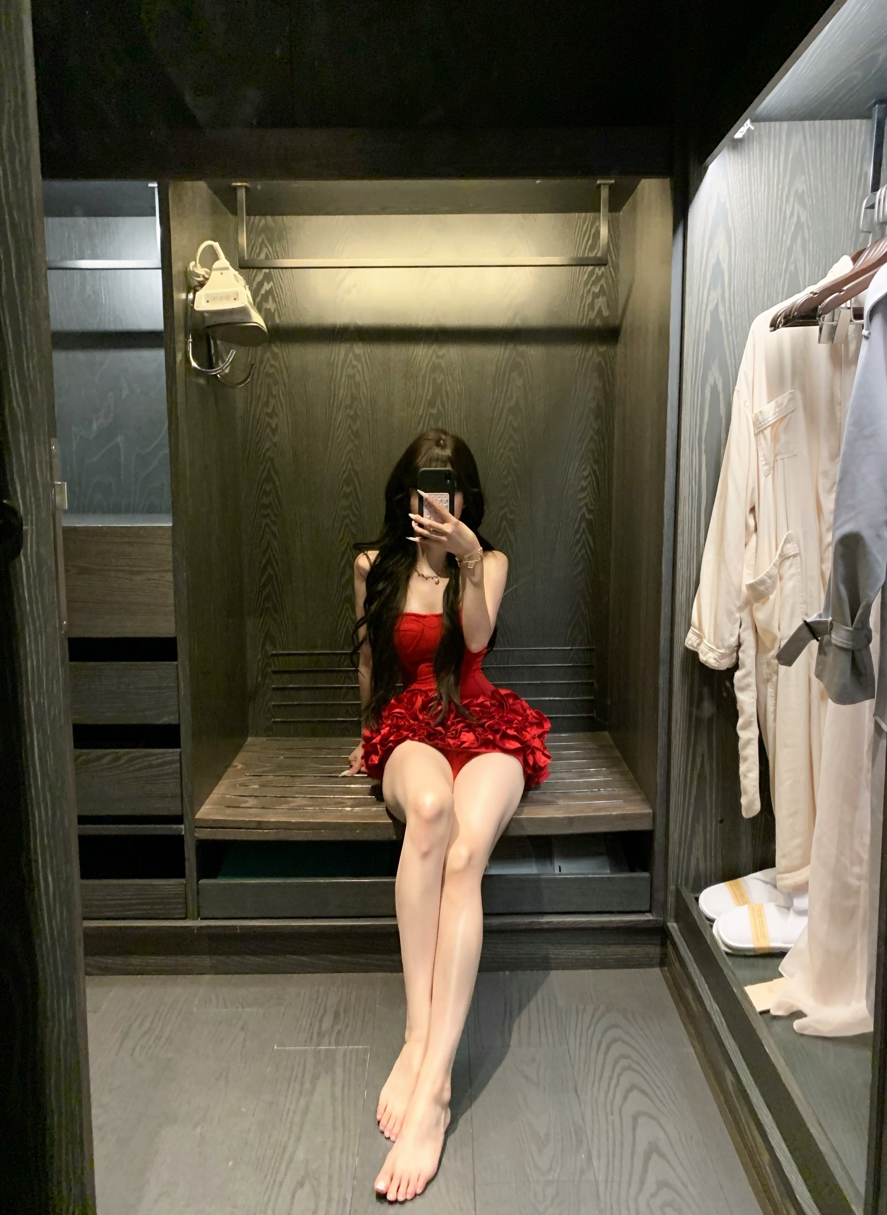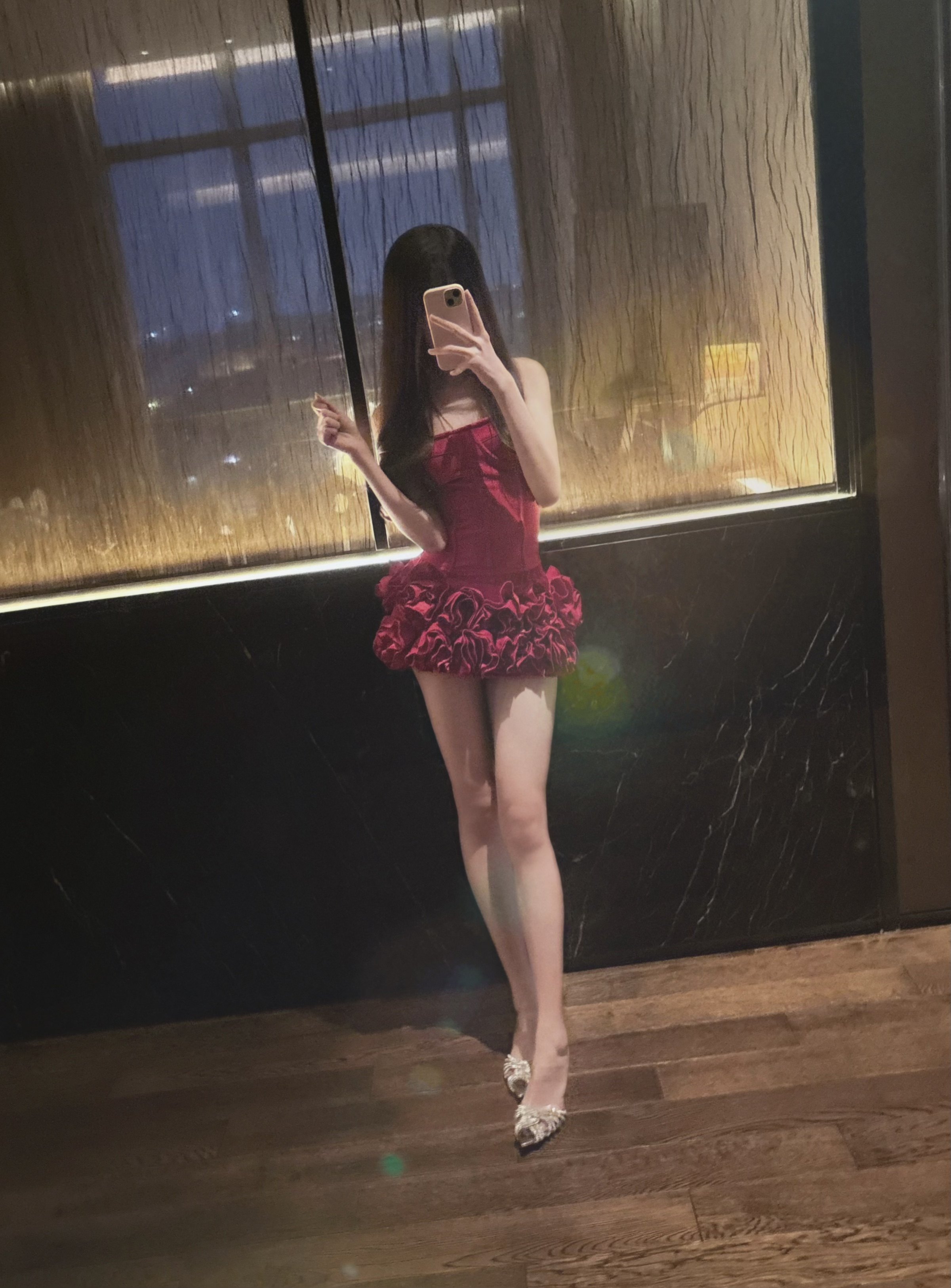 这条红裙子真的好好看,又纯又欲,蛮性感的!红色就很显白!!穿上感觉下一秒就要去参加宴会了~面料很有质感,穿上身还是蛮舒服的。这个裙长不走光还很显腿长。腰间鱼骨设计就很显腰身!裙摆的花朵真的很立体,上身真的很有红玫瑰的感觉呀,超美!