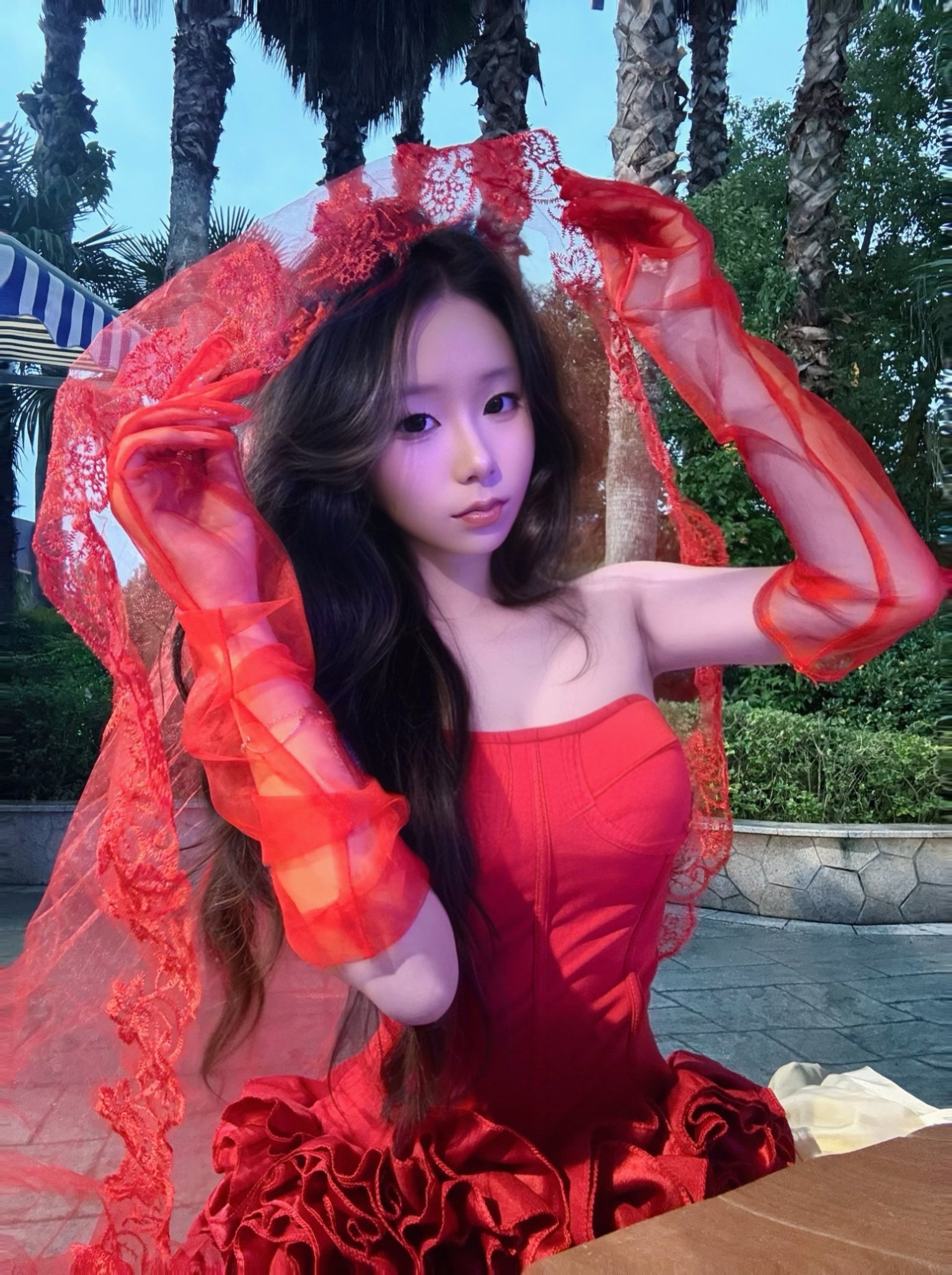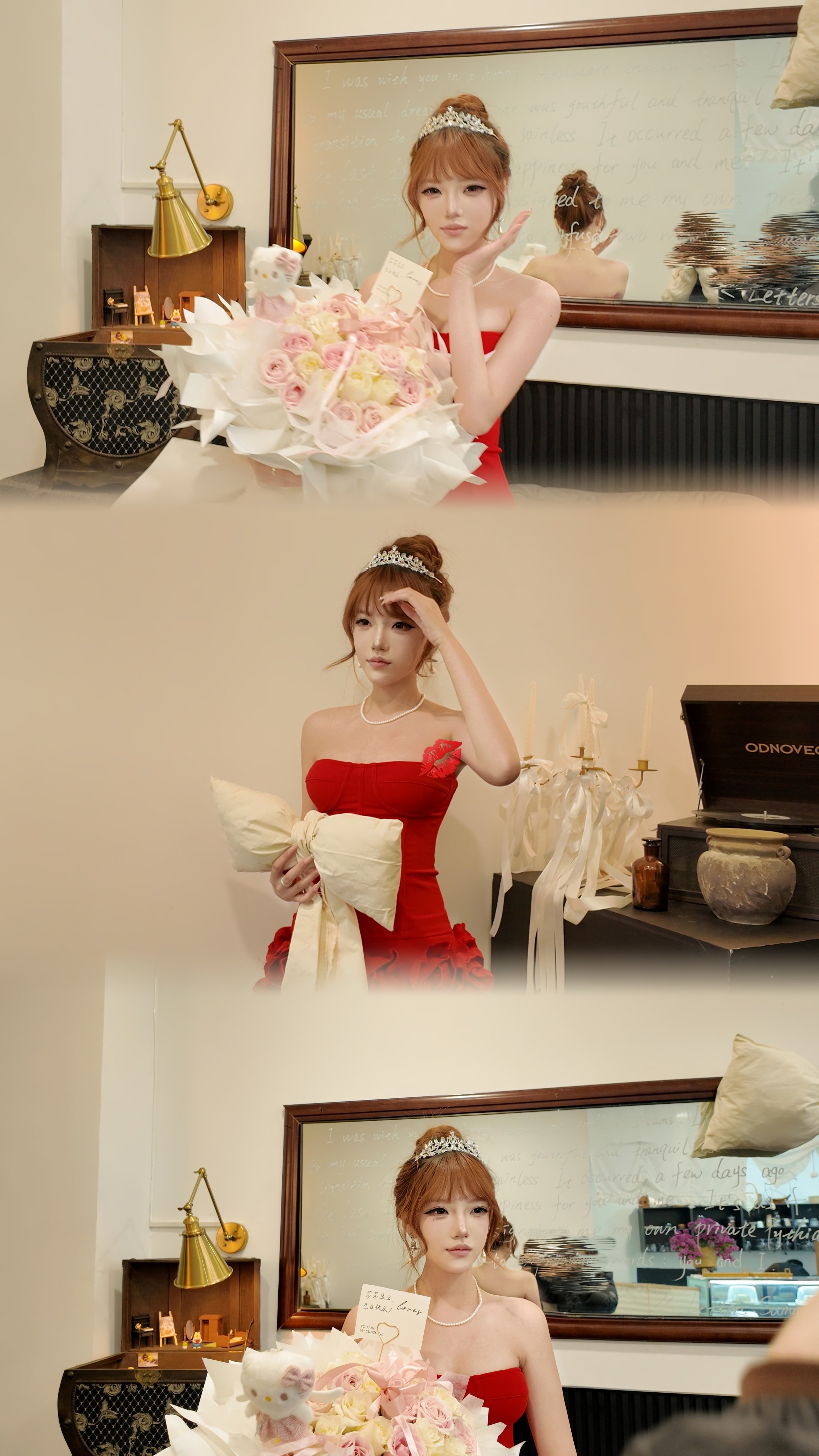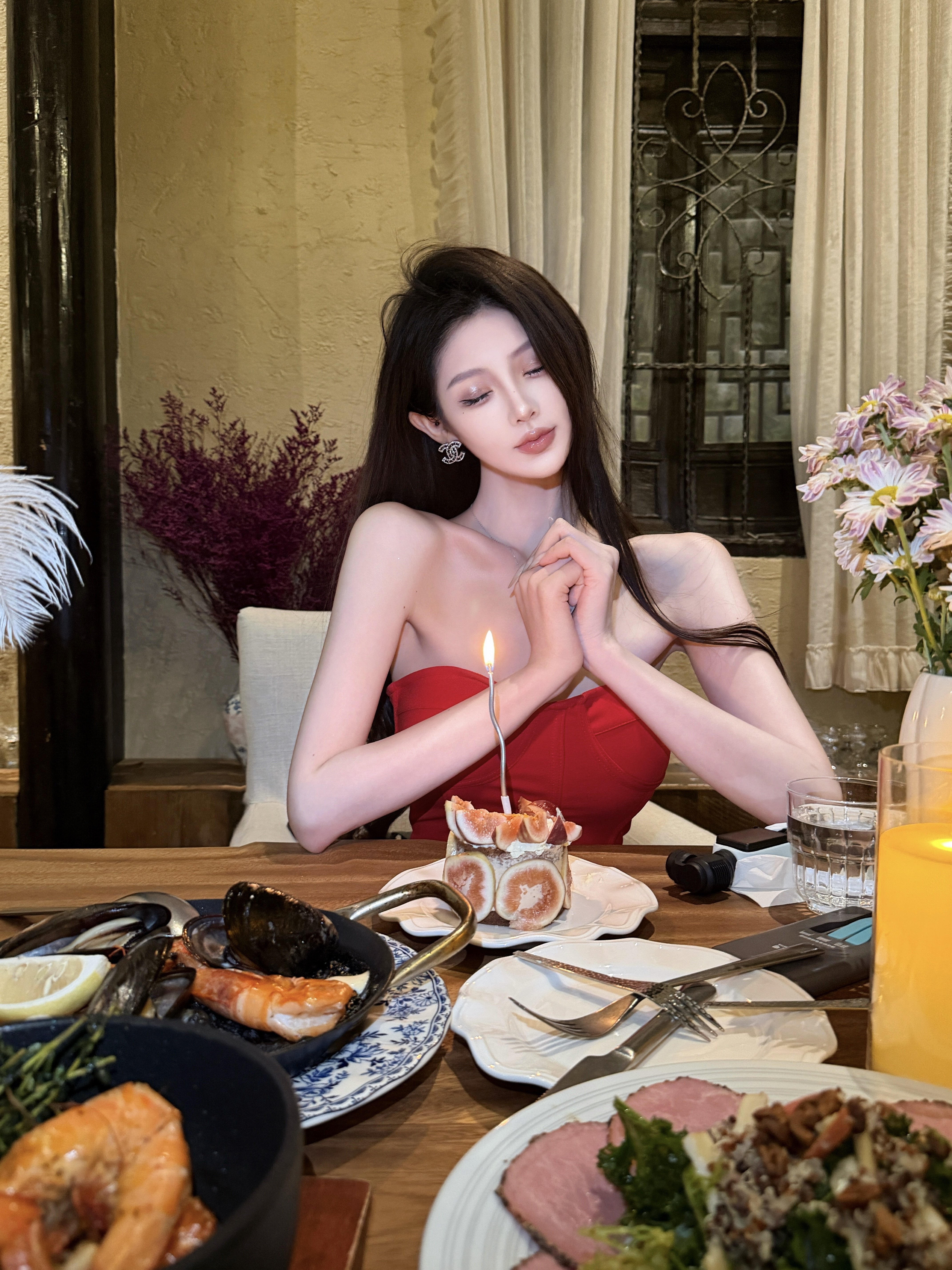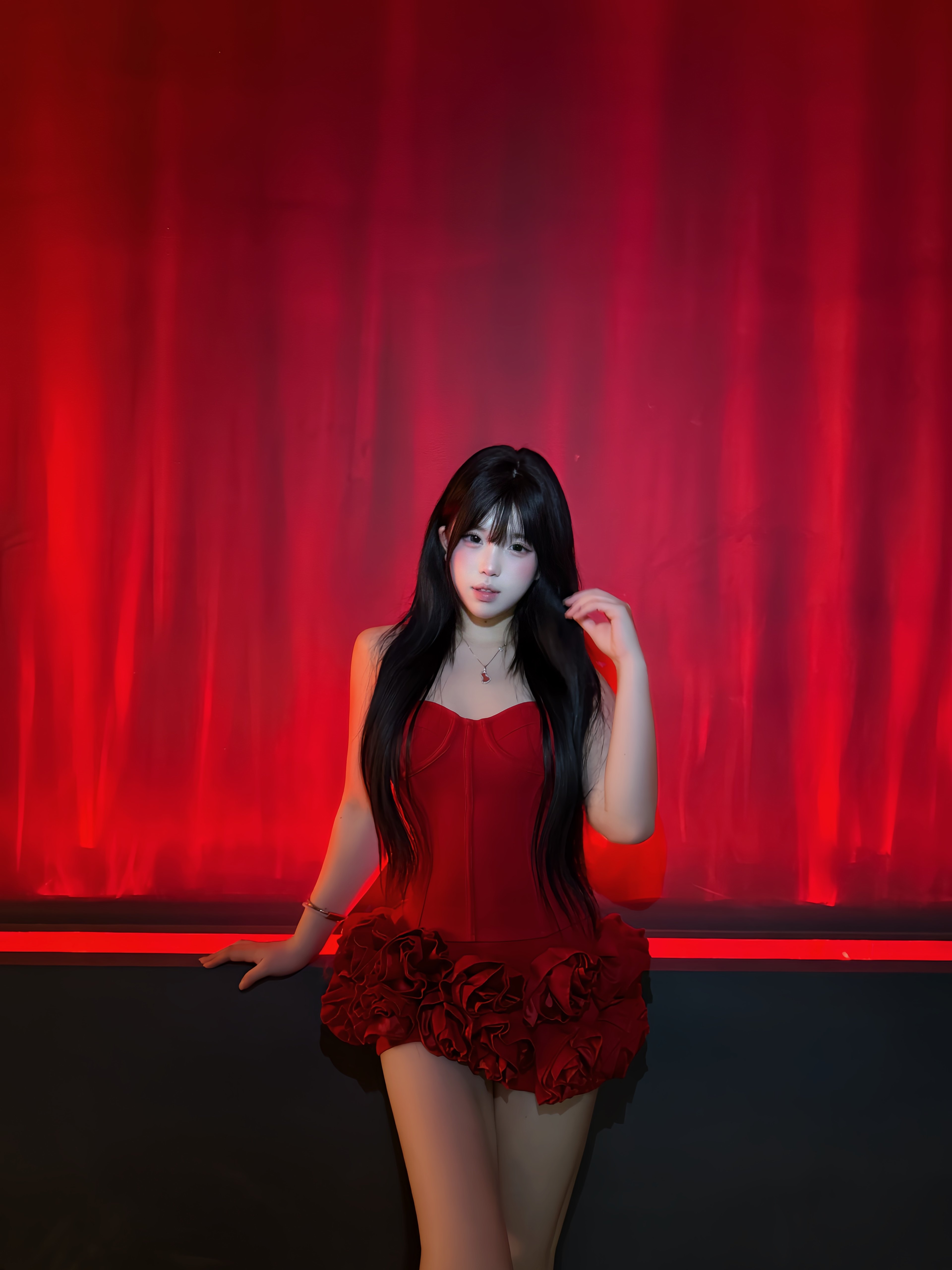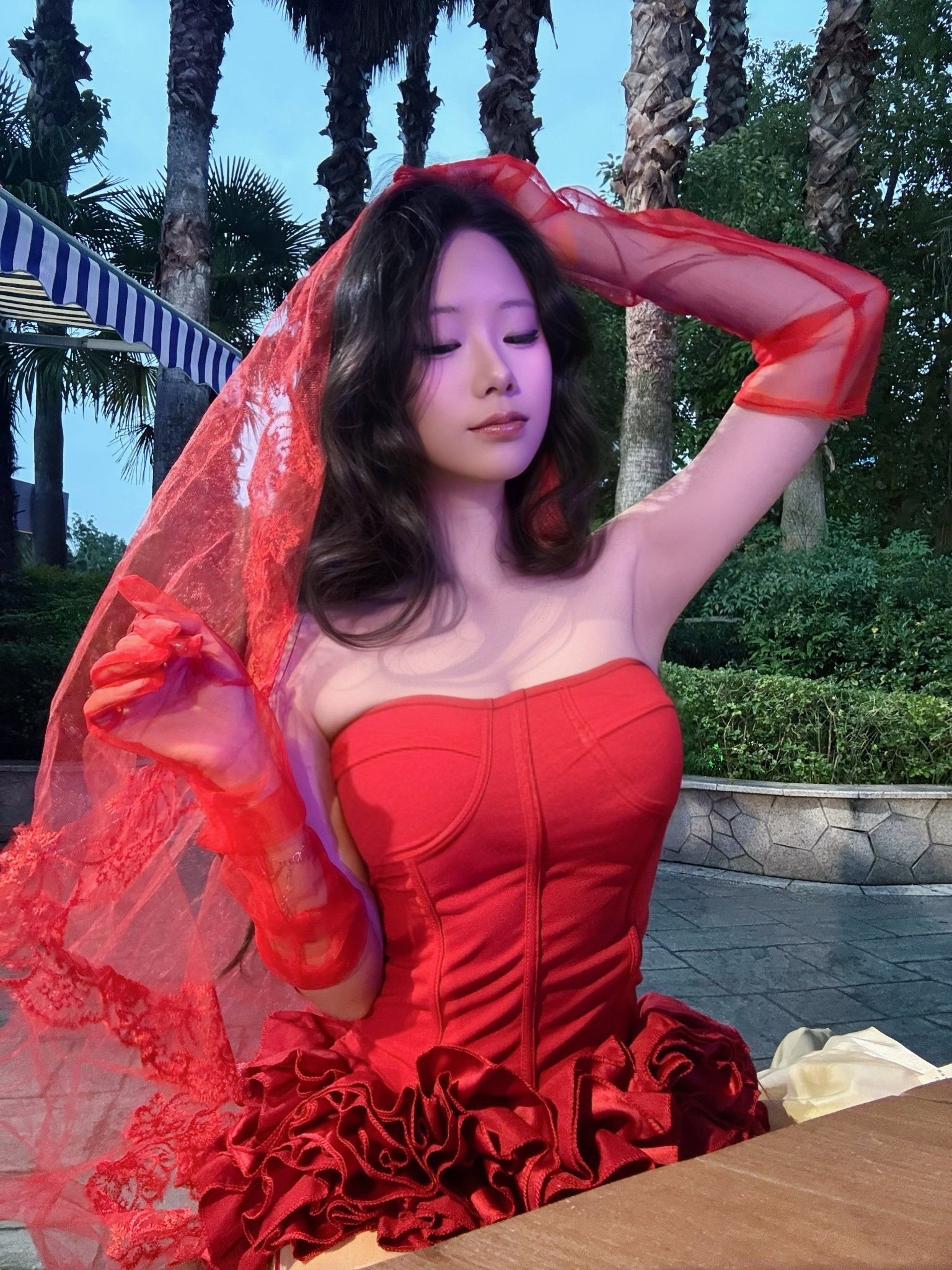 我的梦中情裙!!又纯又欲!实物颜色是很正的红色,上身直接白了一个度,整个人气色都好好,原本还担心驾驭不住这么明艳的颜色,结果穿上很意外。是个两件套来的,抹胸上衣设计把身材线条勾勒得超好看,不会往下滑的,安全感满满~腰间是有做鱼骨支撑的,显的腰特别细~裙摆的立体花朵超大,拍照很有氛围特别出片,面料也很好,摸起来柔软又有筋骨,贴身穿挺舒服的。生日聚会这套裙子都能完美hold住场面,很难不爱啊~