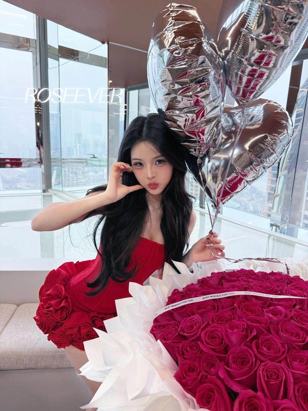 比在另一家发货速度快很多,已经穿上了这家的但另一家都还没发出货,而且这家价格质量都不错,整体面料材质都比较柔软,做工很高级!!裙摆还蛮有设计感的,红玫瑰真的好美阿,穿着显得腿很细身材很好~约会穿的 男朋友都说好看哈哈!!