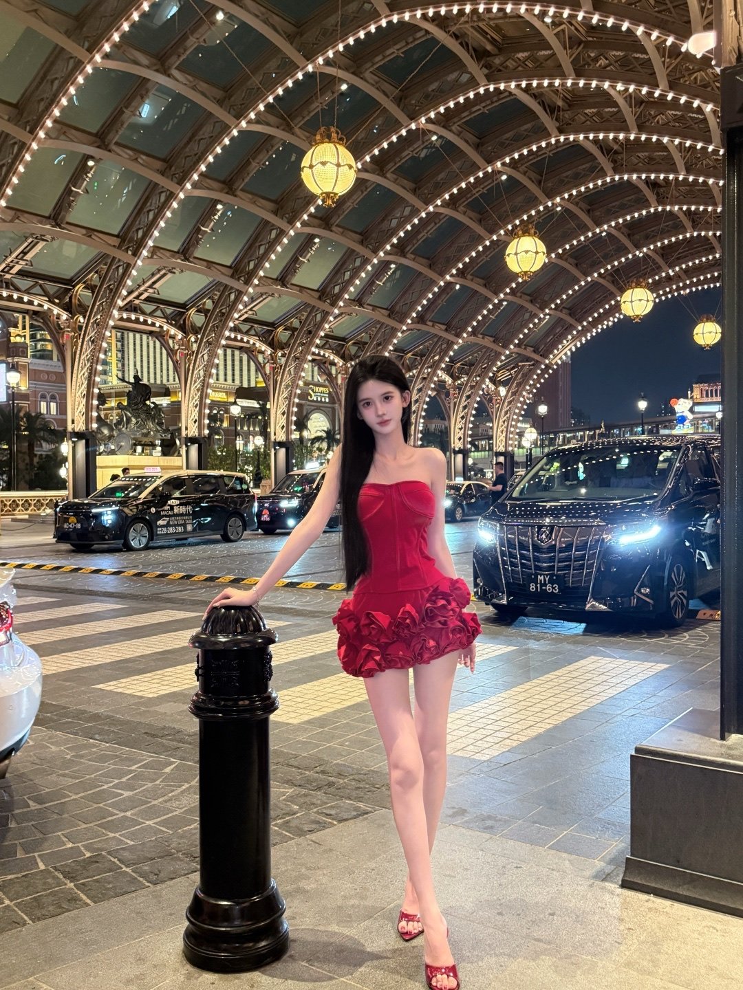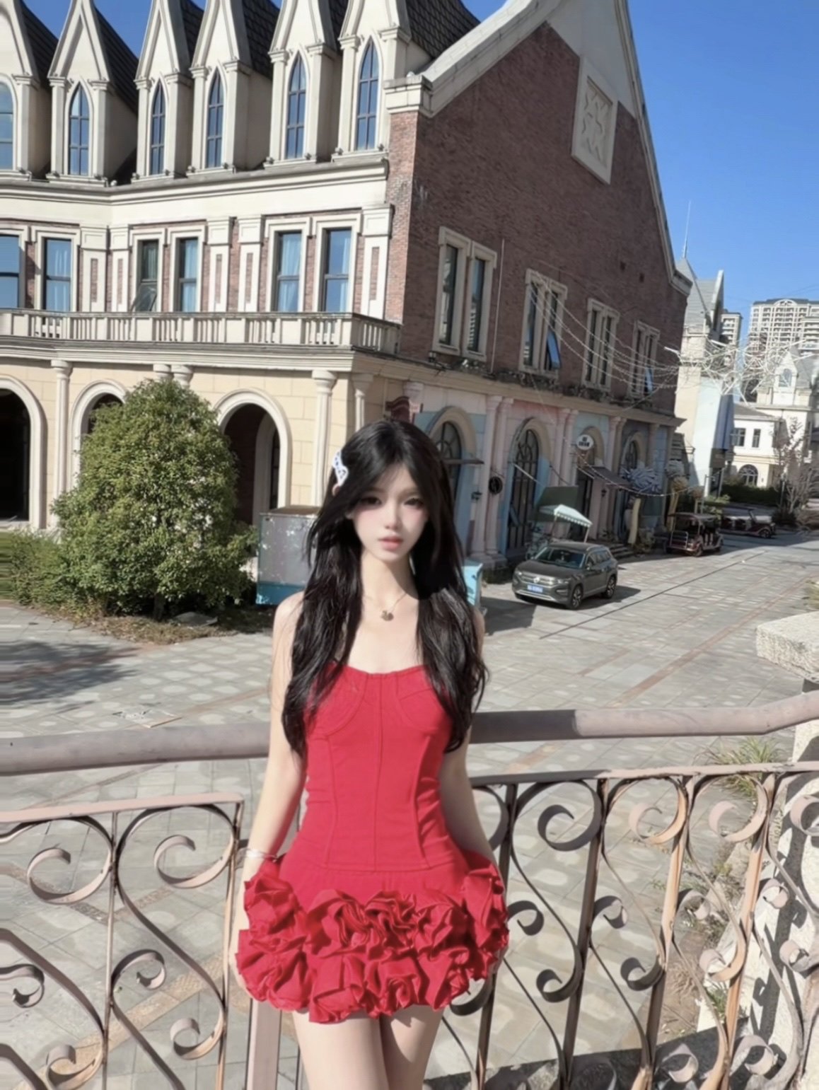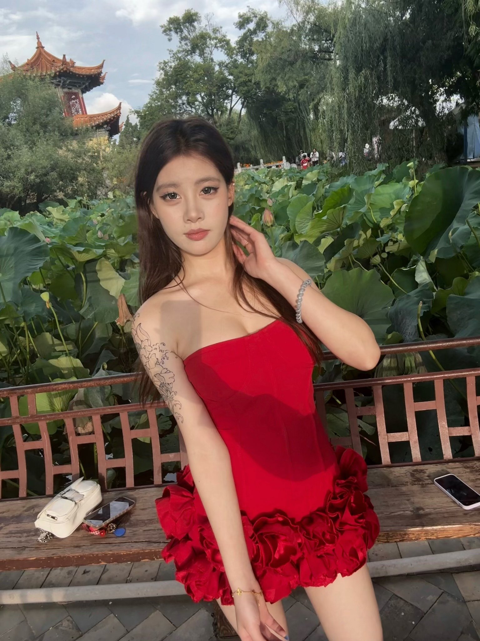 抹胸设计露出肩颈,侧边绑带增添性感,裙摆立体花朵装饰,精致又独特。对比普通红裙,它的花朵设计超吸睛,面料挺括有型,穿上秒变名媛。拍照时红裙 ,气场直接拉满,谁穿谁惊艳~
