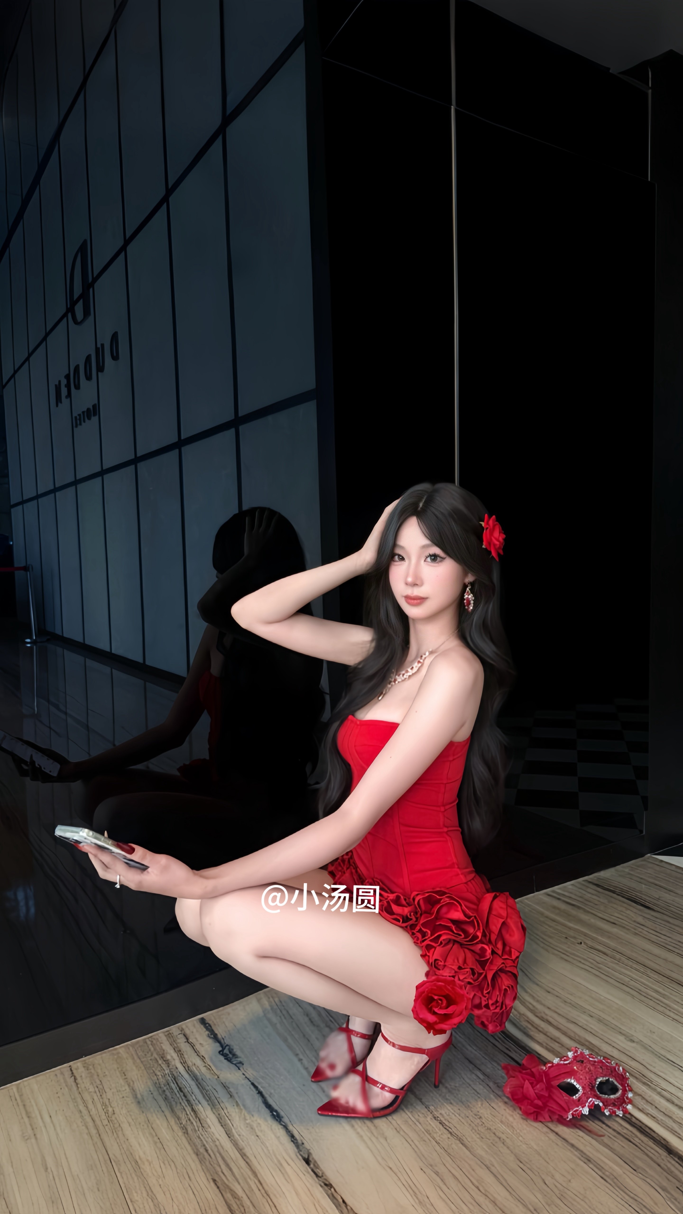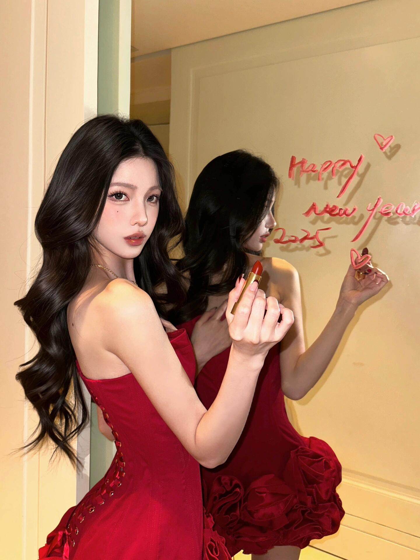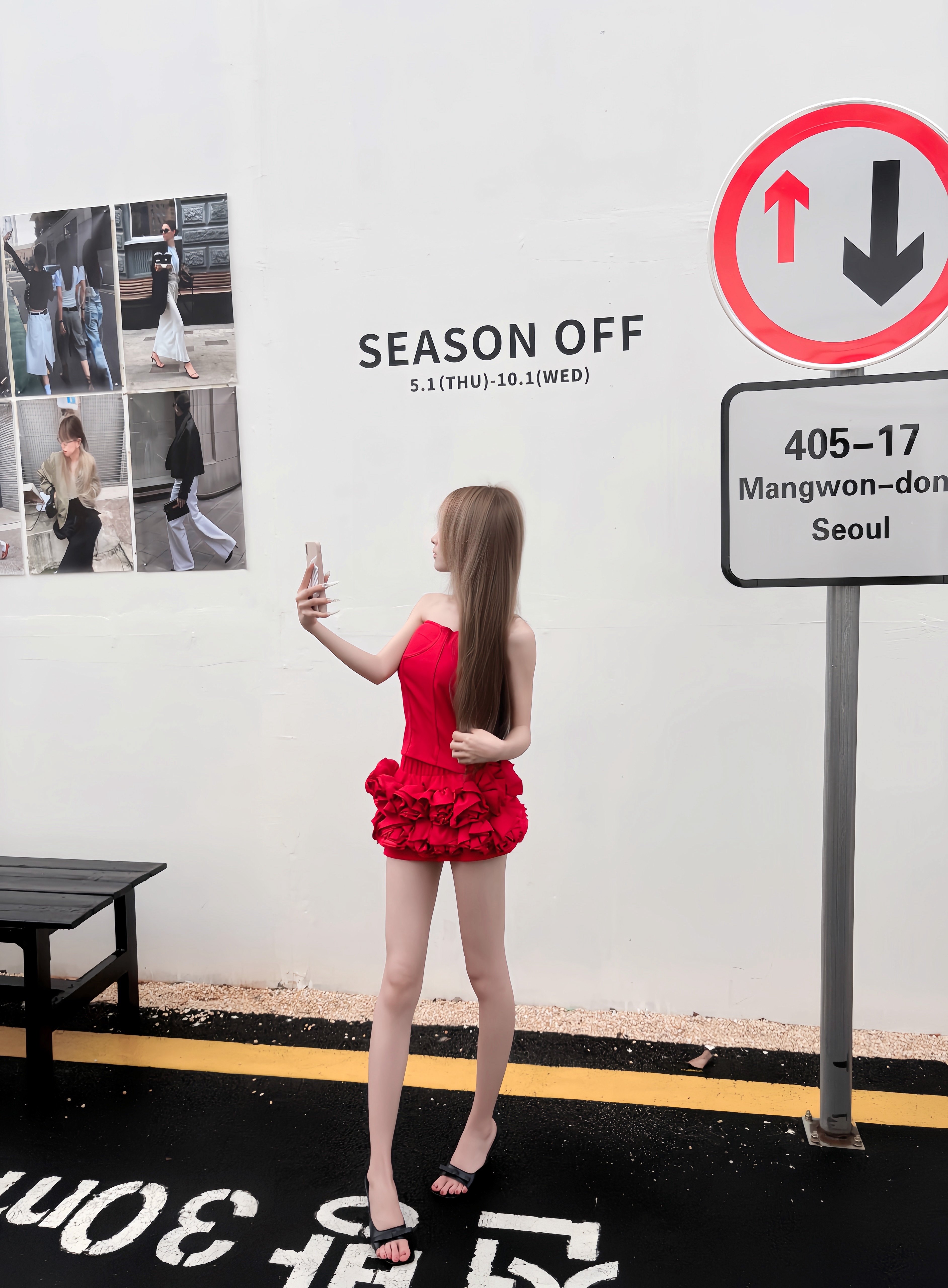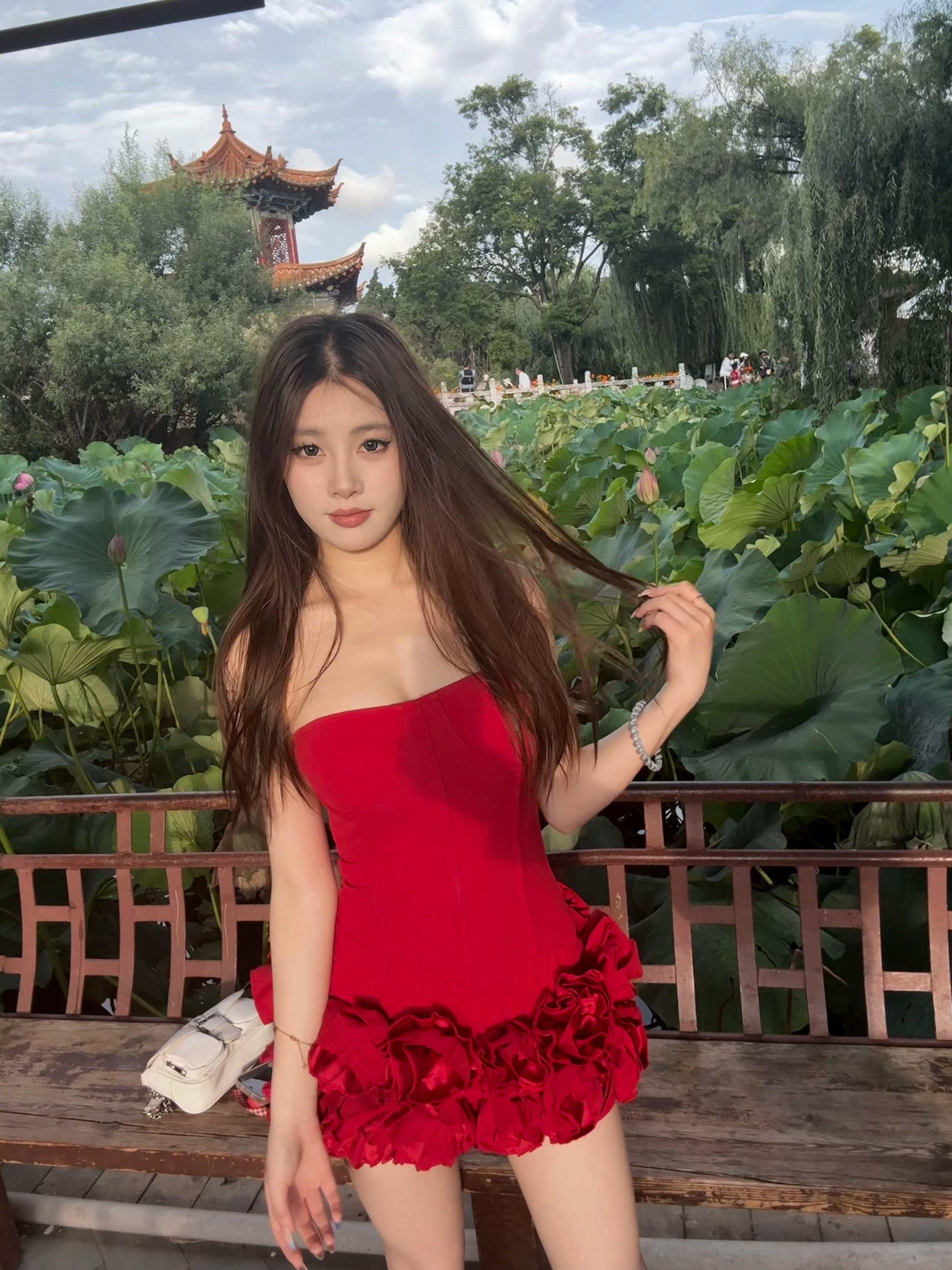 抹胸设计露出肩颈,侧边绑带增添性感,裙摆立体花朵装饰,精致又独特。对比普通红裙,它的花朵设计超吸睛,面料挺括有型,穿上秒变名媛。拍照时红裙 ,气场直接拉满,谁穿谁惊艳~