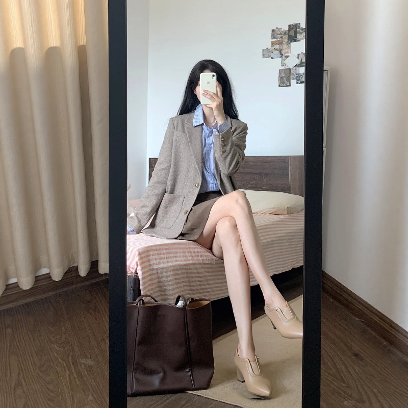 上脚挺有气质的,尖头设计显得脚型秀气,羊皮摸着手感软乎乎的。深口款式秋冬穿正好,粗跟走路稳当,不会晃。颜色干净利落,搭裤子裙子都合适。
