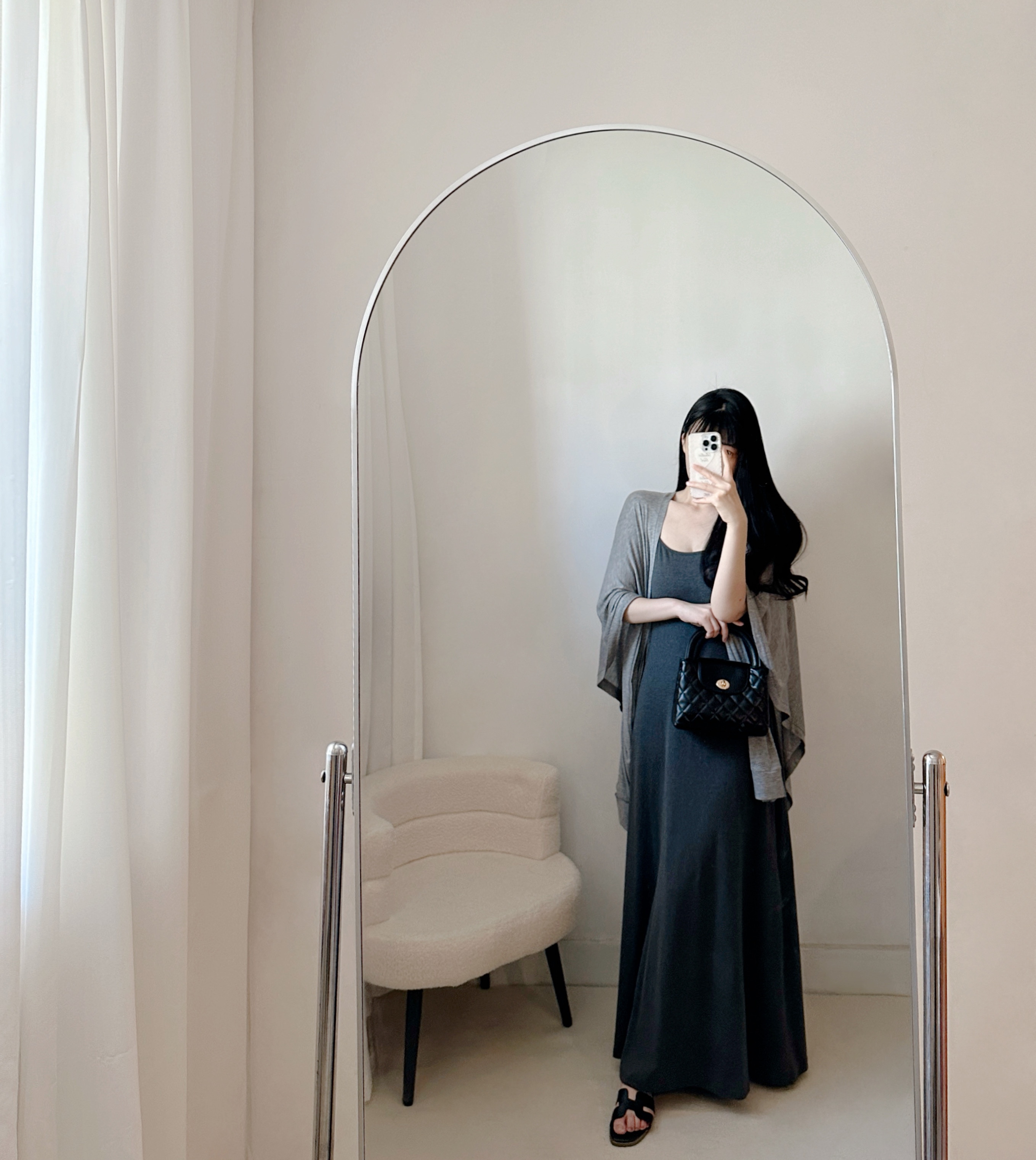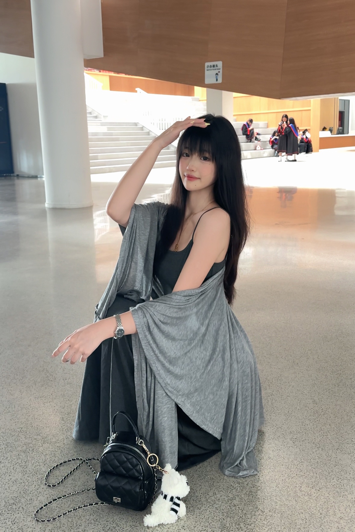 太喜欢这种温柔清冷风了,面料柔软舒适,上身显瘦,小个子的姐妹完全可以驾驭,韩系又慵懒,喜欢。