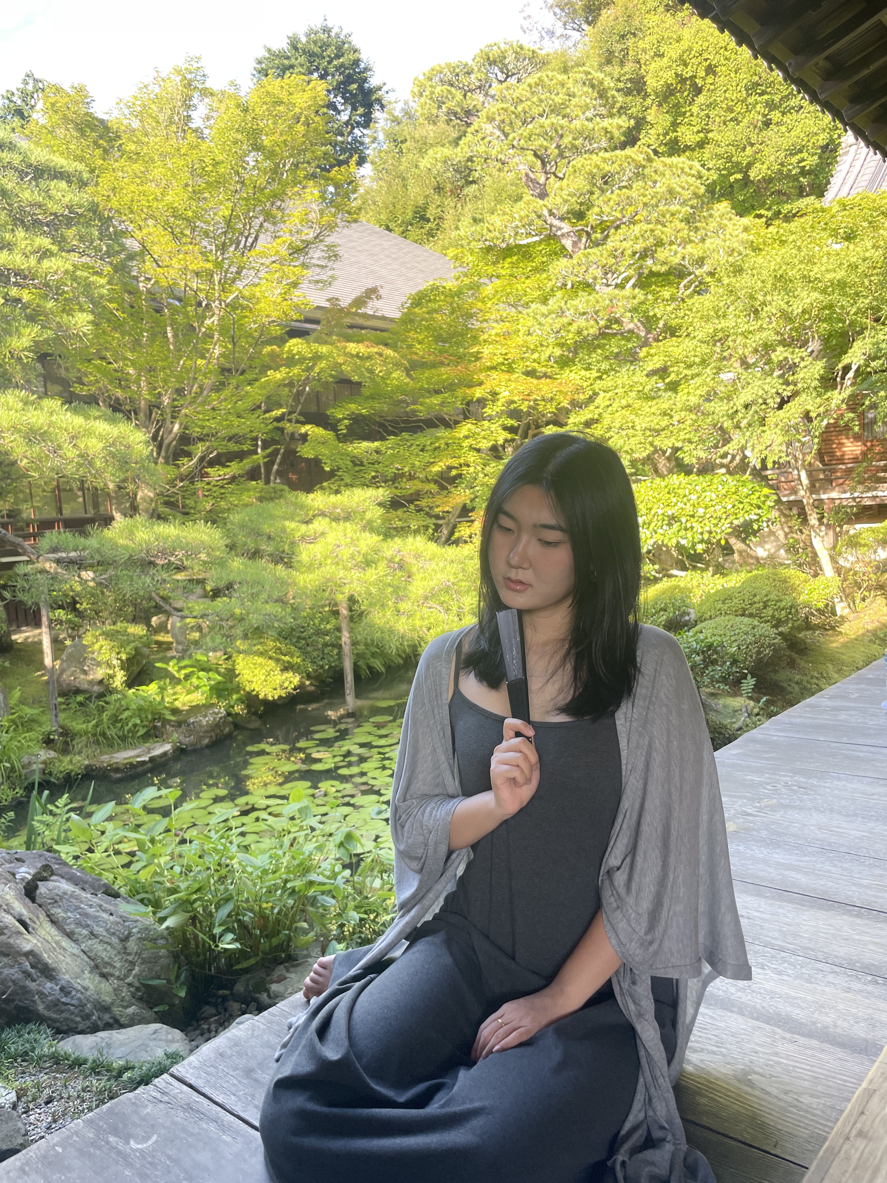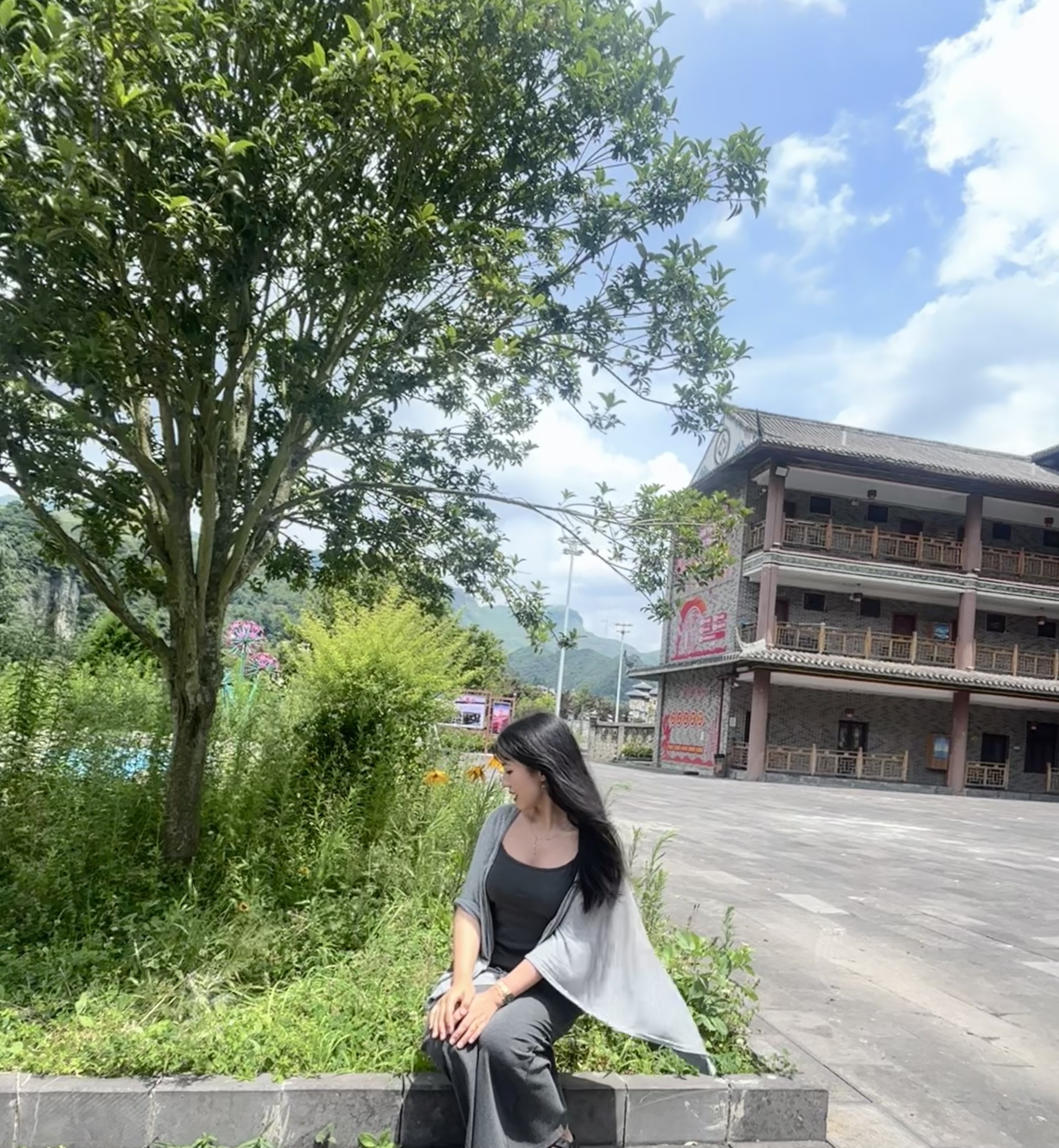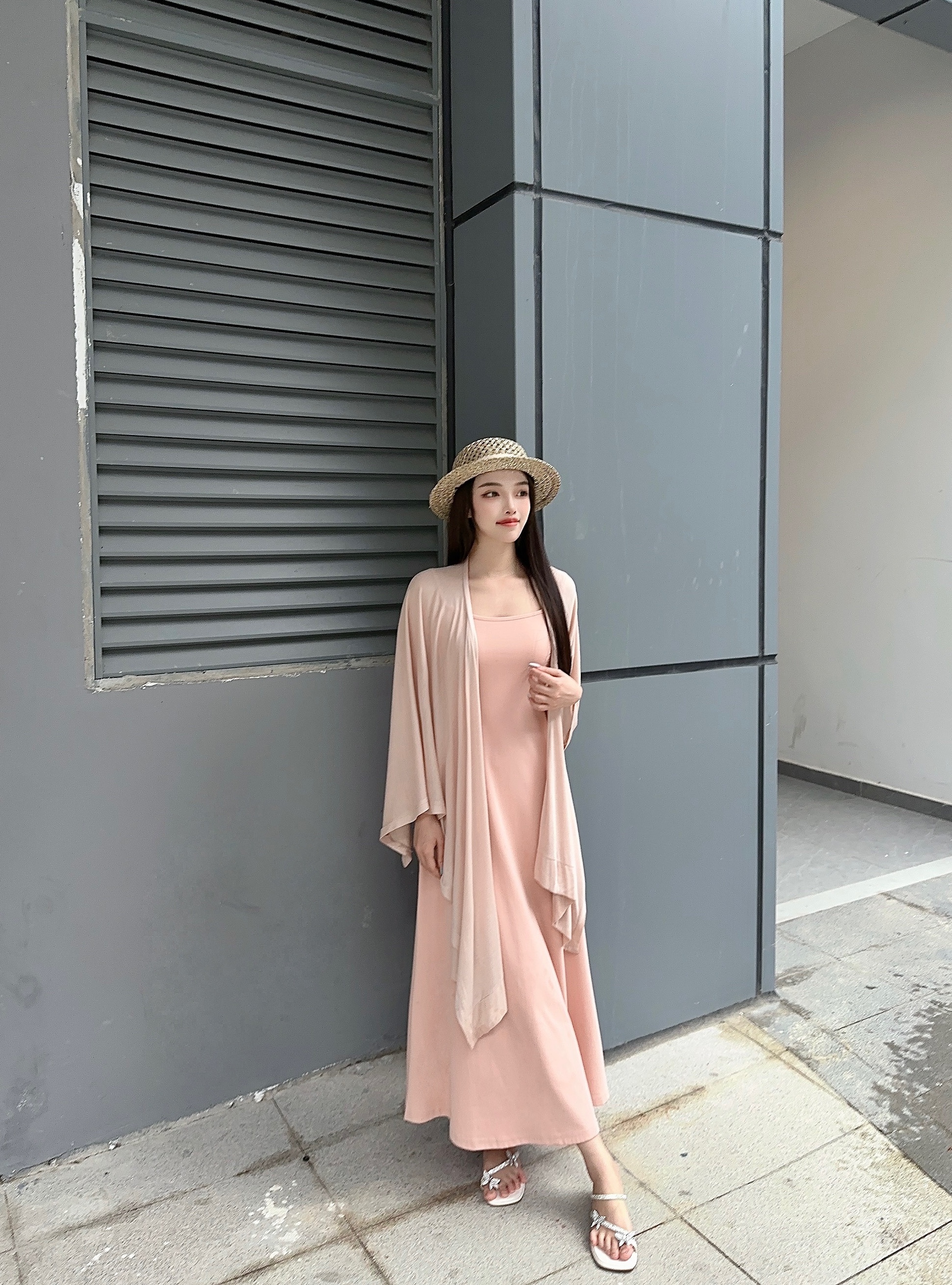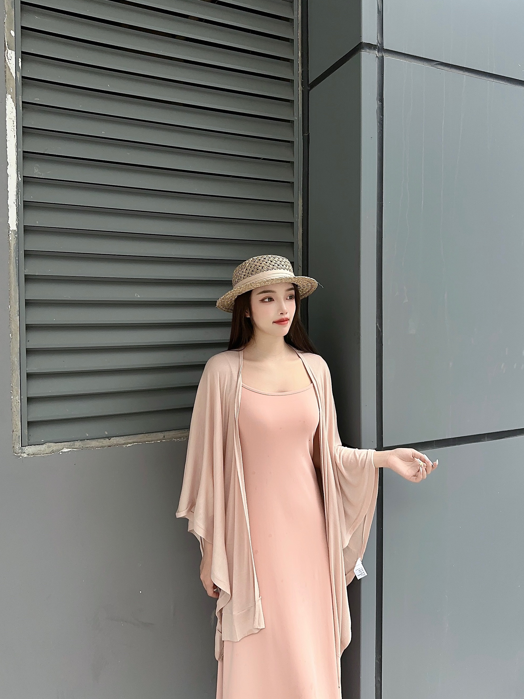 裙子非常喜欢,穿上很舒服,也不会很热,也不透,对于155的我来说可能还是微微有点长,如果能再短个5厘米就好啦,披肩是我自己搭的,店家的披肩有点太长啦,我感觉他家160穿可能很好看,对于我们小小个子希望再友好一些,嘻嘻