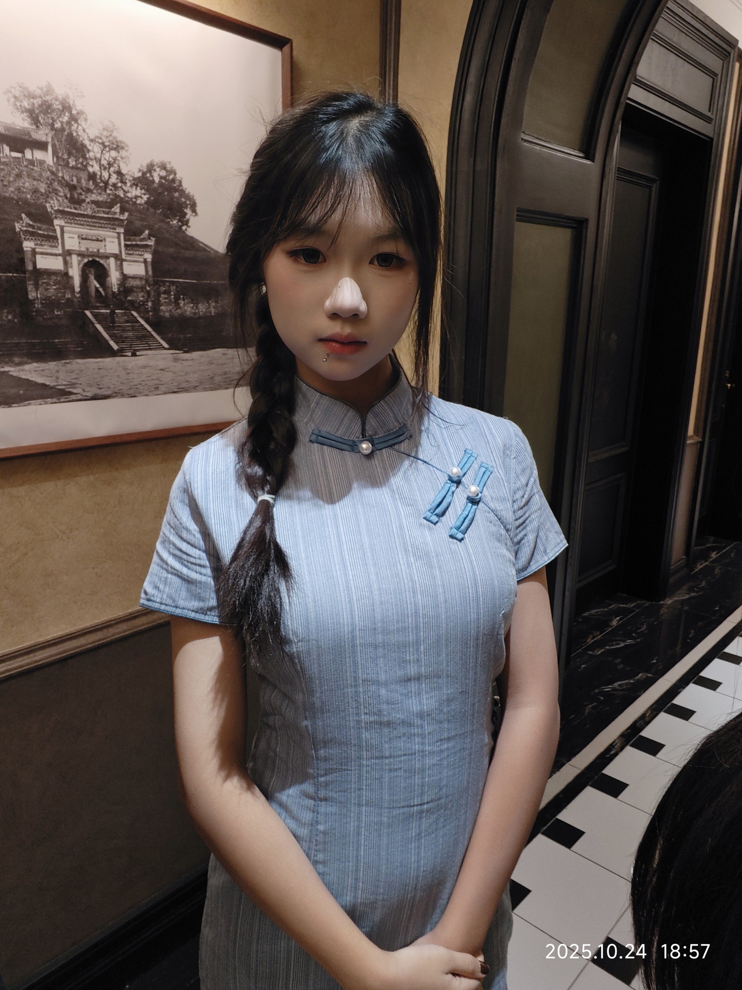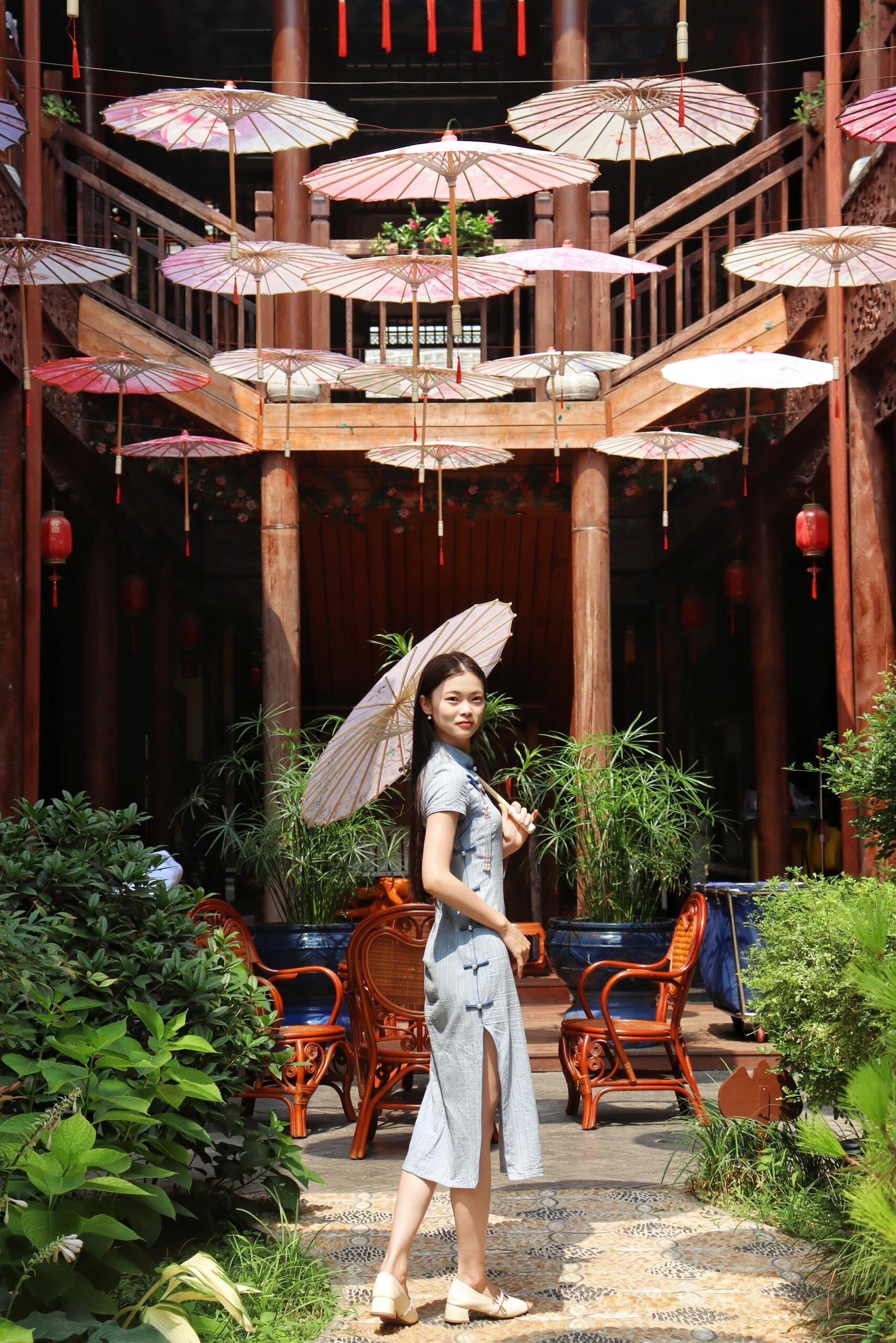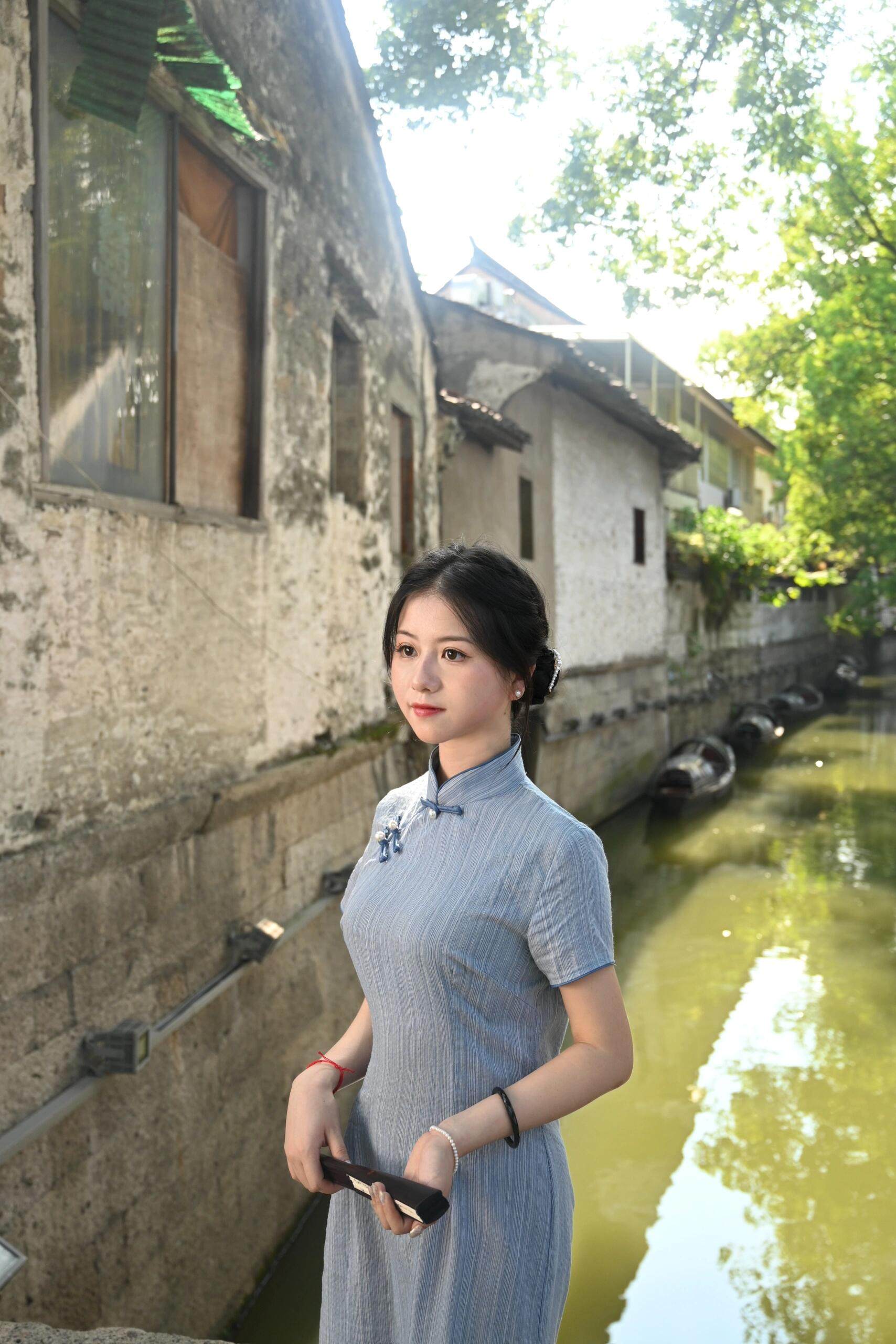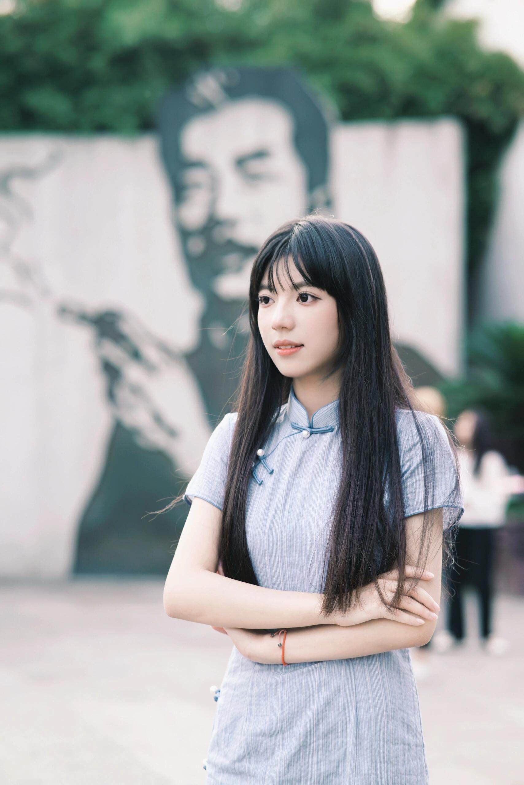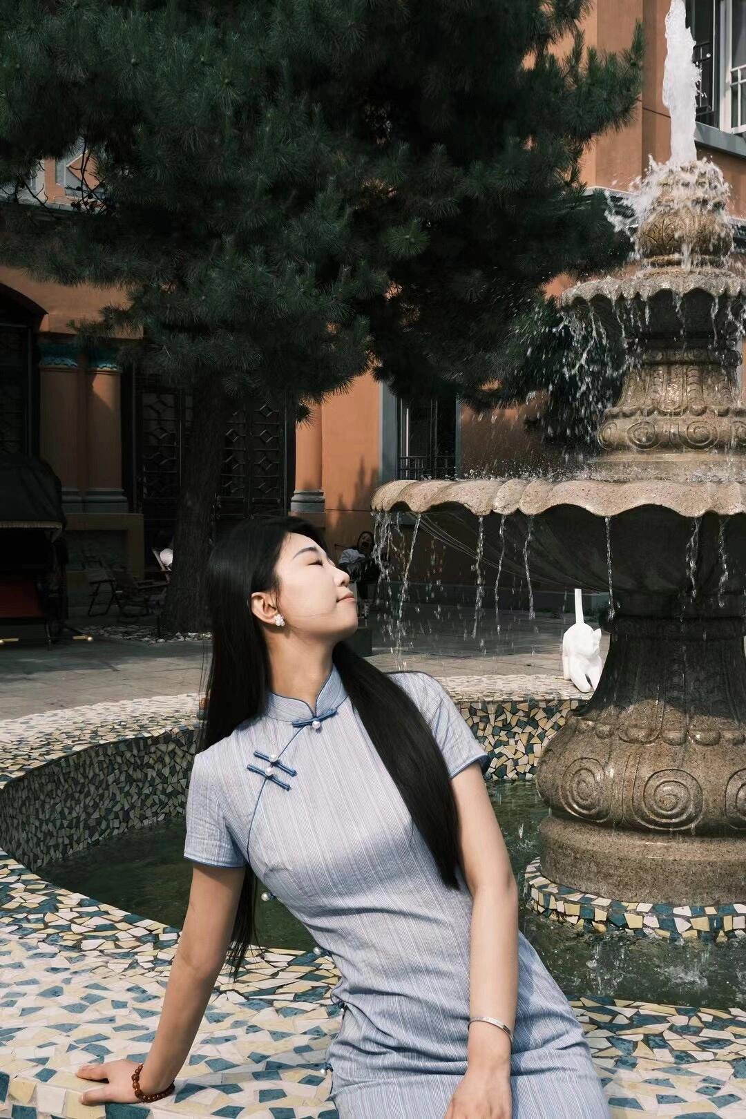 很修身的一件旗袍,一眼看去给人一种很舒服的感觉,妥妥get文艺少女风