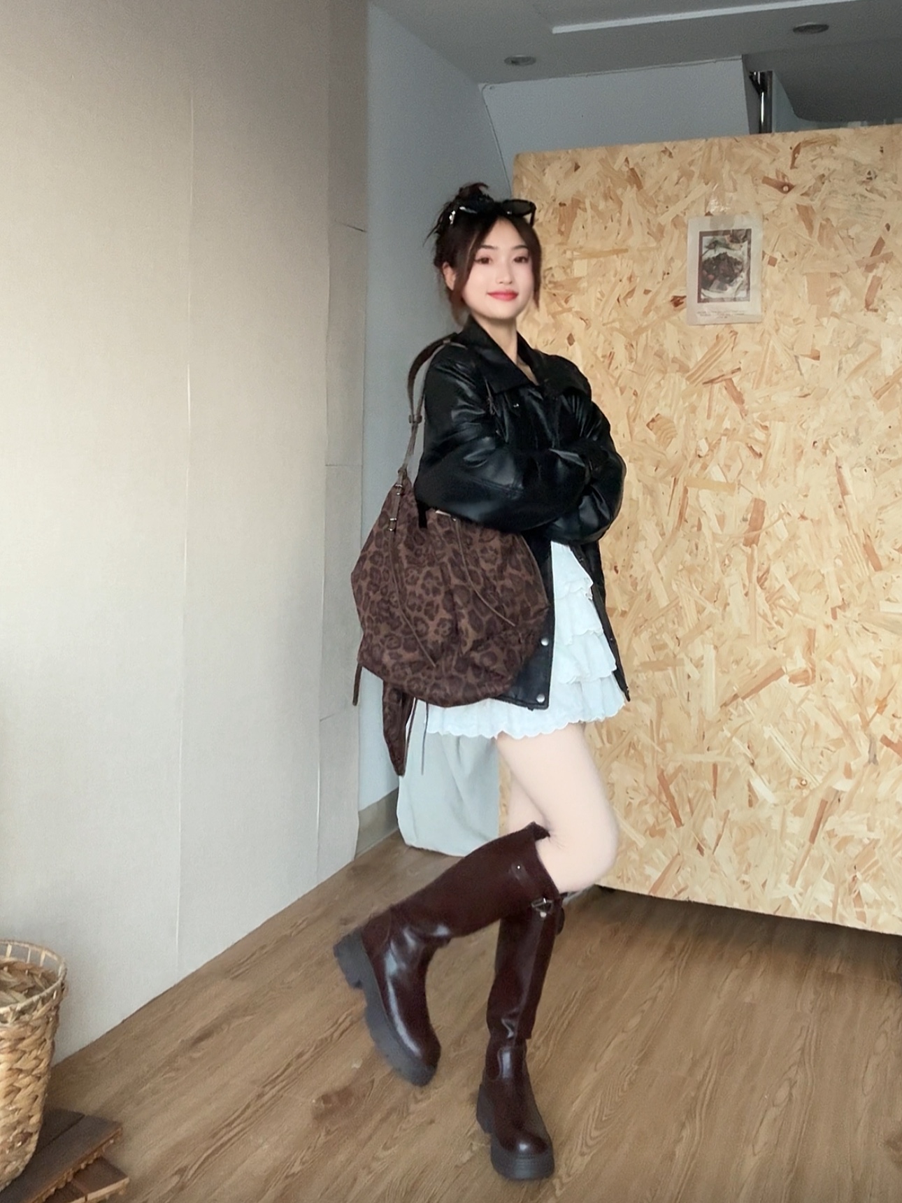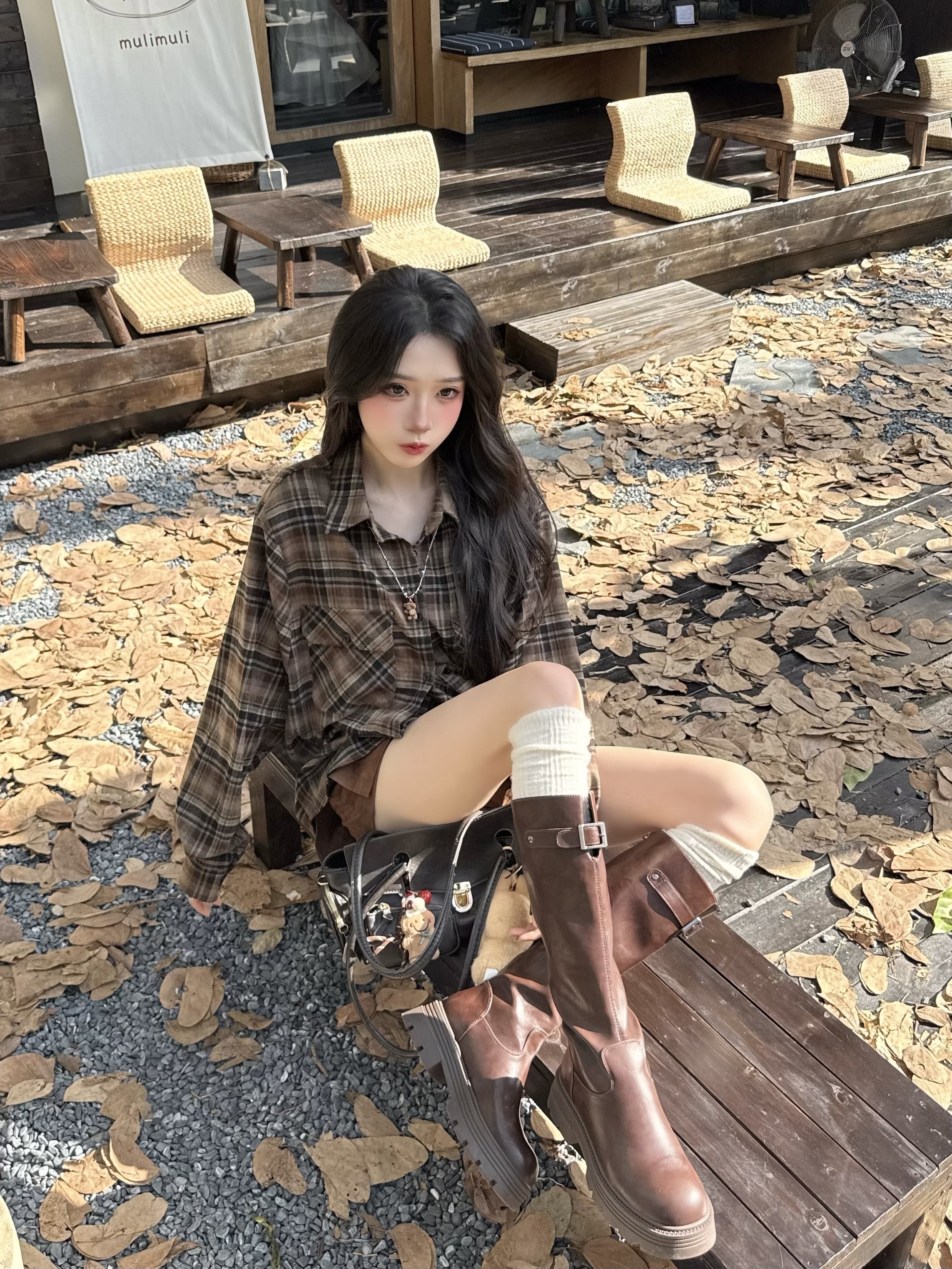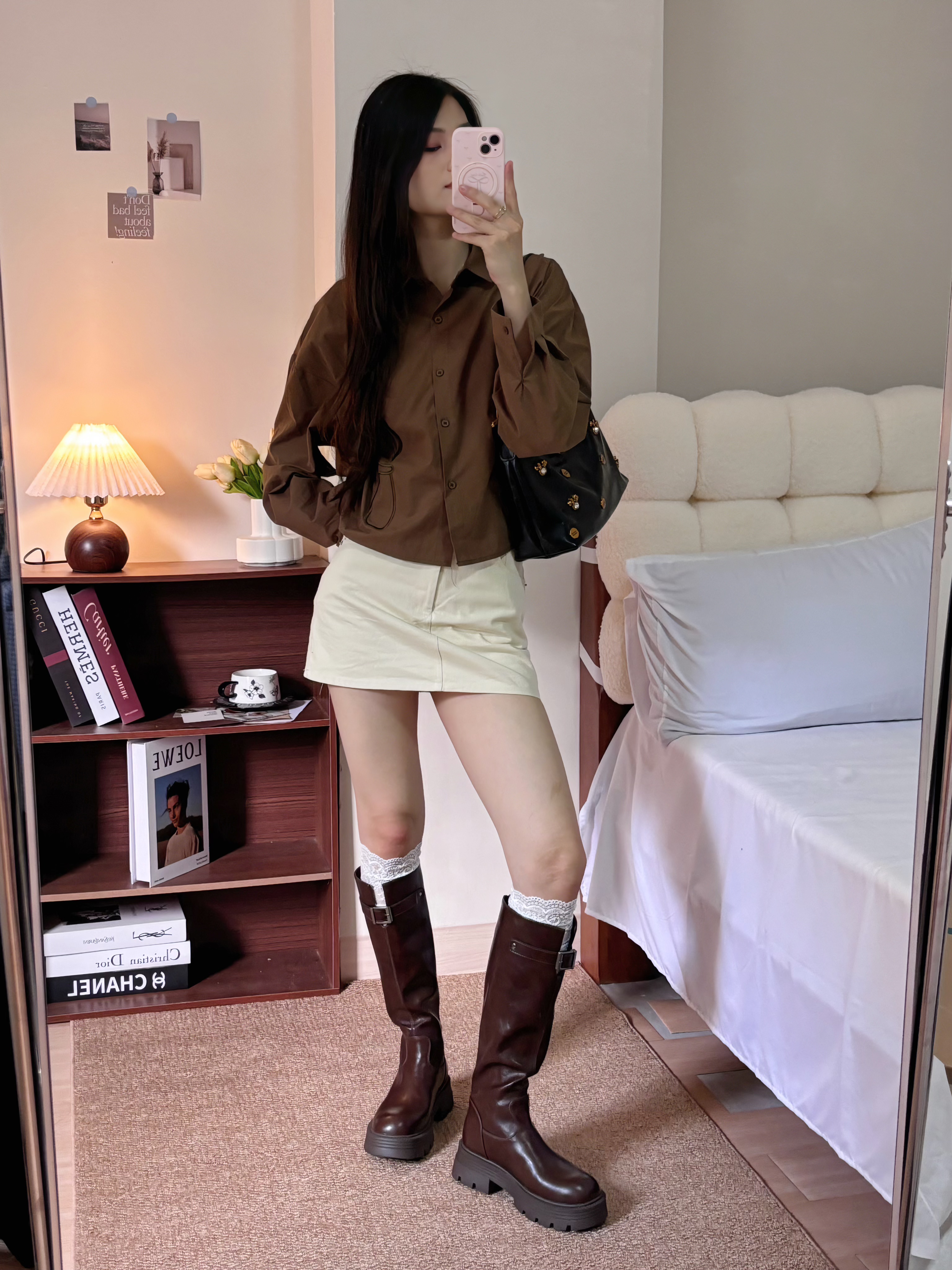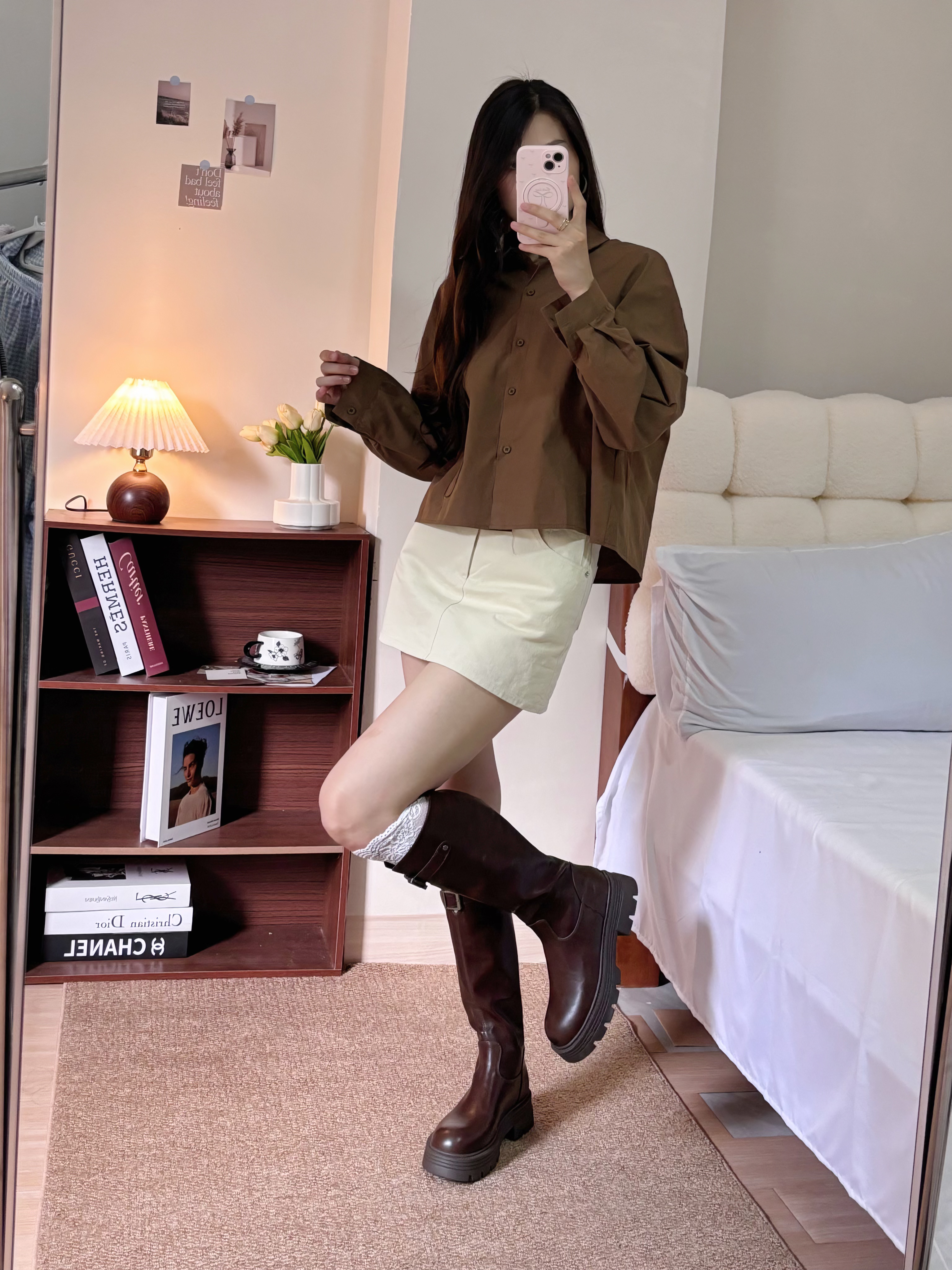 第一次尝试棕色的靴子!意外的好看啊啊啊喜欢