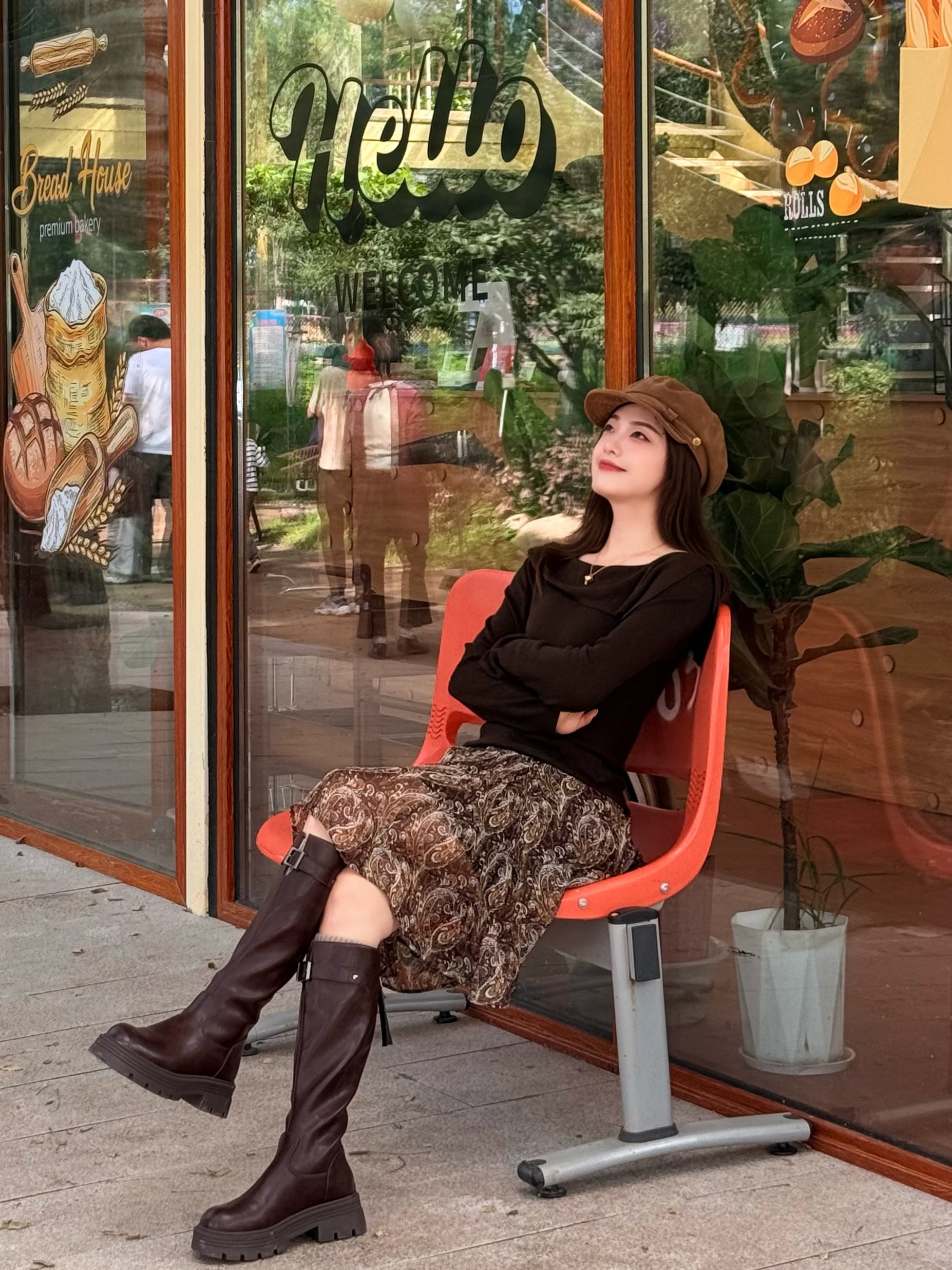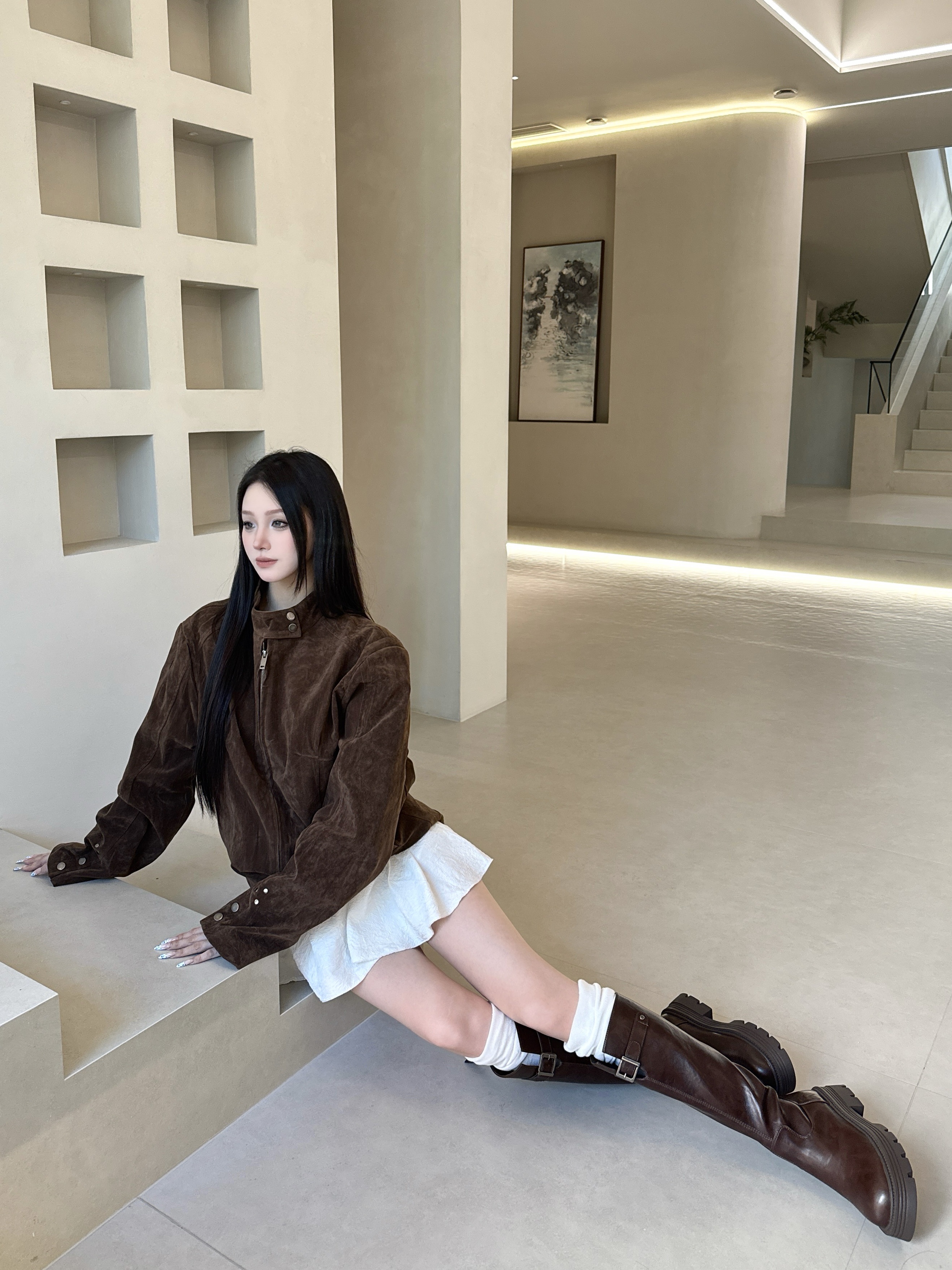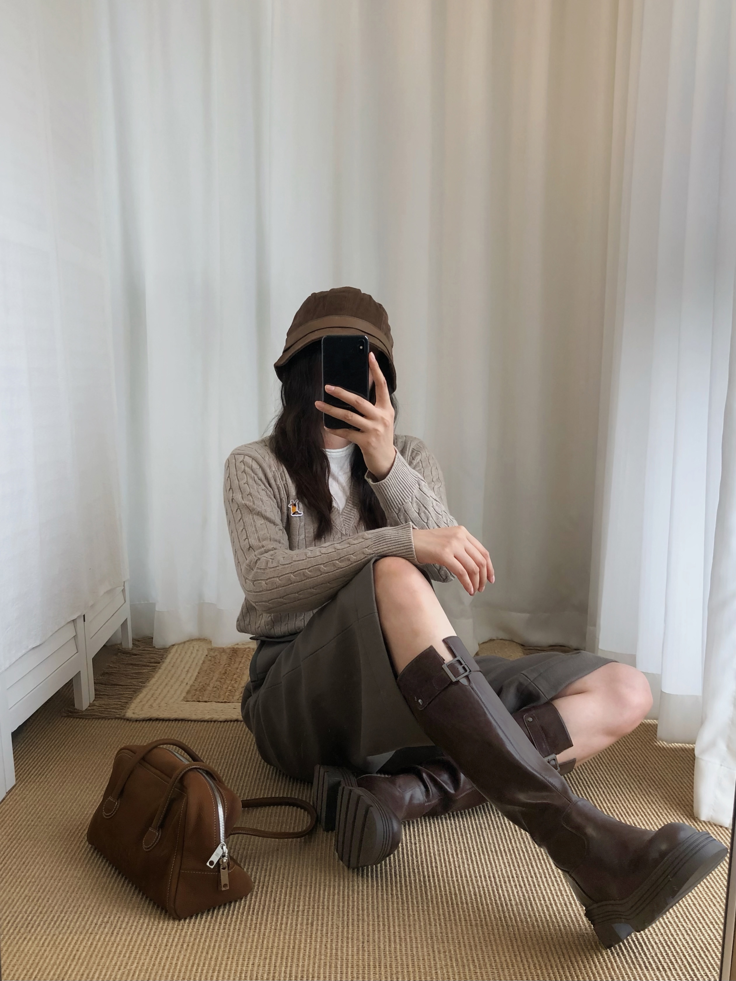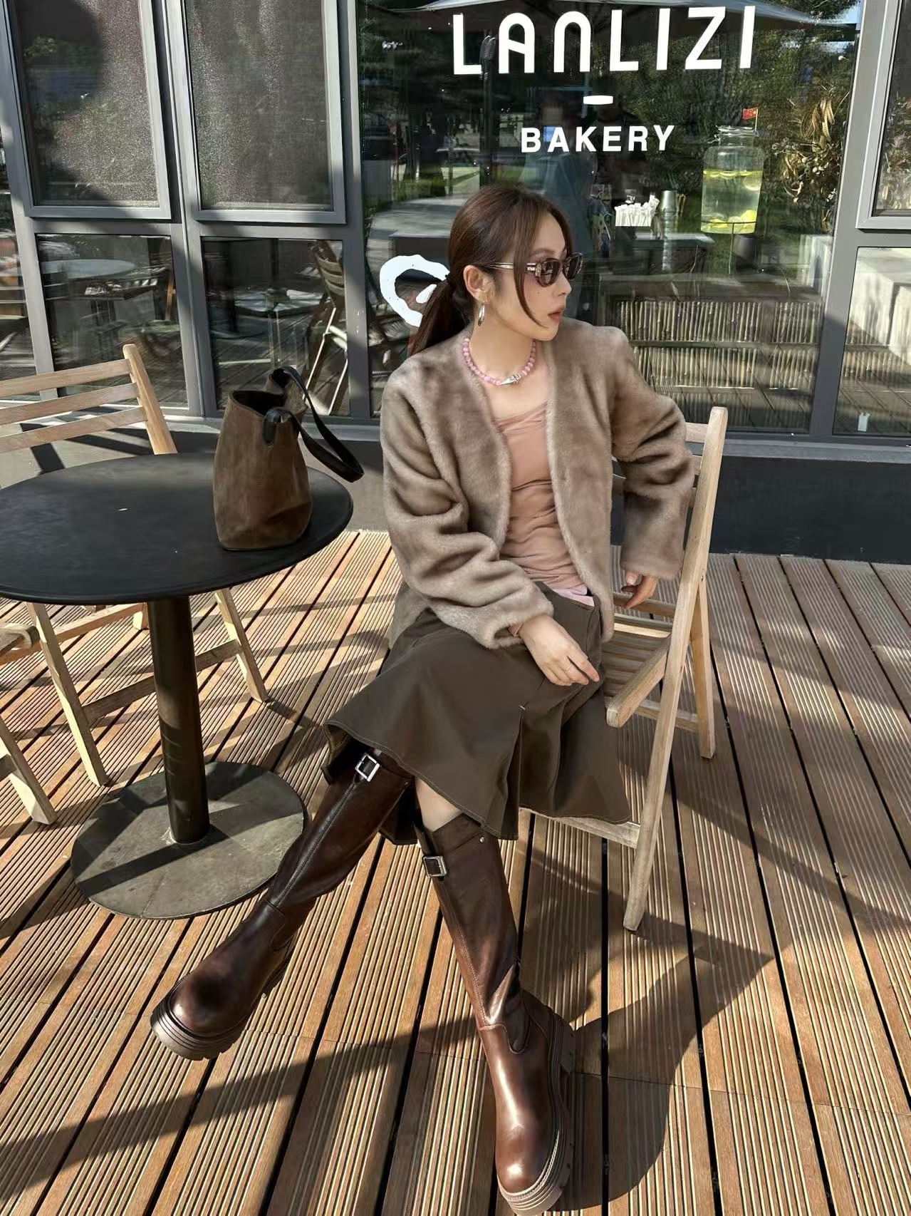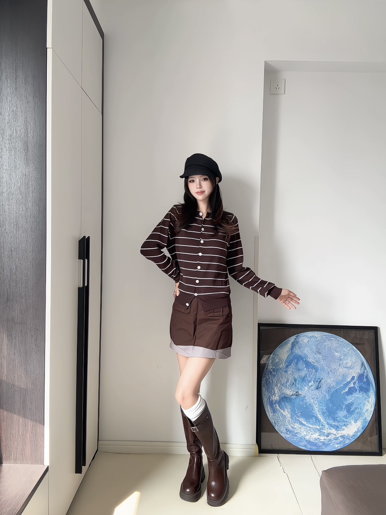 第一次尝试棕色的靴子!意外的好看啊啊啊喜欢