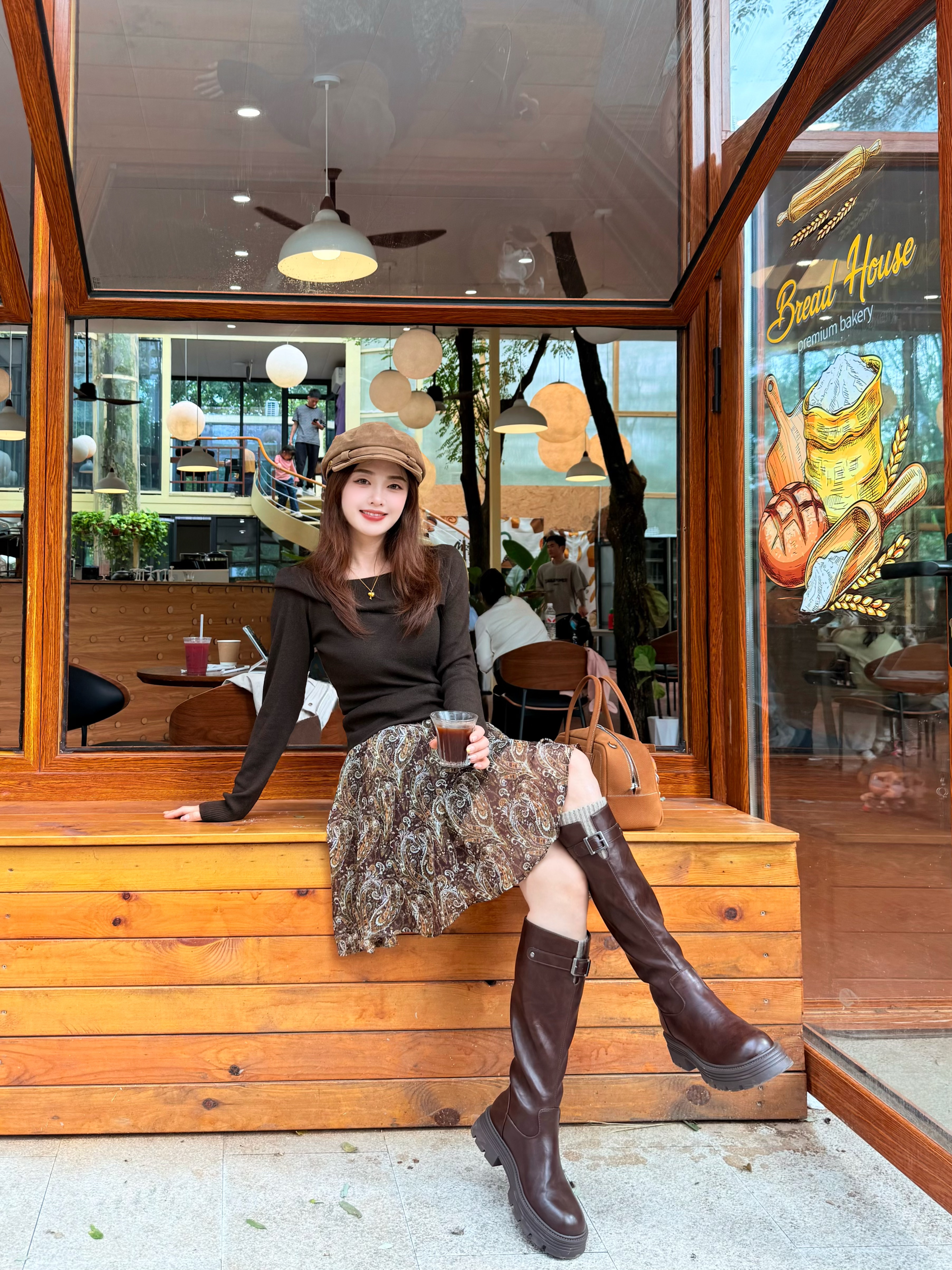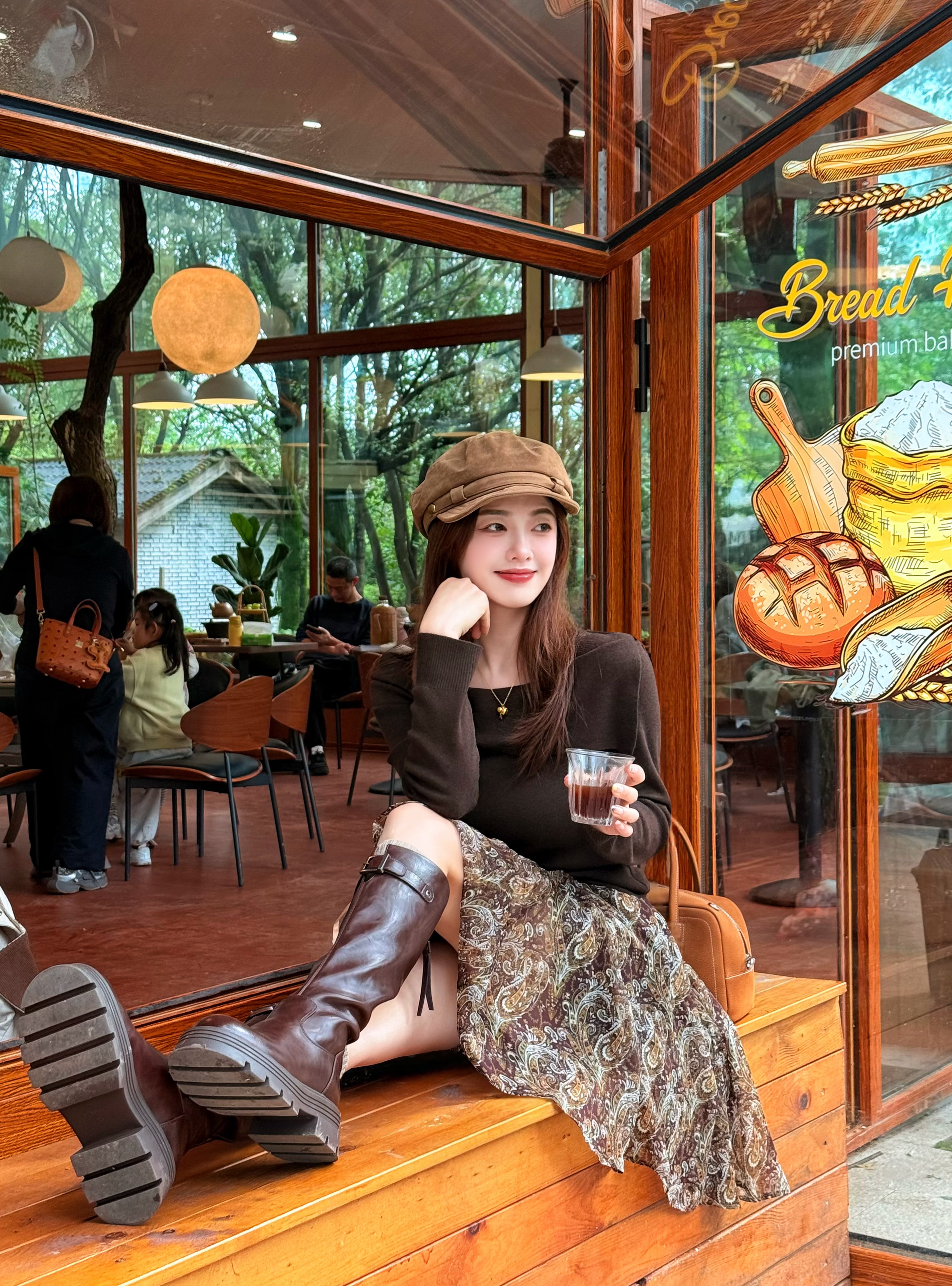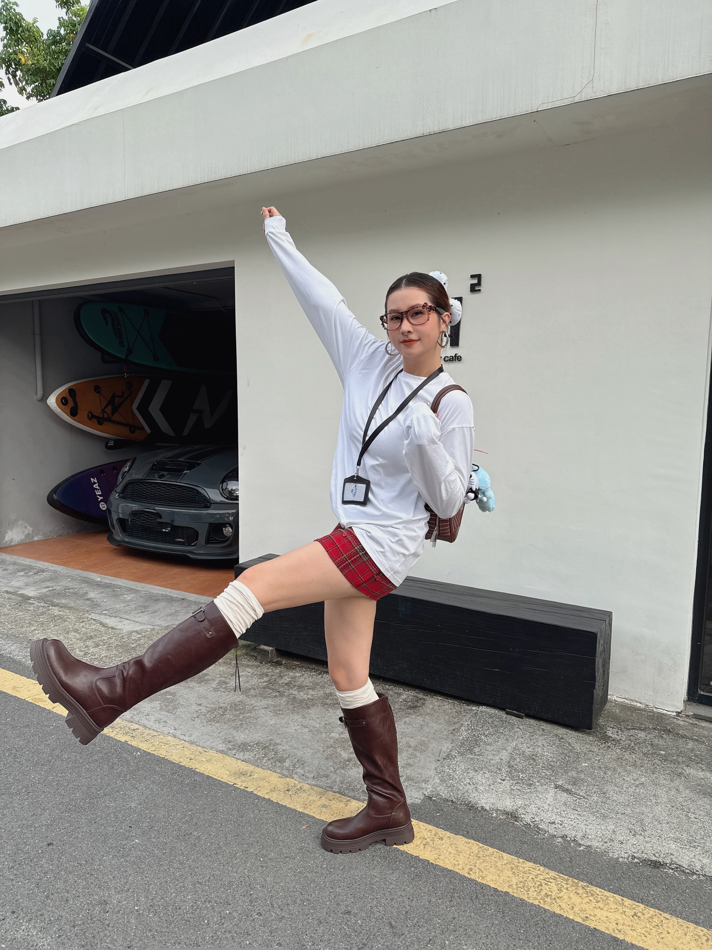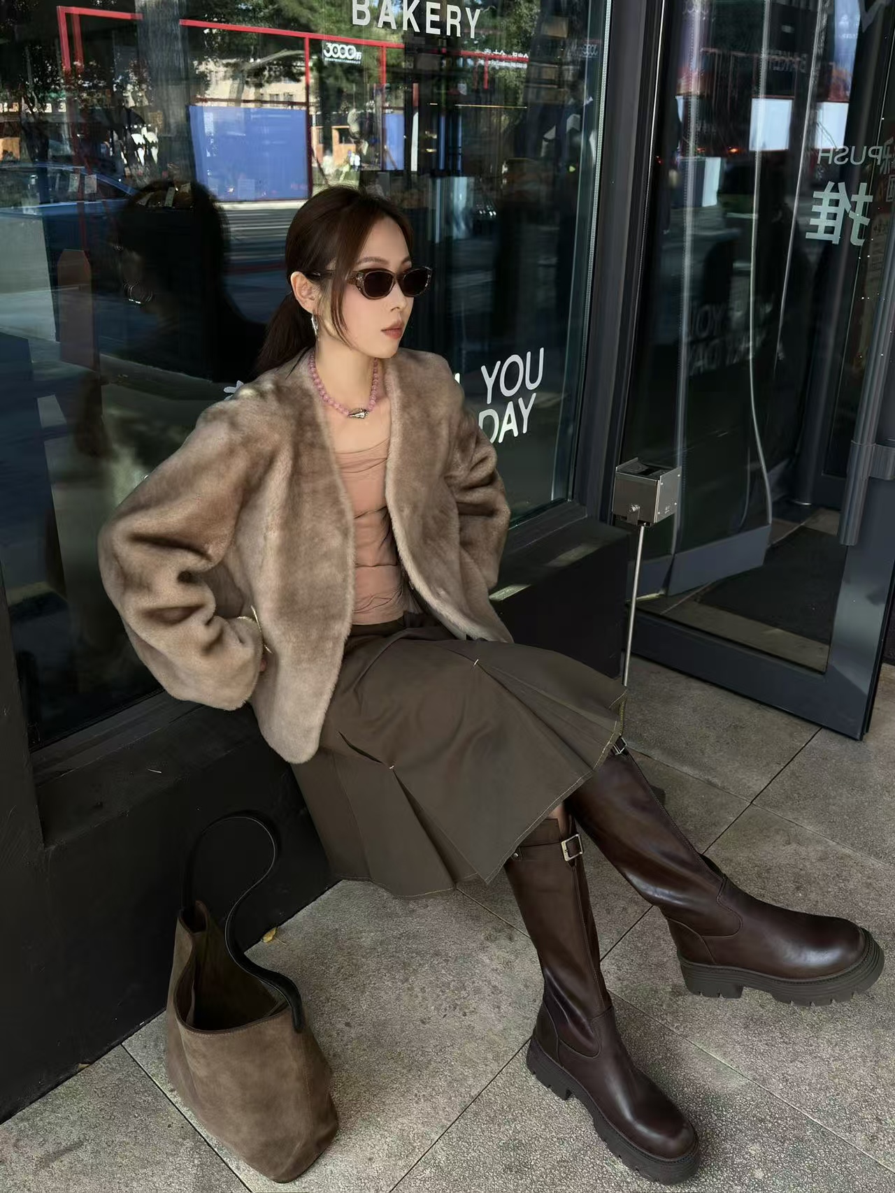 第一次尝试棕色的靴子!意外的好看啊啊啊喜欢