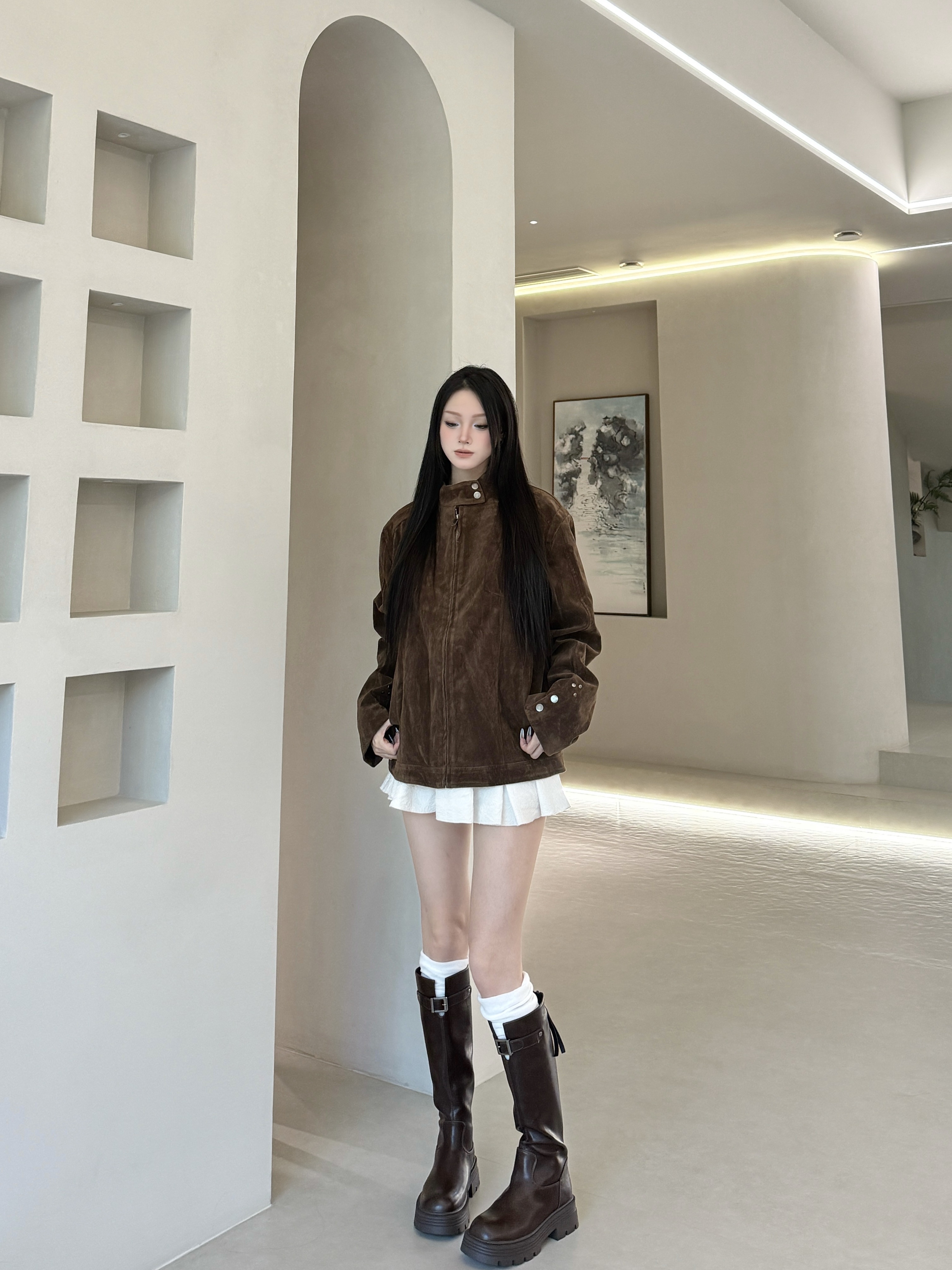棕色很正,正好搭配秋冬天同色系衣服,实物更有质感,蛮修饰腿型的