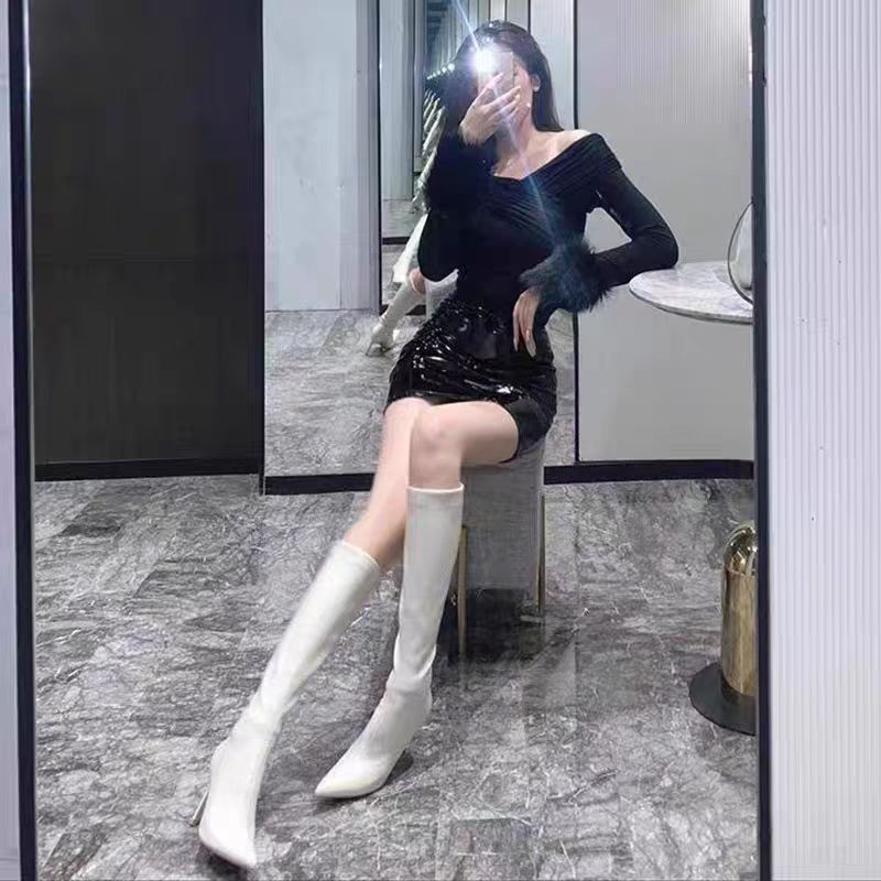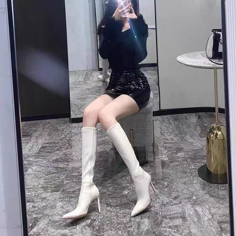 刚收到这双鞋就迫不及待穿上了,漆皮柔软,尖头细跟设计独特。过膝长度超显腿长,拉链方便穿脱。走路轻松,搭配裙子或裤子都超合适,强烈推荐给大家!