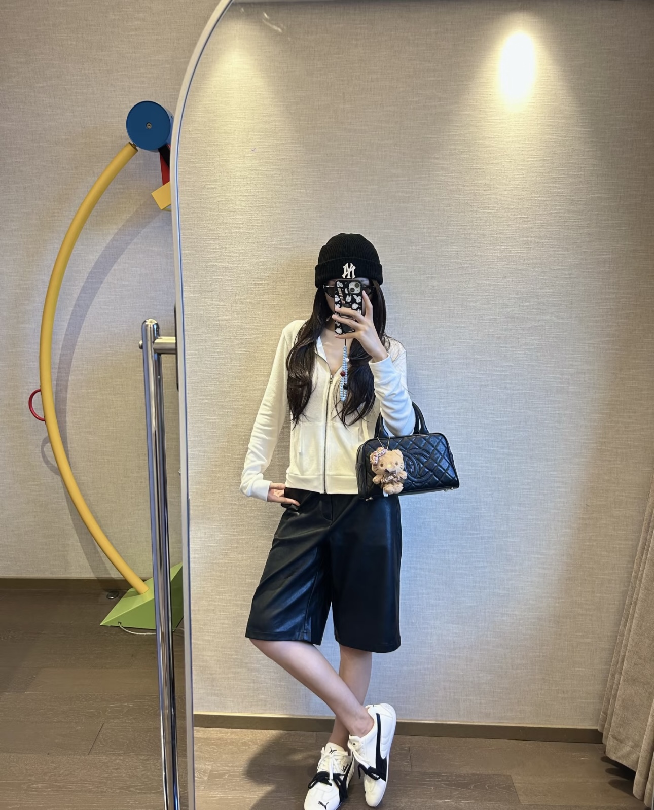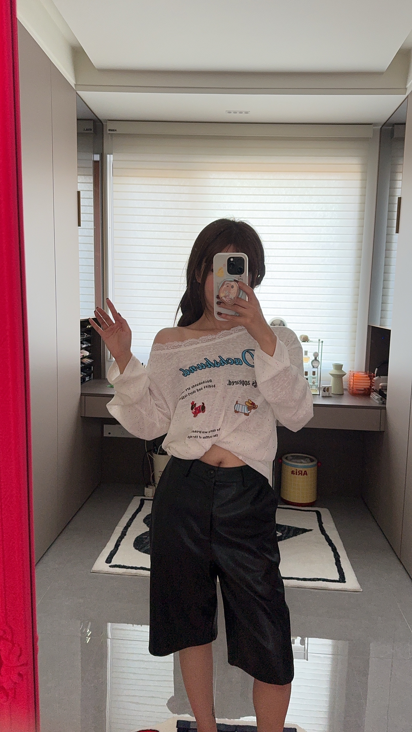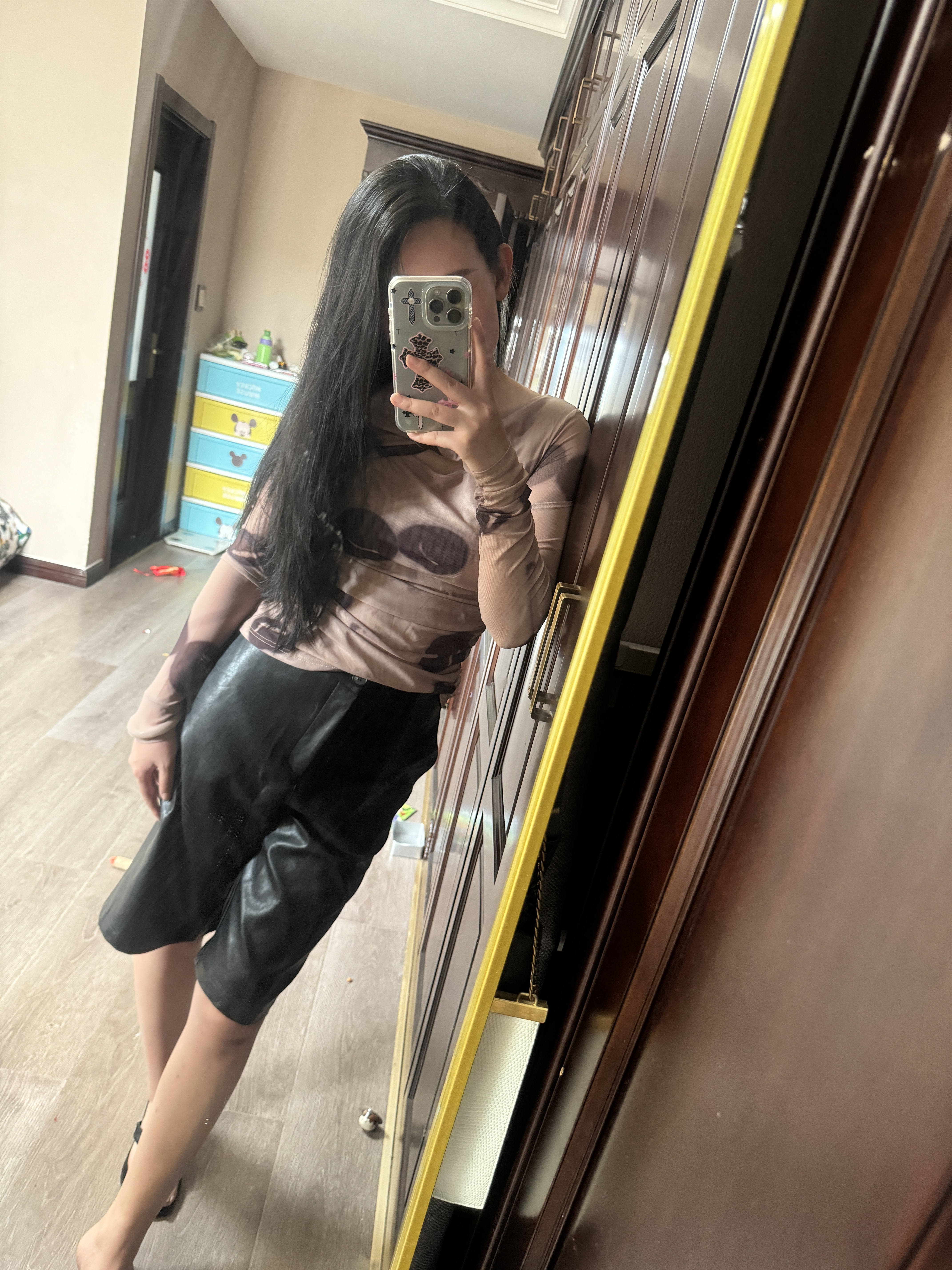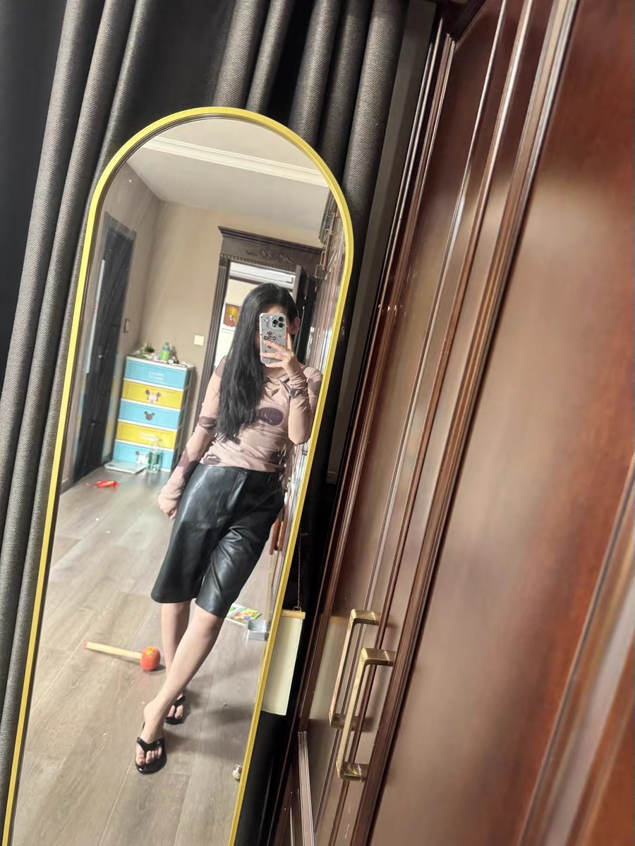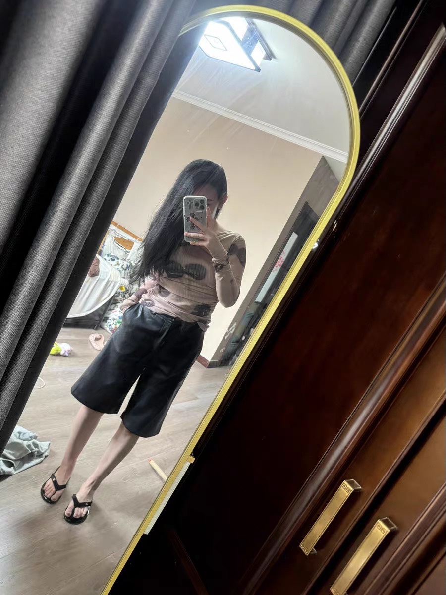 五分皮裤太洋气噜~这个季节穿刚好合适!搭配什么衣服都可以~喜欢