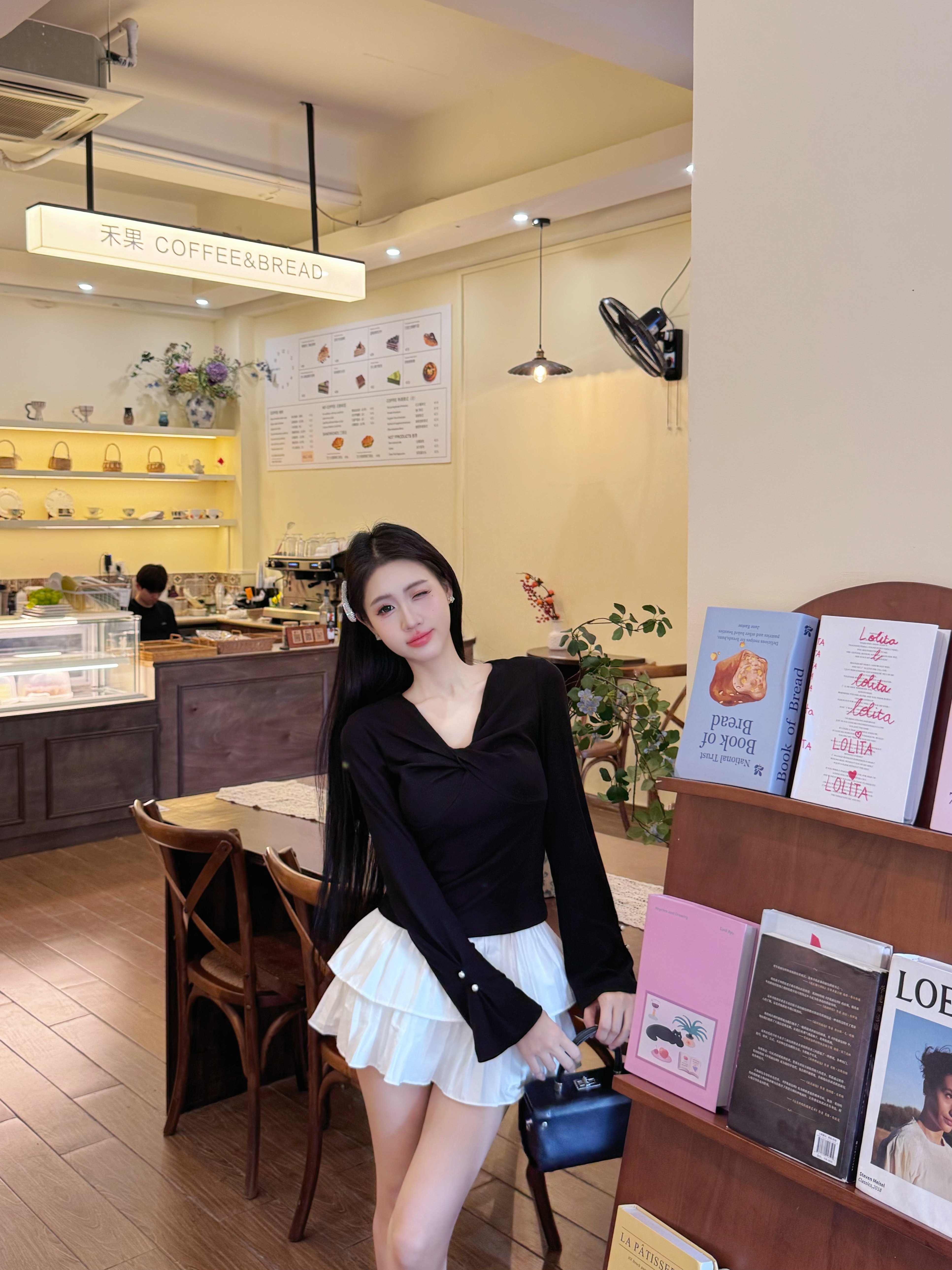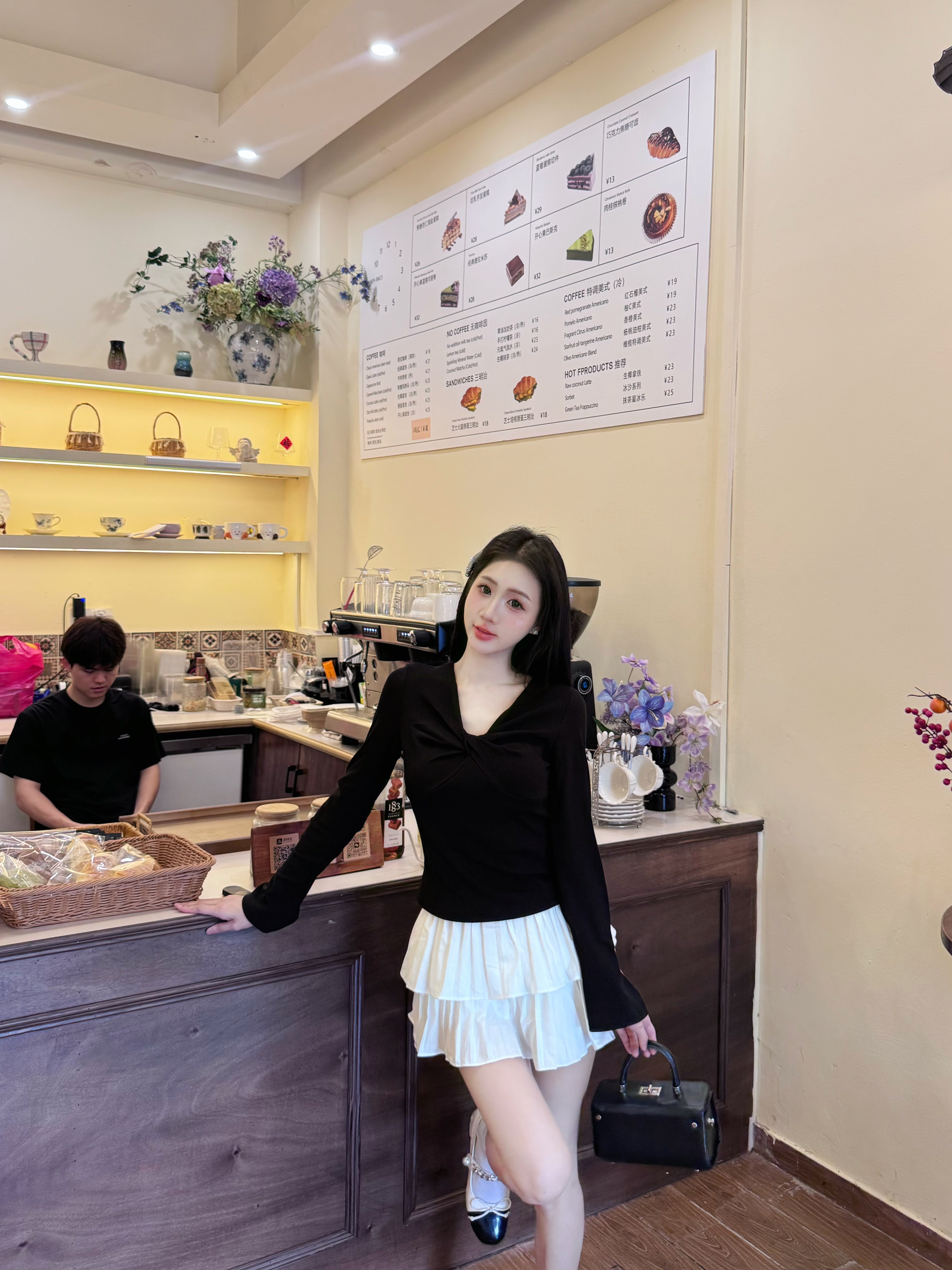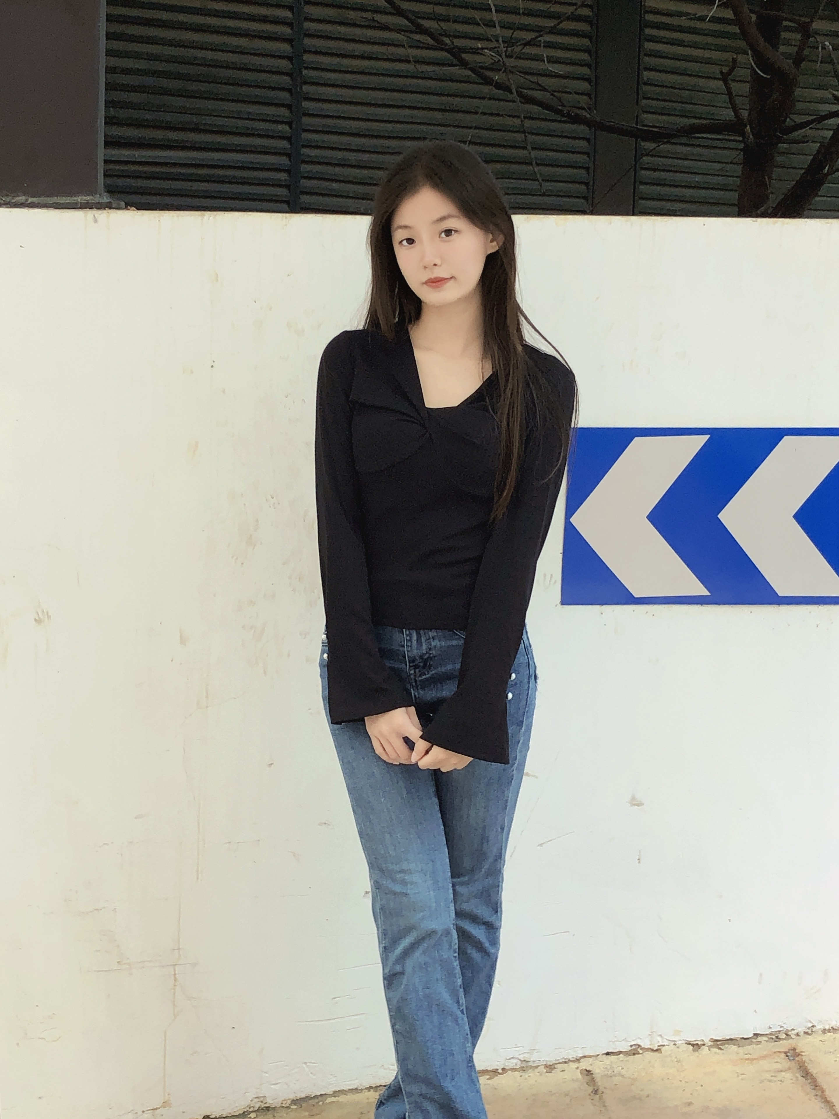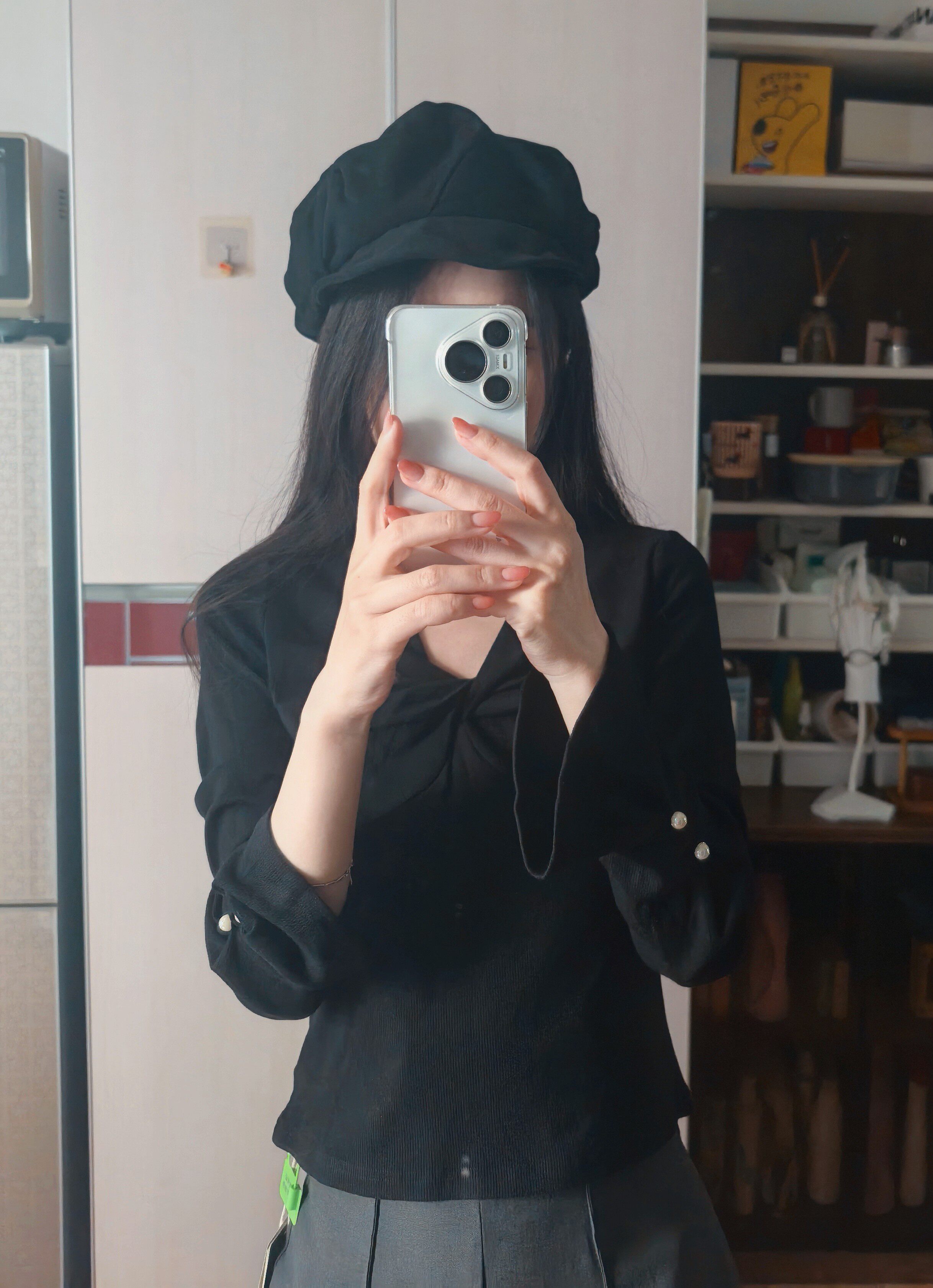 黑色针织衫超好看,尺码刚好,袖口的珍珠设计yyds ,美翻了