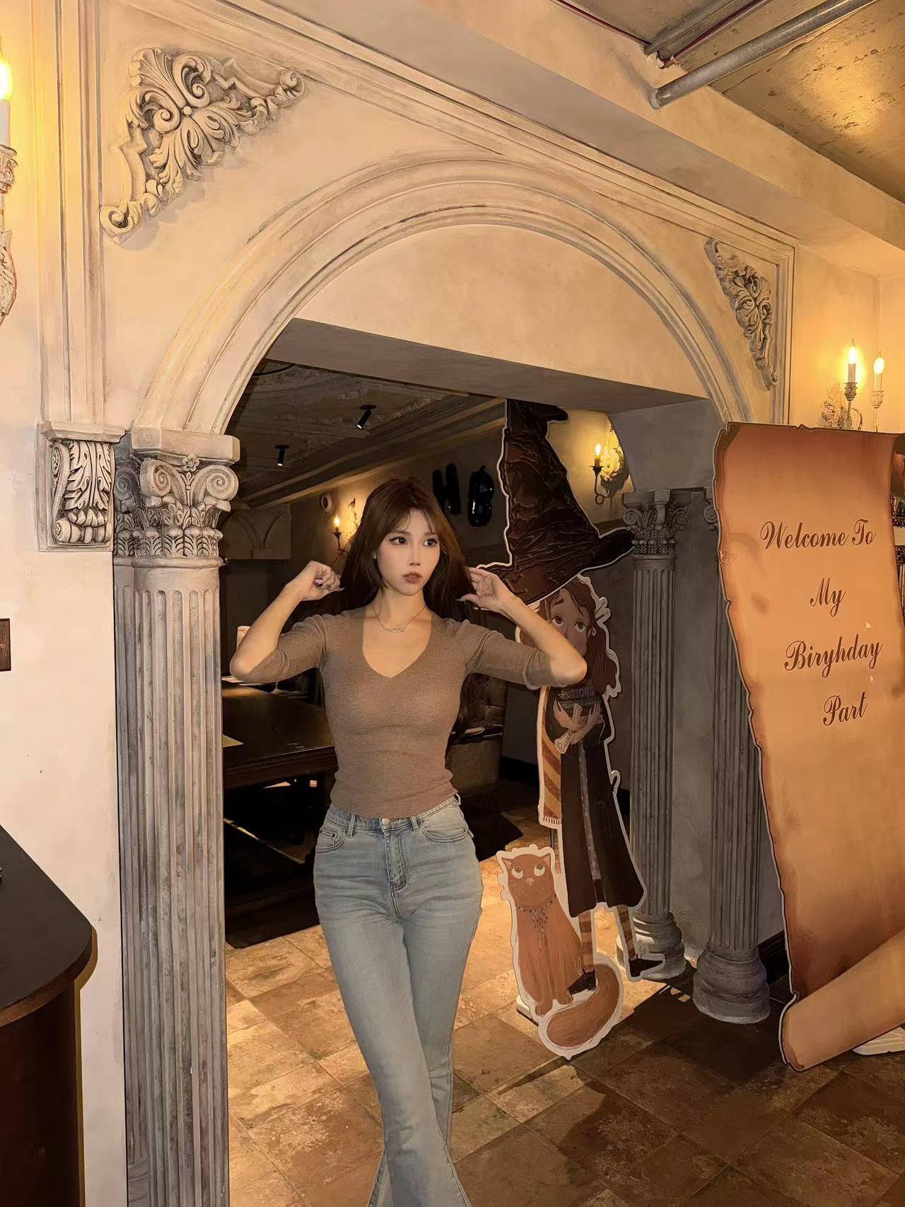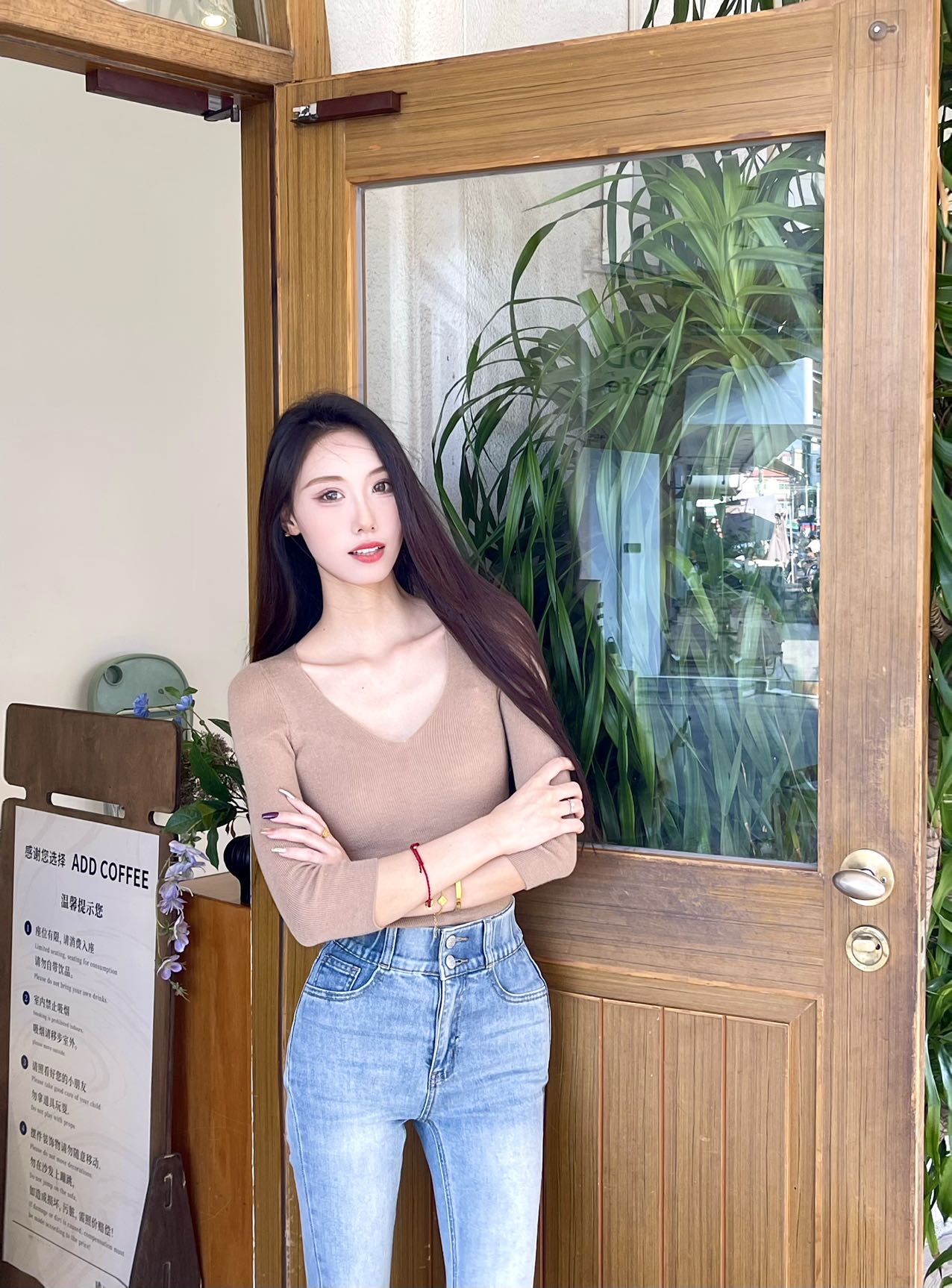 这个卡其V领内搭太贴肤了!针织软乎乎的不扎人,显身材还百搭,配牛仔裤出门被问链接~