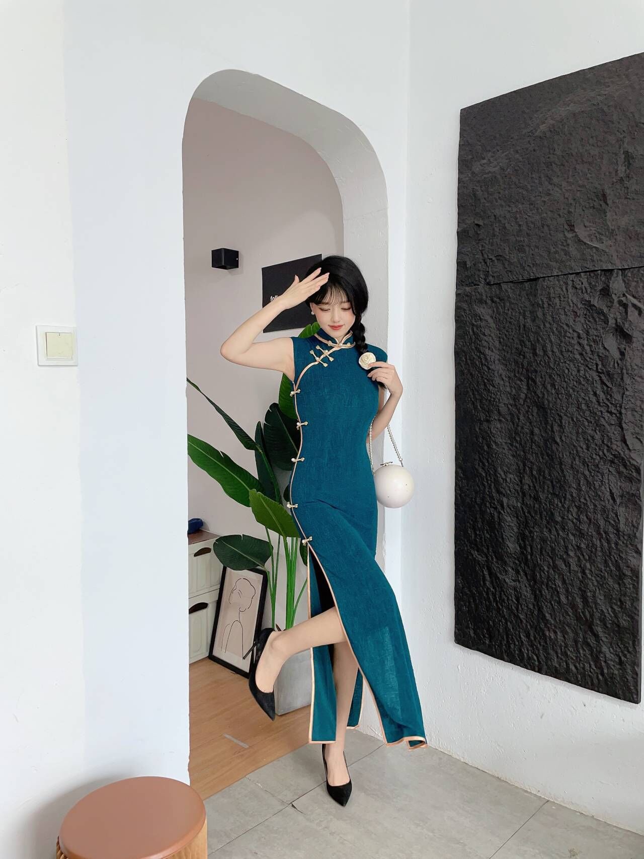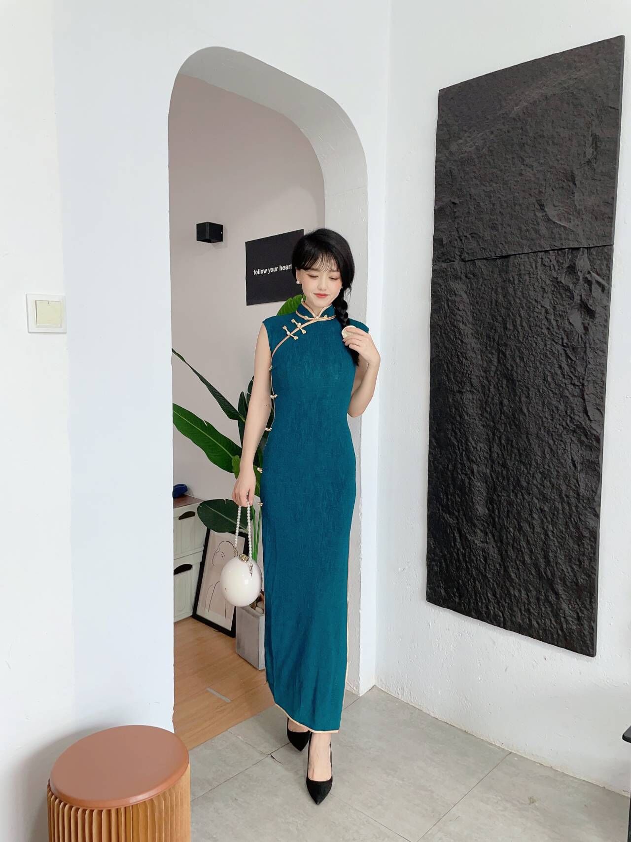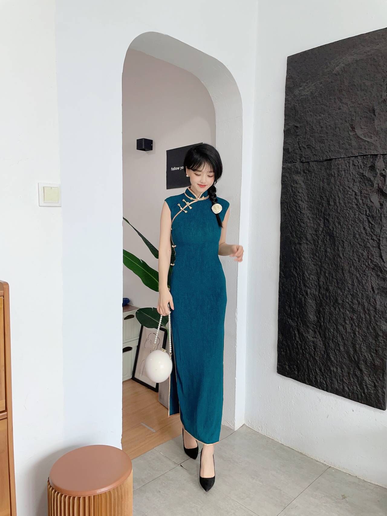 谁懂!穿这件绿旗袍秒变江南美人!柔滑面料垂坠顺滑,夏天穿超舒服。青绿色调自带清凉感,无袖适配高温天,盘扣 + 修身剪裁显曲线,开叉裙摆不拖沓。搭绣花鞋或小白鞋都好看,日常、约会穿都出彩,气质直接拉满!
