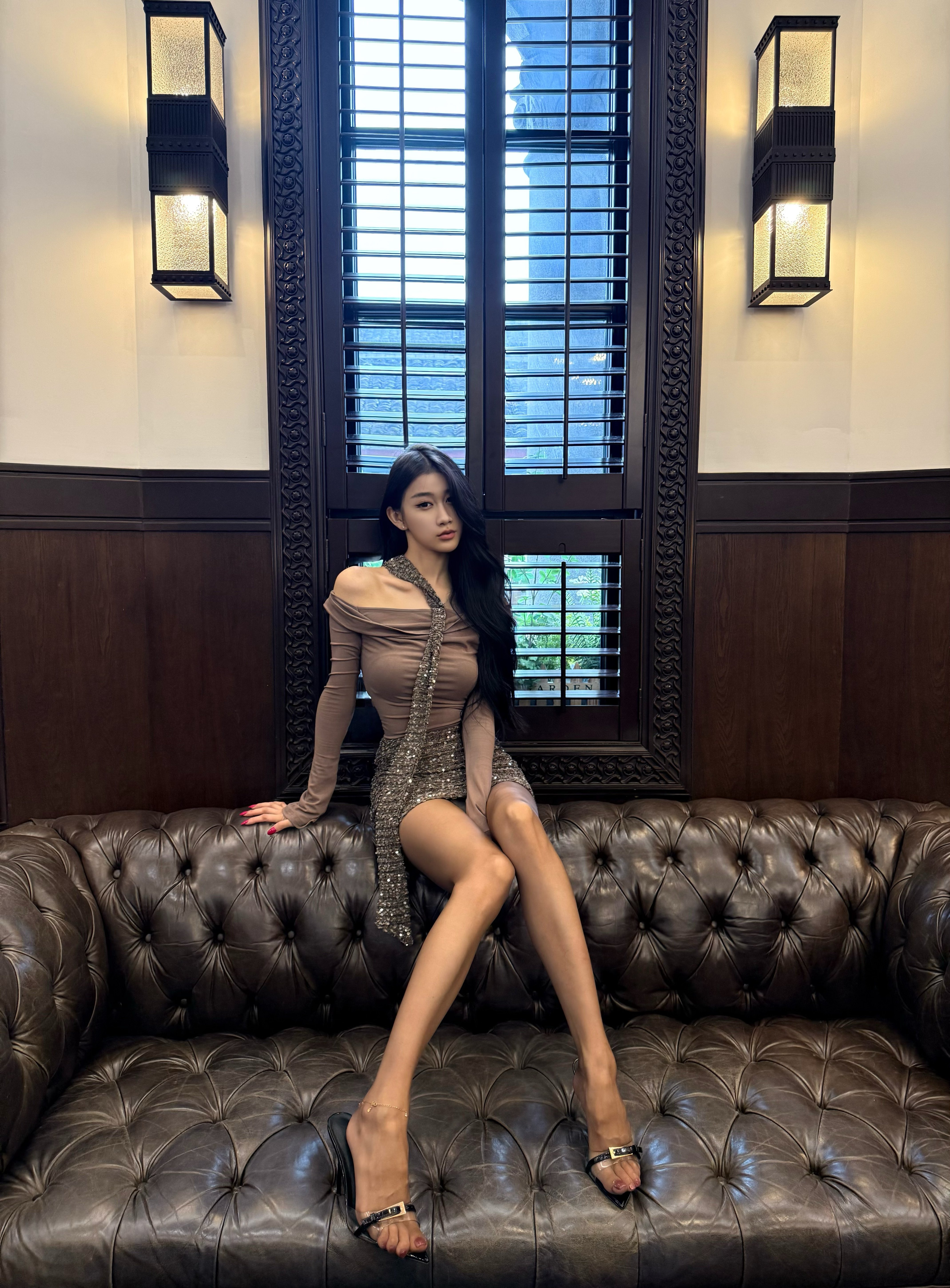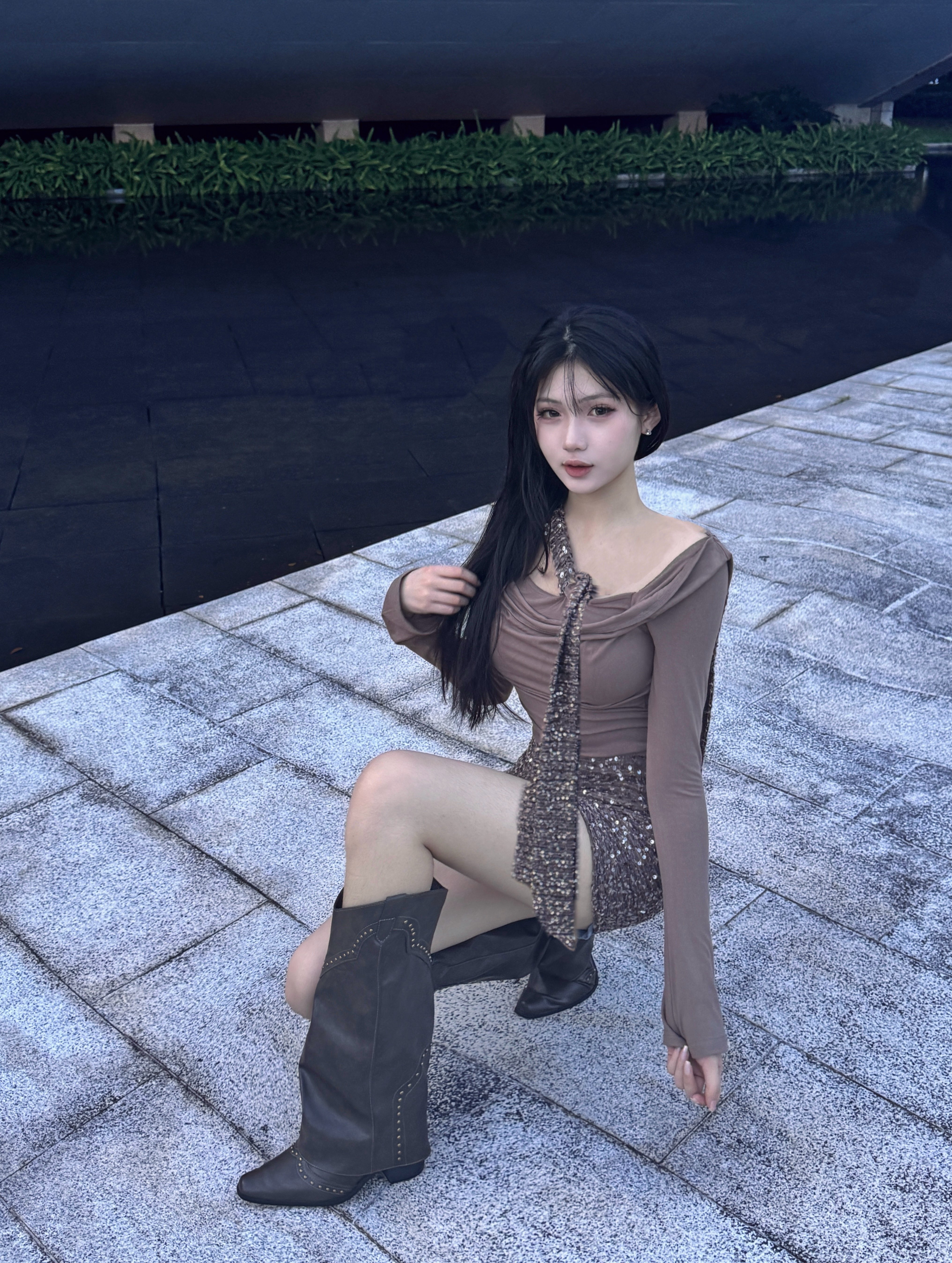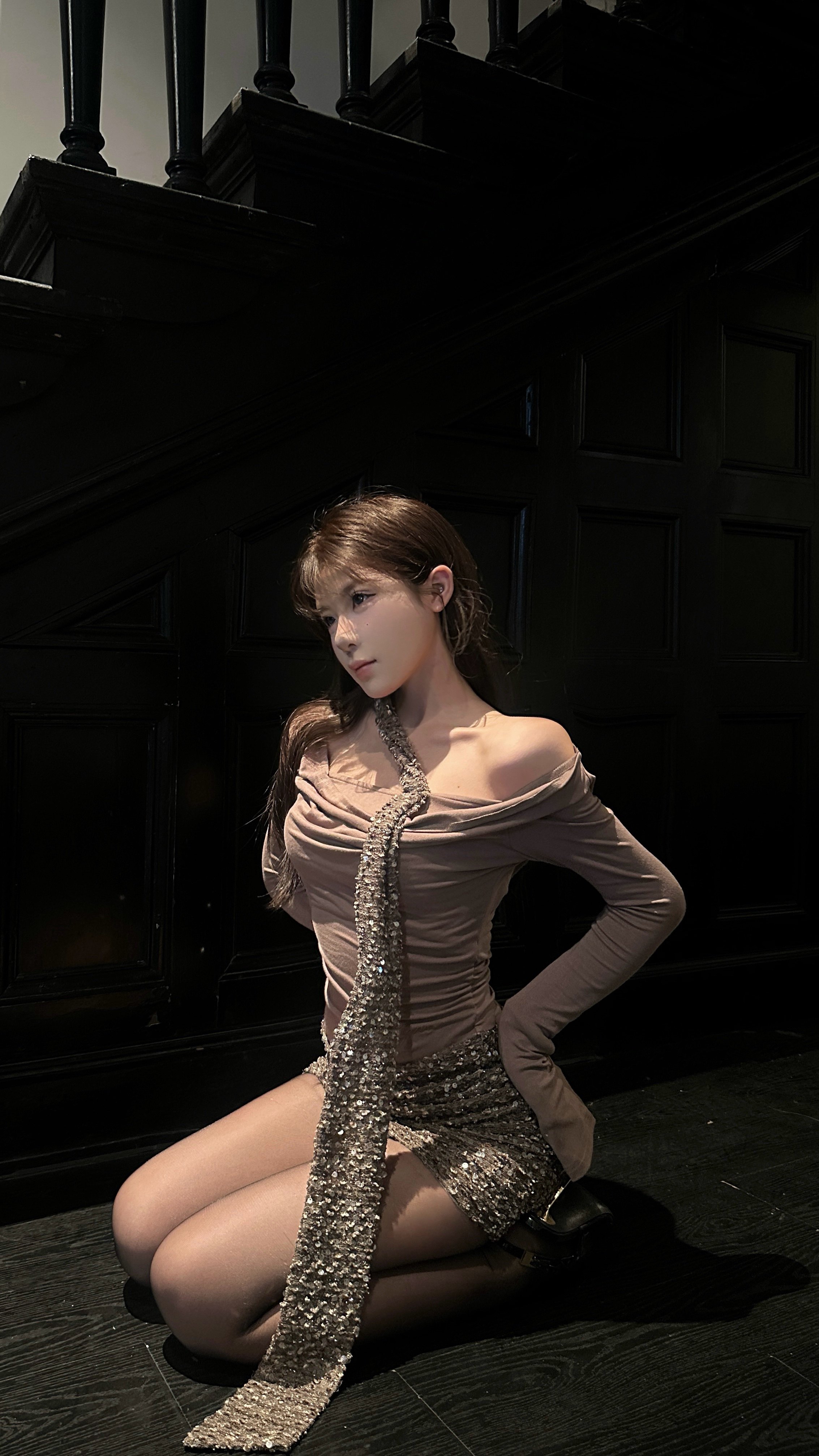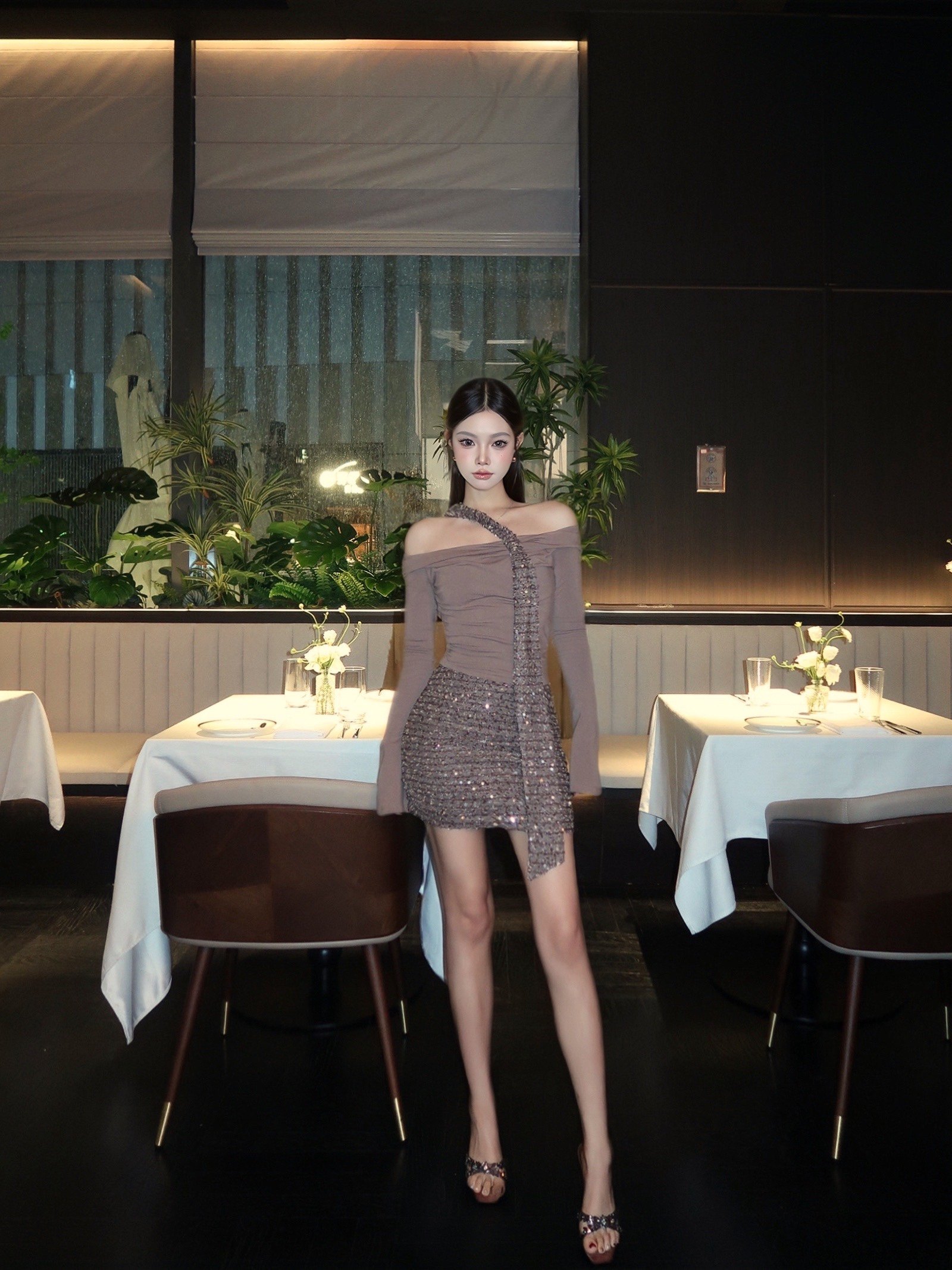 CYNR 原创老钱风连衣裙太绝了!亮片拼接自带贵气光泽,荡领 + 扭结飘带 + 一字肩设计,性感又雅致。修身包臀版型勾勒窈窕曲线,细节满满显质感。日常约会、轻社交场合都适配,轻松拿捏不费力的高贵氛围感,是提升格调的吸睛单品~