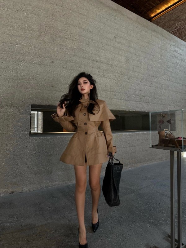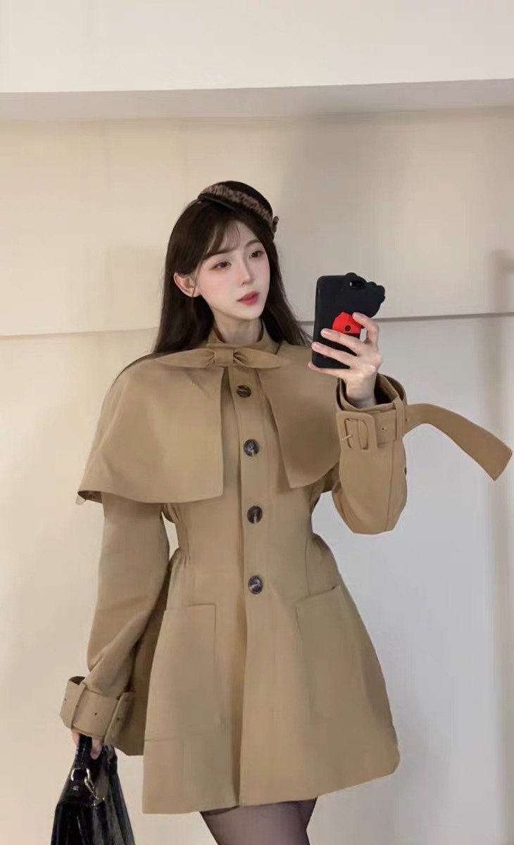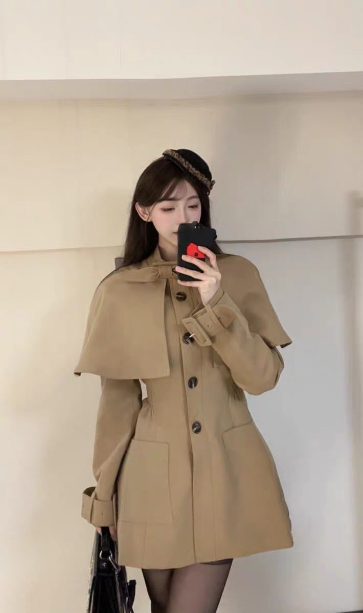 英伦复古感满分,卡其色百搭又显气质。斗篷设计别致,腰部细节很精致,通勤出游都能穿