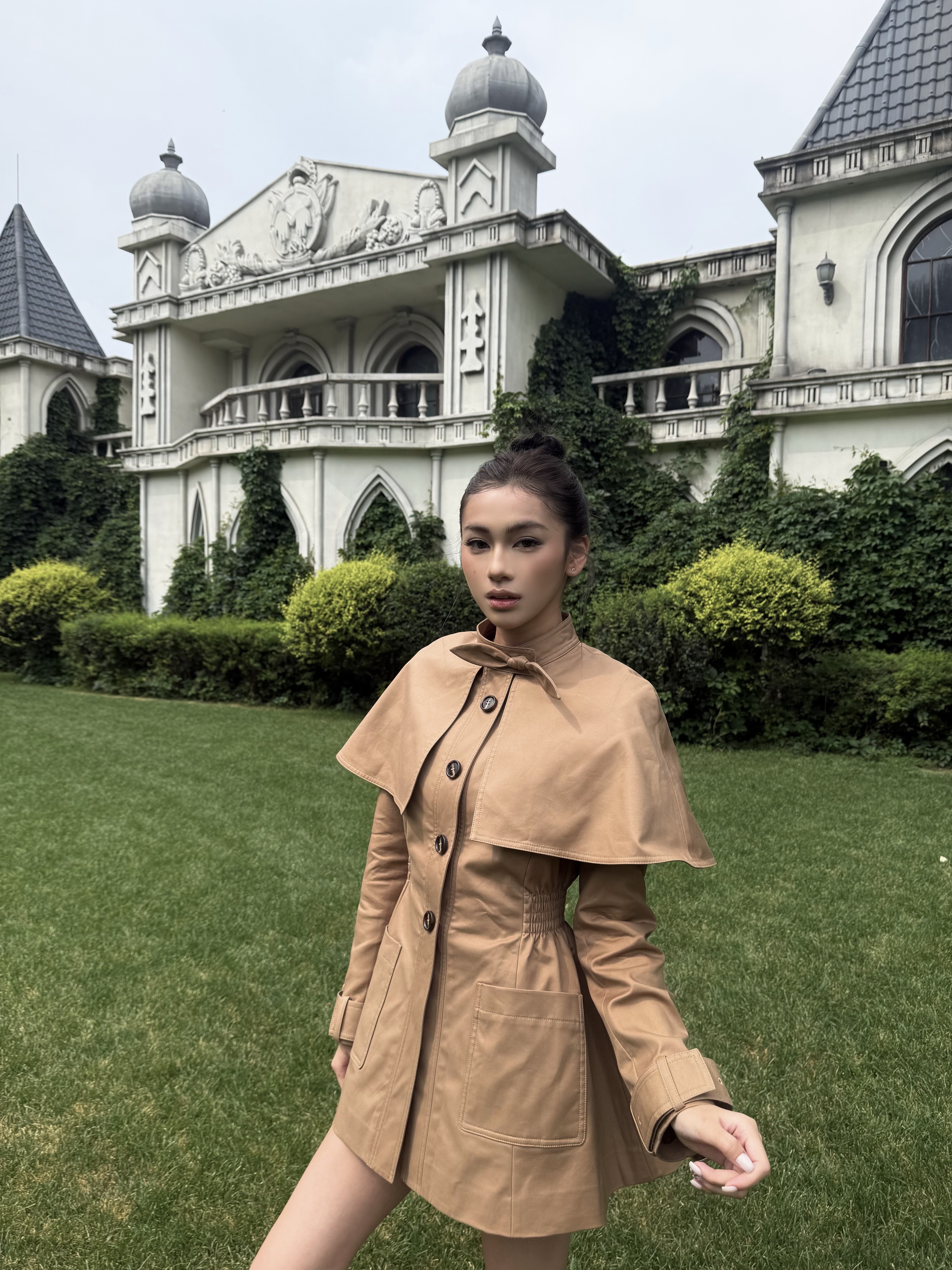 这件卡其色风衣真的绝了,斗篷➕披肩的设计独特,穿上身千金感满满