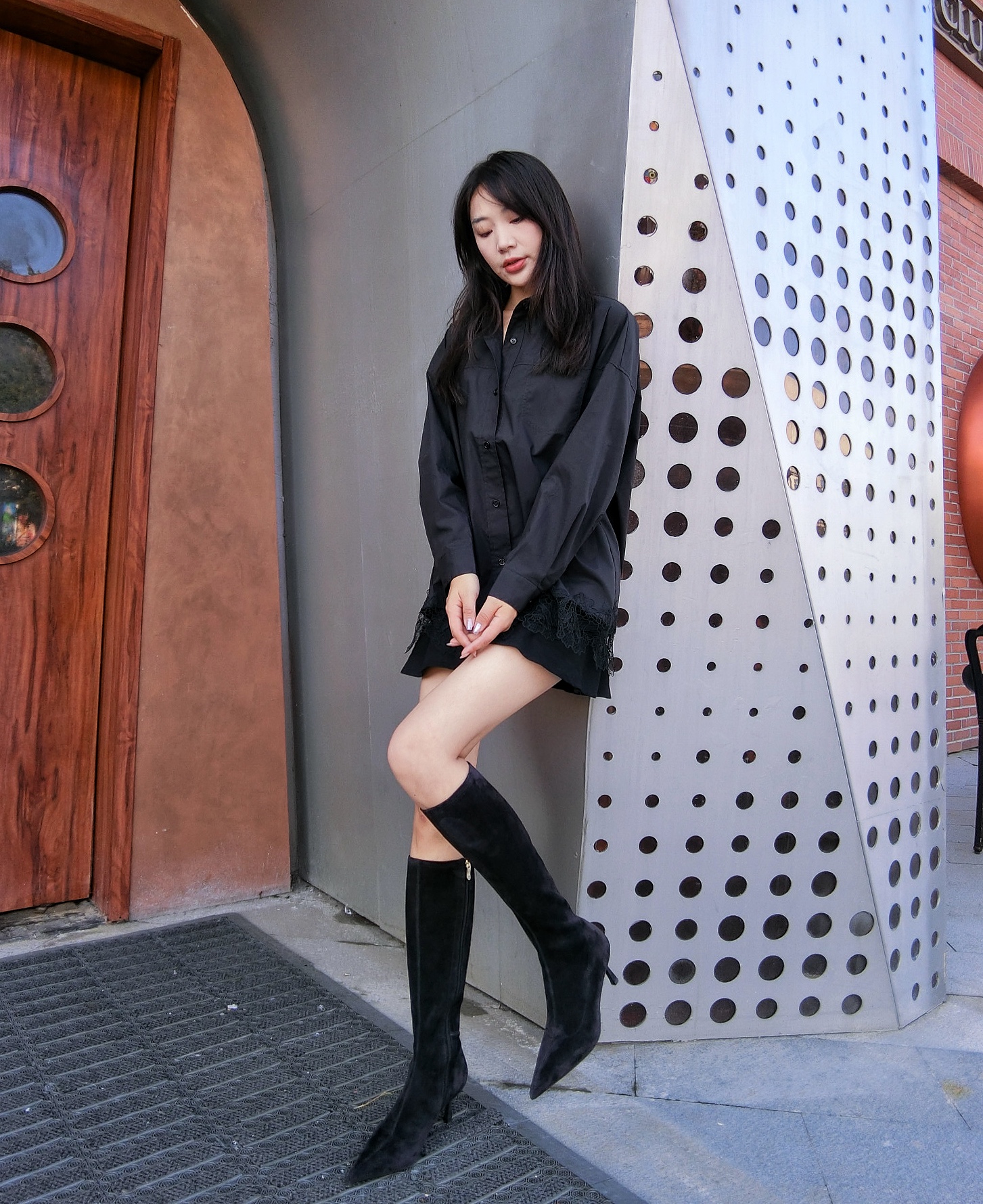 这款长靴深得我意,穿上腿也太显瘦了吧,分分钟变大长腿儿的感觉,靴子款式设计时尚大方,随意搭配就如此nice
