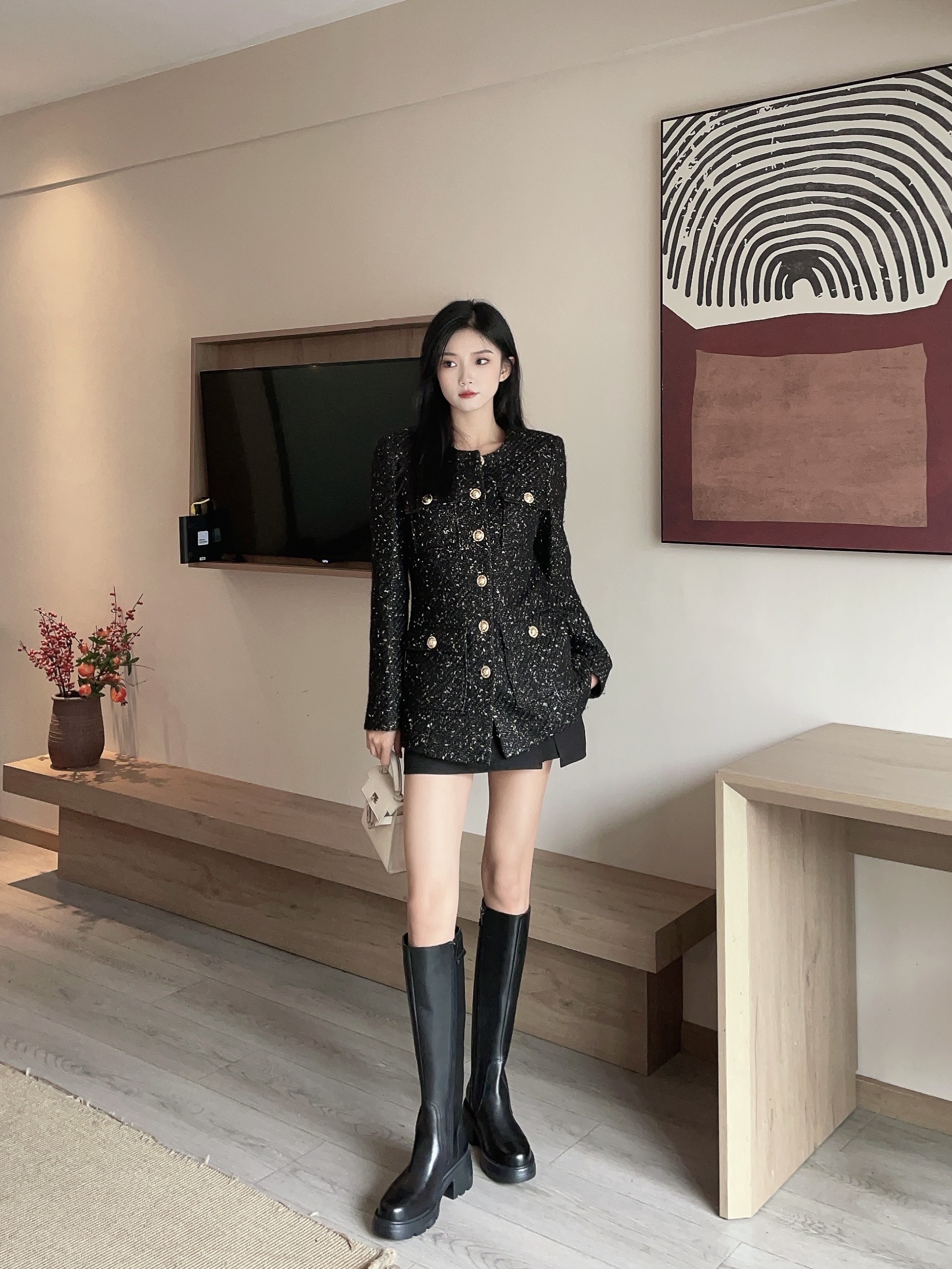 很百搭的黑靴,细节处理的很到位,显腿细腿长,走起来很舒服,是我想要的感觉,很适合秋冬搭配~
