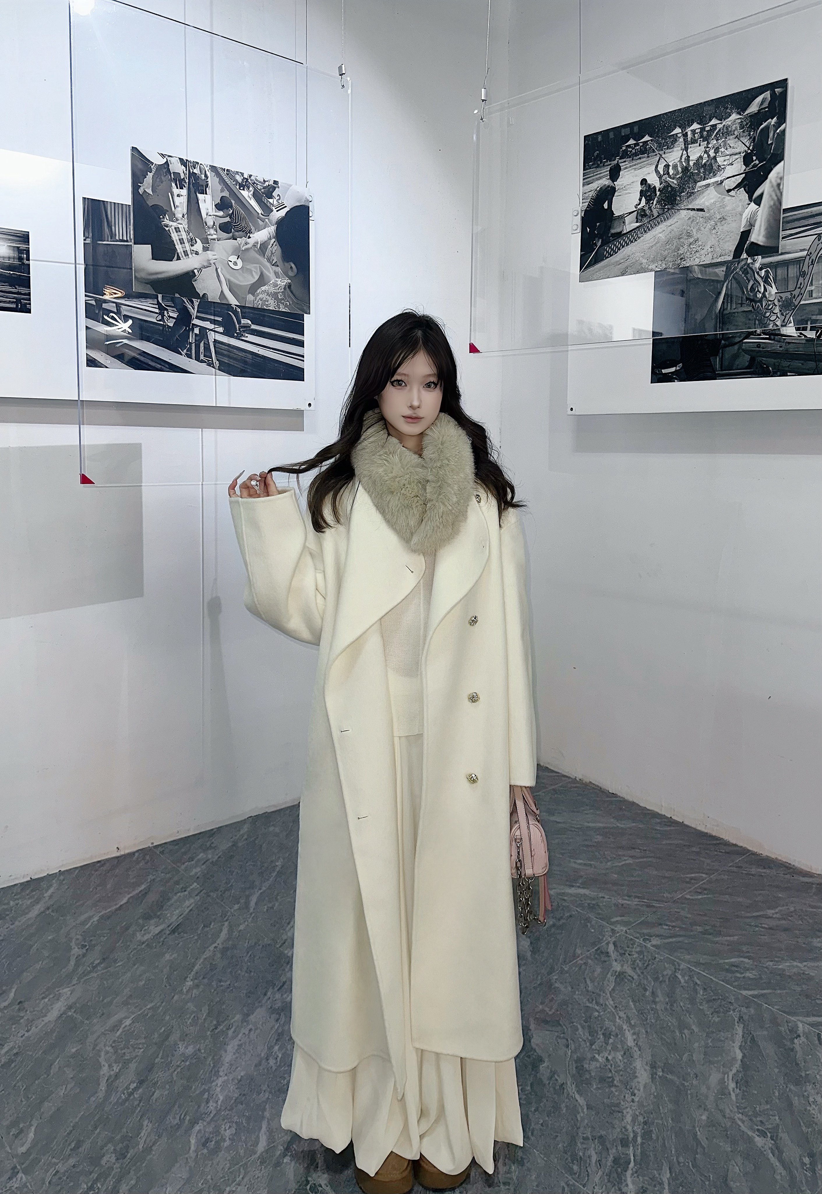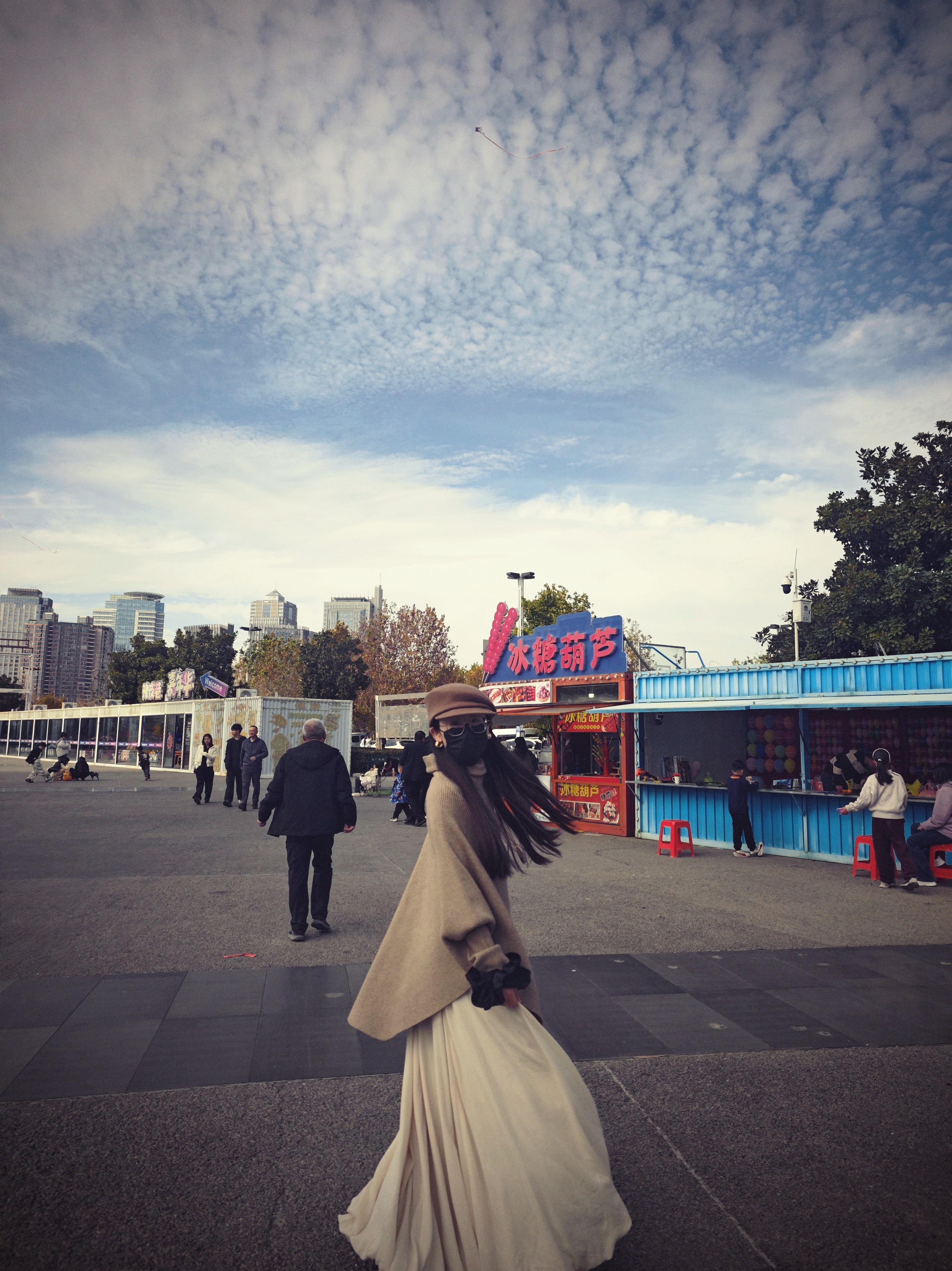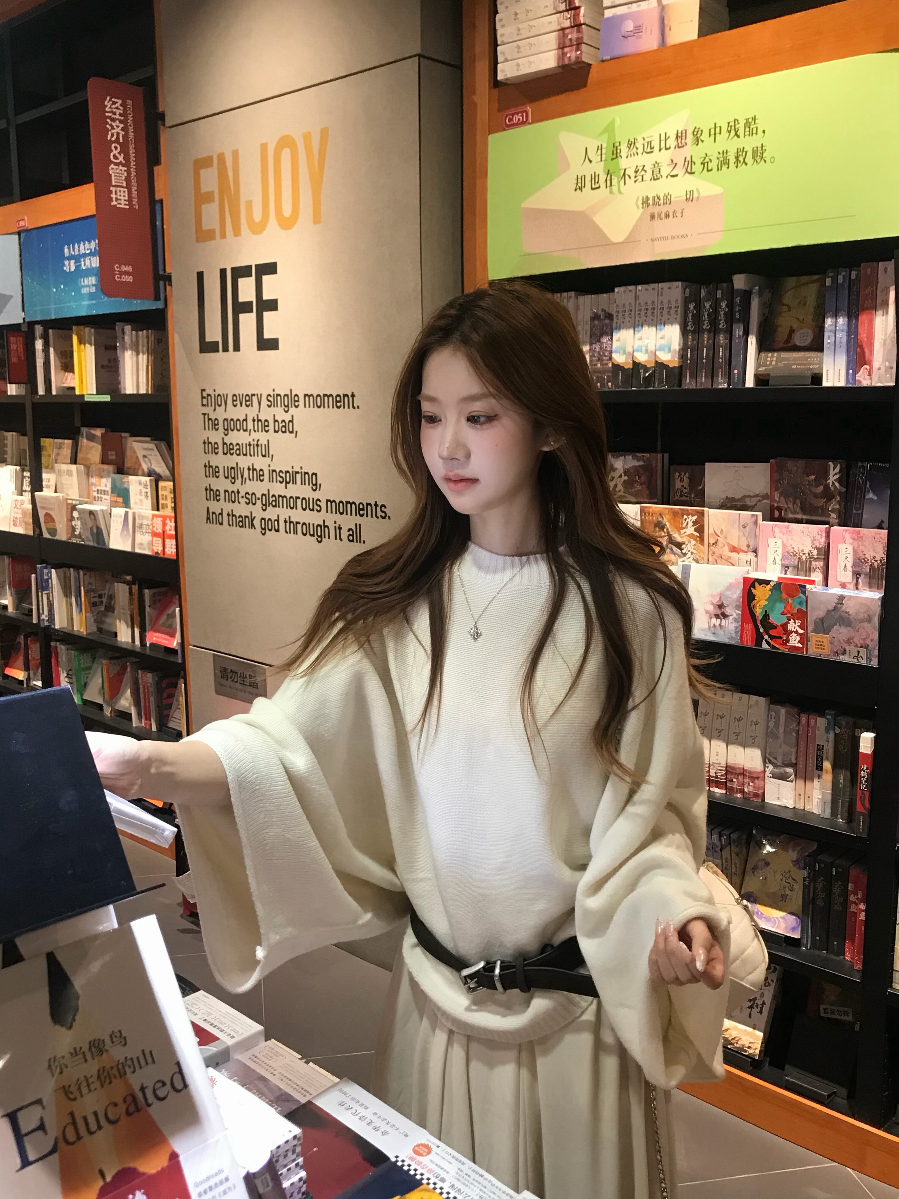 这条米白色半身裙真的太戳我了!颜色是那种很温柔的米白,不是惨白,带着点暖意,显得整个人气质都柔和起来了。面料垂坠感很好,摸起来软软糯糯的,秋冬穿保暖又舒服。
