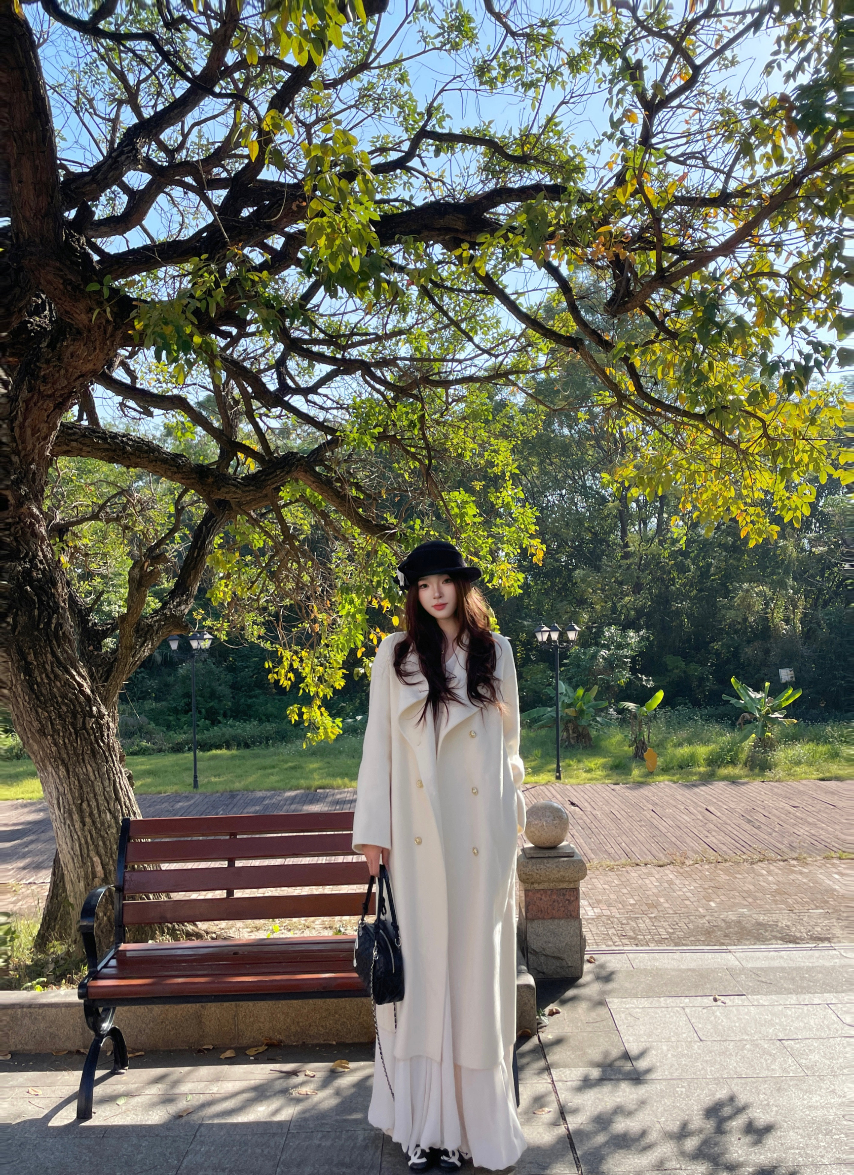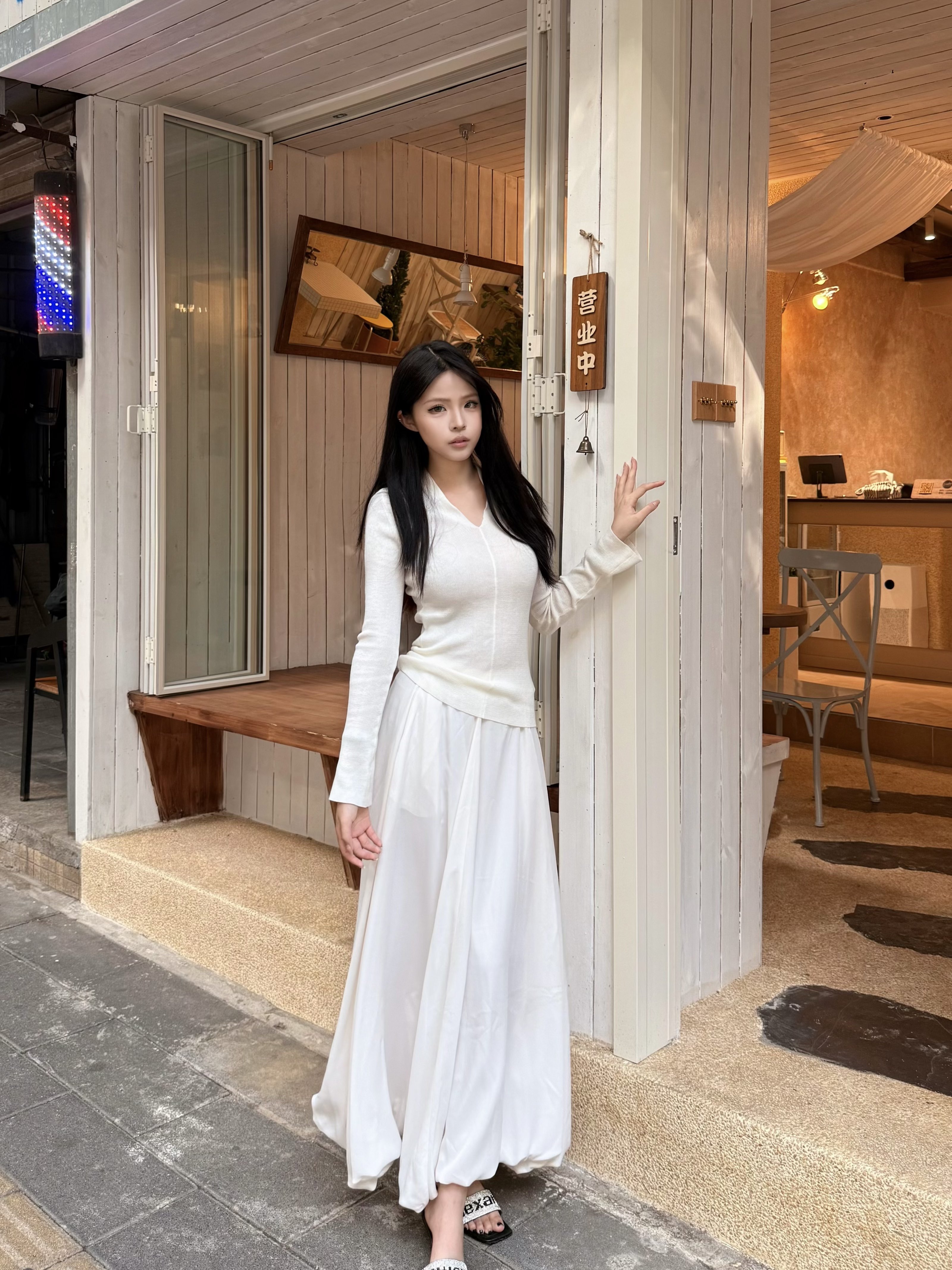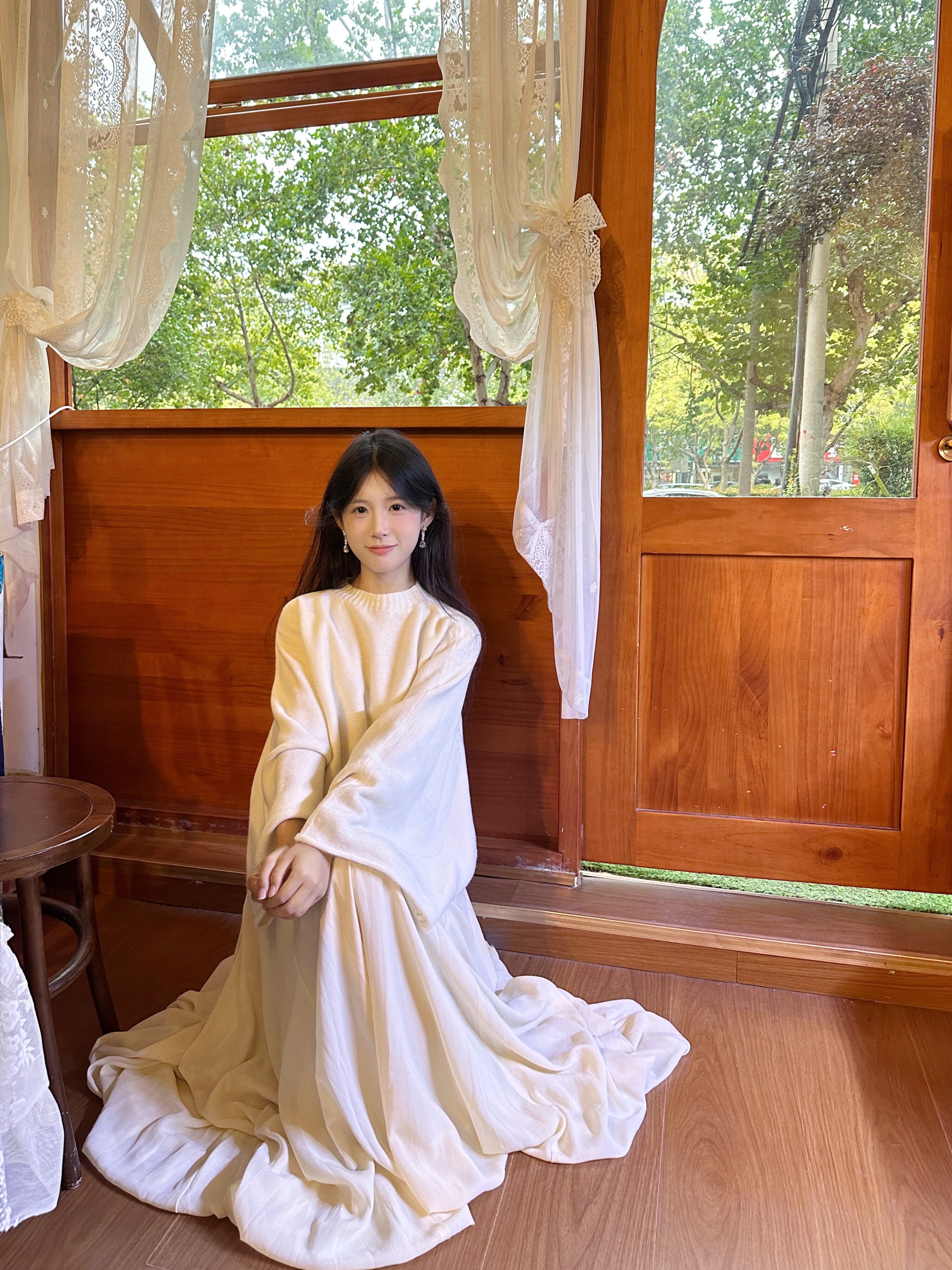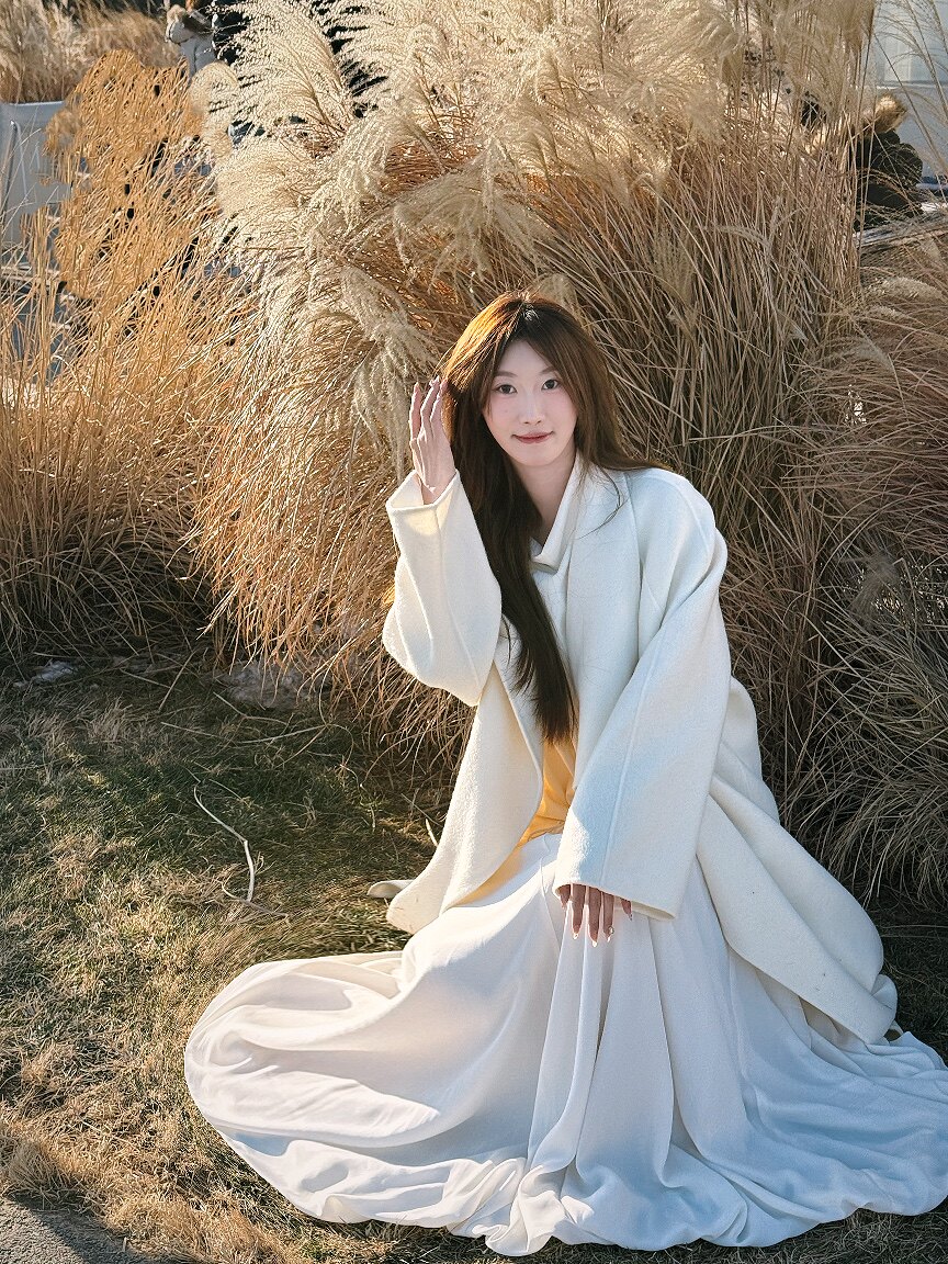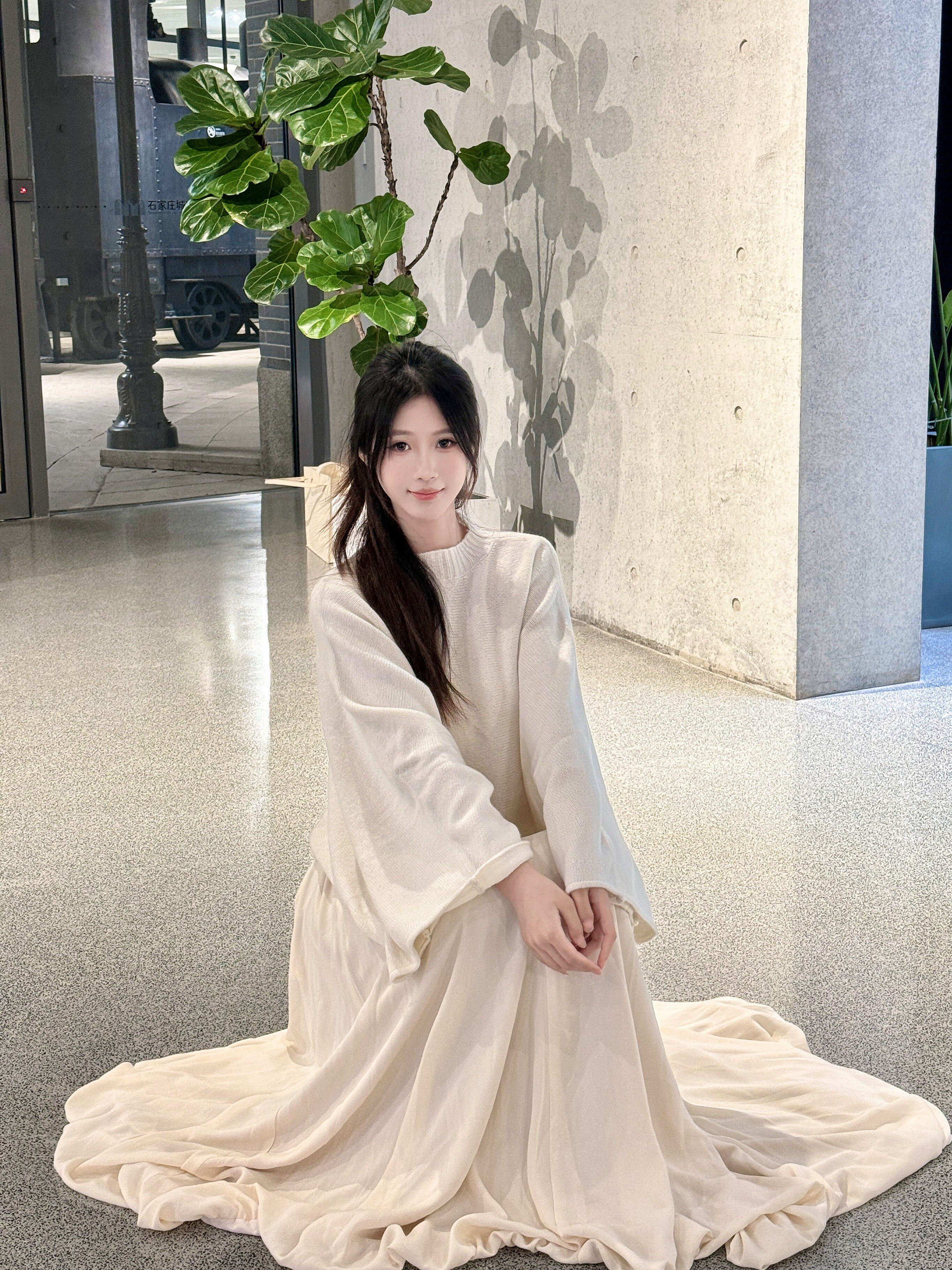 这条白色长裙太适合拍照了,裙摆铺开超有仪式感,面料轻薄但不透,小个子穿也不会压身高,搭配白上衣一套超和谐~