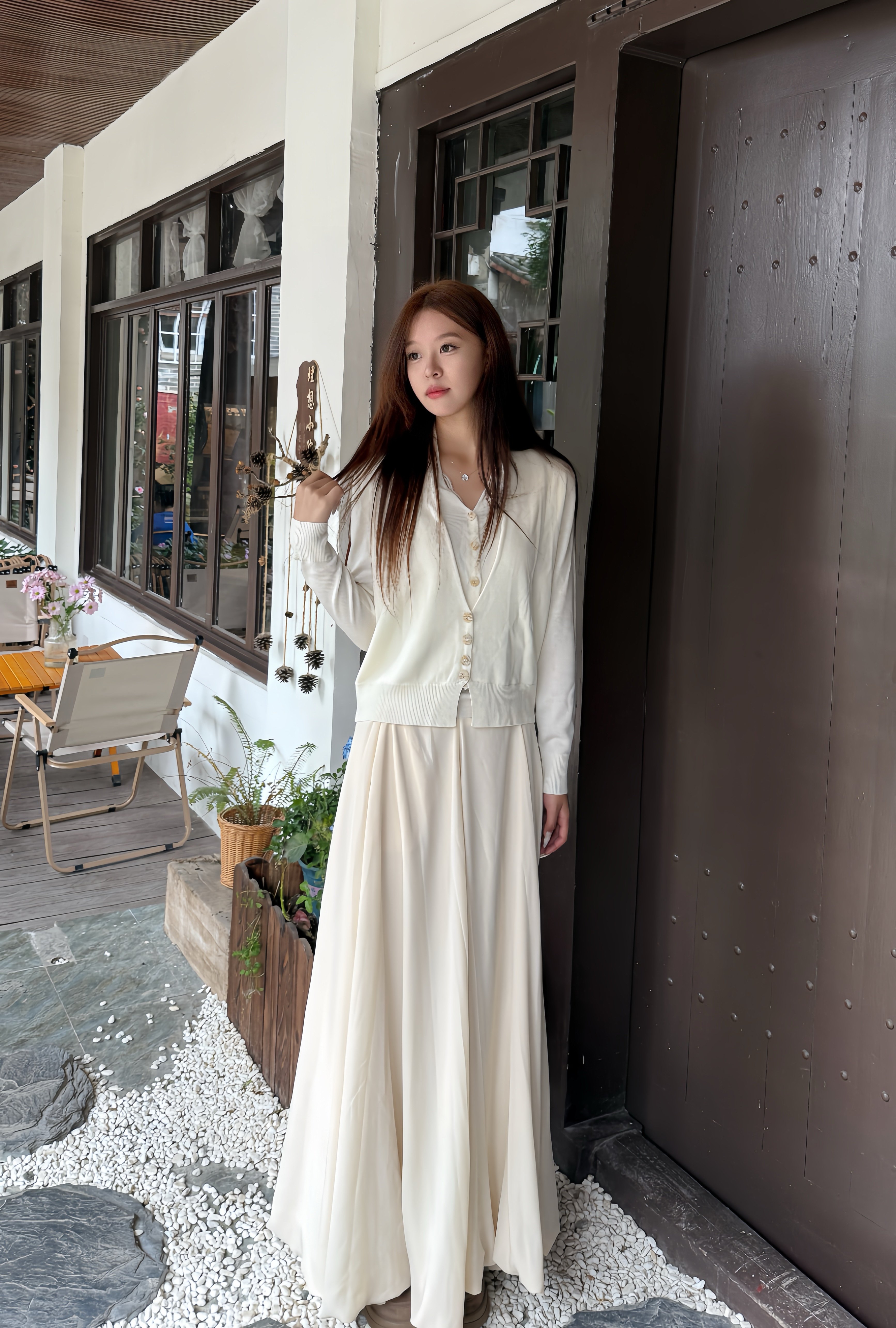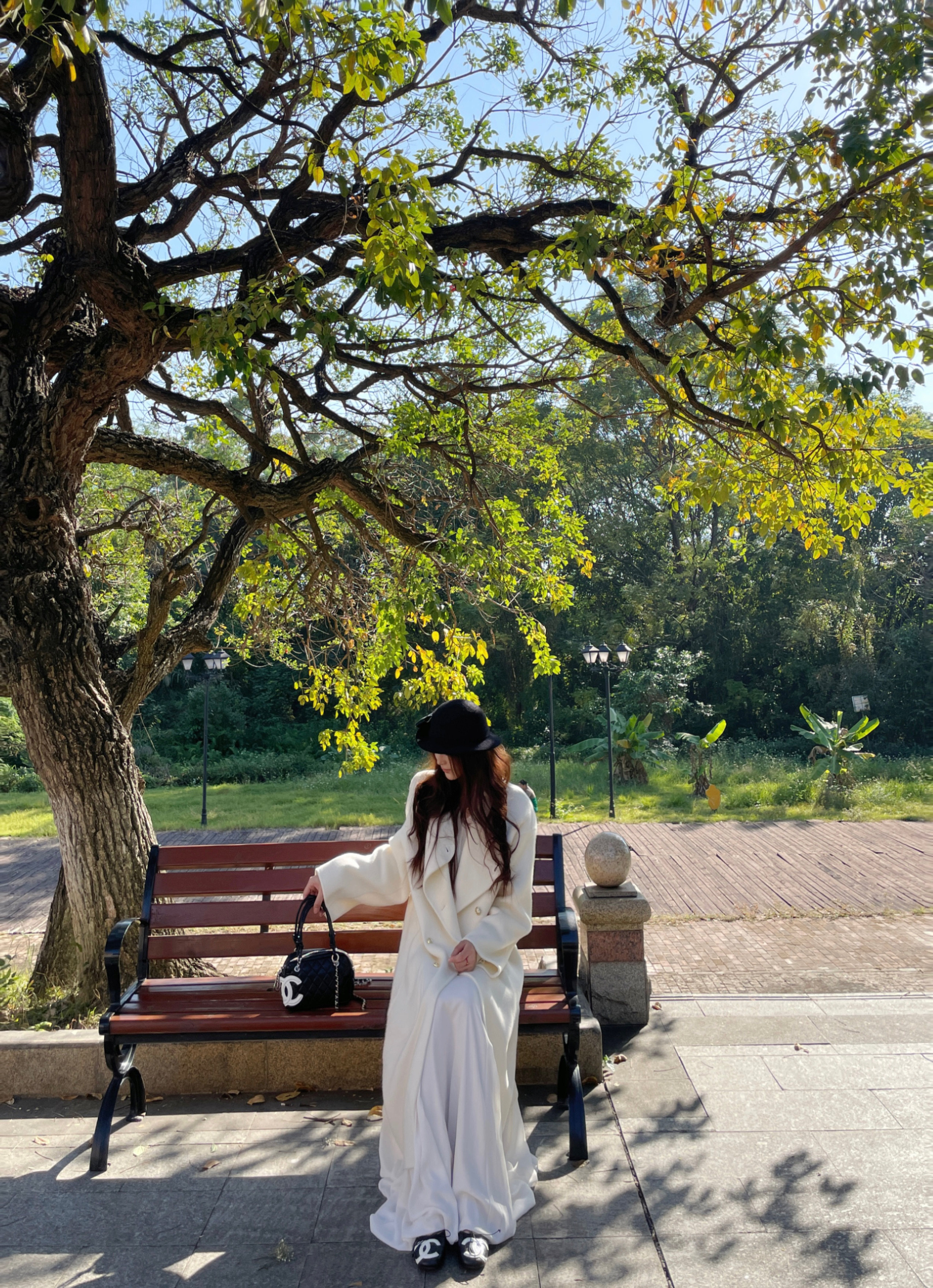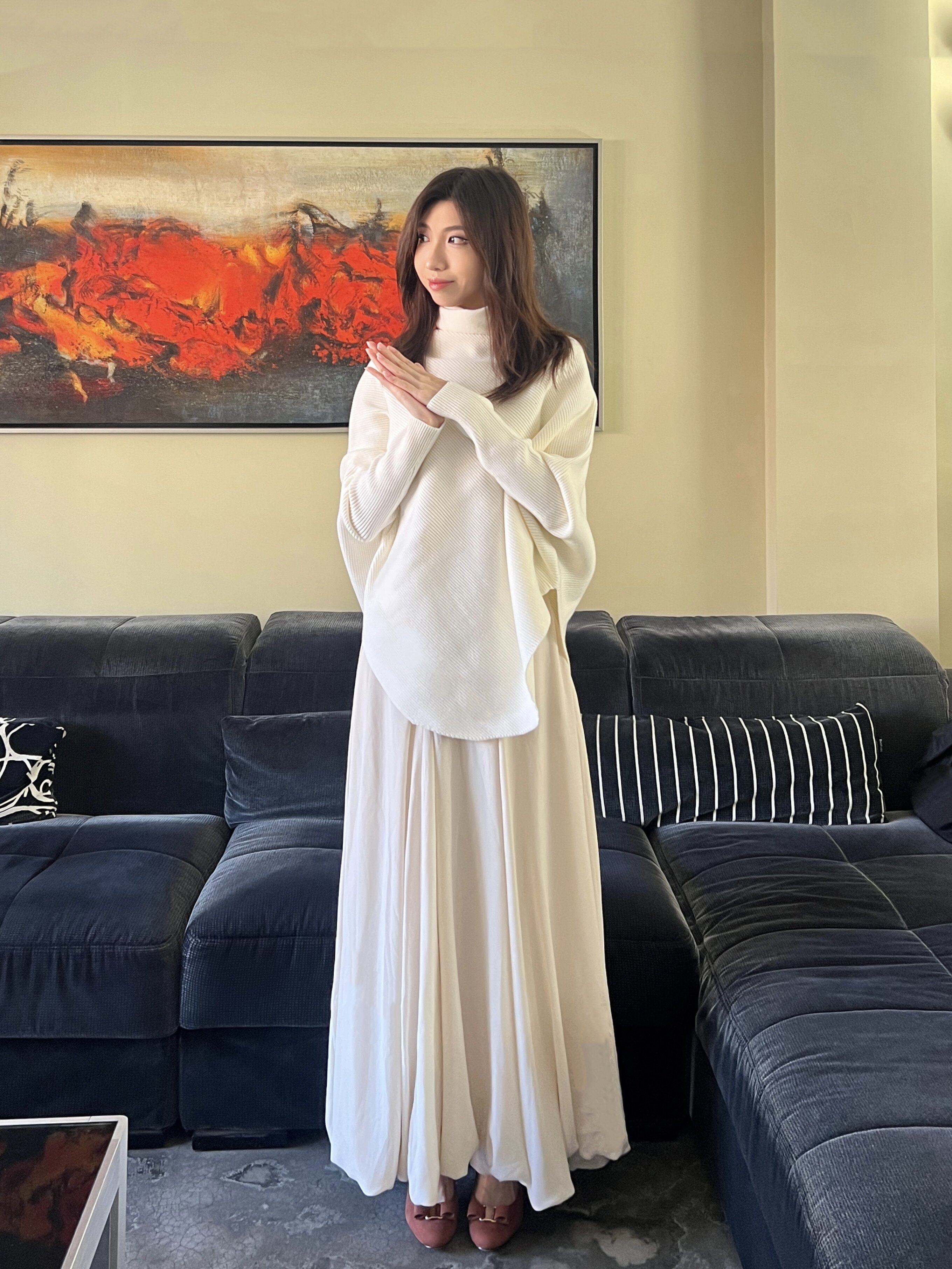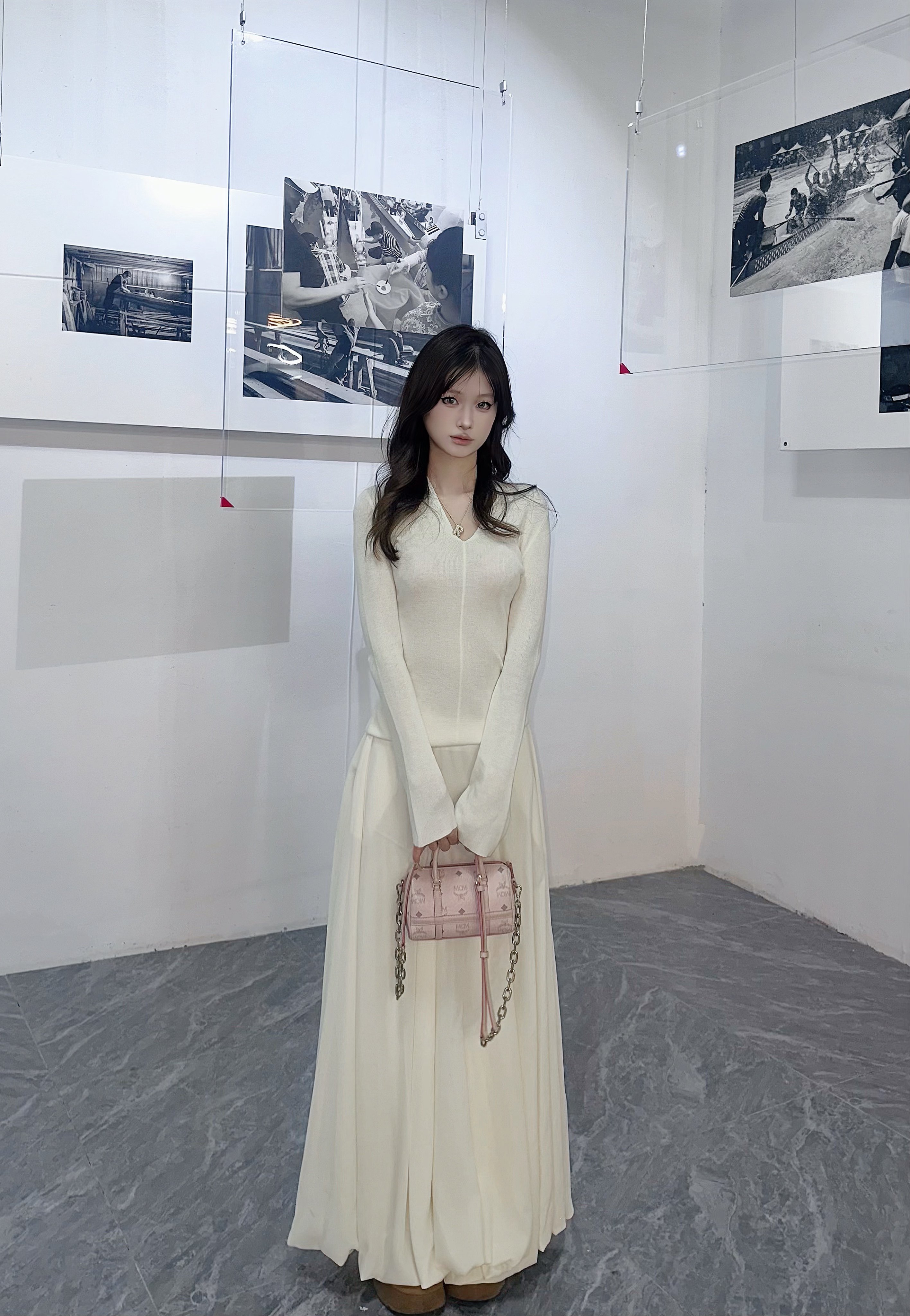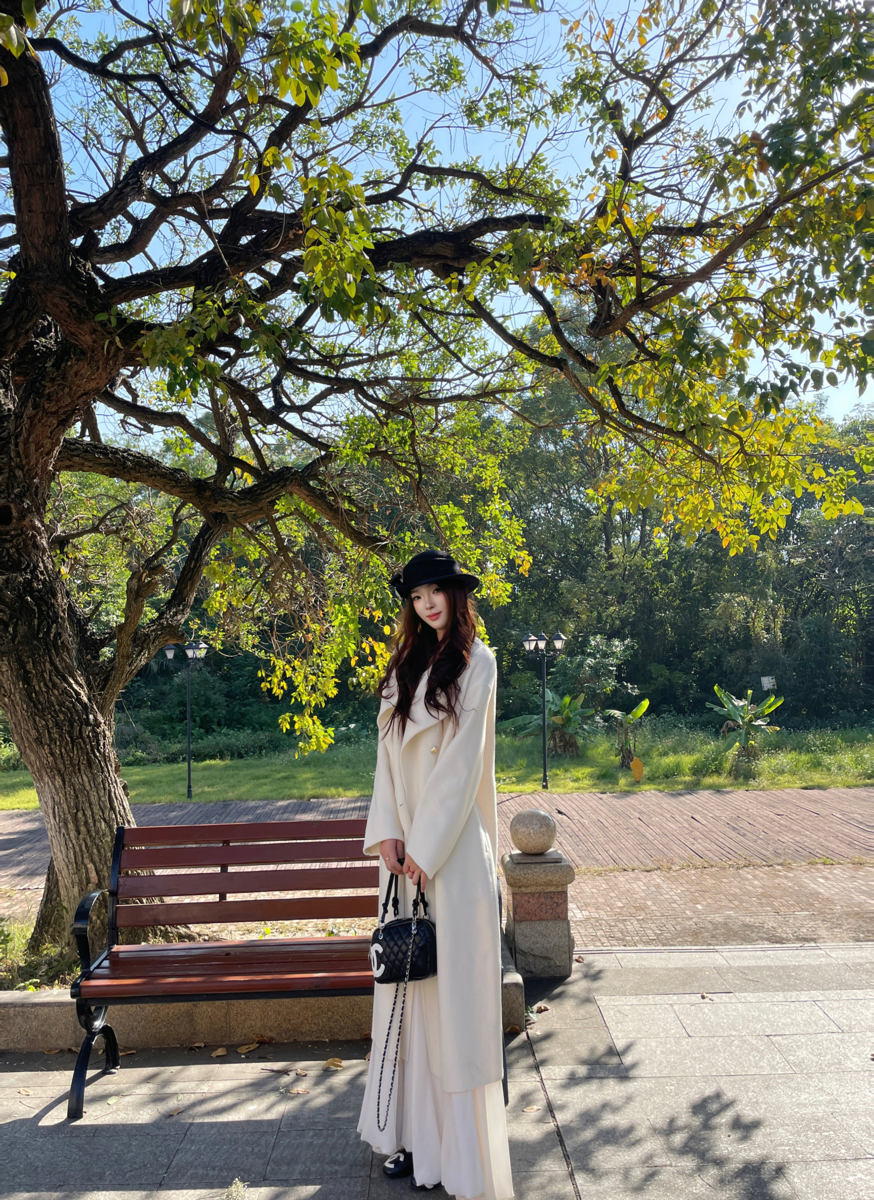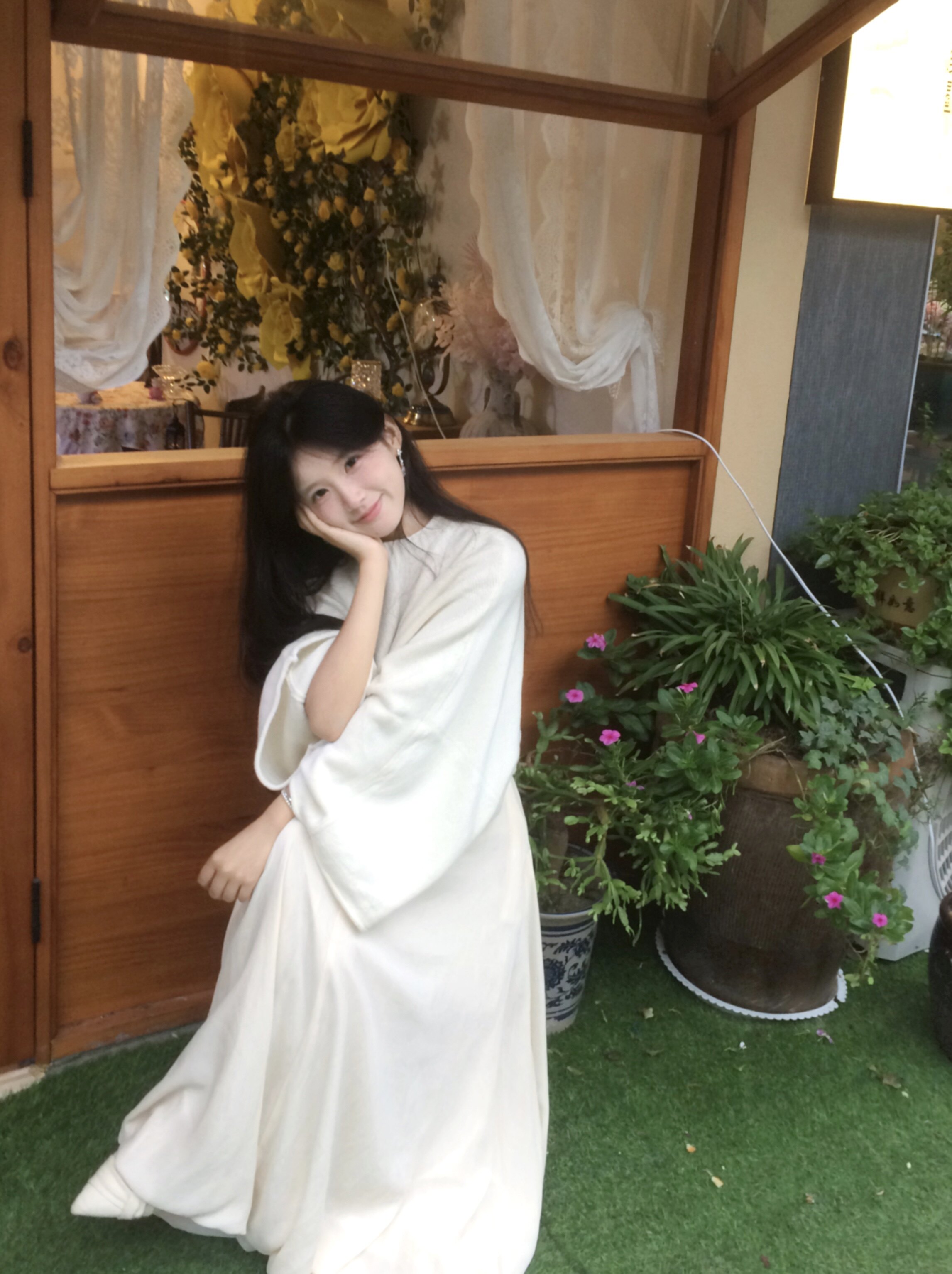 这条白色长裙太适合拍照了,裙摆铺开超有仪式感,面料轻薄但不透,小个子穿也不会压身高,搭配白上衣一套超和谐~