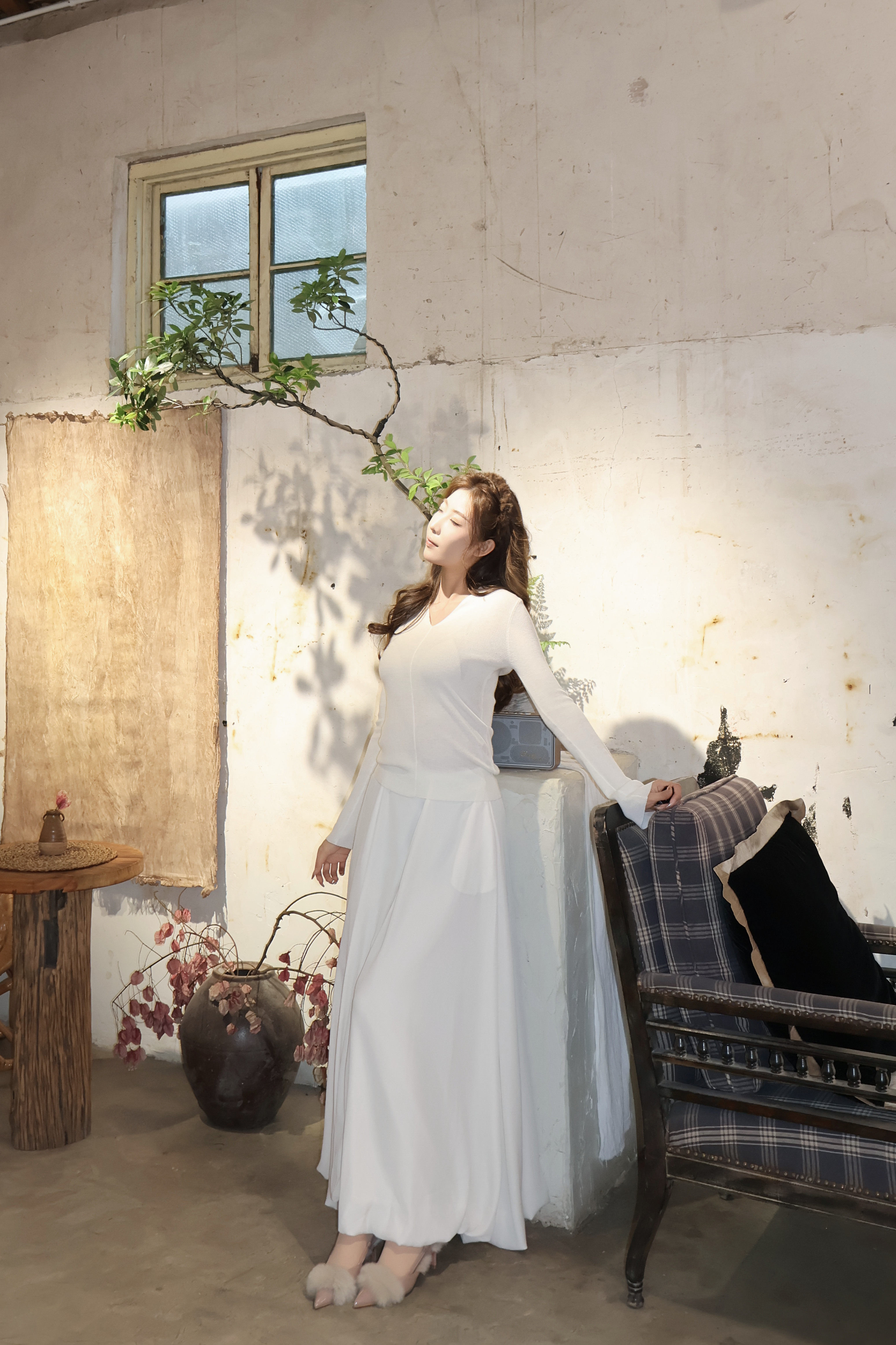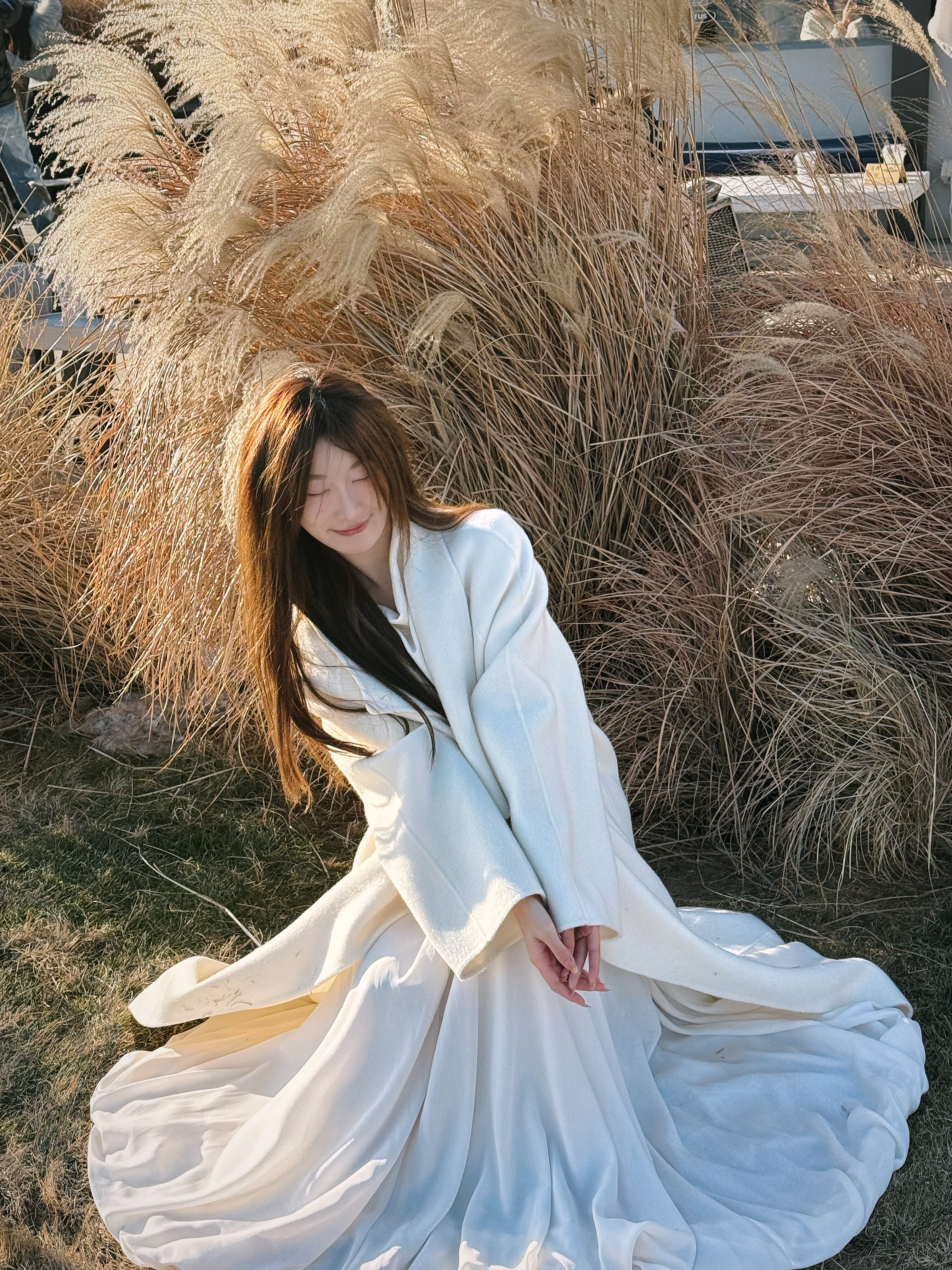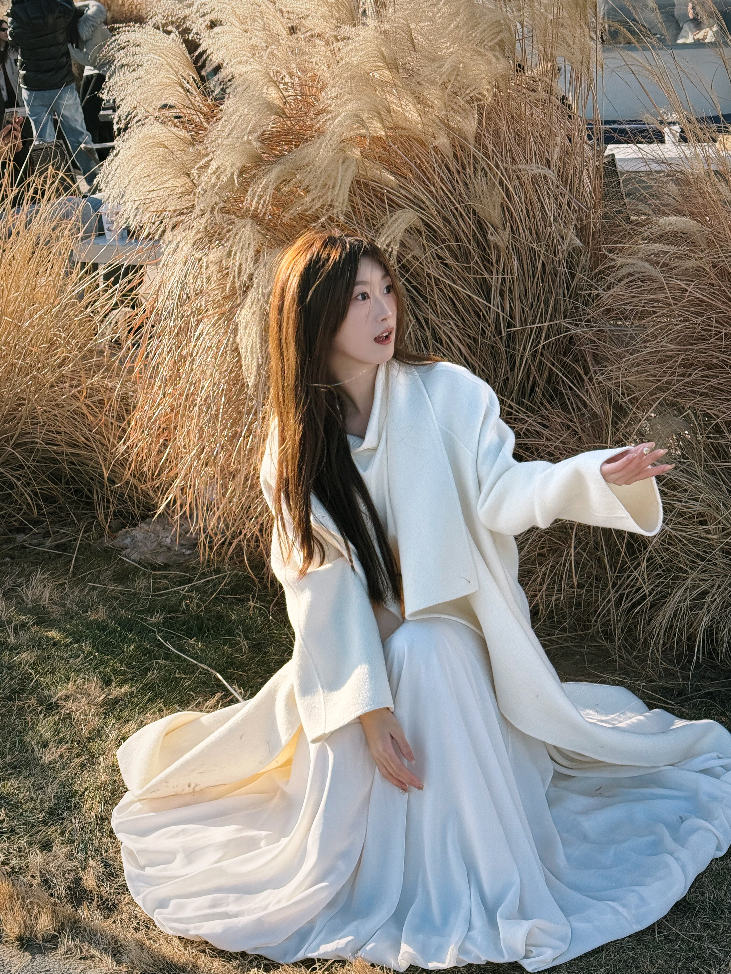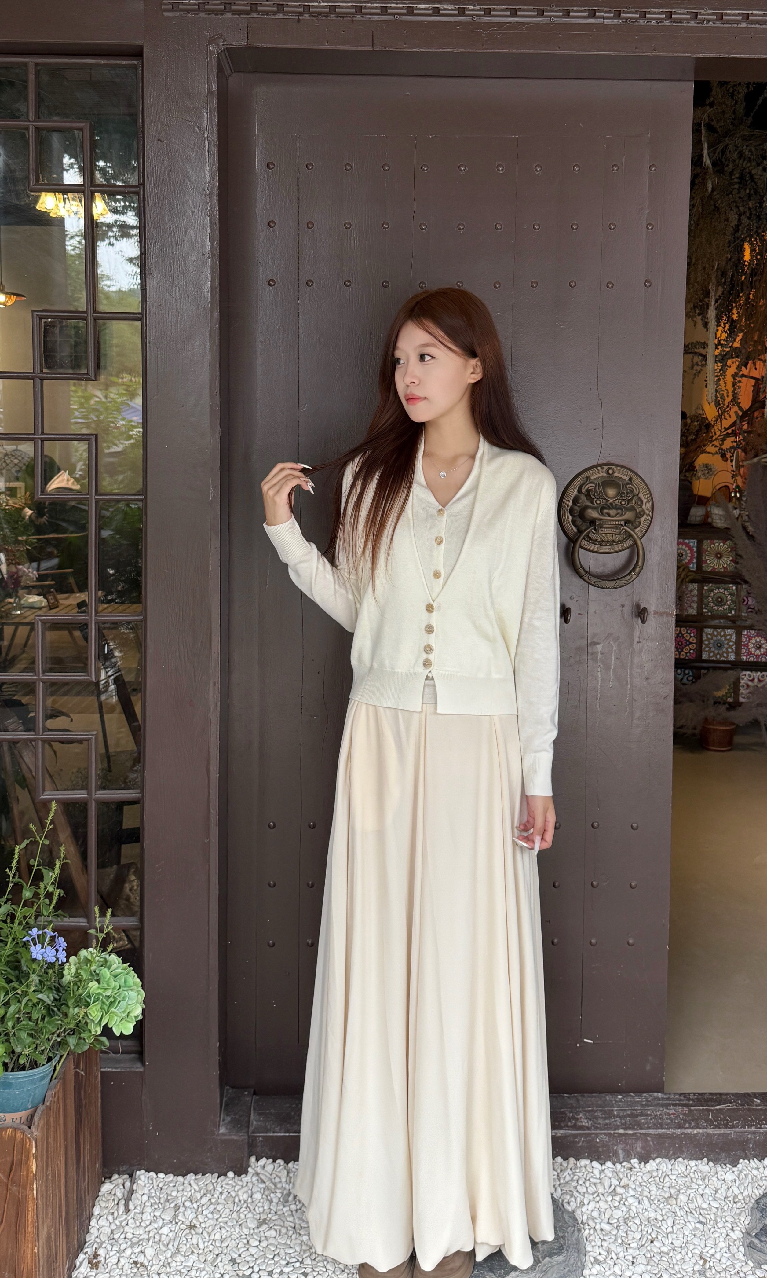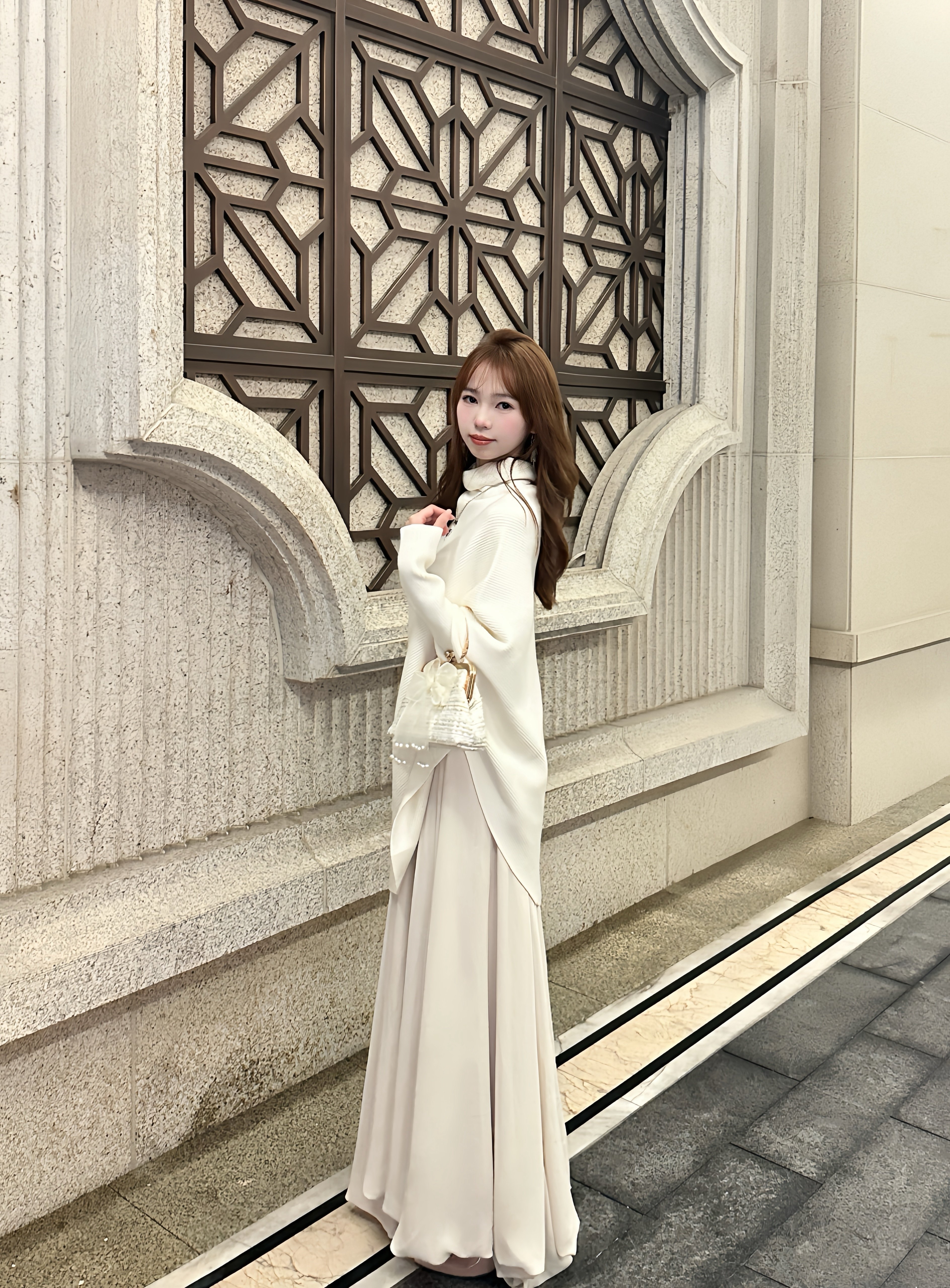 这条白色长裙太适合拍照了,裙摆铺开超有仪式感,面料轻薄但不透,小个子穿也不会压身高,搭配白上衣一套超和谐~