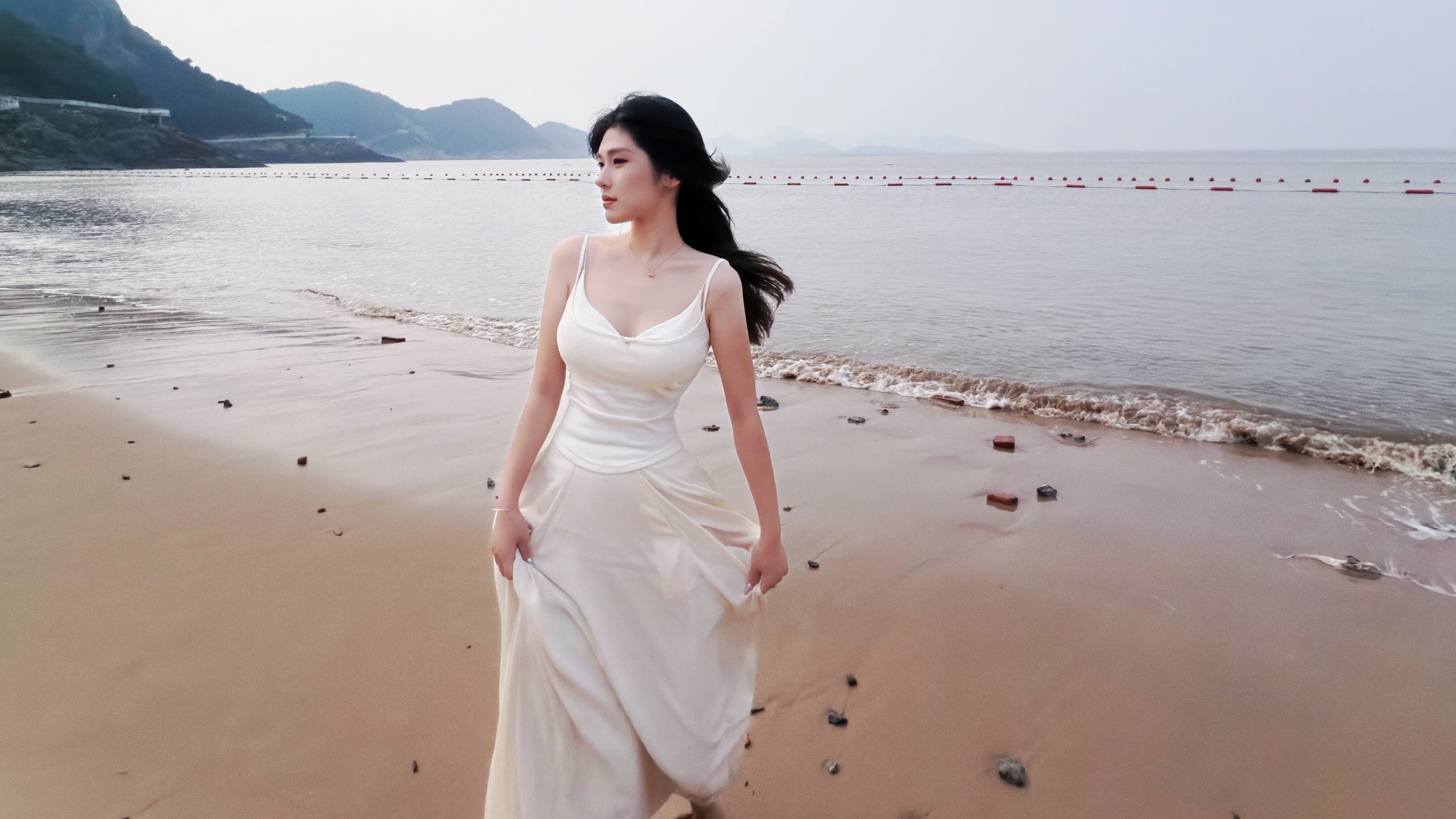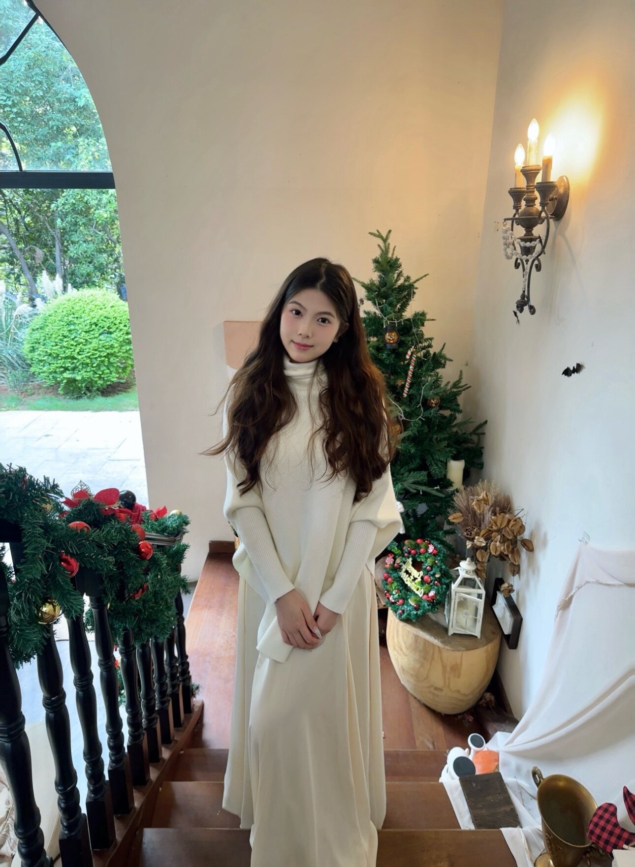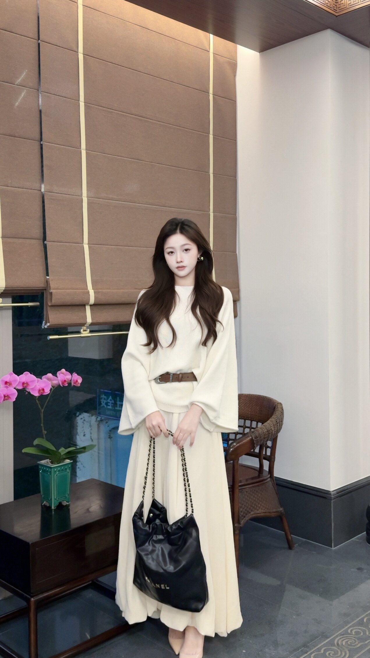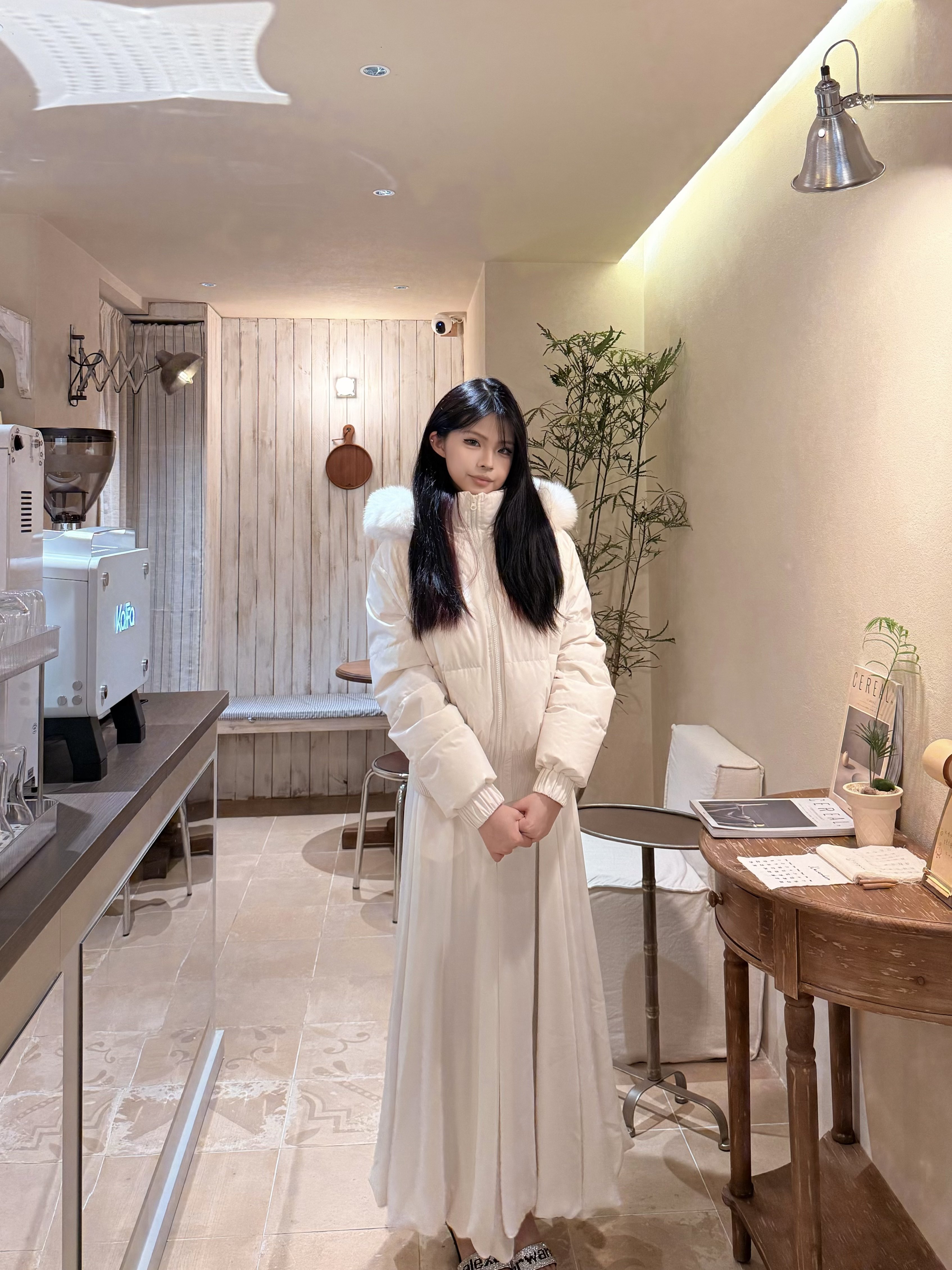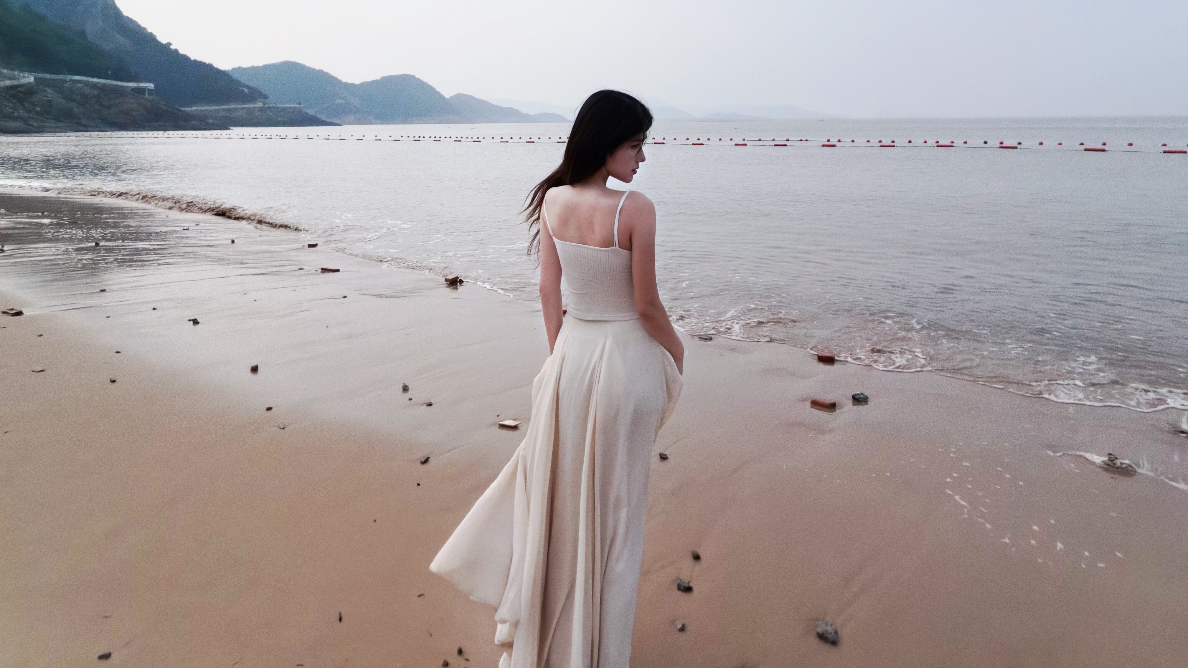 这条白色长裙太适合拍照了,裙摆铺开超有仪式感,面料轻薄但不透,小个子穿也不会压身高,搭配白上衣一套超和谐~