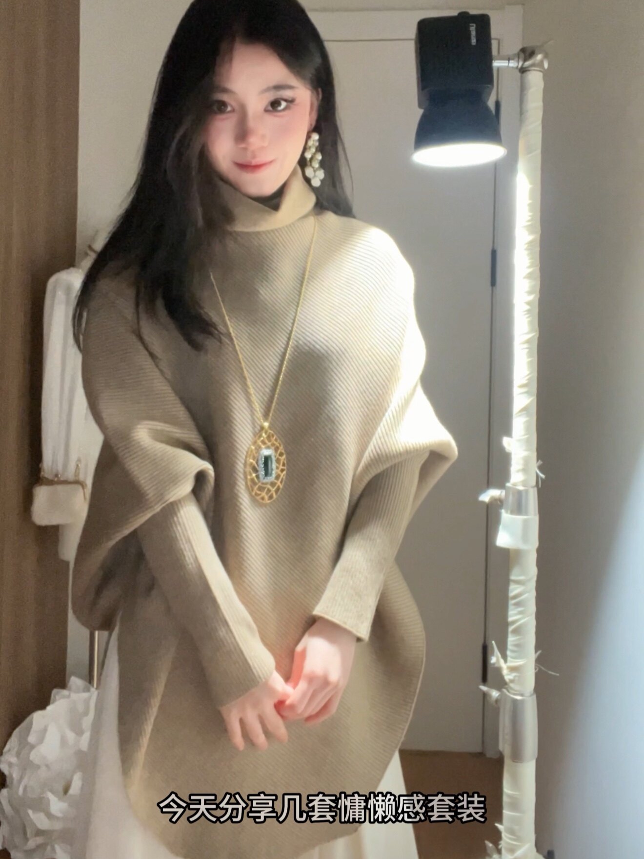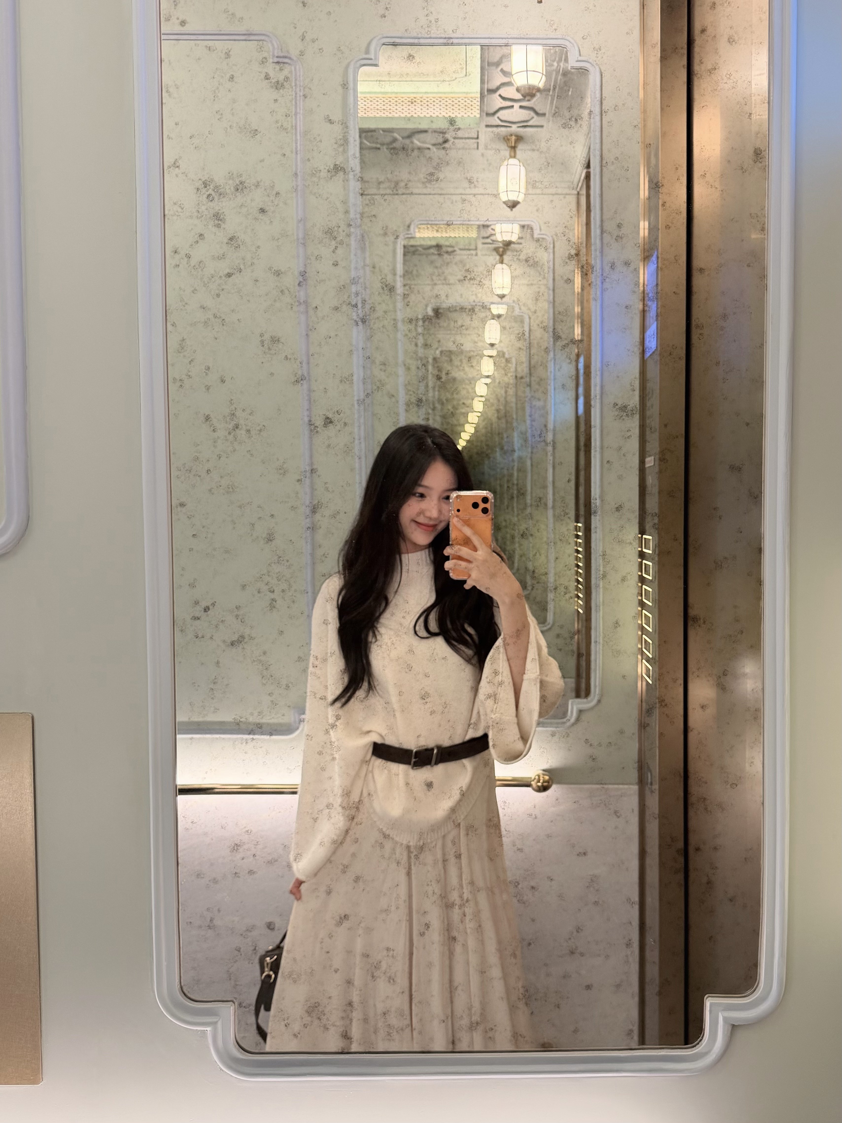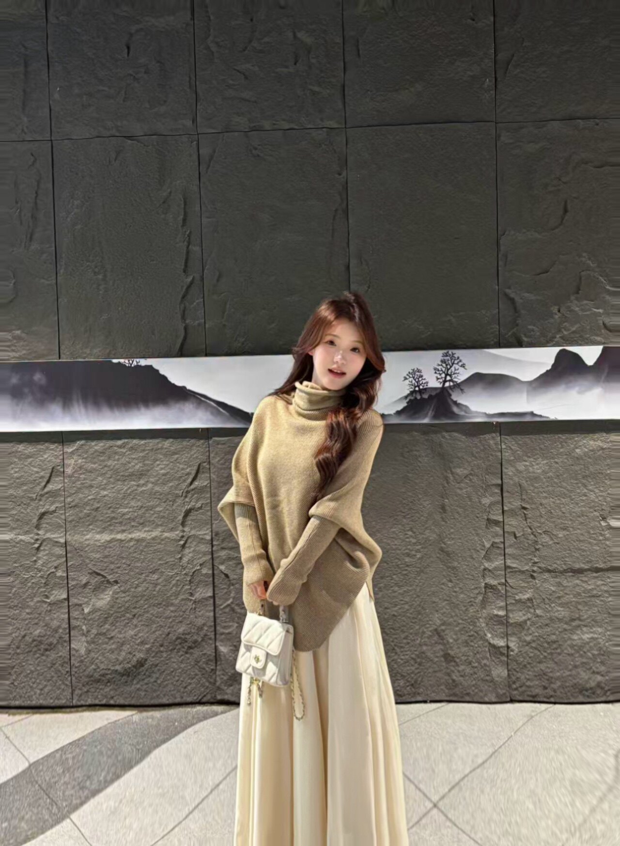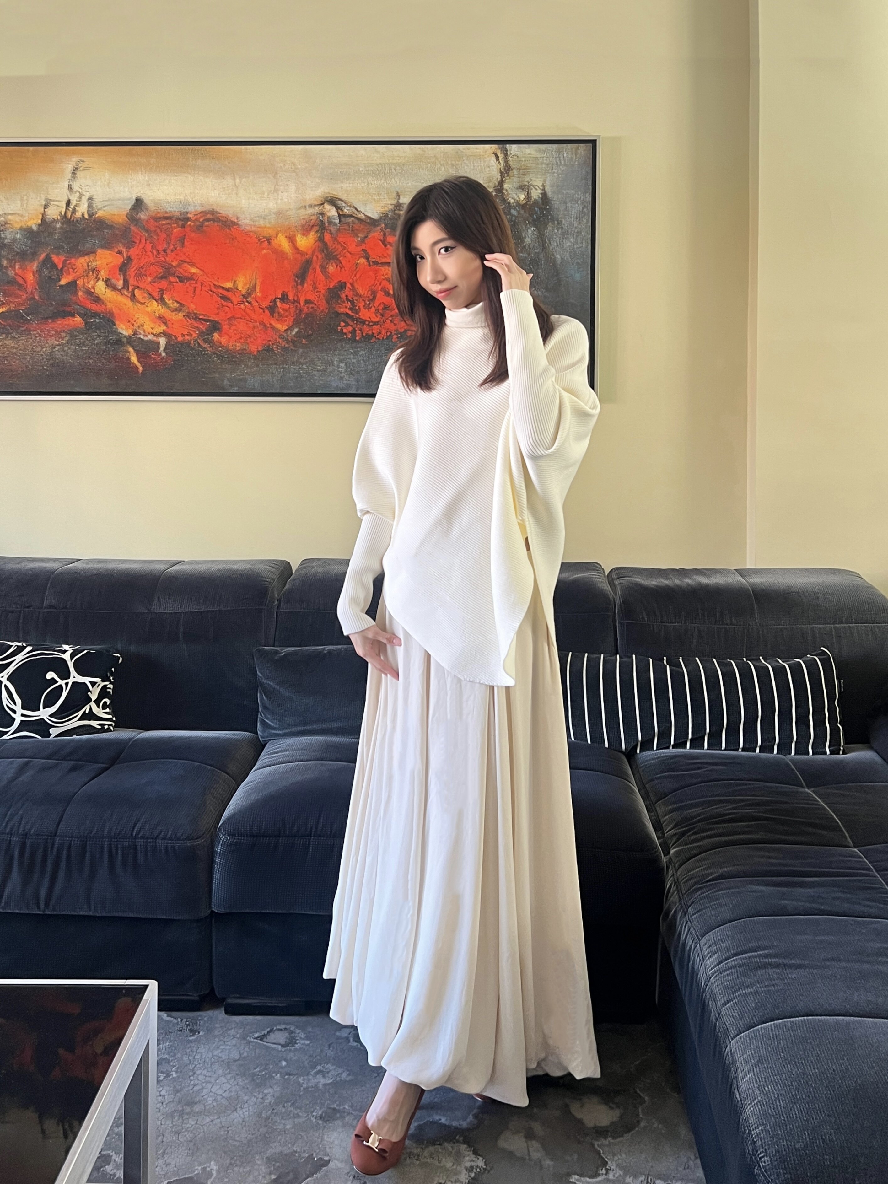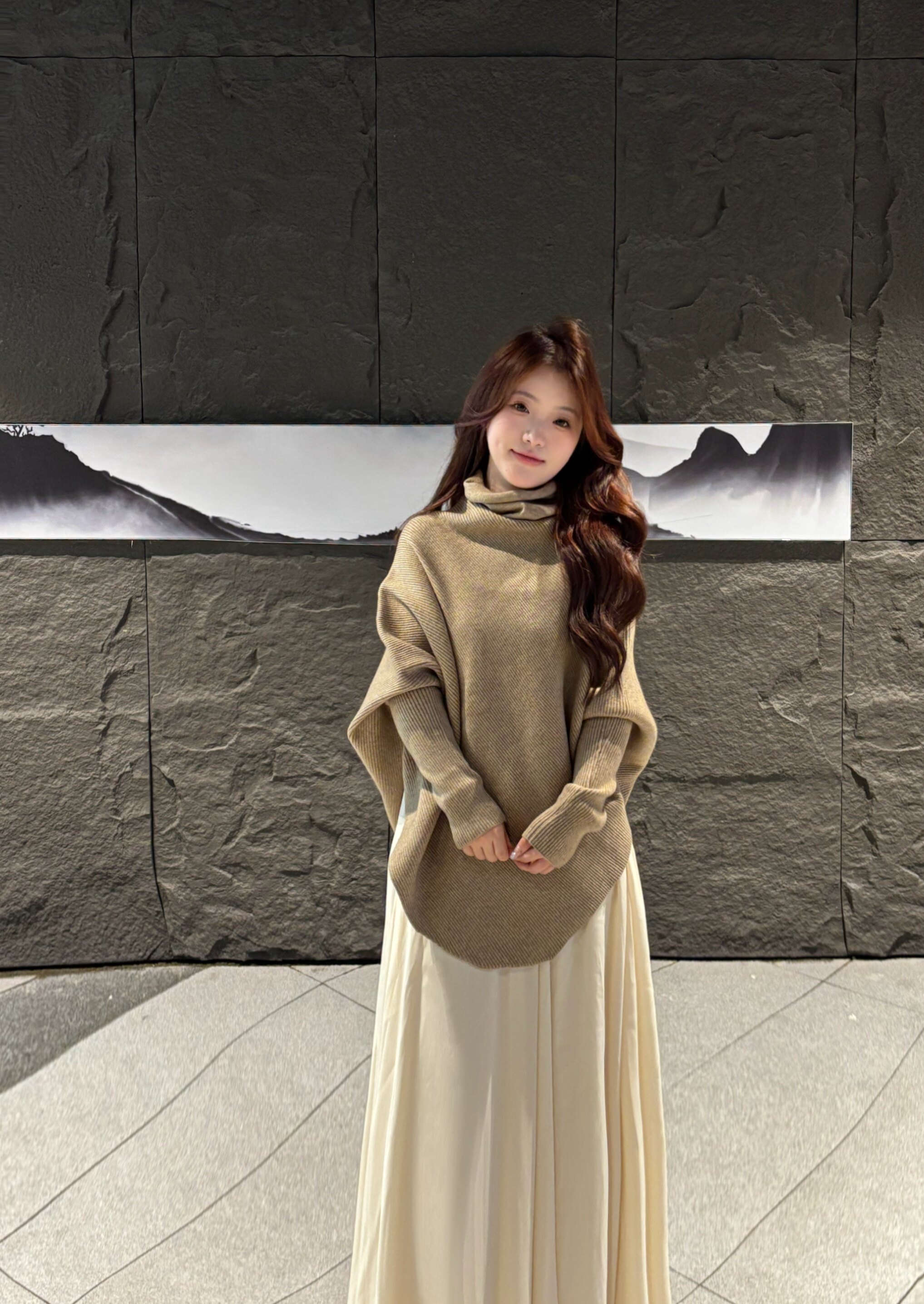 裙子版型超好,感觉很好搭配,不止可以搭配这个毛衣,质感也很不错,垂坠感也很强,特别喜欢~