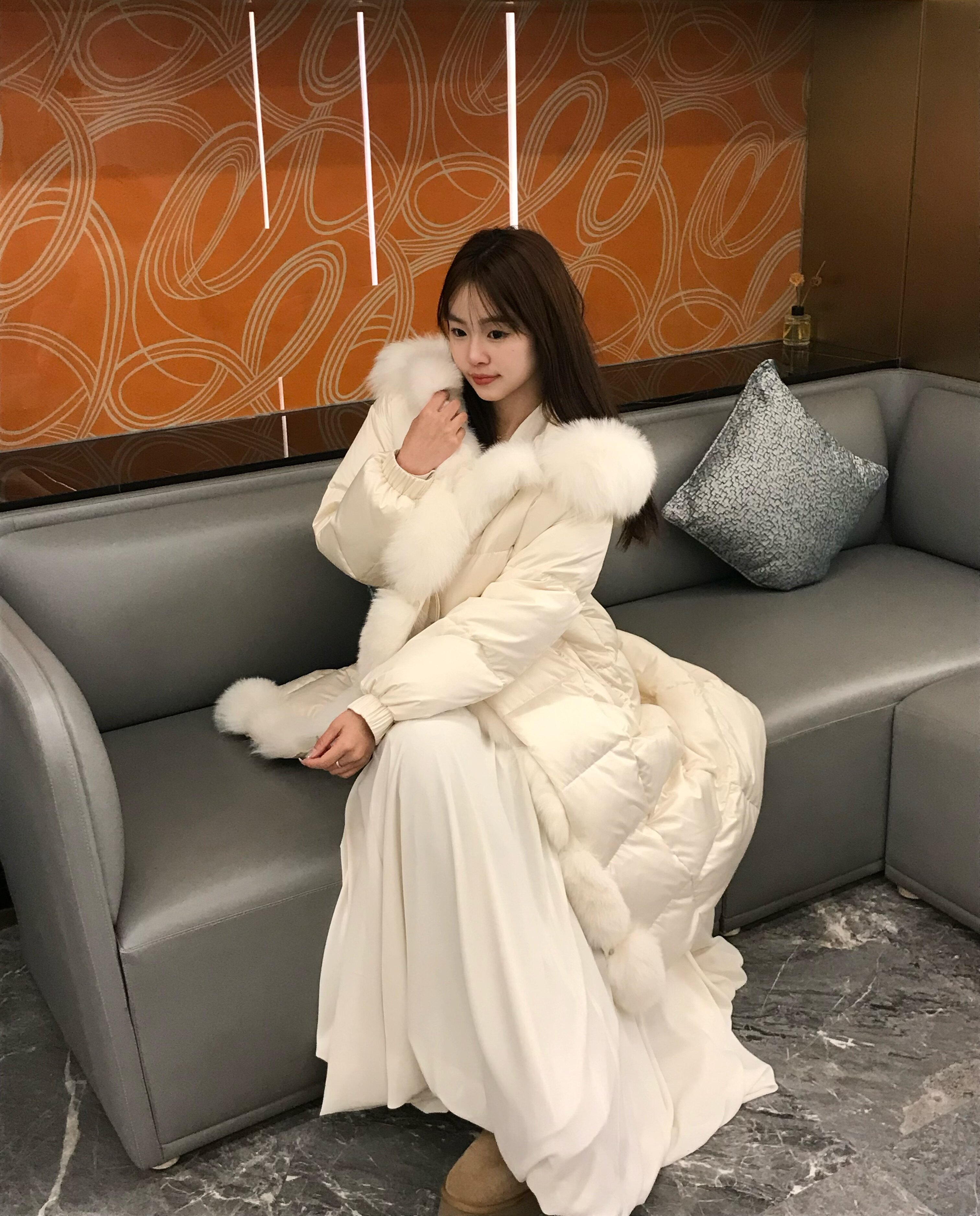 最近降温,穿上超级保暖,而且毛领摸着好舒服