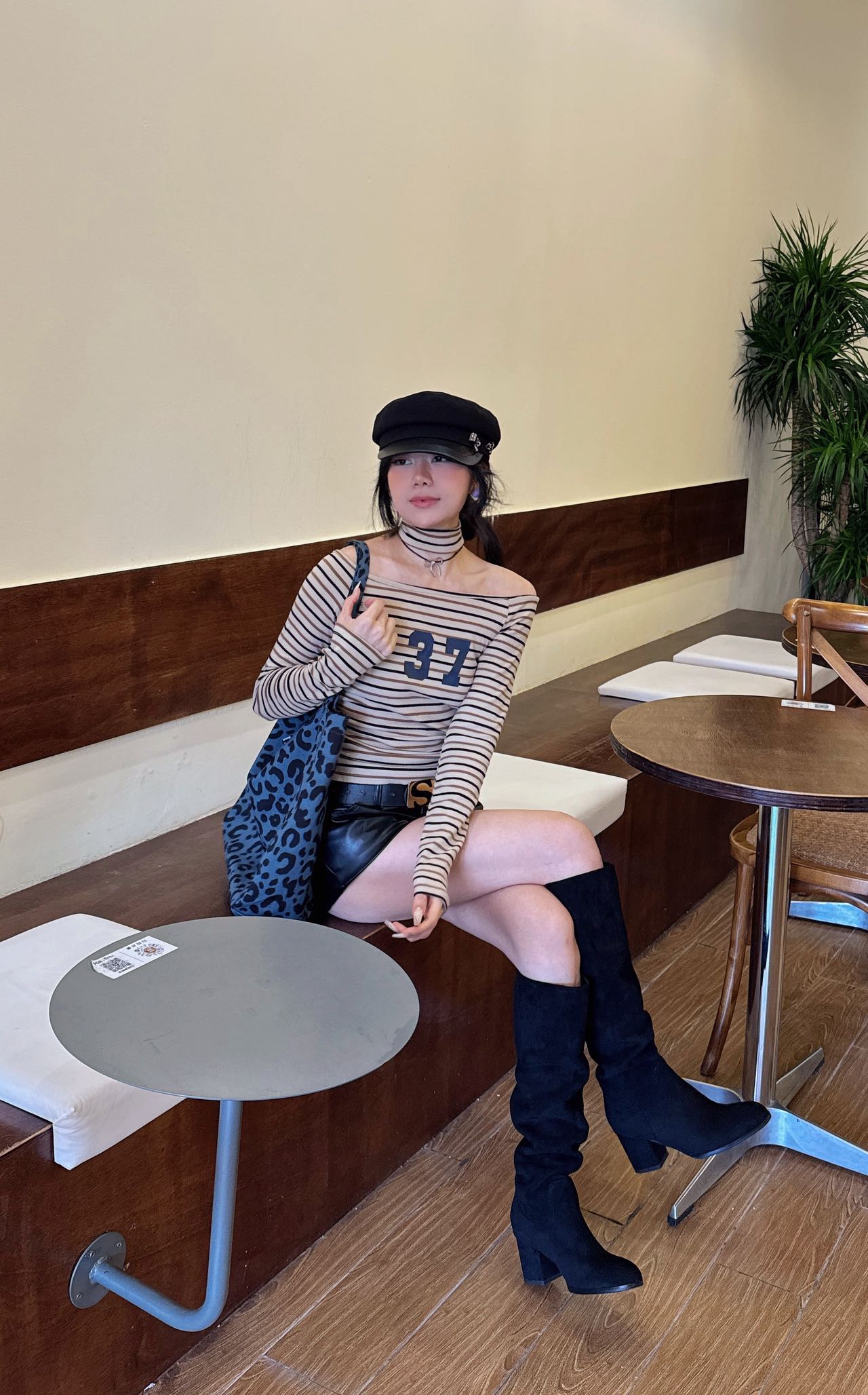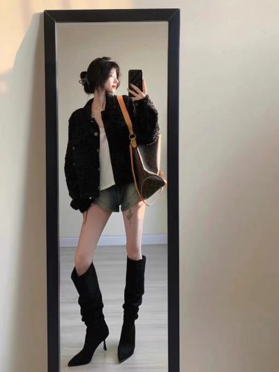 小个子穿不了靴筒太长的,这个就很不错,拉直也不过膝,穿上的时候靴筒会自然随意堆堆一点,洋气又好看。