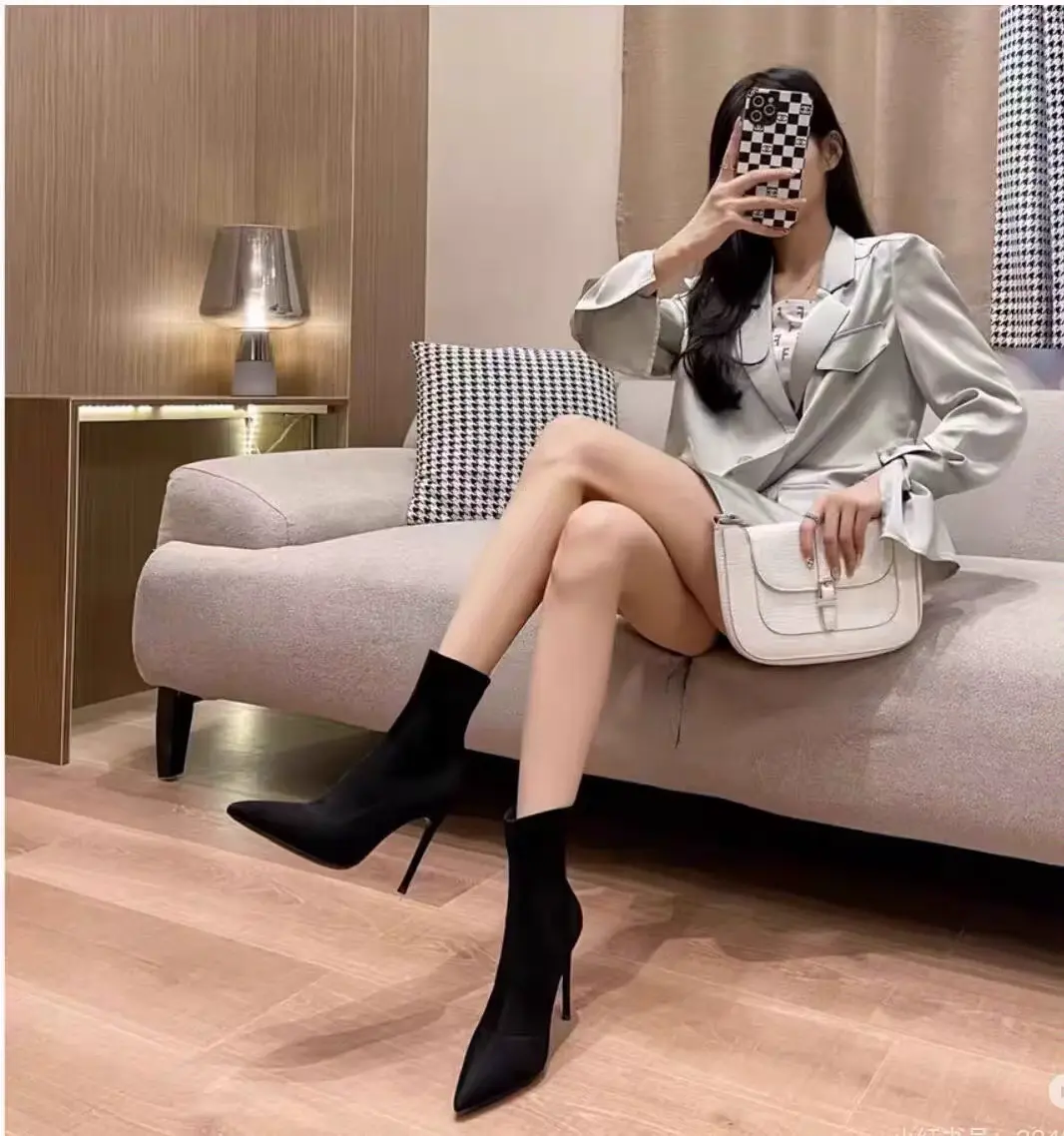 弹力瘦瘦靴好爱啊,穿上贴腿感很好,适合腿细的人穿,推荐棕色,上脚超好看哟👍