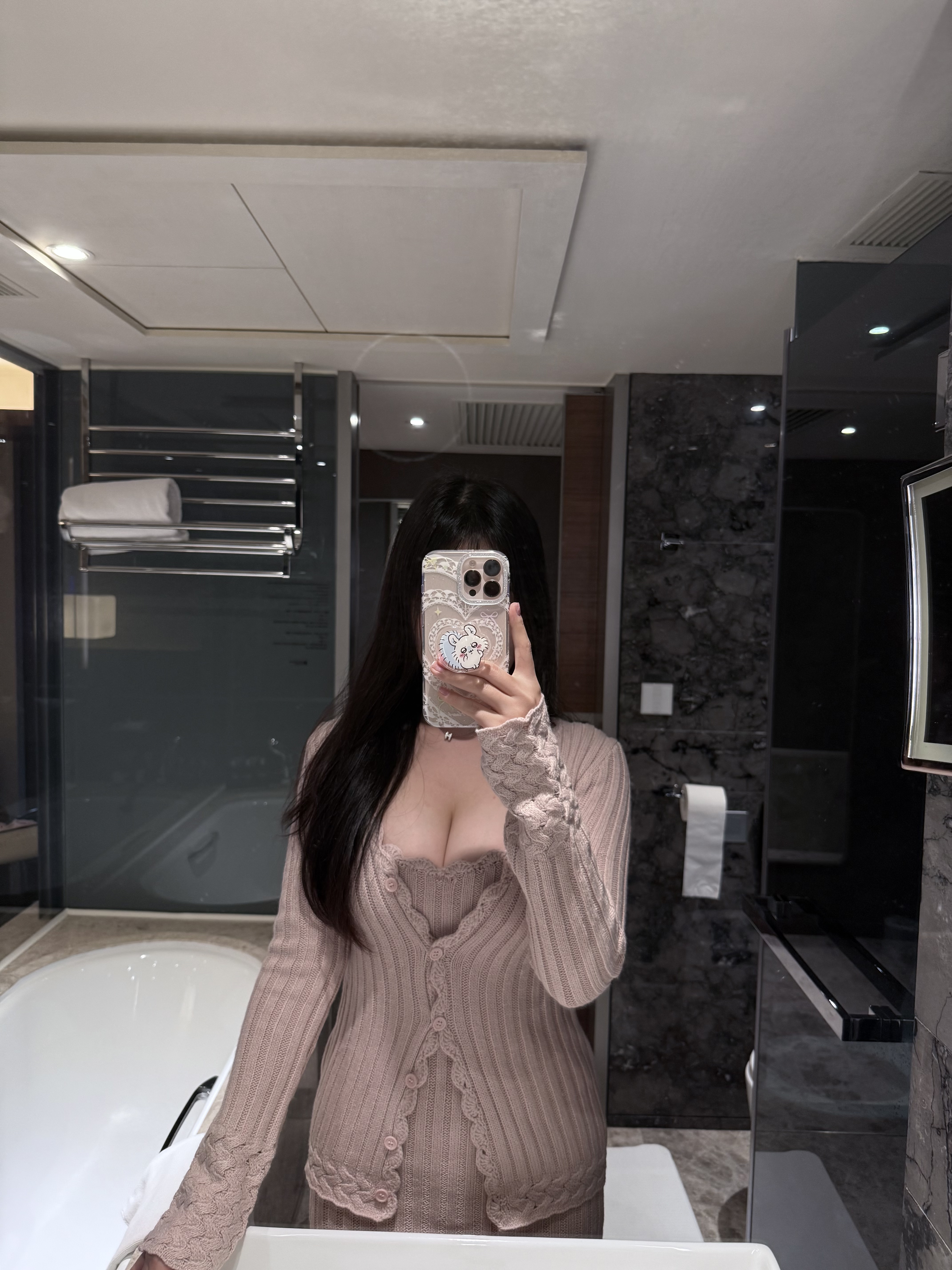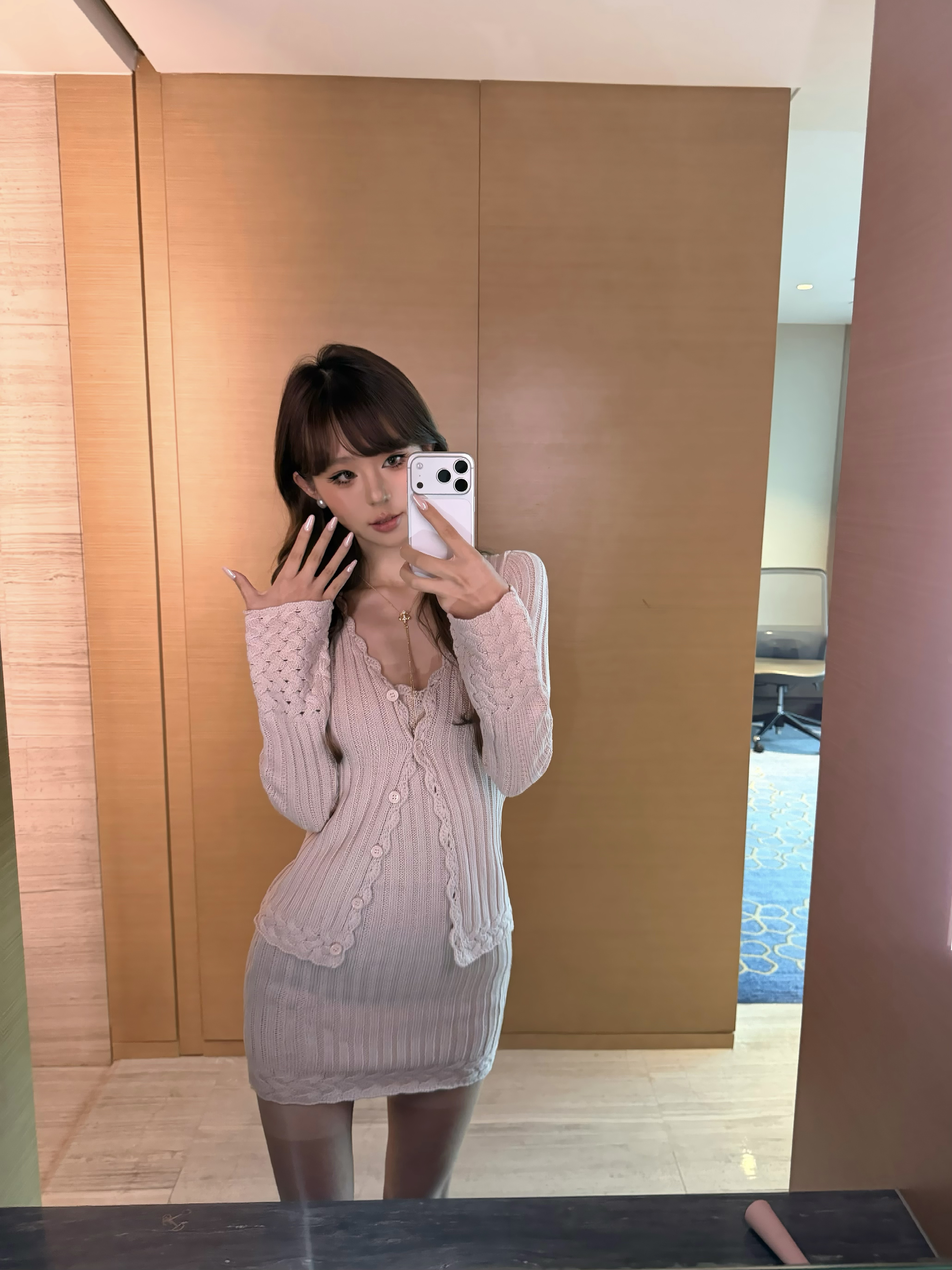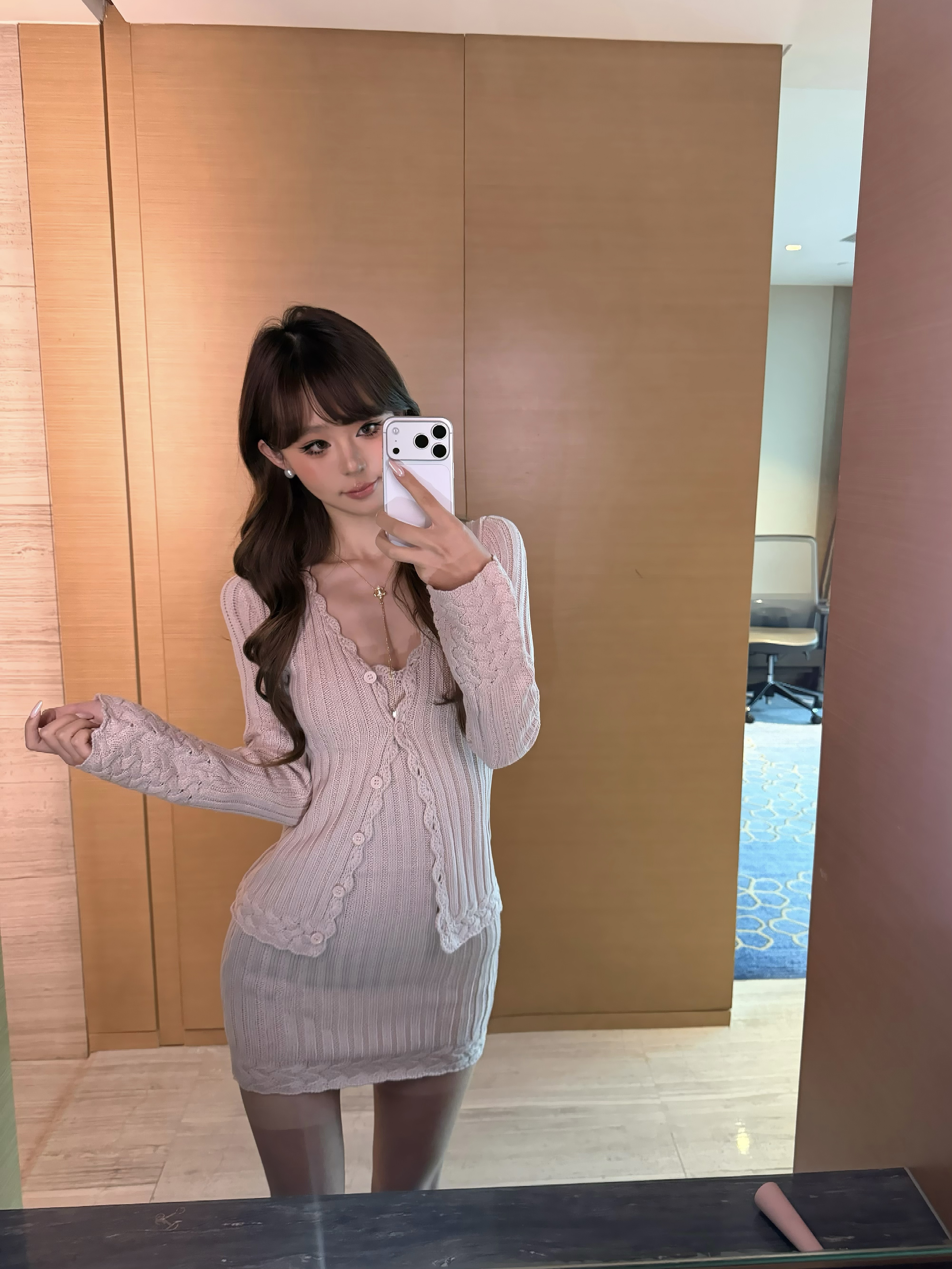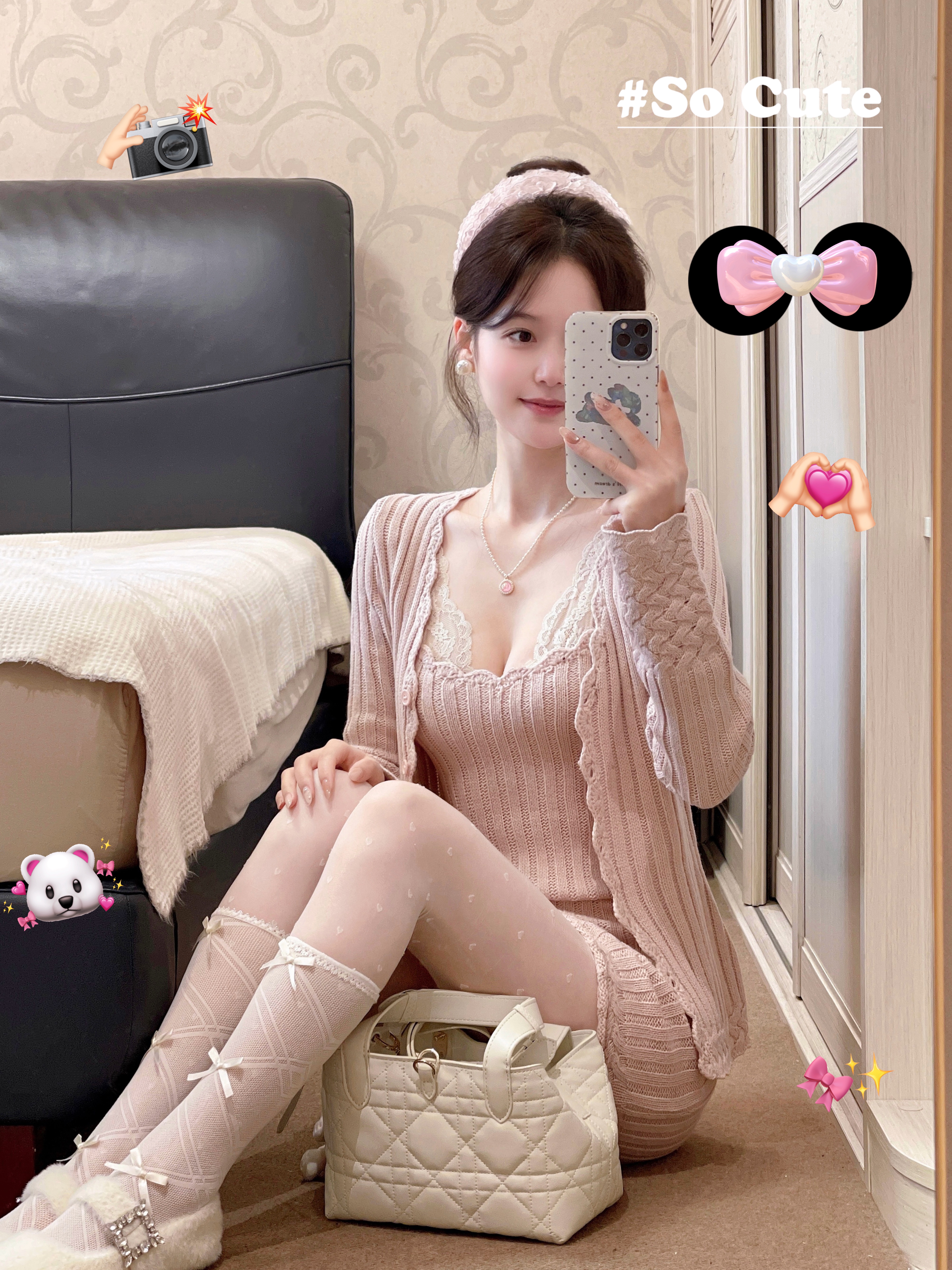 韩雨嘉【日常美女感】粉色V领钩花坑条针织连衣裙女毛衣开衫套装 购买地址 复制https://item.taobao.com/item.htm?id=974293236924 巨温柔显身材的小套装 这一套我一见钟情了 版型上身很好看 内搭裙裙稍微有点低胸有点小纯欲 小花边设计又很温柔 超喜欢~特别特别好看速买!!美美的一身喜欢❤️相关 发布于 衣服, 裤裙 标签 v领裙, 套装, 开衫, 毛衣, 裙子, 连衣裙, 针织衫, 针织裙 上篇文章: 早安樊樊「美留outfit」红条纹针织长袖上衣+格纹直筒长裤套装秋 下篇文章: ins 高端版!巨美自留@黑色真皮平底及膝骑士长靴不过膝高筒靴女