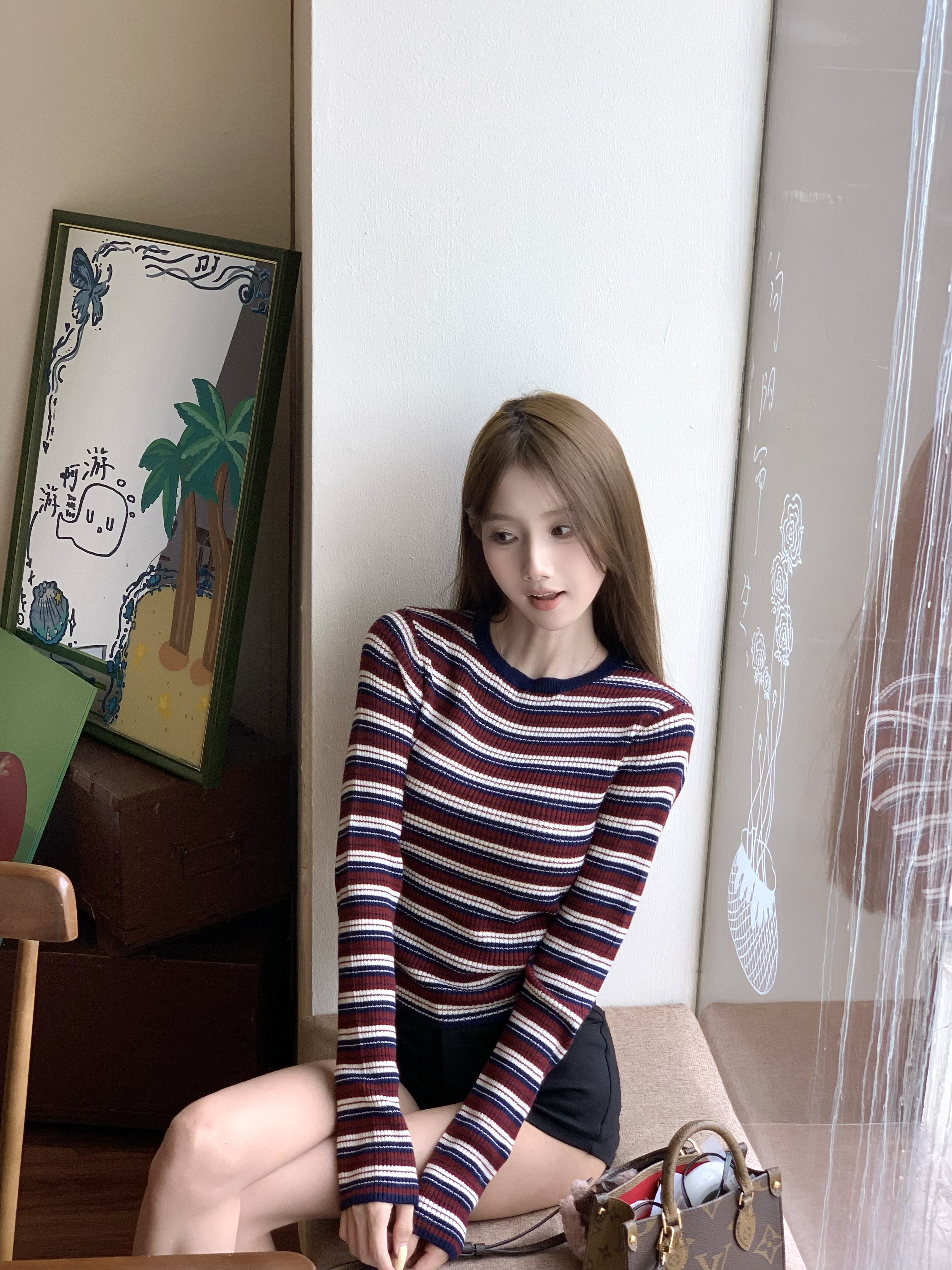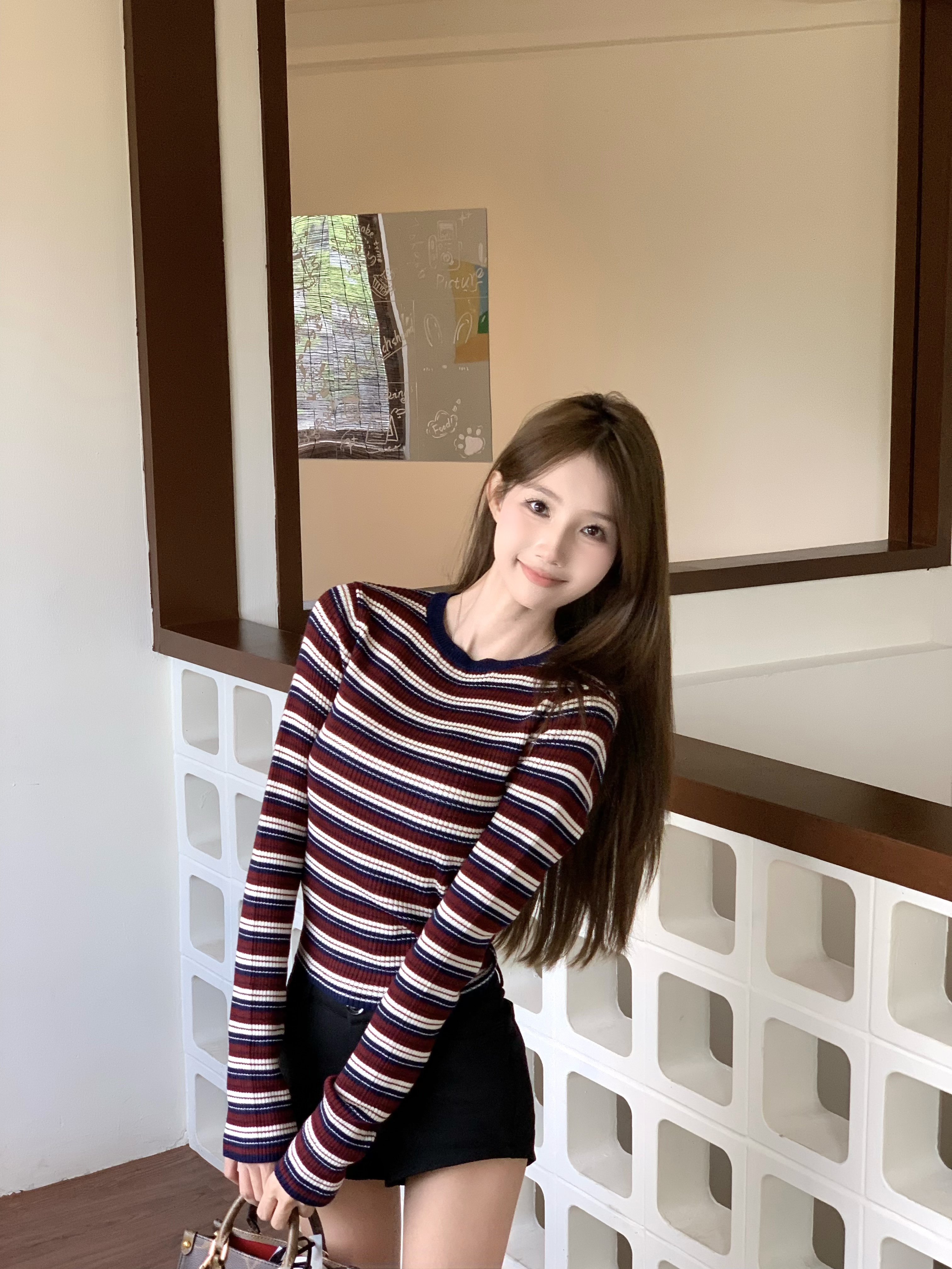 红条纹显白超吸睛,针织面料软糯亲肤,长袖厚度刚好,搭配一套很美式感