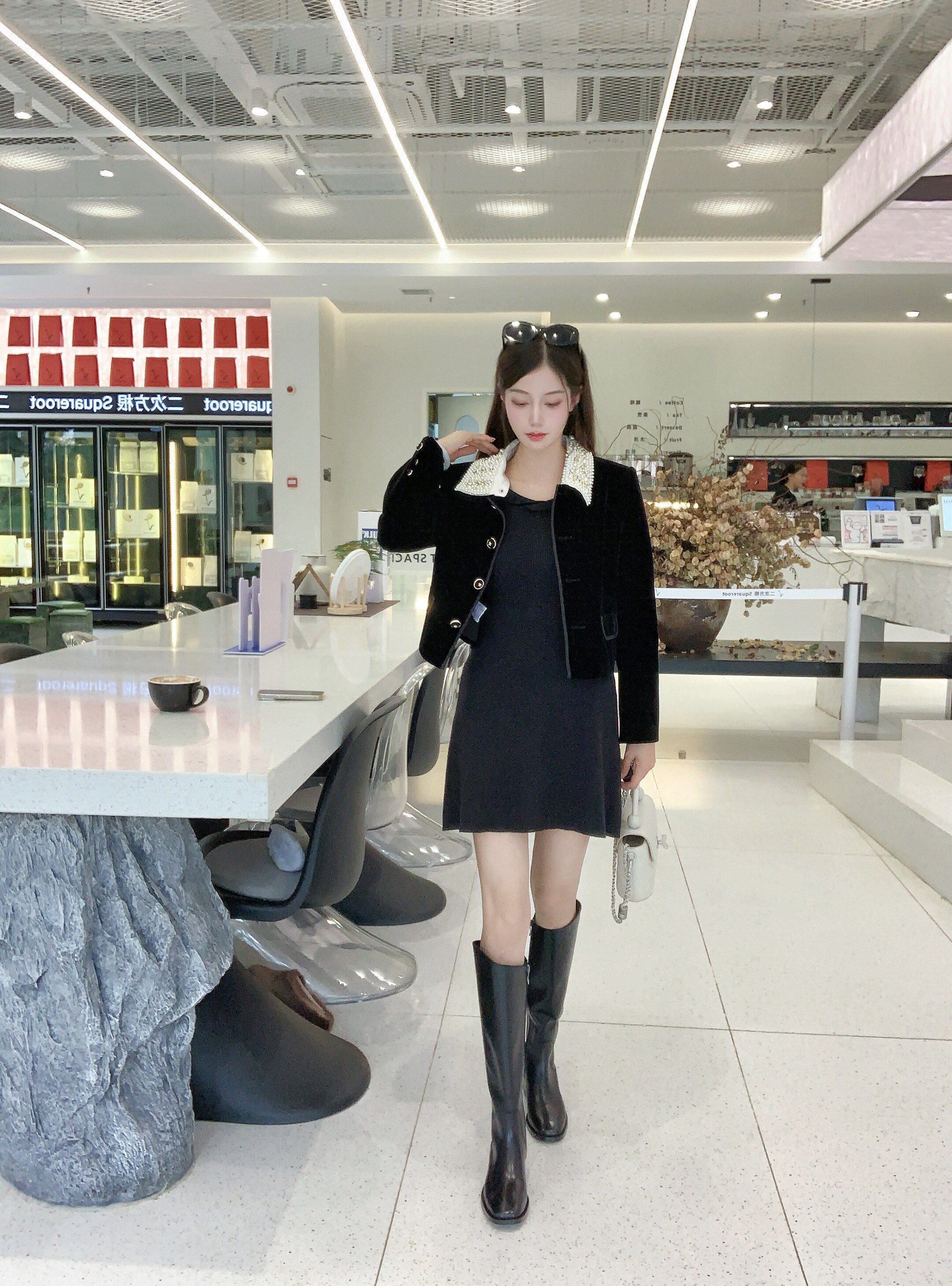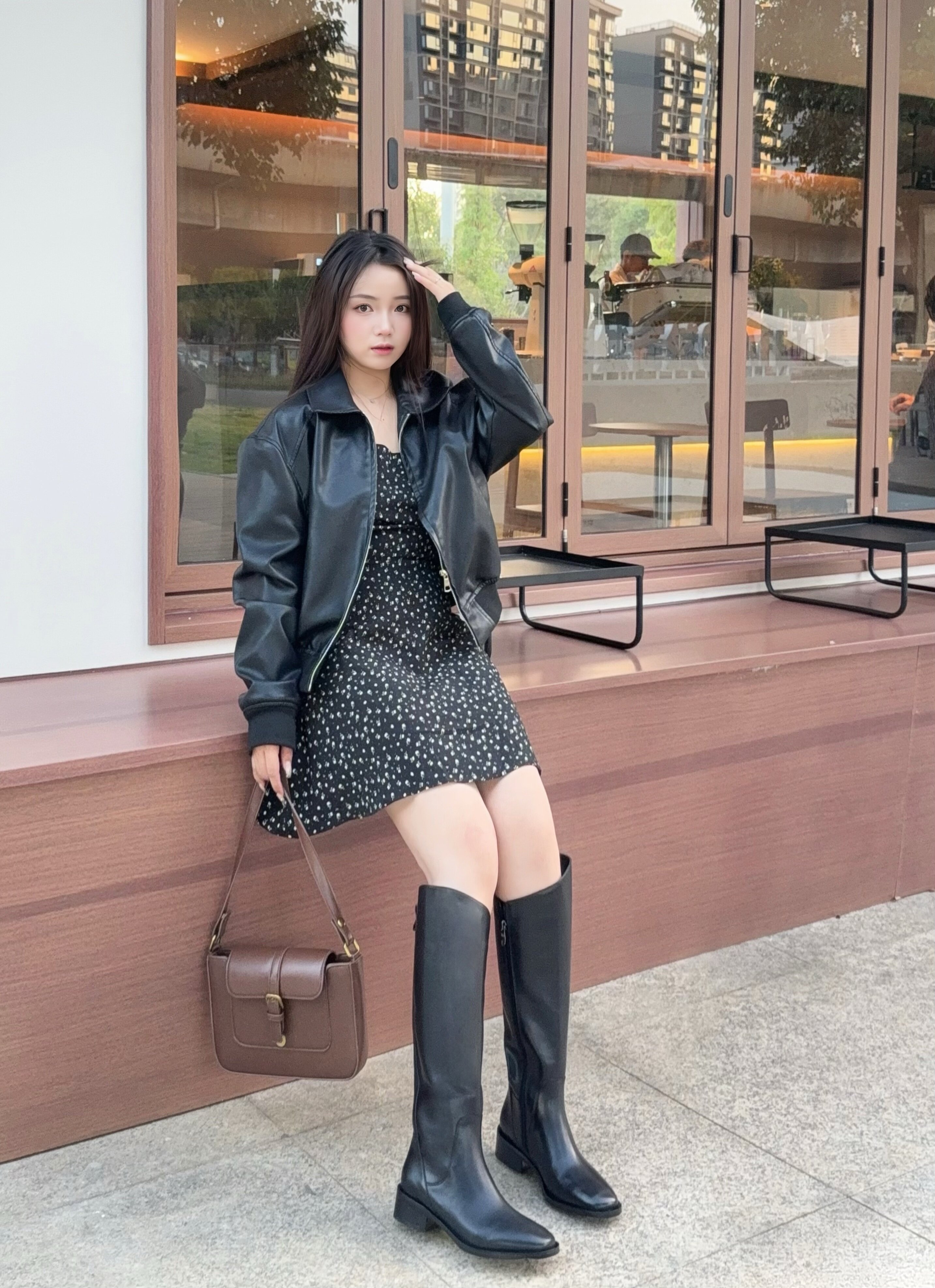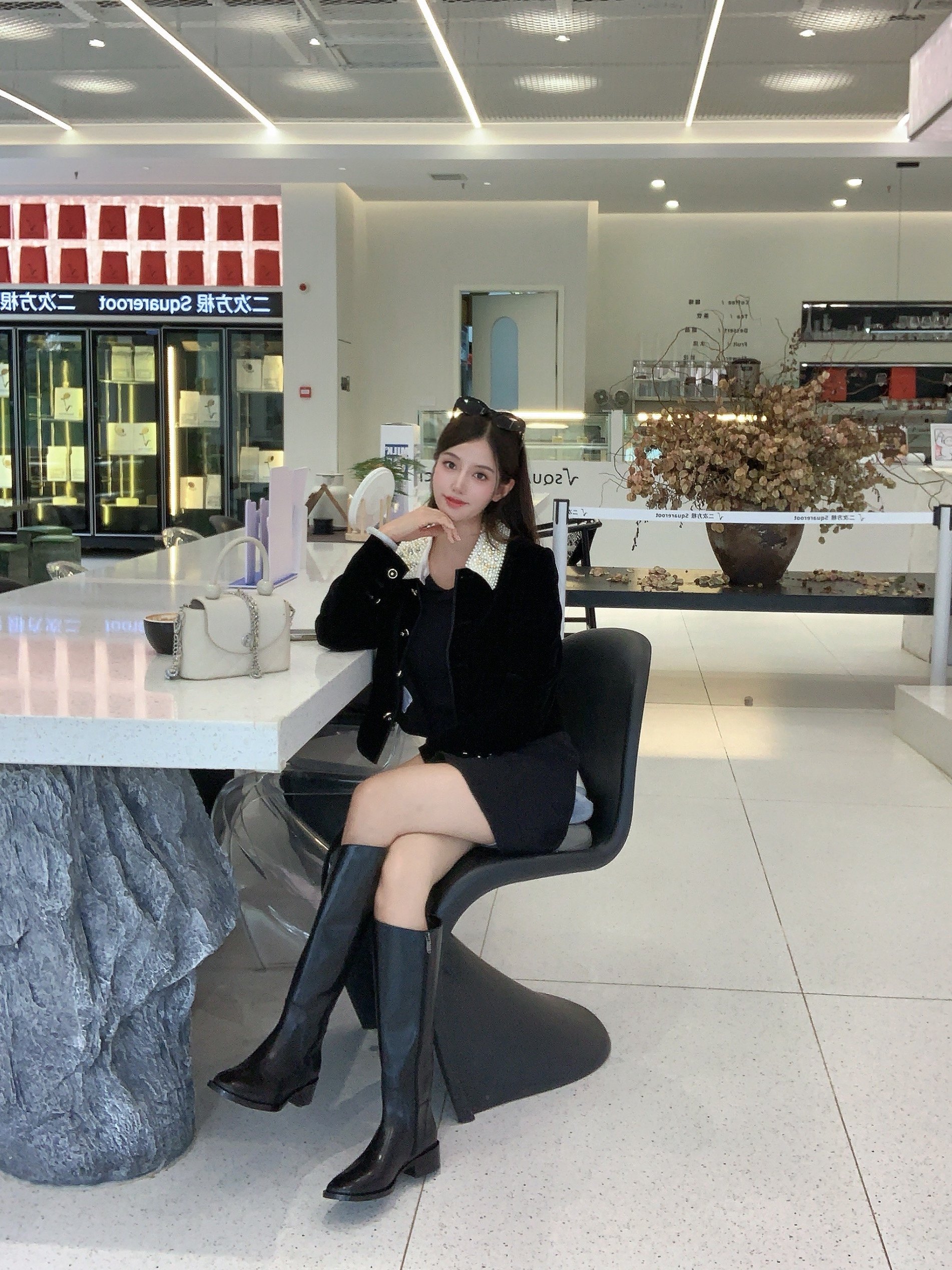 靴筒高度刚好过膝下,不压个子,搭配中长款外套超显比例。鞋跟高度适中,走路稳不累,通勤一整天也没压力。