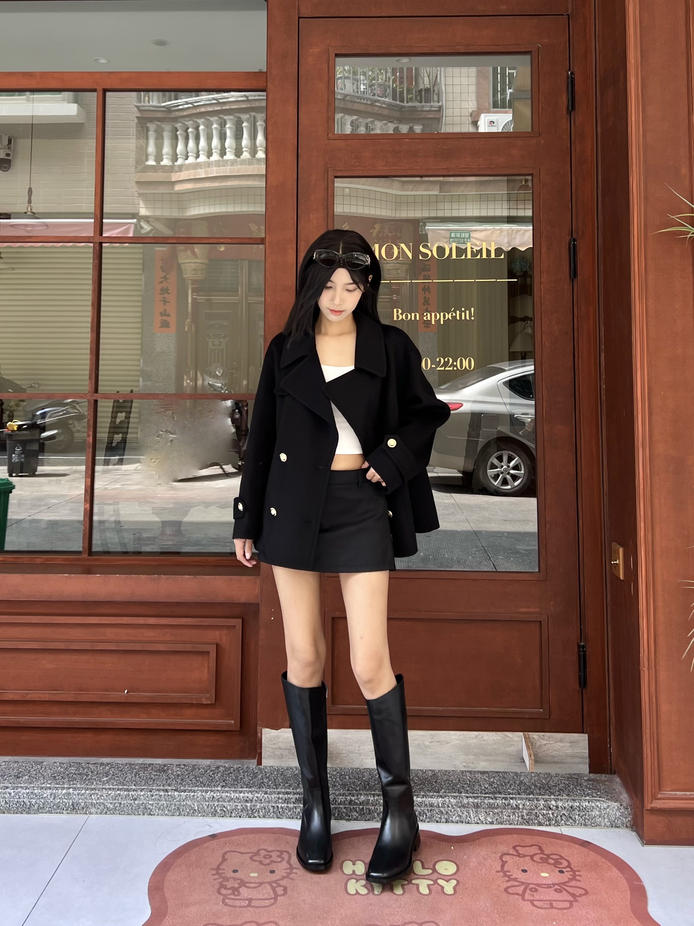 质量做工都很精致,细节处理得很好,黑色经典百搭,穿上秒变大长腿,质感很好的一款,很是喜欢~