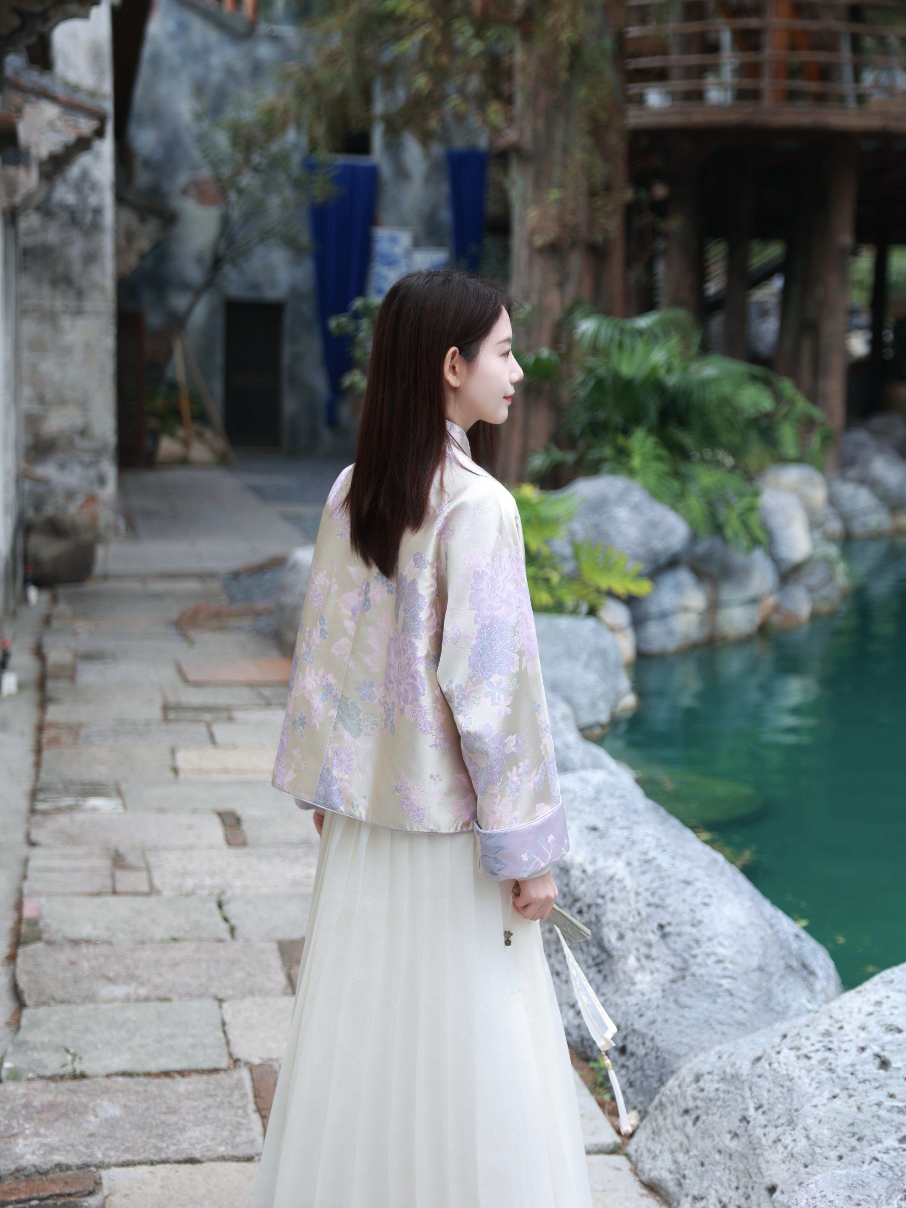 https://item.taobao.com/item.htm?id=978057063839上衣在光线下自带细腻光泽,粉紫调的花纹雅致灵动,宽松的版型对各种身材都很友好,复古又时髦!搭配米白色的百褶裙,一条国风流苏把氛围感拉满了。非常温柔的一套