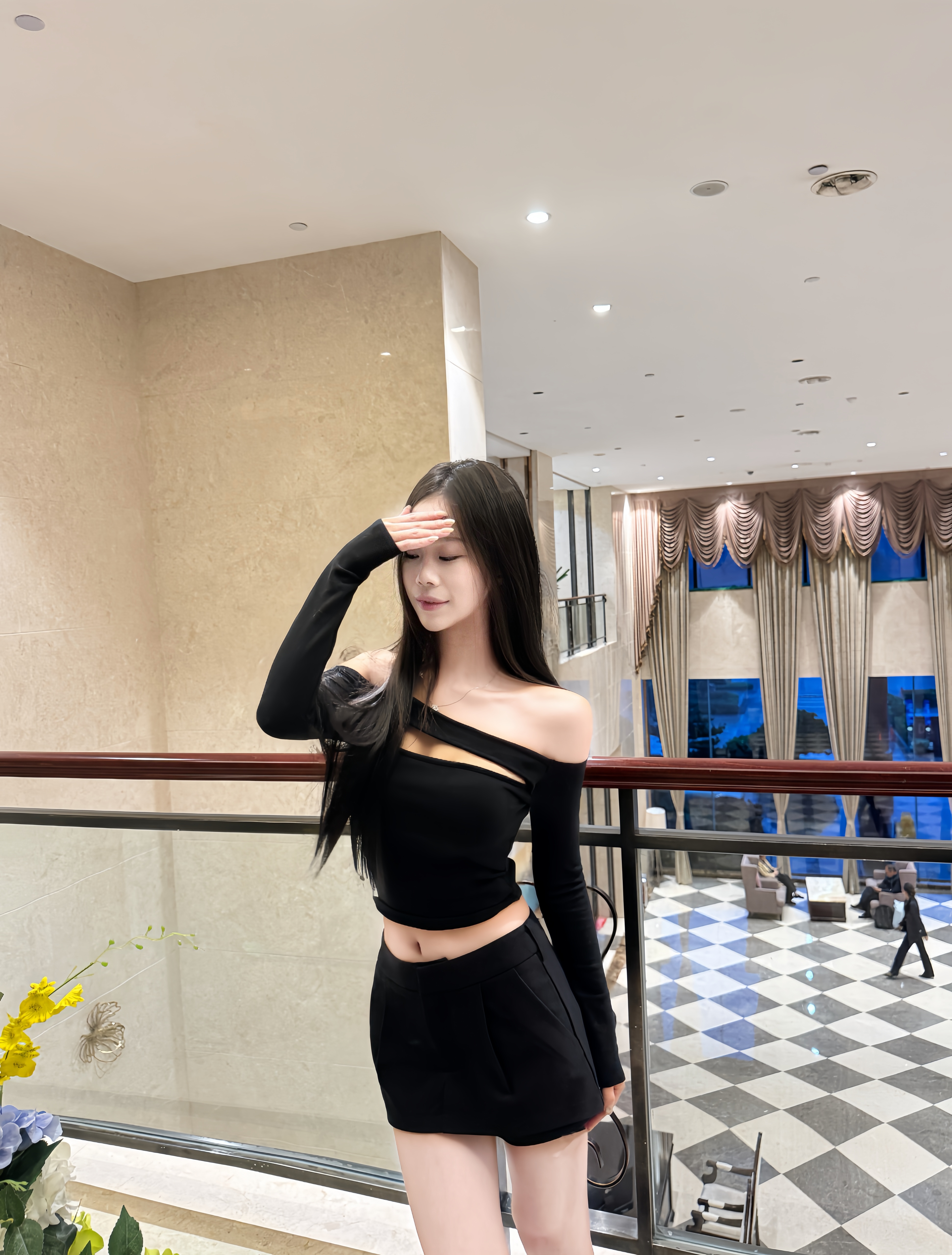 https://item.taobao.com/item.htm?id=978331809656一字肩的设计非常显瘦,让整个肩颈部的比例更加完美,胸前的设计很有气质!