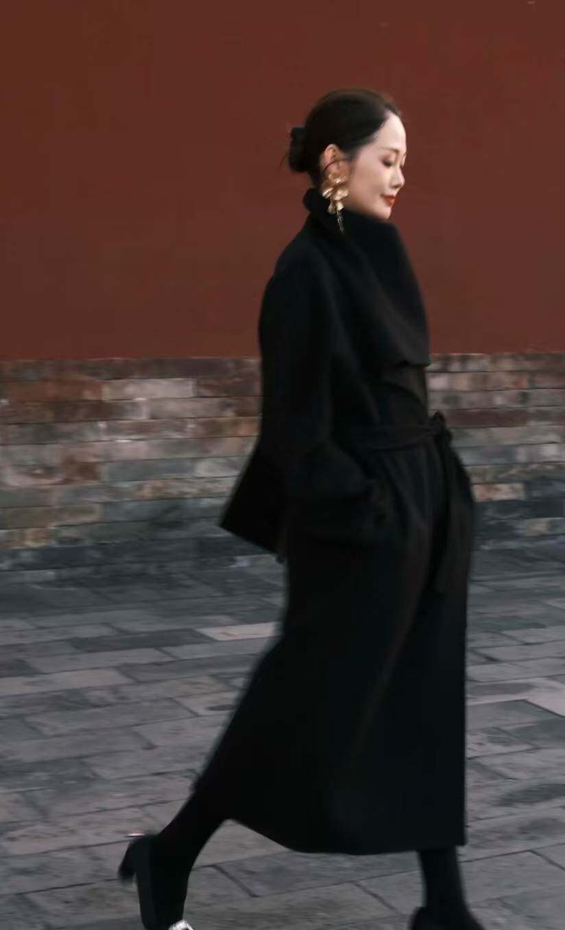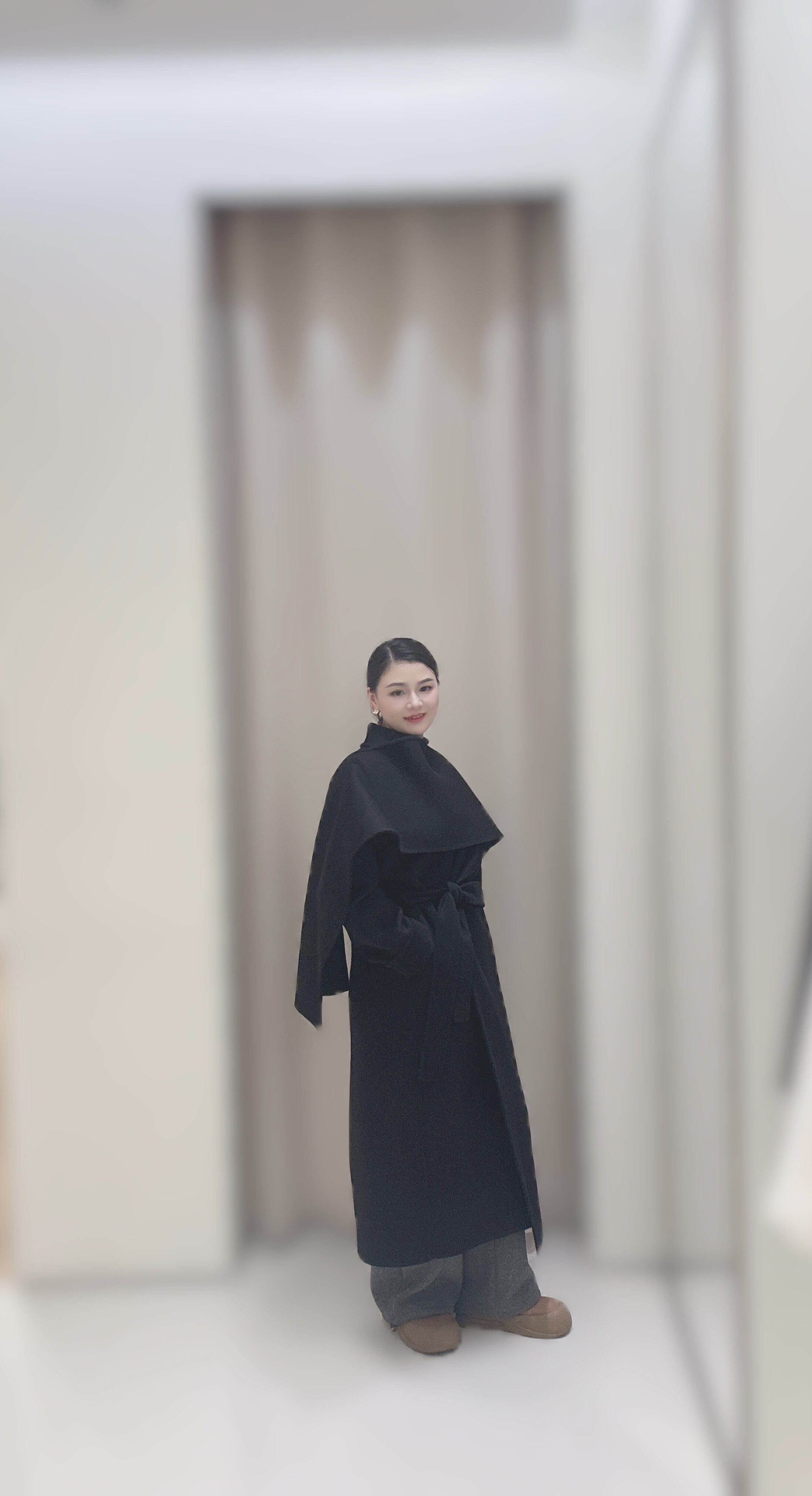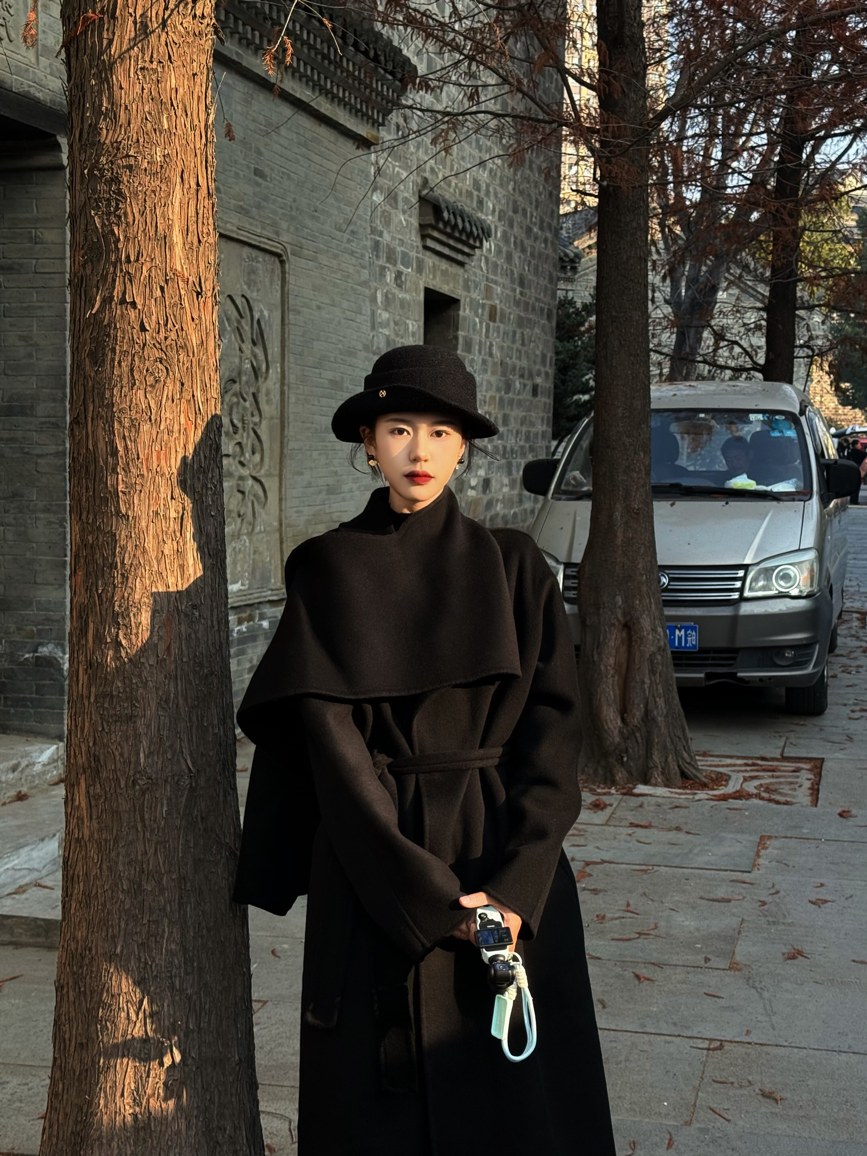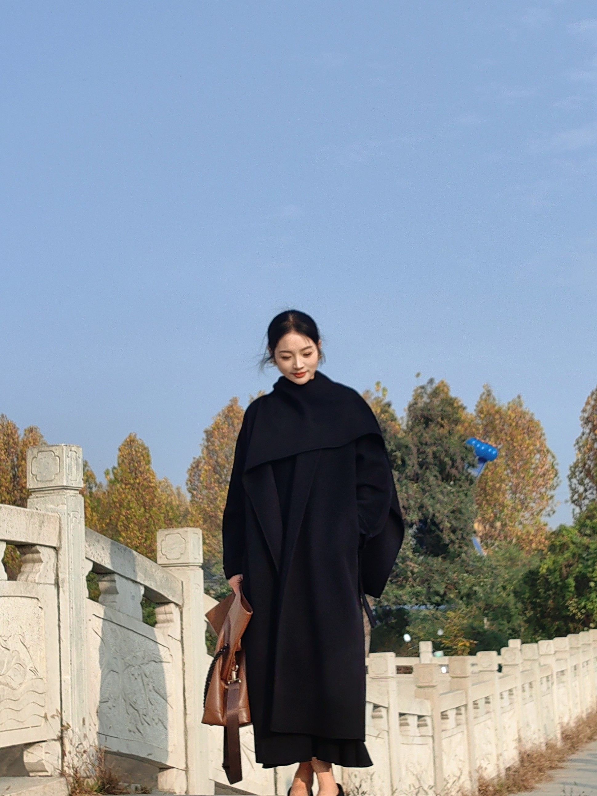 羊绒羊毛的奢暖,双面呢工艺的精致,自带围巾设计的巧思,黑色的经典,共同构成了这种独特的风格。穿上它,你不需要刻意凹造型,不需要复杂的搭配,一件大衣本身,就是气质的表达。