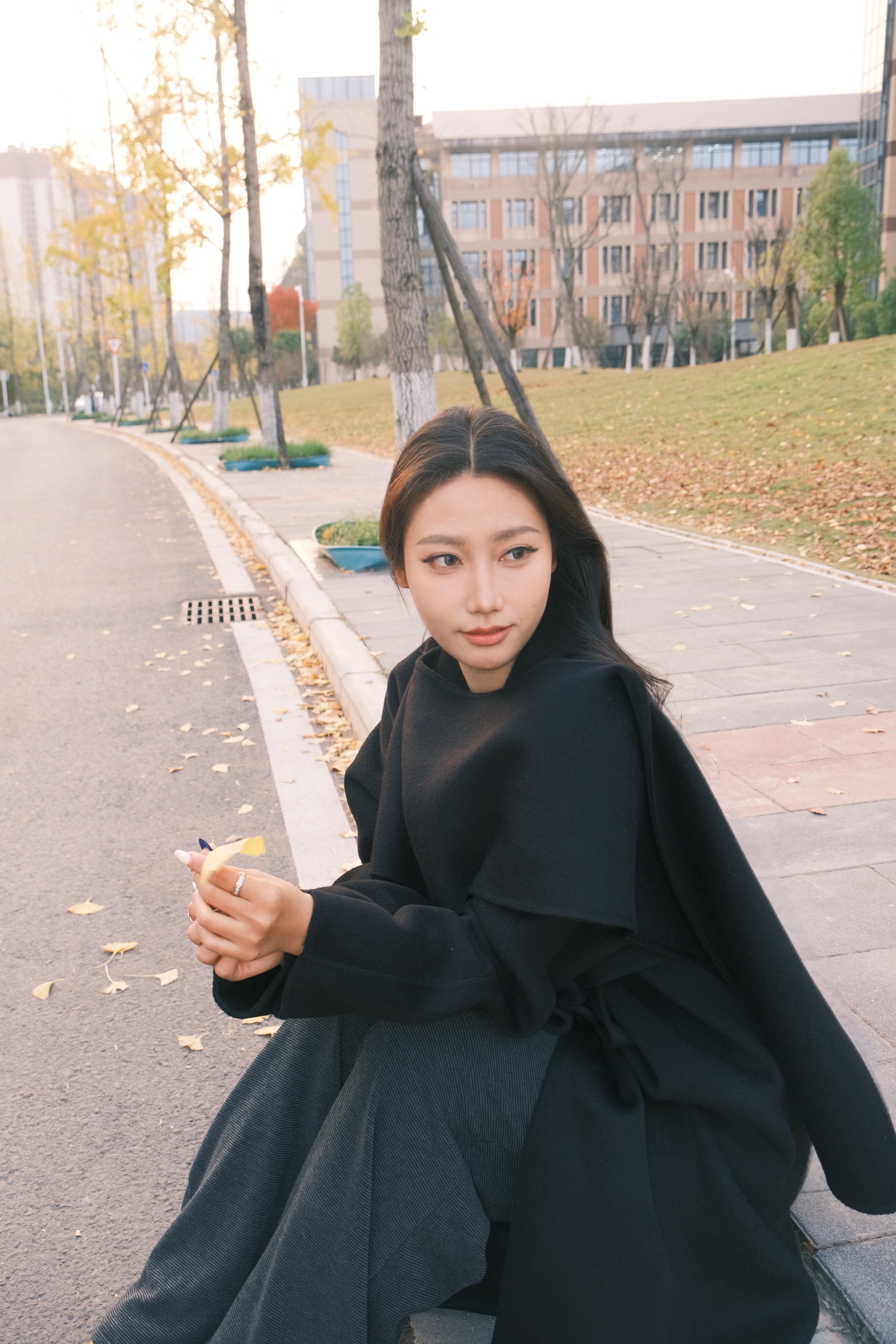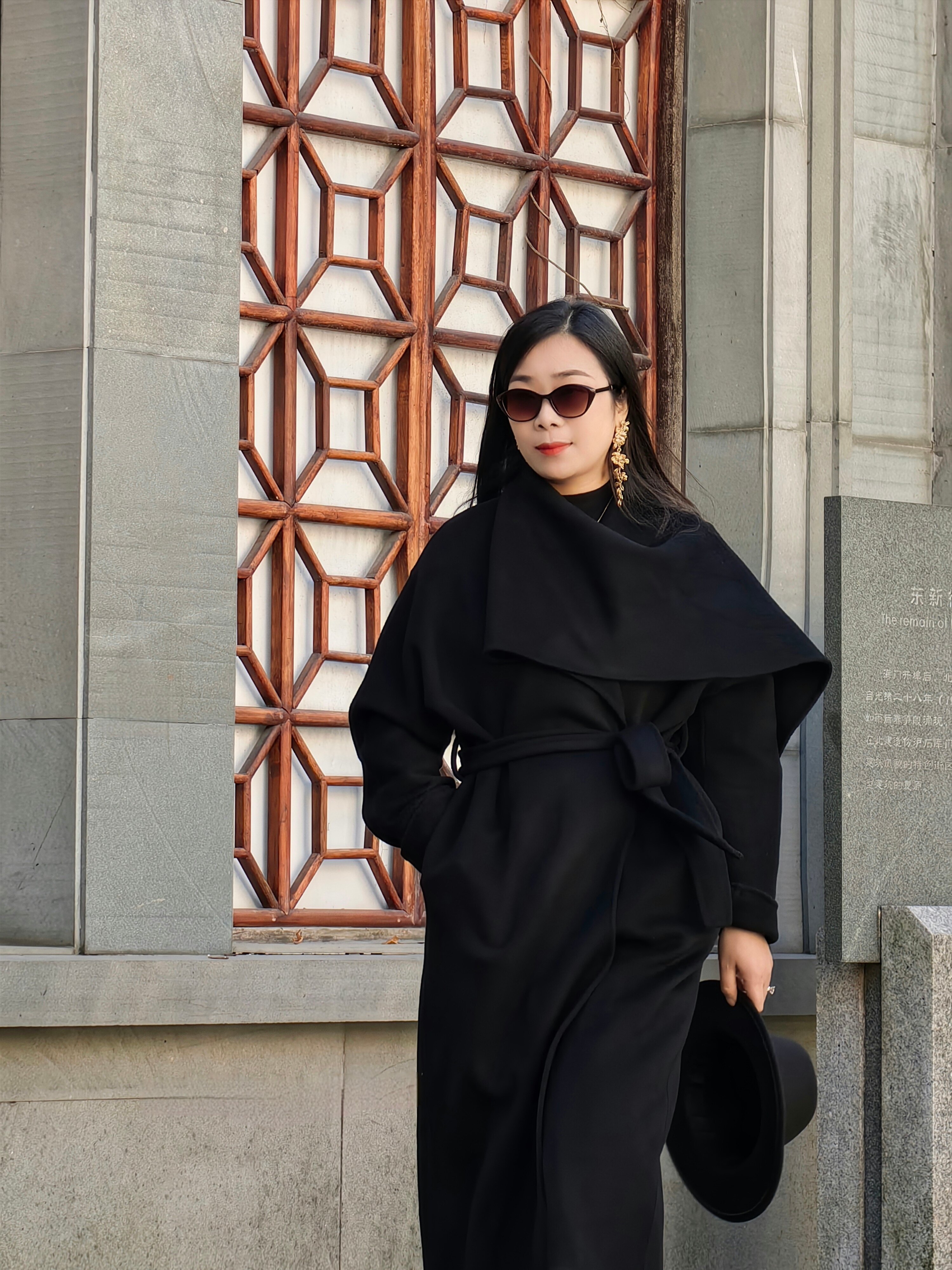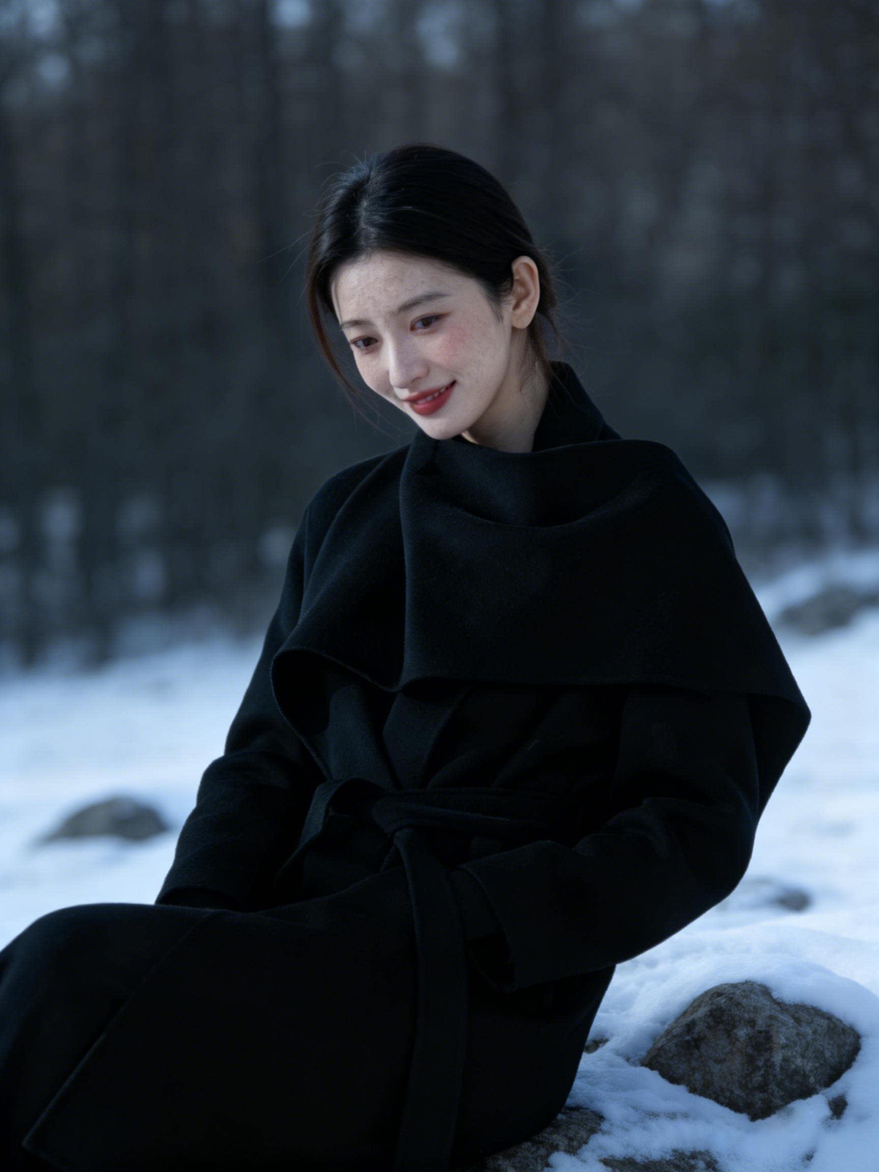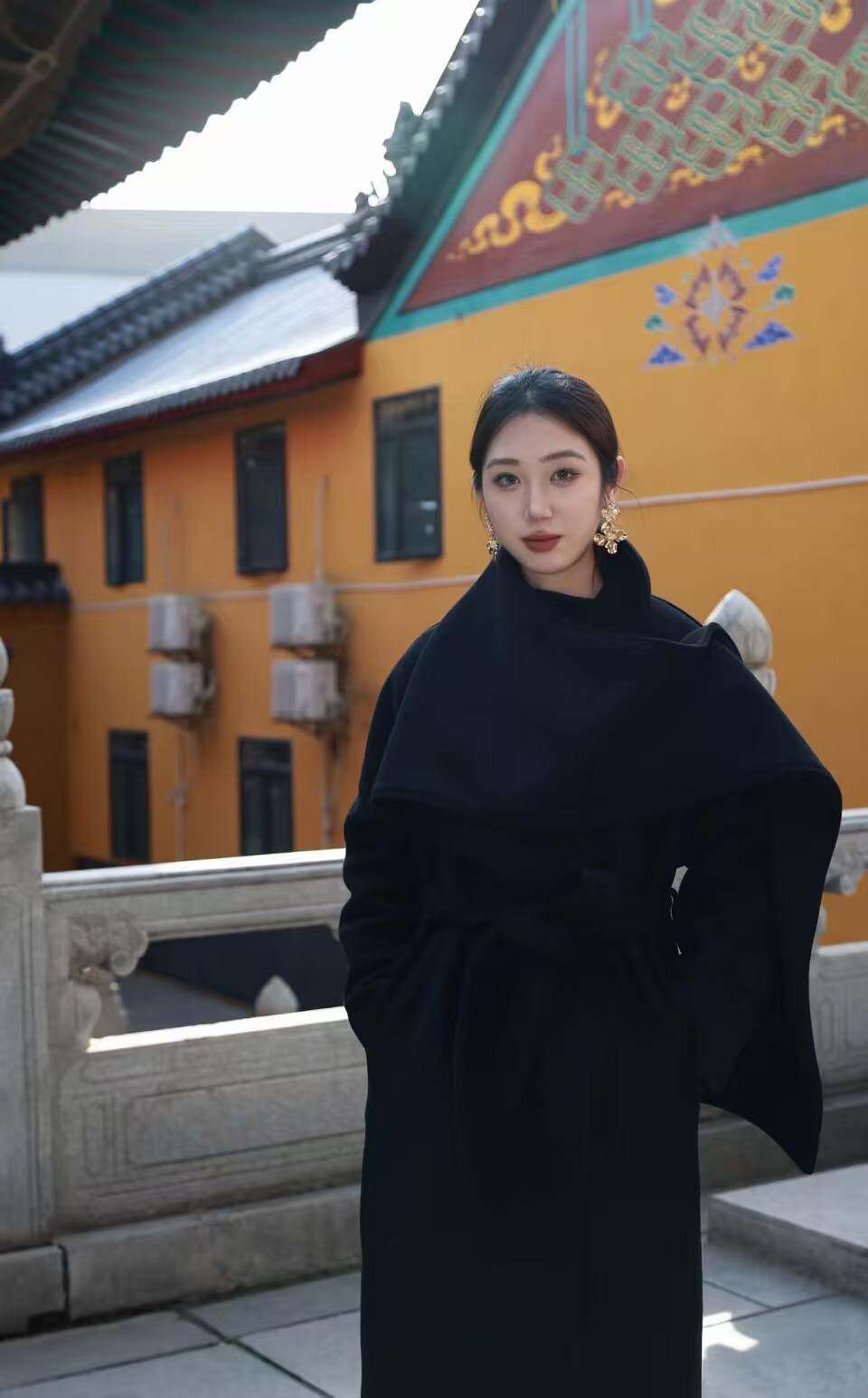 羊绒羊毛的奢暖,双面呢工艺的精致,自带围巾设计的巧思,黑色的经典,共同构成了这种独特的风格。穿上它,你不需要刻意凹造型,不需要复杂的搭配,一件大衣本身,就是气质的表达。