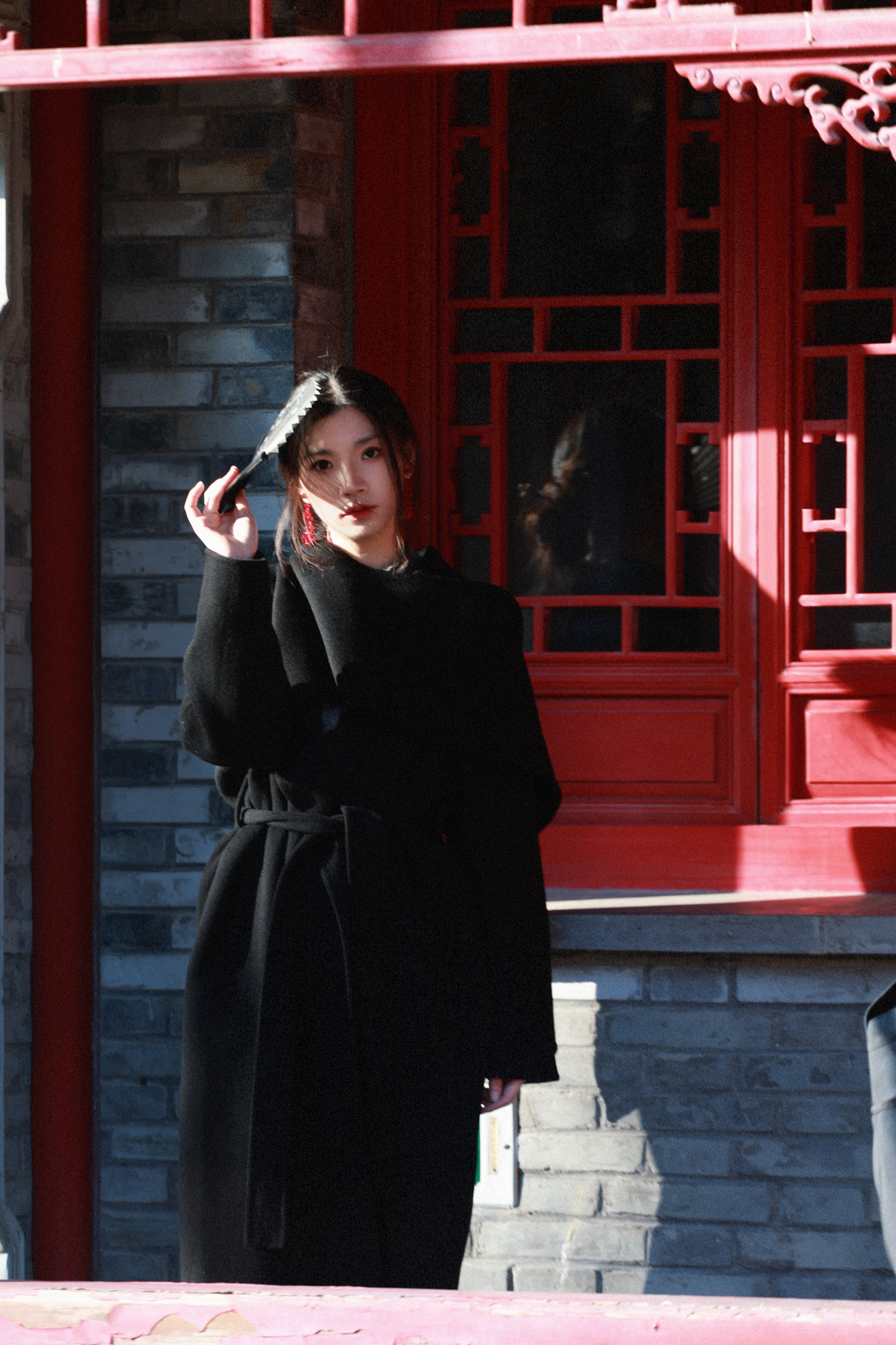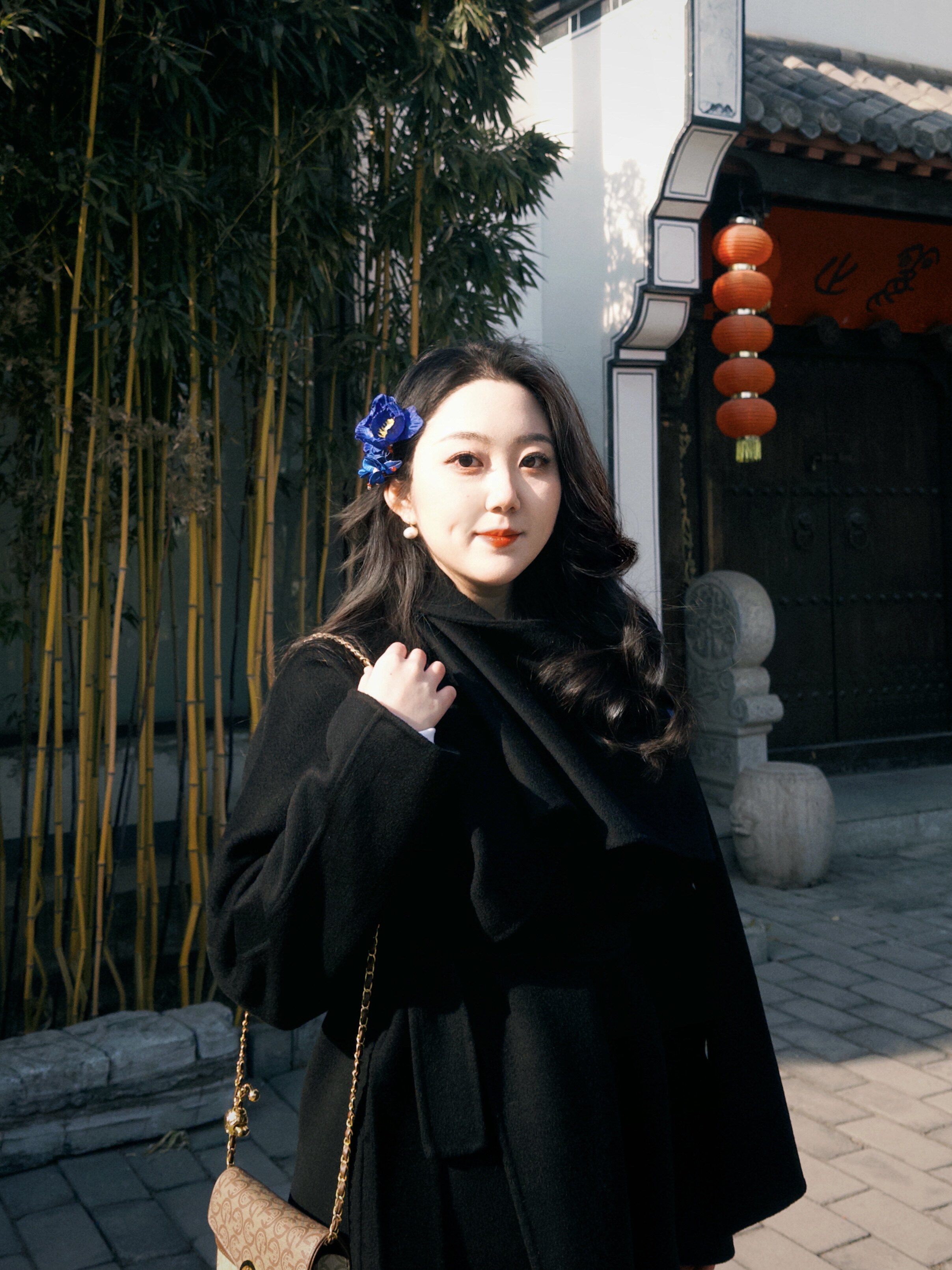黑色的魅力在于它的包容性。它能够与任何颜色、任何风格的单品搭配,永远不会显得突兀。作为大衣的主色调,黑色让整体造型更加利落有型,同时也为围巾、内搭等配饰留出了发挥空间。