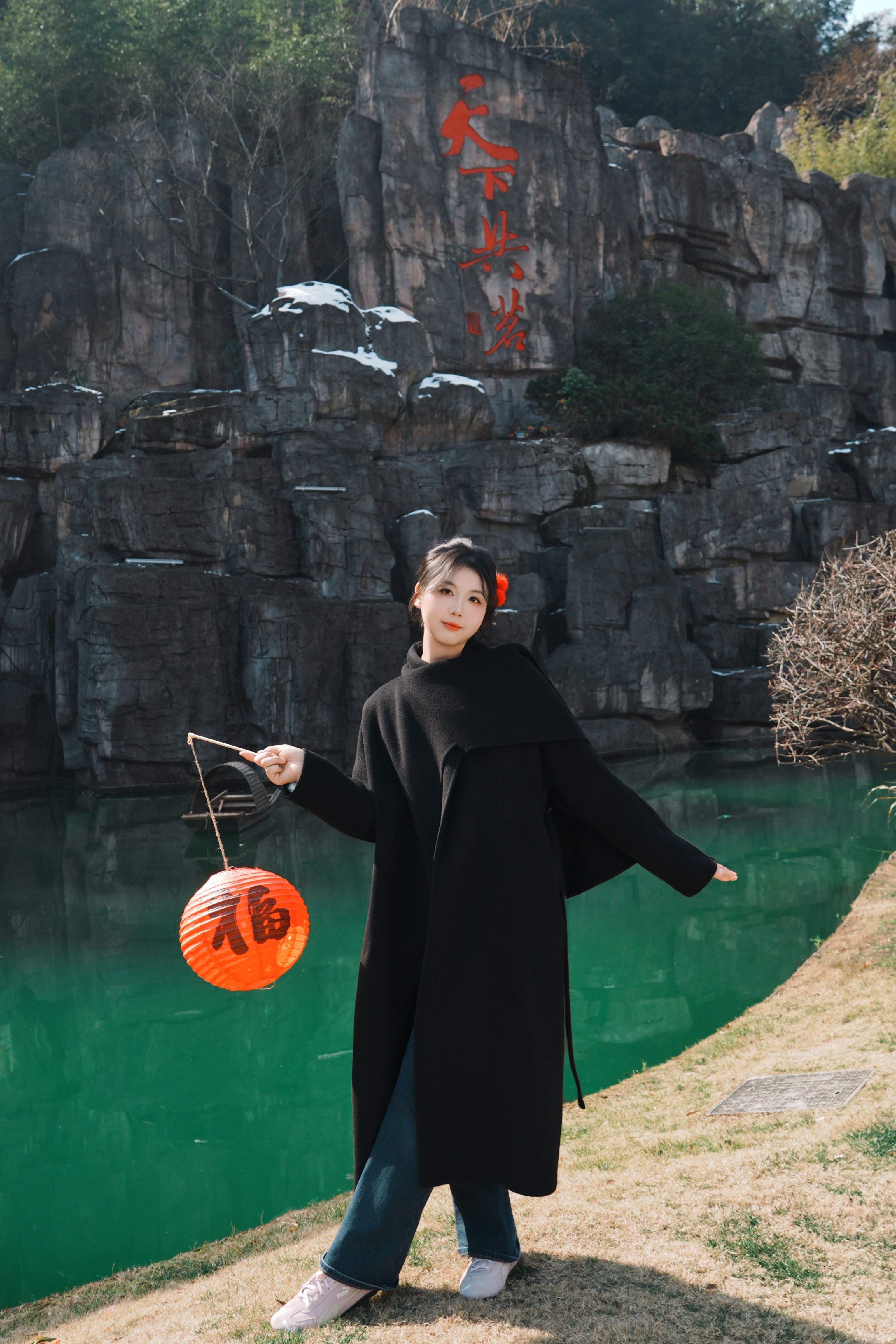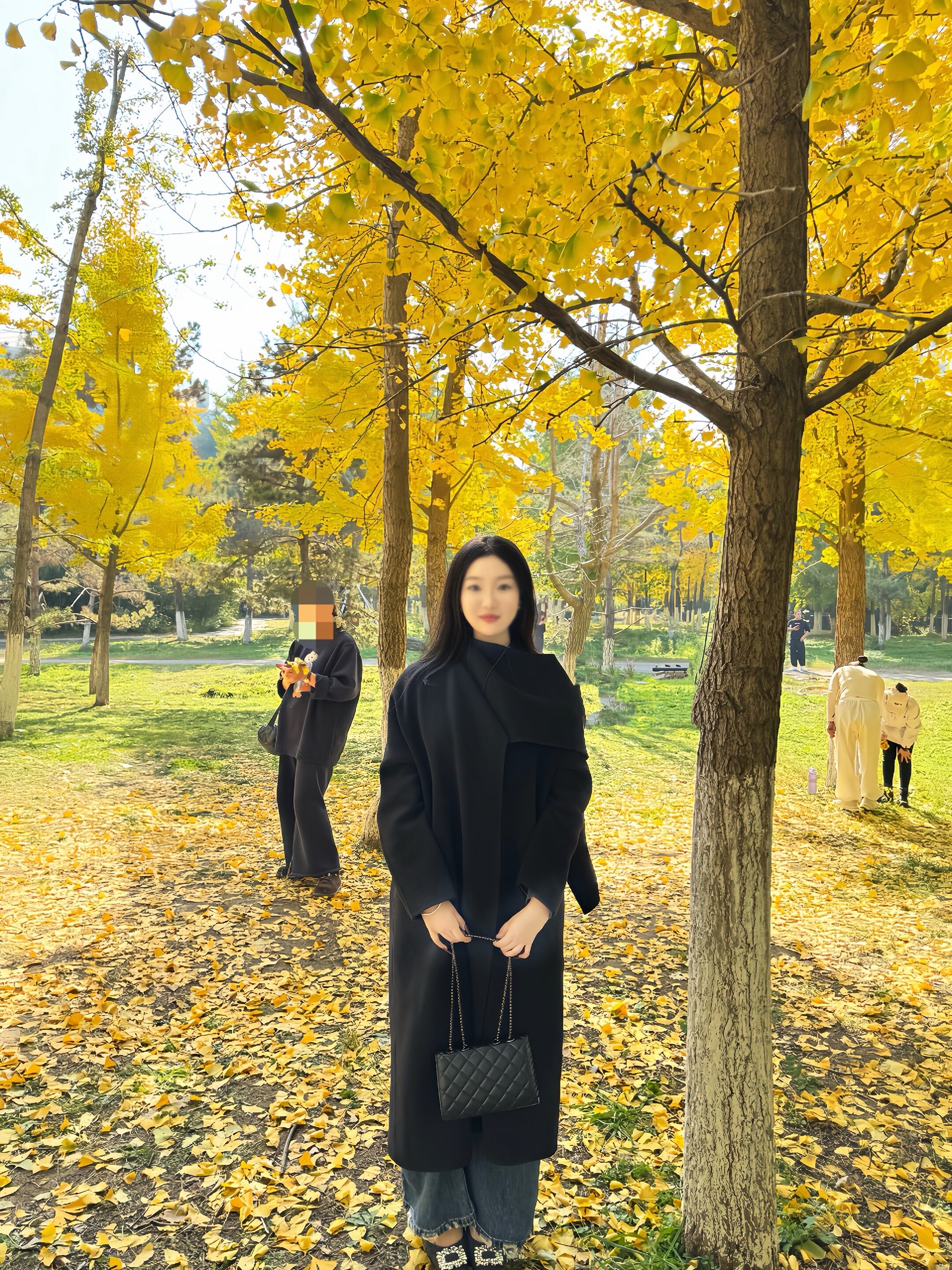 身高164cm,大衣长度很好,刚好到小腿下面。这个披肩设计很有个性,并且可以多种方式围成微薄的形式会很保暖,整体不会显得很臃肿。特别是去北京拍照很出片。